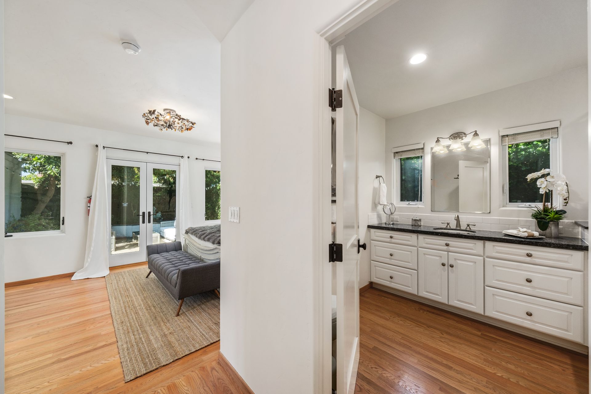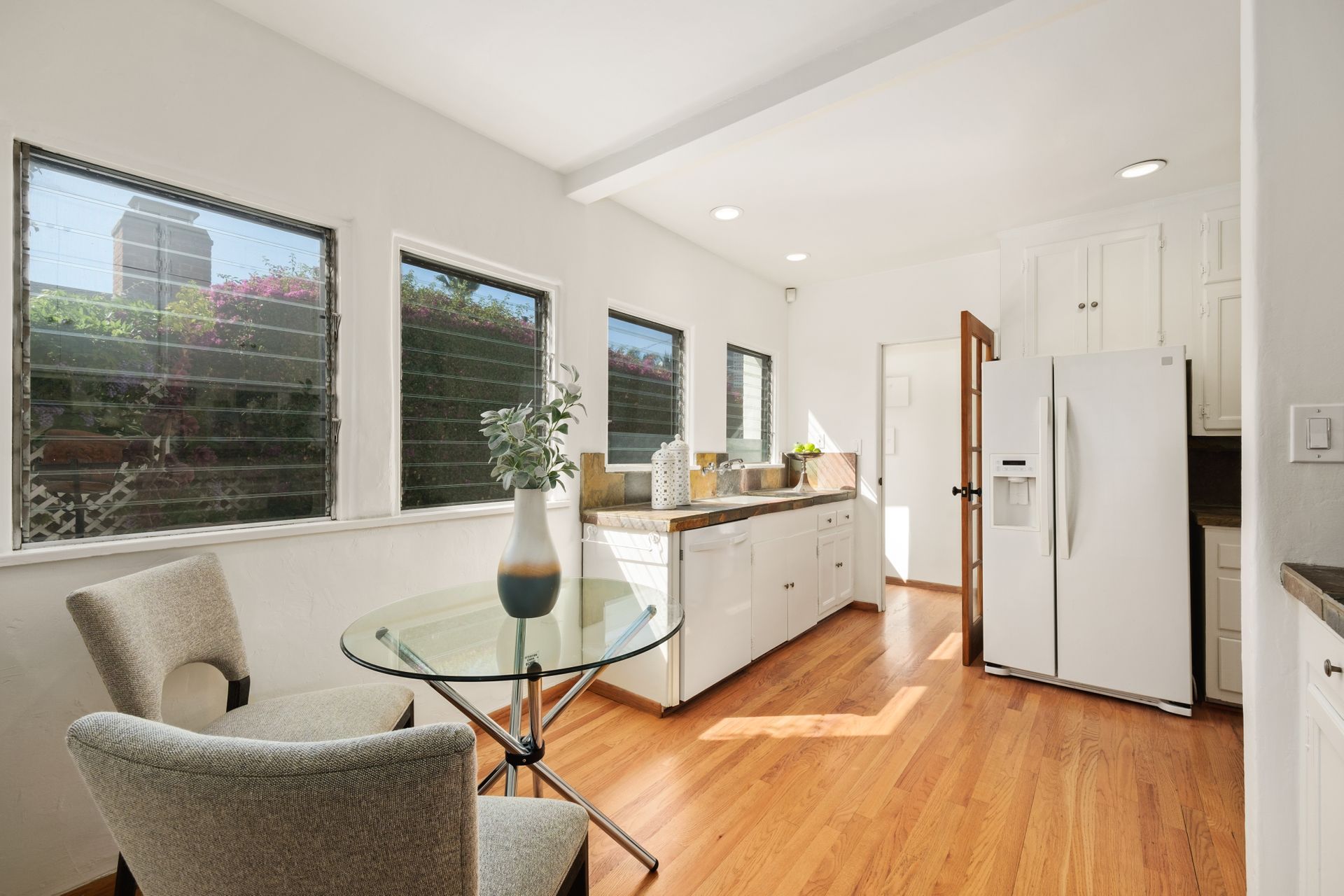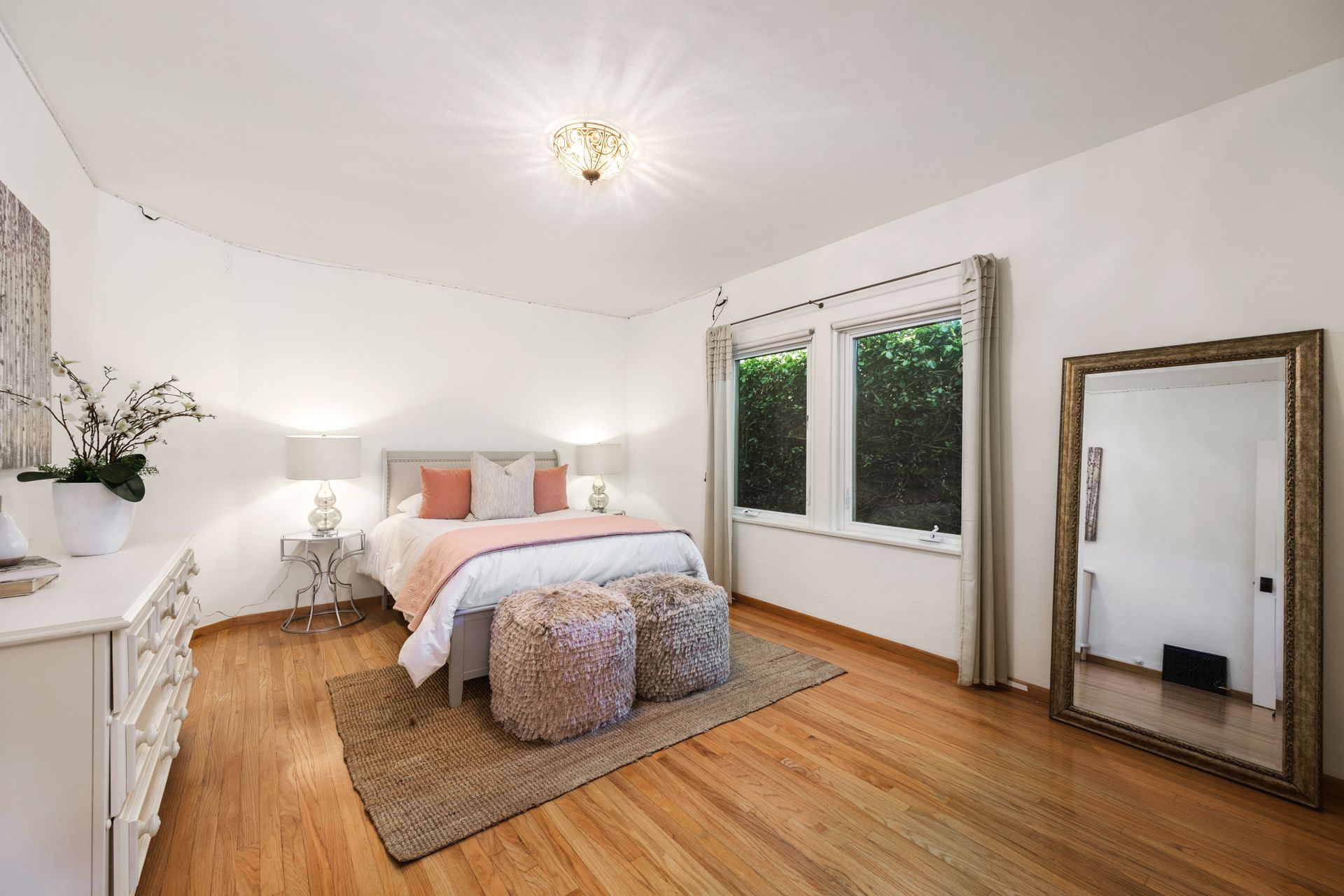 Warner Brothers Studios, Toluca Lake, Providence St. Joseph Medical Center, award winning schools, and parks with swimming and tennis recreation. As you enter this three bedroom, two full bath home you are swept away with the tranquil sounds of birds and fountains encased with Wisteria, Bougainvillea, a lemon tree and a lime tree. An exceptional open floor plan features a living room with smooth curved ceilings, a Spanish style fireplace. The dining area opens to a light and bright kitchen with a kitchen nook, slate countertops, dishwasher, refrigerator and a new professional Z-Line chef's gas range. Continue on to the stylish and spacious first bedroom with a walk-in closet, a spacious second bedroom/office/den with French doors that open to the private patio, fountain and wall of flowers. The large master suite is encased with views of the beautiful garden patio, fountain and flowers. The hallway leads to an en-suite bathroom with a shower/tub, and three spacious closets. A nicely-sized laundry room is located in the detached garage with lots of storage cabinets and utility sink. Other features of the home include wood floors throughout, HVAC, a wrought iron gate, water heater, and energy-saving appliances.
