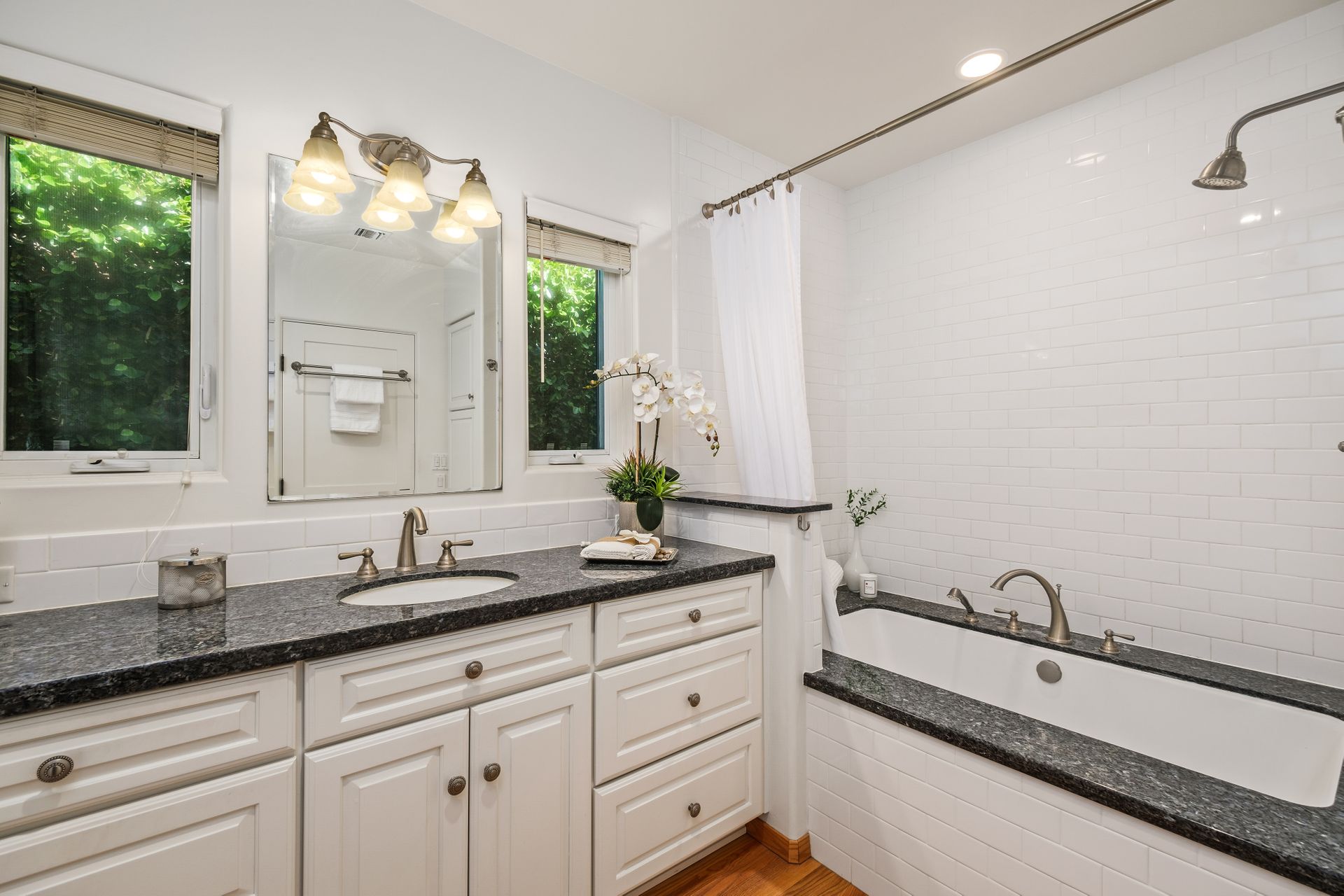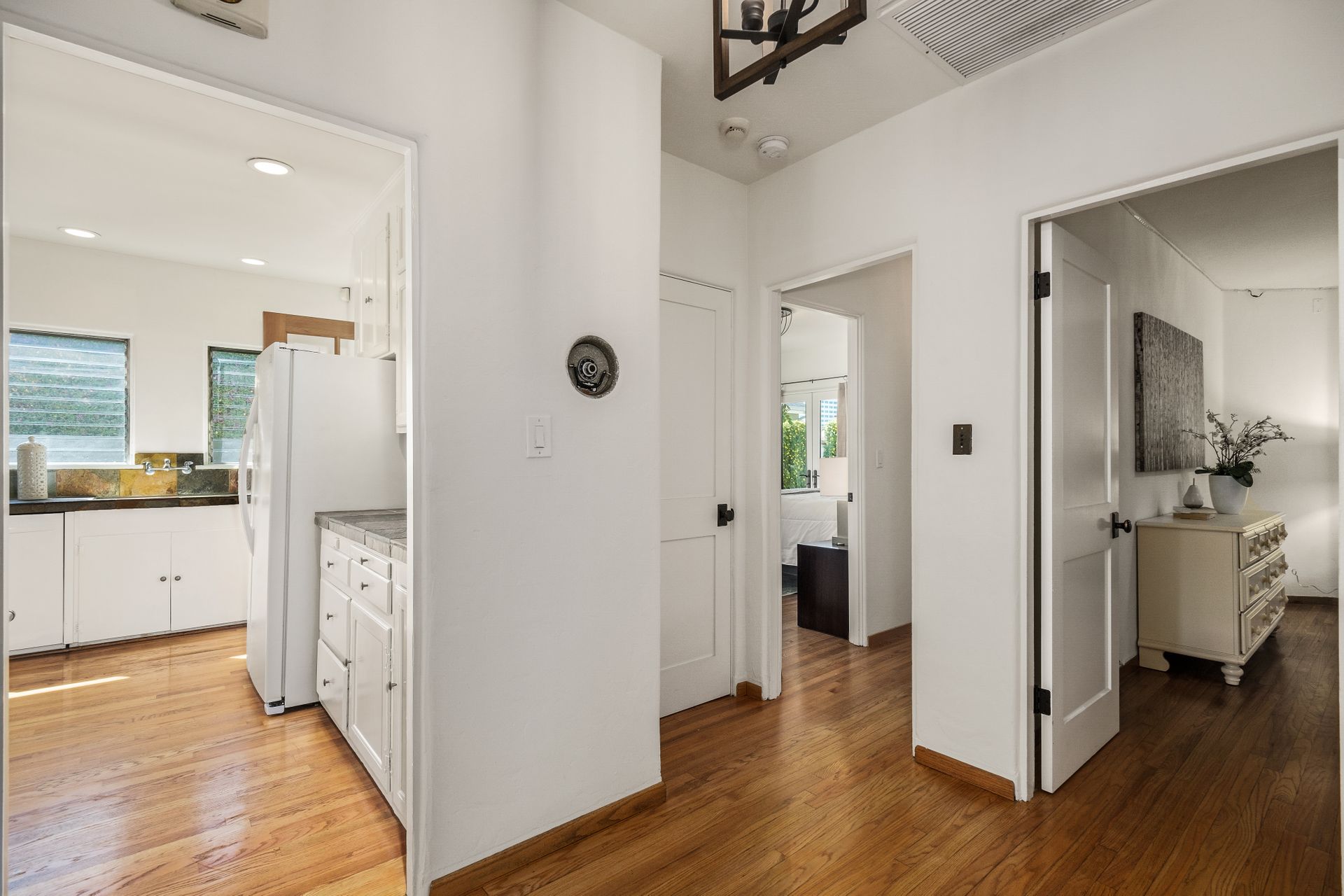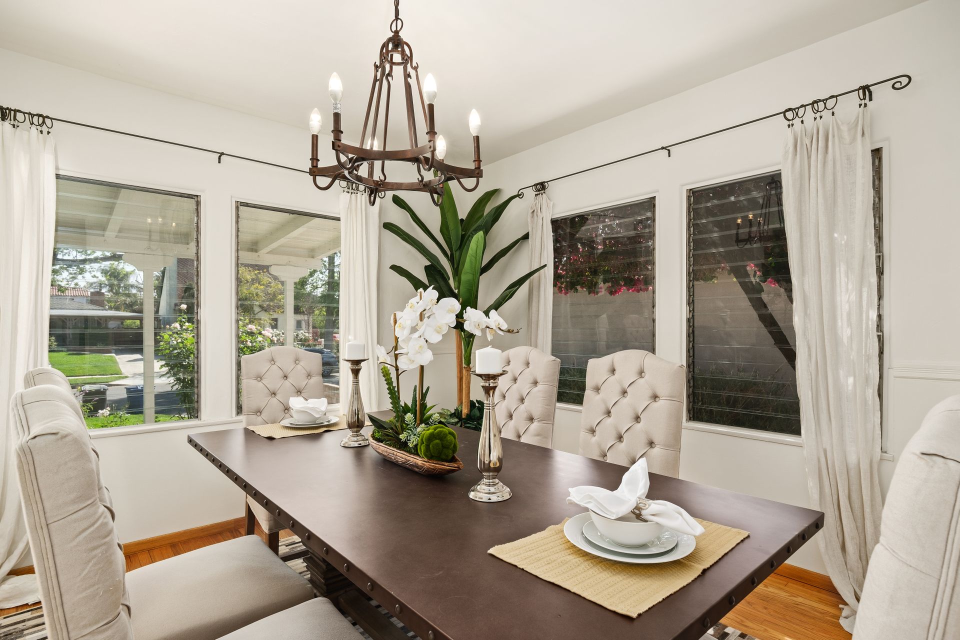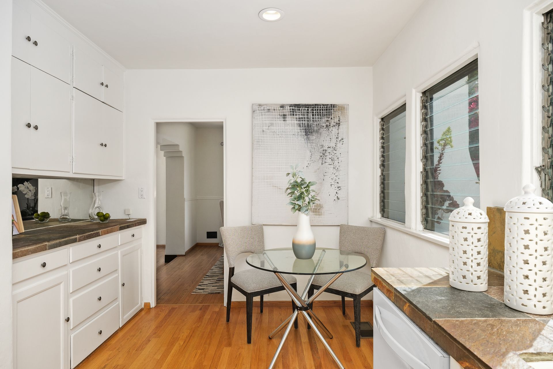 Warner Brothers Studios, Toluca Lake, Providence St. Joseph Medical Center, award winning schools, and parks with swimming and tennis recreation. As you enter this three bedroom, two full bath home you are swept away with the tranquil sounds of birds and fountains encased with Wisteria, Bougainvillea, a lemon tree and a lime tree. An exceptional open floor plan features a living room with smooth curved ceilings, a Spanish style fireplace. The dining area opens to a light and bright kitchen with a kitchen nook, slate countertops, dishwasher, refrigerator and a new professional Z-Line chef's gas range. Continue on to the stylish and spacious first bedroom with a walk-in closet, a spacious second bedroom/office/den with French doors that open to the private patio, fountain and wall of flowers. The large master suite is encased with views of the beautiful garden patio, fountain and flowers. The hallway leads to an en-suite bathroom with a shower/tub, and three spacious closets. A nicely-sized laundry room is located in the detached garage with lots of storage cabinets and utility sink. Other features of the home include wood floors throughout, HVAC, a wrought iron gate, water heater, and energy-saving appliances.