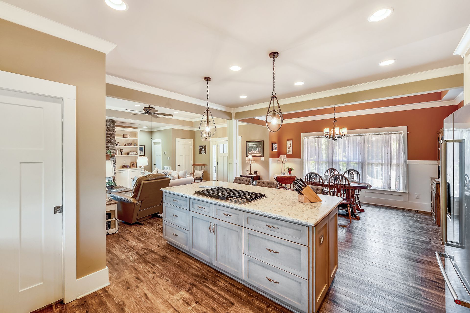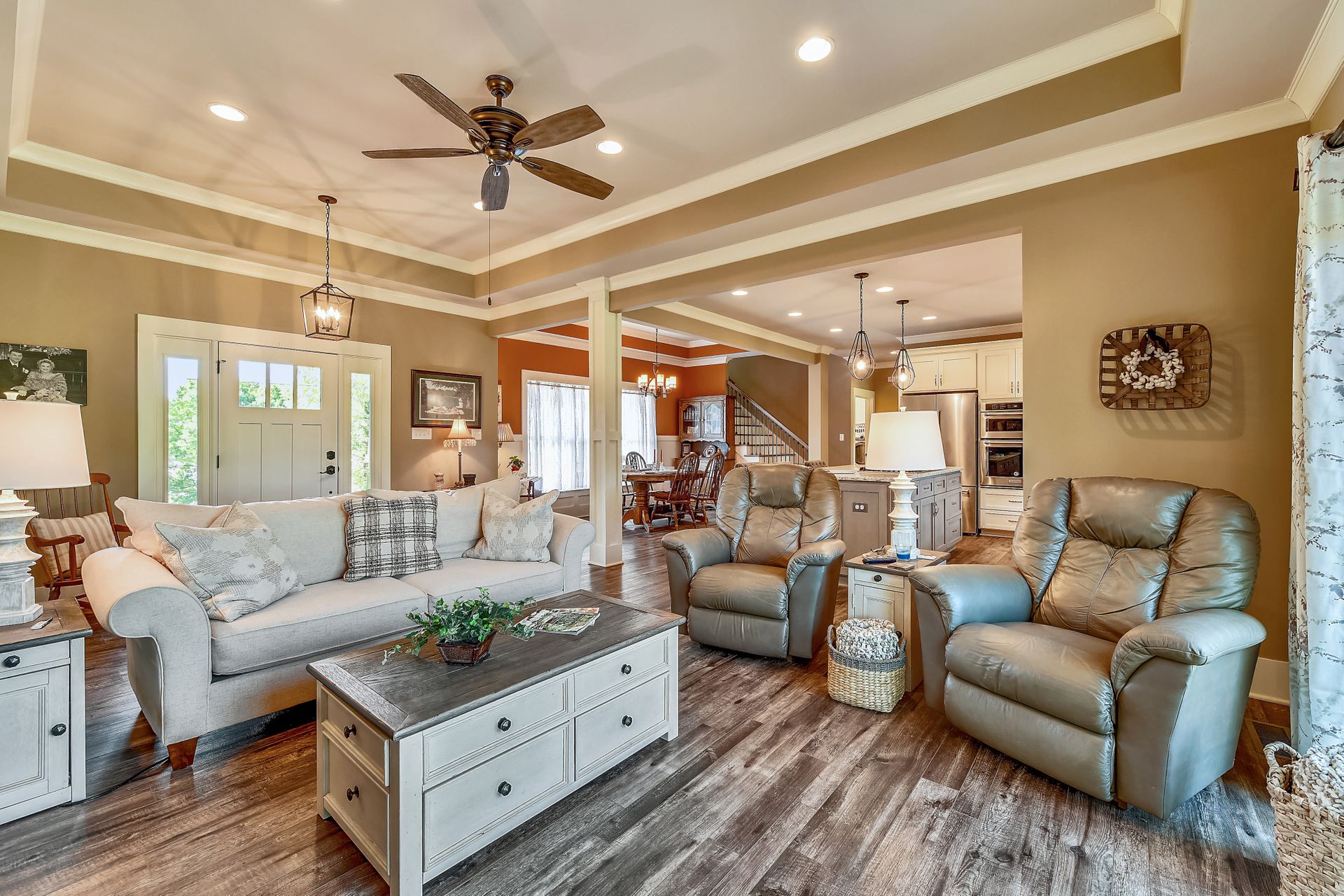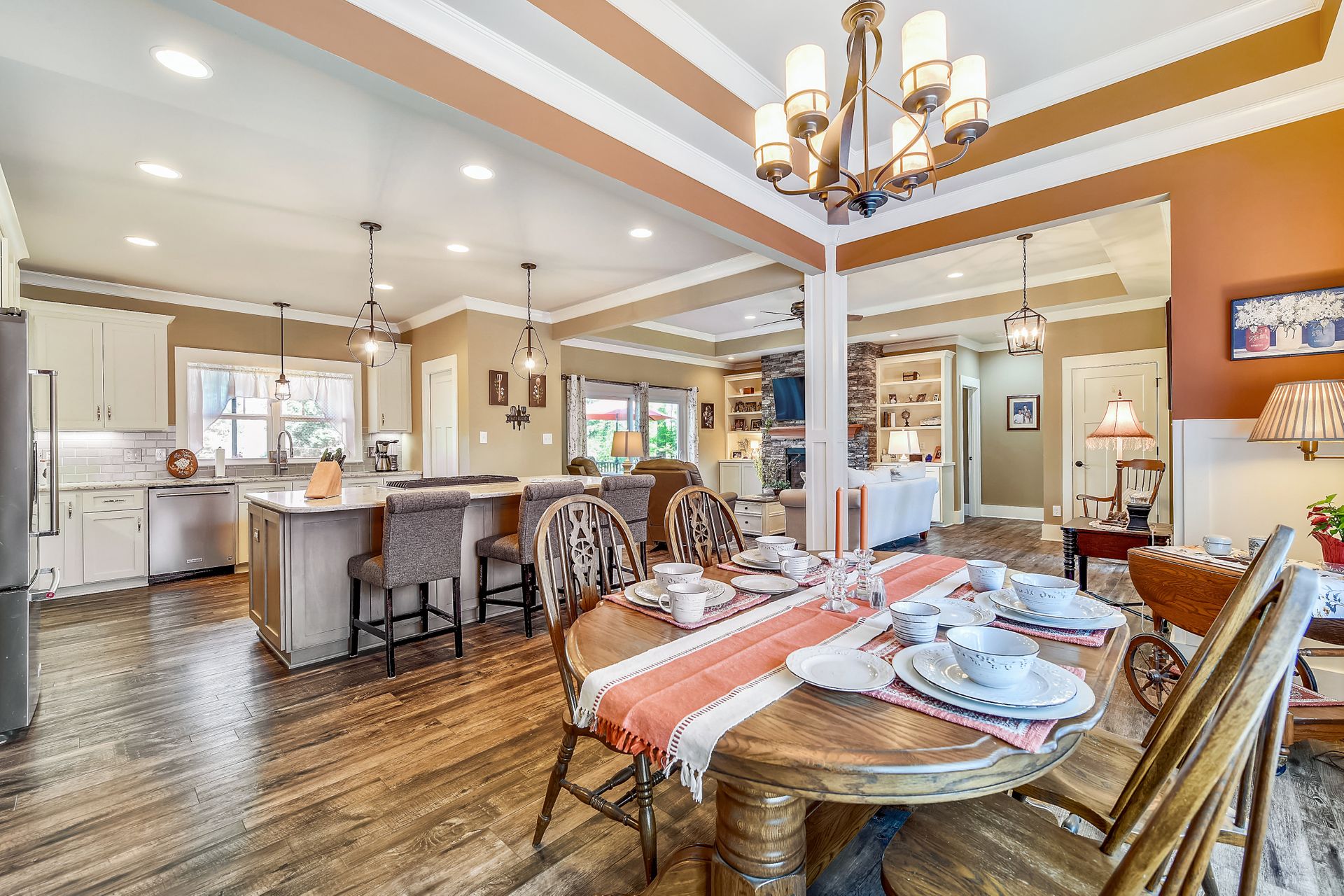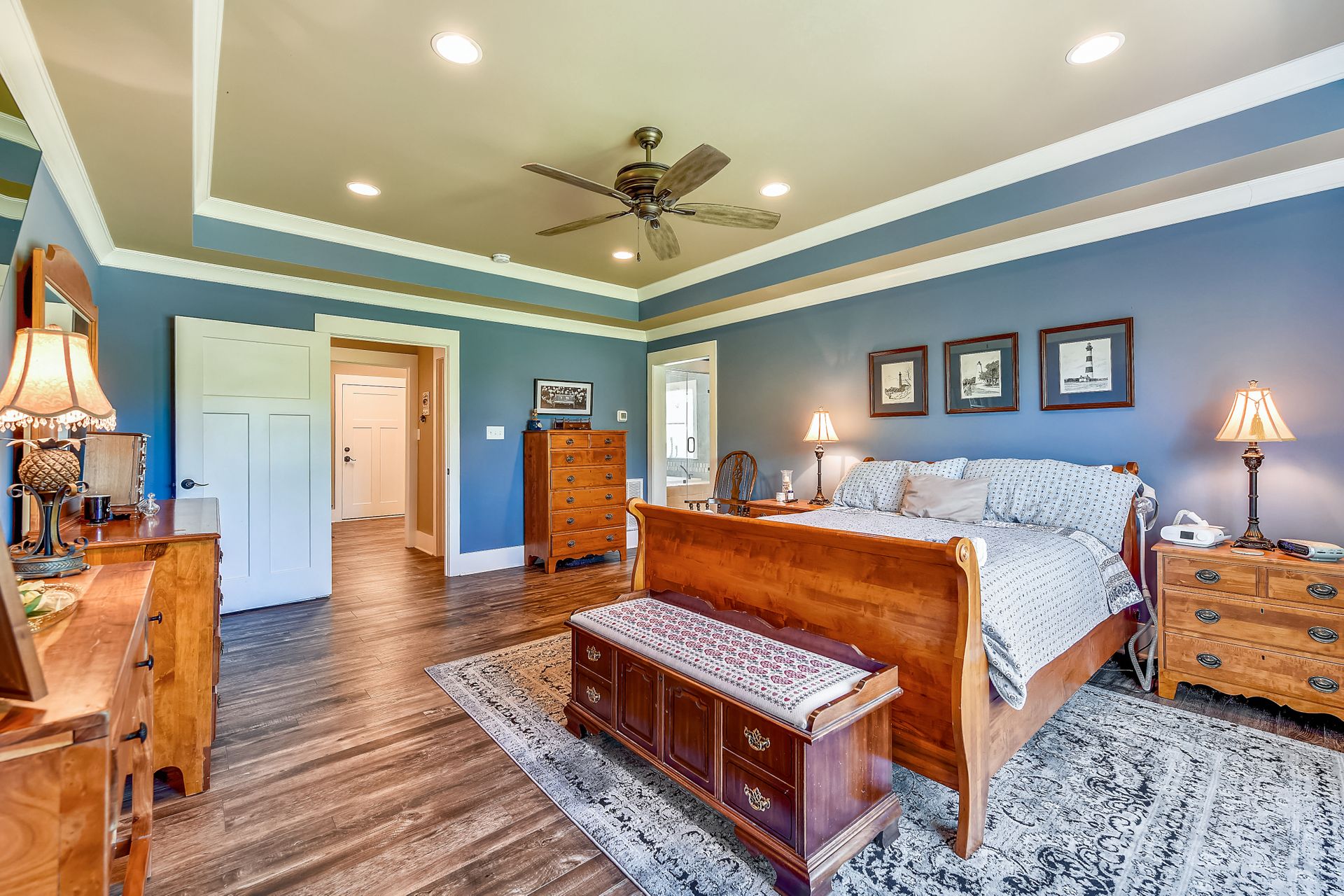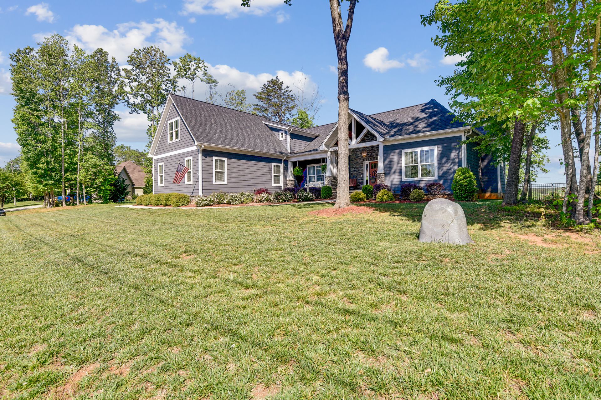 Custom-built craftsman style home with water views from both the front and back, sits on an approximate .69-acre lot with no HOA and no C & R’s. Open floorplan offers living room with gas fireplace with built-ins, recessed lighting and ceiling fan. Beautiful luxury vinyl plank throughout main level, lovely crown molding, eight-inch baseboards, lots of storage in kitchen with soft close drawers and cabinets with roll outs. See special feature page for all the upgrades. Five-burner gas cooktop in Island, stainless steel appliances and huge casual dining area. Three bedrooms and three and one-half bathrooms with bonus room upstairs. Oversized insulated garage. Screened back porch with access from primary bedroom. Relaxing front porch great for watching the sunrise, while the back deck with a paved patio and fire pit is the ideal spot to watch the sun set. The second floor bonus room offers a lot of storage and two rooms with access to a full bathroom to use however fits your needs.