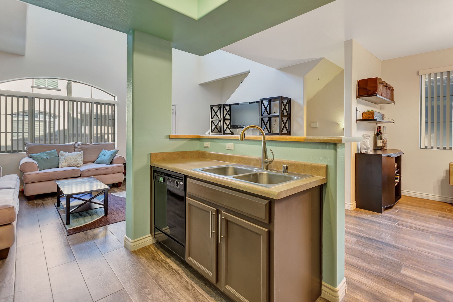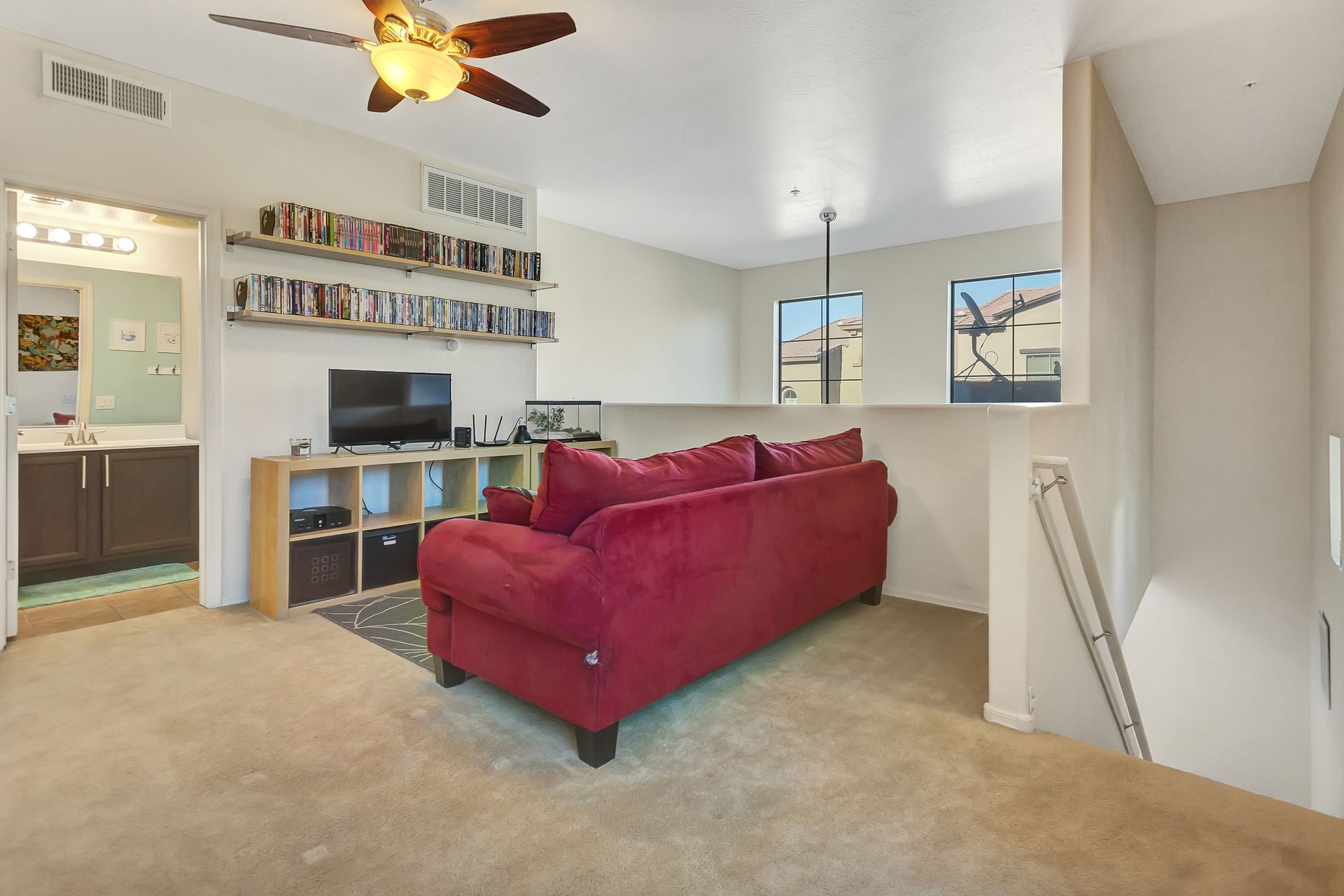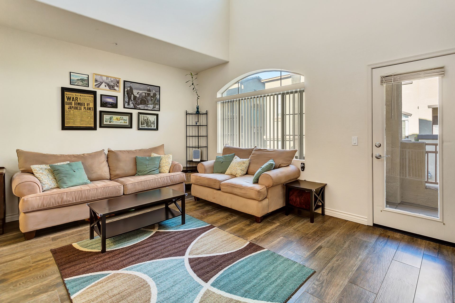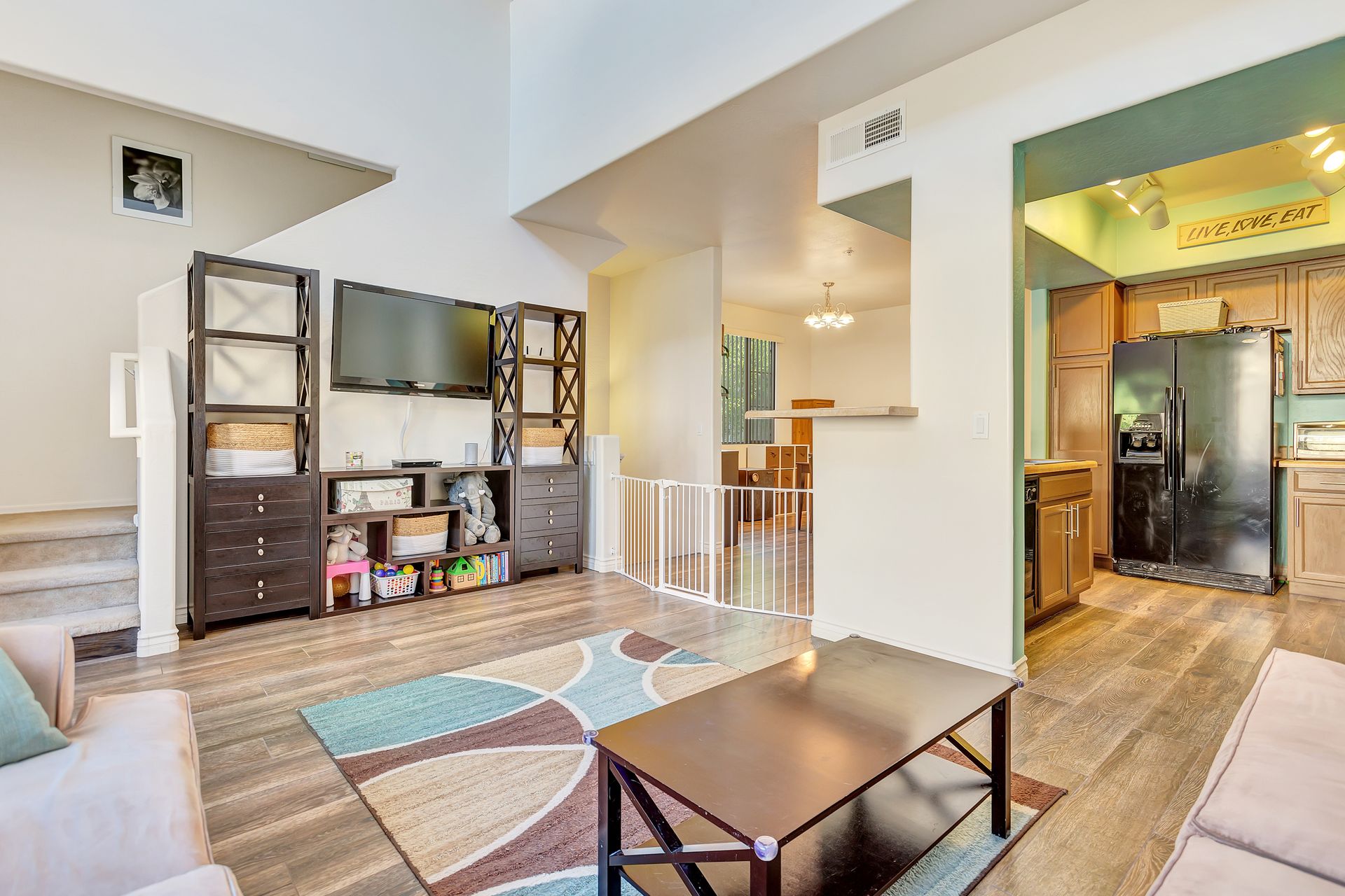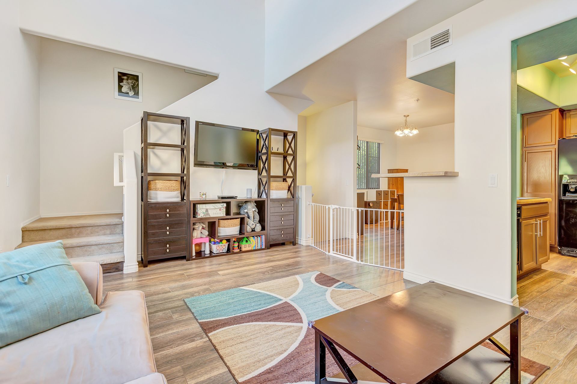 HARD TO FIND FOUR-BEDROOM, THREE-BATH, TWO-CAR GARAGE TRI-LEVEL CONDO LOCATED IN NORTH PHOENIX! The spacious and bright lay out features a large en-suite on the first level and soaring ceilings on the second level. Notice all the rich looking hardwood and tile flooring as you head upstairs to the second level that showcases an open concept floor plan with a kitchen, a living room area, dining, a raised kitchen bar and the master bedroom. All the cabinetry throughout has been refinished and hardware added. Fixtures and ceiling fans have been updated. Enjoy your balcony off the second level. The master bedroom-bath has a double sink vanity, a super-sized shower, and a large walk-in closet. The third level features a spacious loft area, a third bath, and two bedrooms including one with a walk-in closet. The community has a pool and a barbecue covered area. You are in a great location as you will be close to the 17 and 101 freeway.