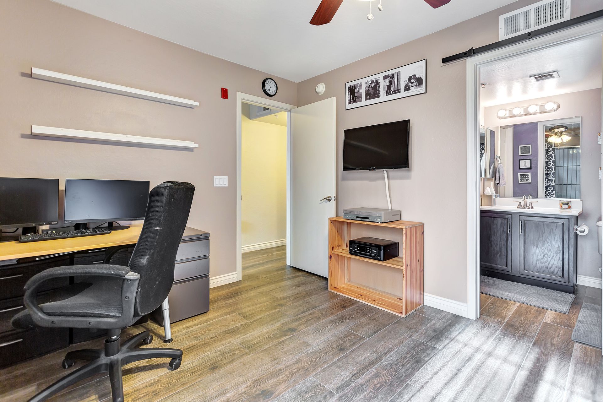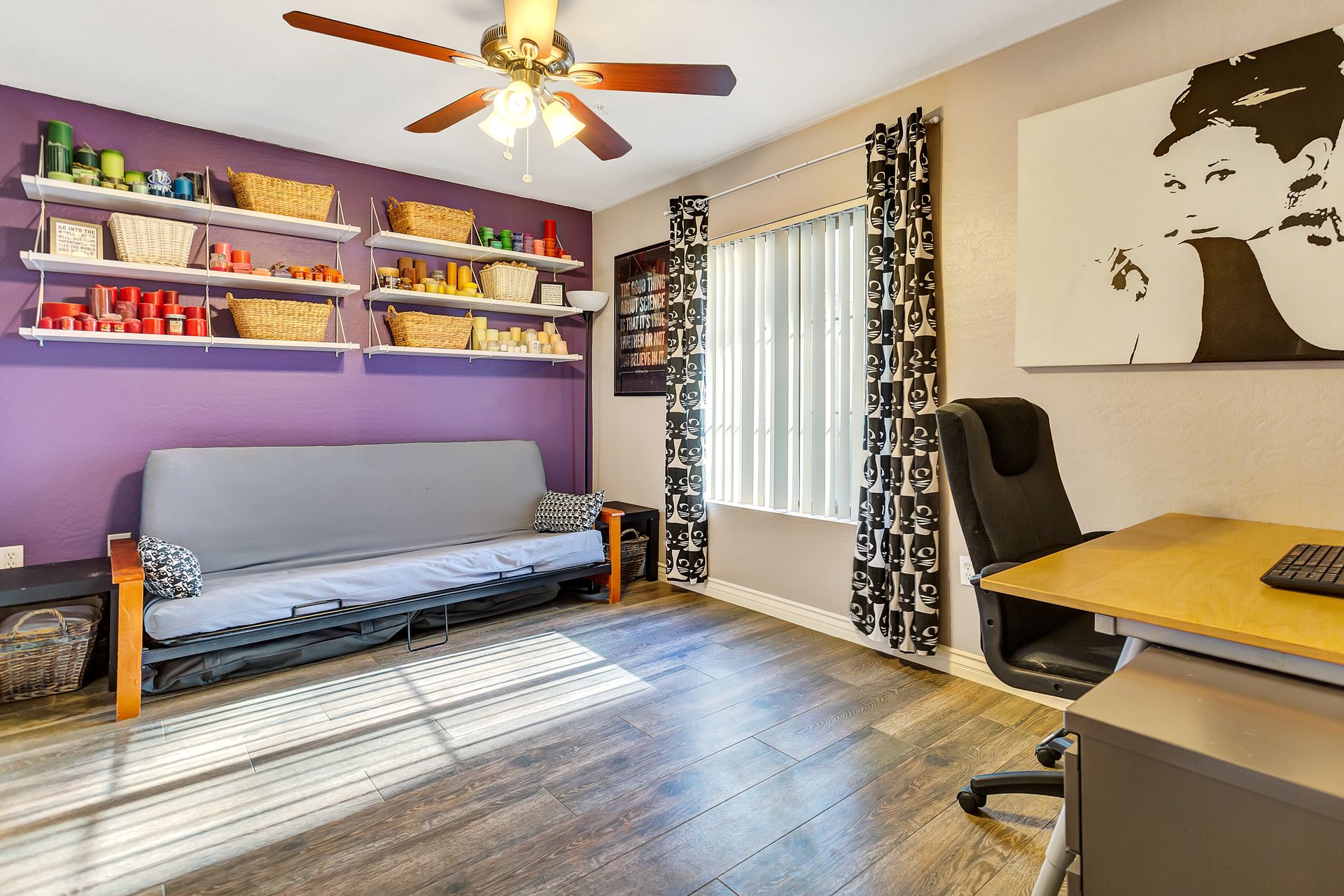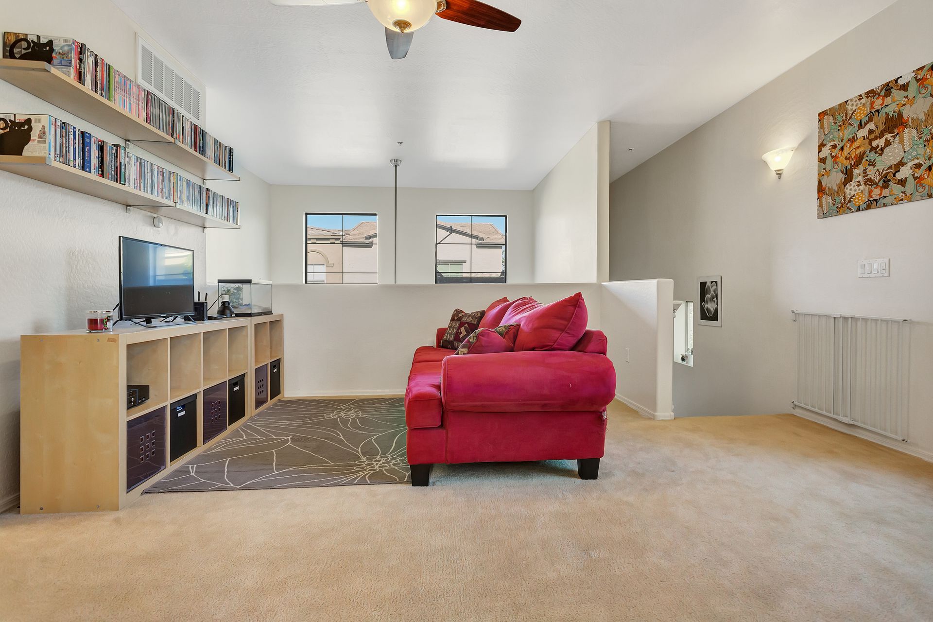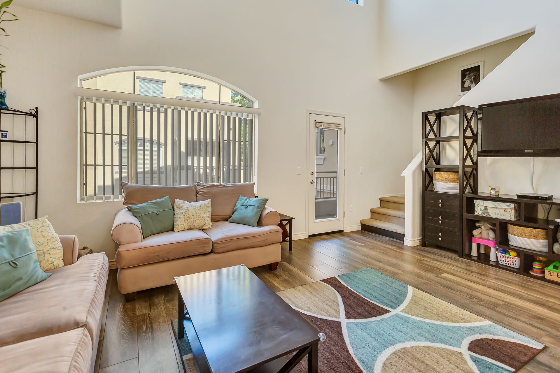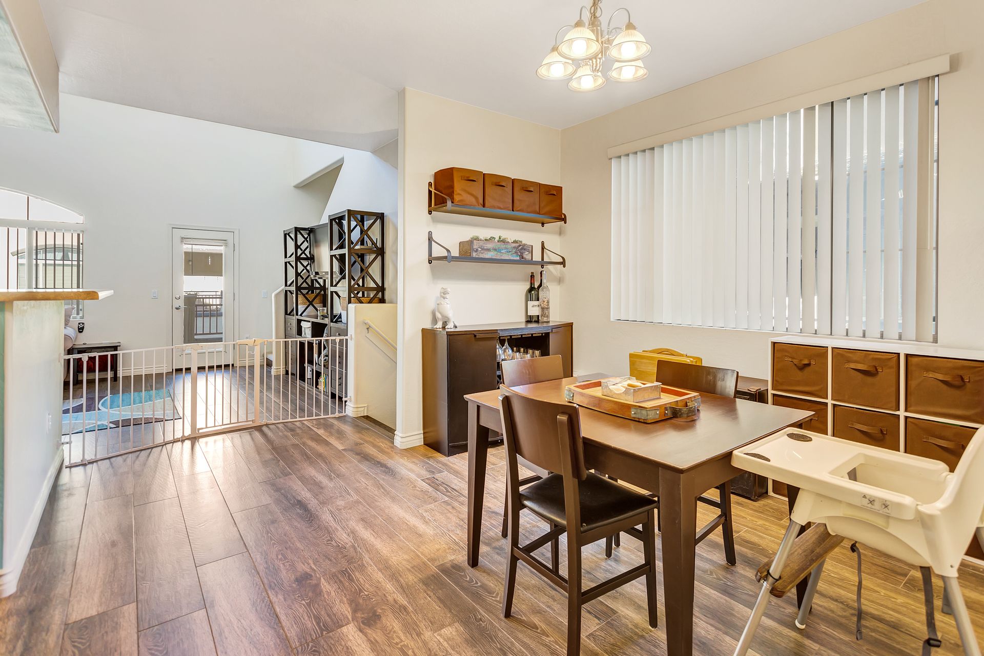 HARD TO FIND FOUR-BEDROOM, THREE-BATH, TWO-CAR GARAGE TRI-LEVEL CONDO LOCATED IN NORTH PHOENIX! The spacious and bright lay out features a large en-suite on the first level and soaring ceilings on the second level. Notice all the rich looking hardwood and tile flooring as you head upstairs to the second level that showcases an open concept floor plan with a kitchen, a living room area, dining, a raised kitchen bar and the master bedroom. All the cabinetry throughout has been refinished and hardware added. Fixtures and ceiling fans have been updated. Enjoy your balcony off the second level. The master bedroom-bath has a double sink vanity, a super-sized shower, and a large walk-in closet. The third level features a spacious loft area, a third bath, and two bedrooms including one with a walk-in closet. The community has a pool and a barbecue covered area. You are in a great location as you will be close to the 17 and 101 freeway.