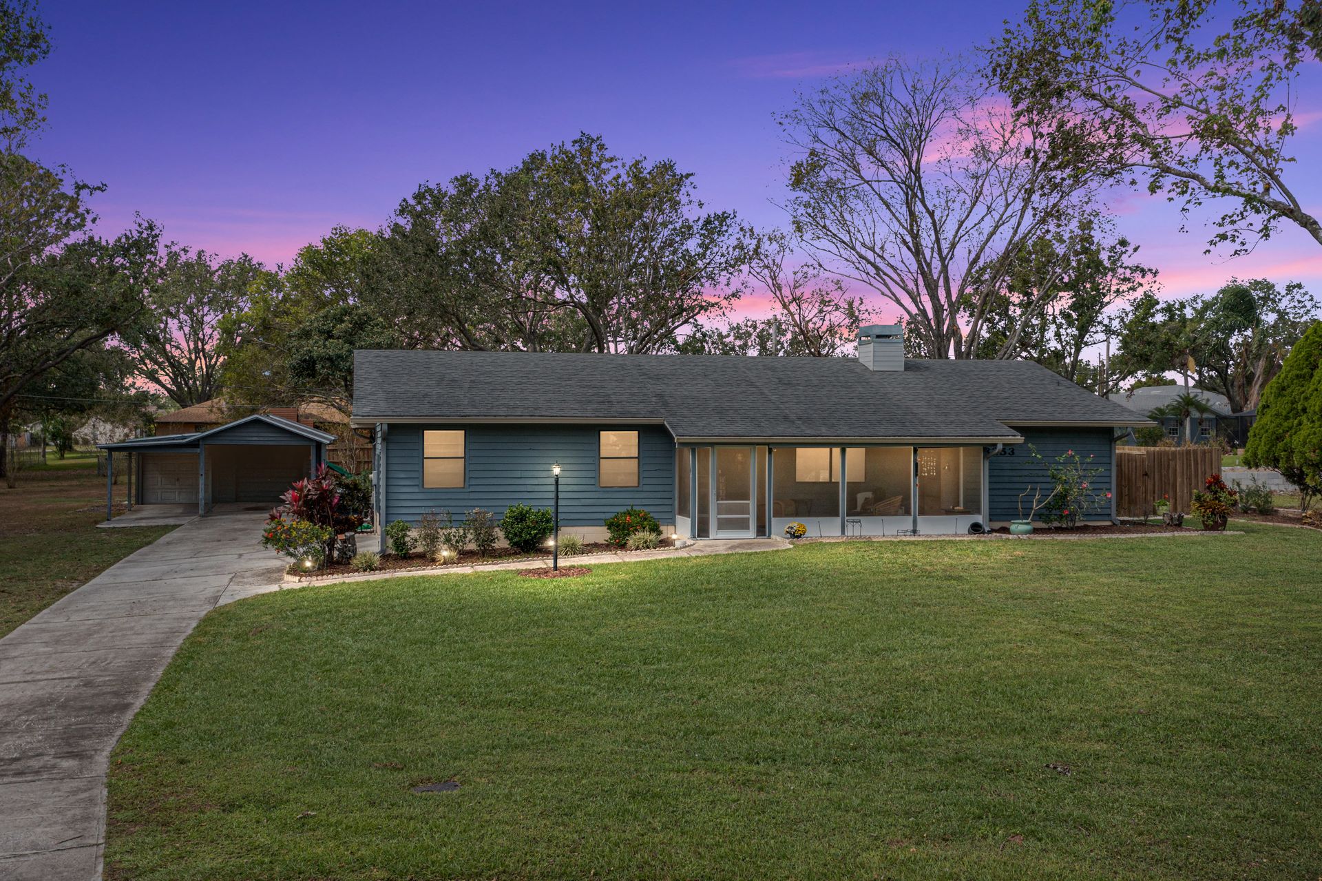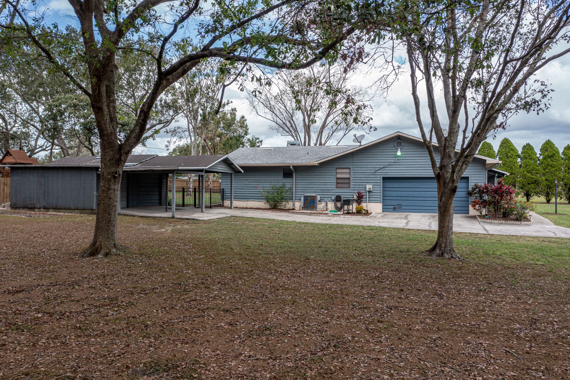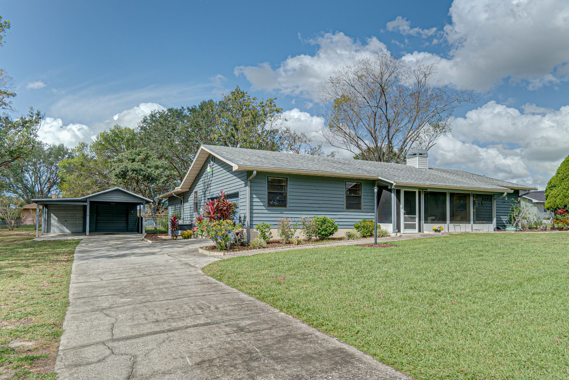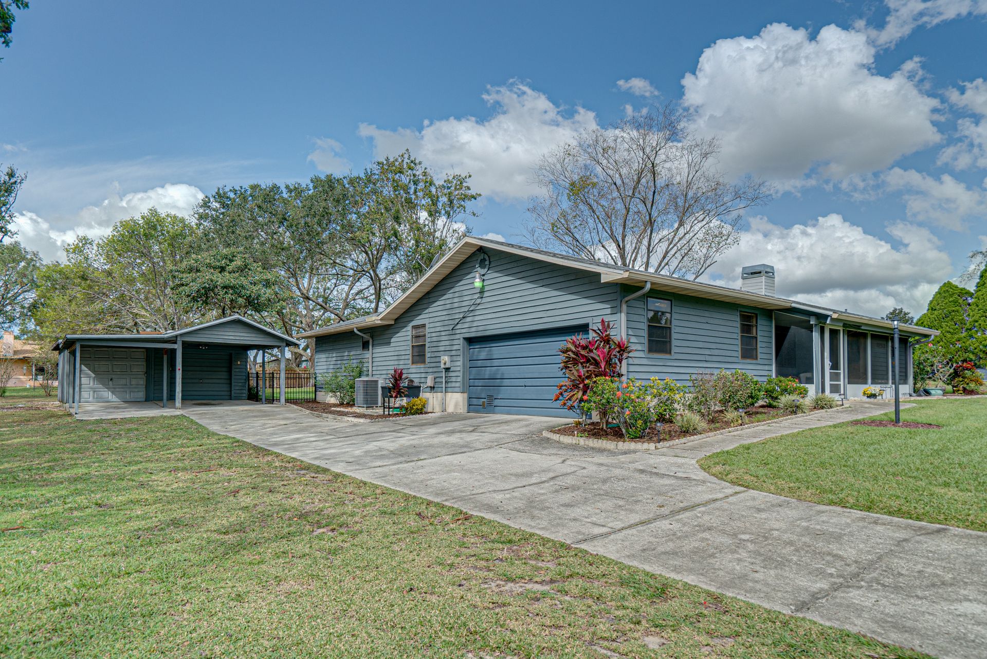 Nestled in a cul-de-sac in the highly-desirable, George Jenkins school district just off Clubhouse Road, this three-bed, three-bath home with four garage spaces is ready for you to make your mark! Approaching the front door is a sidewalk lined with mulched plant beds and a lush green lawn. The front porch is screened and covered, oversized with ceiling fans for enjoying a relaxing night after a long day. The front door opens into a foyer with the living room to the right. It wraps around the wall into the dining room which is now setup as a home office. The split bedroom plan has the primary on this side of the home with a fully-updated en suite featuring dual sinks and a glass-enclosed modern shower, a spacious walk-in closet and a set of sliding glass doors that lead out to the Florida room! The kitchen is efficient and open; a set of lower cabinets and countertop are all that separates it from the dining space and family room. The family room is anchored by a large fireplace, bringing both warmth and a strong focal point into the room. On the other side of the house are the two guest bedrooms and full bath. There's an inside utility room setup for a washer and dryer with a utility sink, and even setup with a toilet and shower for use as an extra bathroom if needed while entertaining or during an overnight stay. The previously mentioned Florida room has several designated spaces, a dining area, seating area and more. Utilize this to become whatever you would like it to be; a flexible space ready for you to find your own use! On a one-acre lot with no HOA, bring your RV, boat, golf carts or other recreational toys. Tons of storage with the secondary detached garage and workshop; you could even convert it to a hobby or recreational space! You truly need to see this property to realize what it brings to the table. Schedule your private showing today to make it yours!