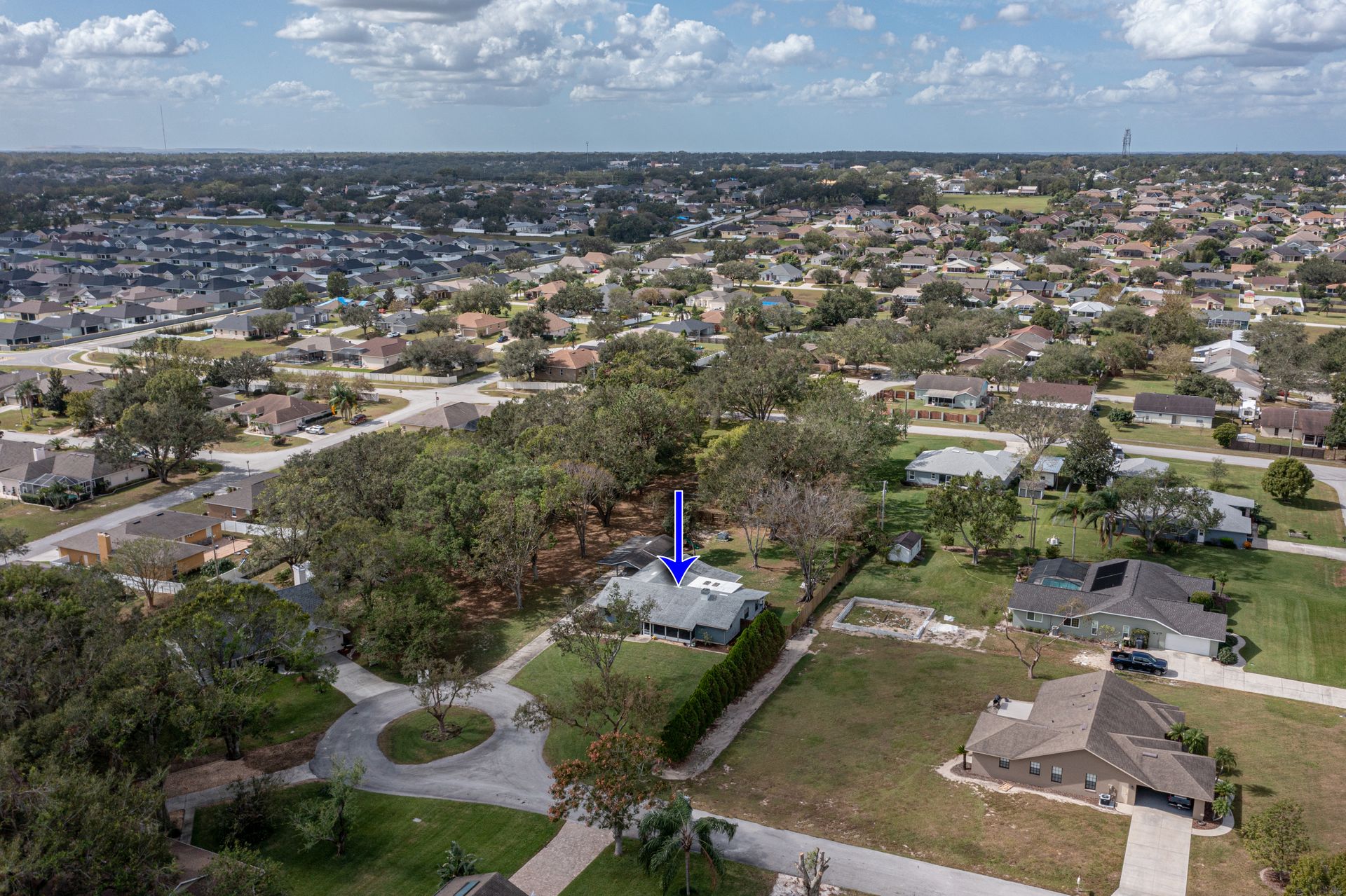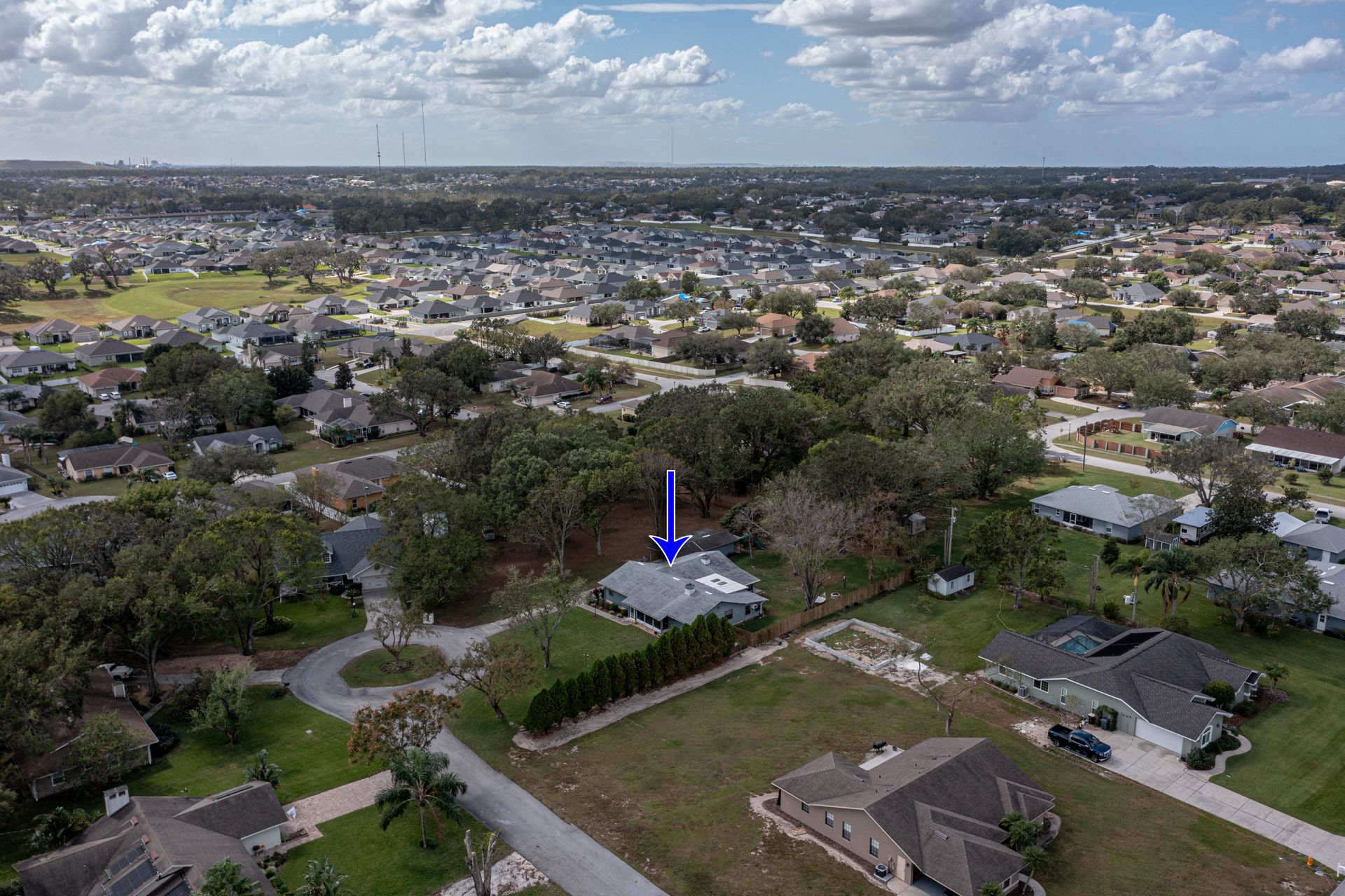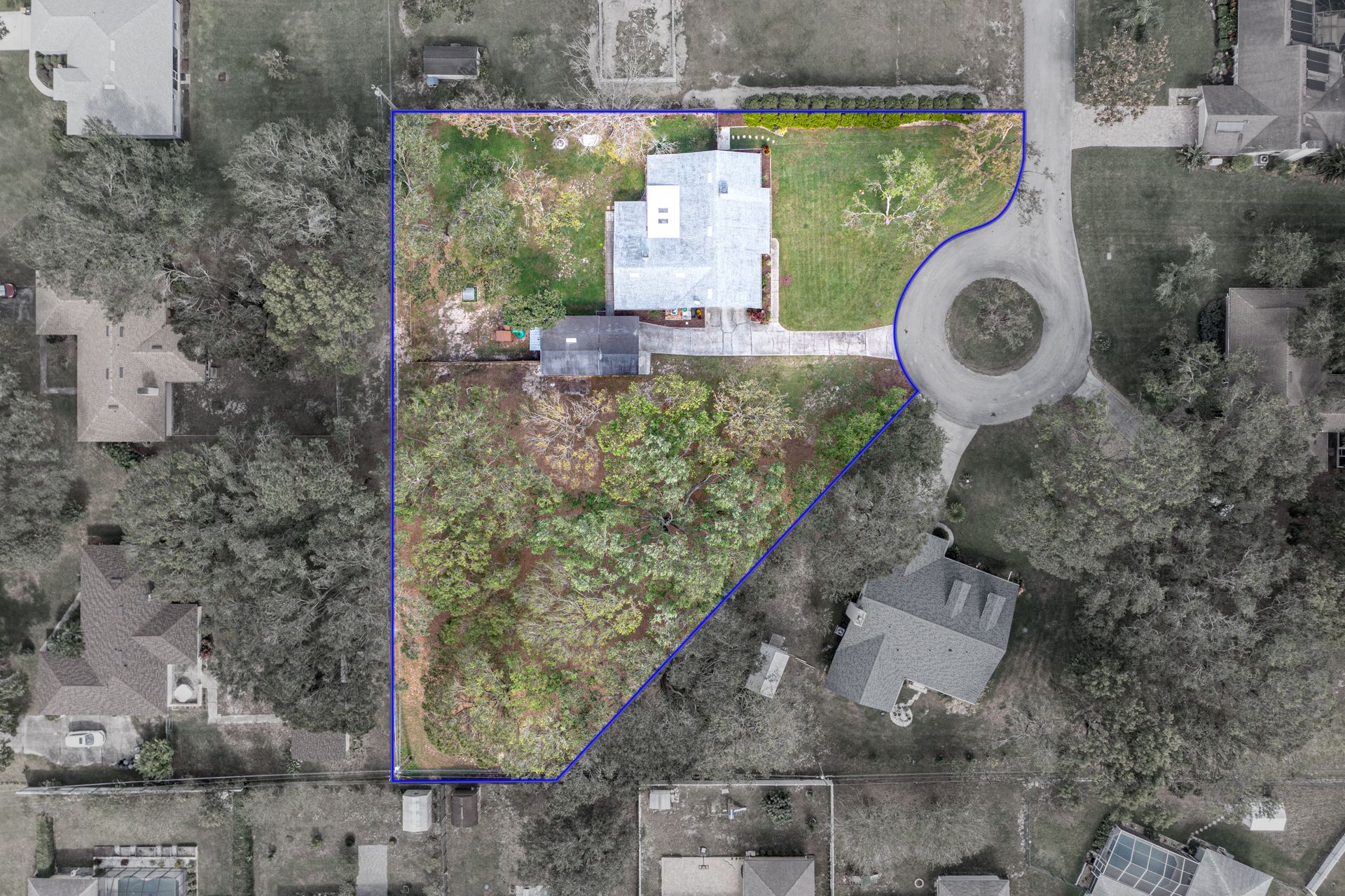 Nestled in a cul-de-sac in the highly-desirable, George Jenkins school district just off Clubhouse Road, this three-bed, three-bath home with four garage spaces is ready for you to make your mark! Approaching the front door is a sidewalk lined with mulched plant beds and a lush green lawn. The front porch is screened and covered, oversized with ceiling fans for enjoying a relaxing night after a long day. The front door opens into a foyer with the living room to the right. It wraps around the wall into the dining room which is now setup as a home office. The split bedroom plan has the primary on this side of the home with a fully-updated en suite featuring dual sinks and a glass-enclosed modern shower, a spacious walk-in closet and a set of sliding glass doors that lead out to the Florida room! The kitchen is efficient and open; a set of lower cabinets and countertop are all that separates it from the dining space and family room. The family room is anchored by a large fireplace, bringing both warmth and a strong focal point into the room. On the other side of the house are the two guest bedrooms and full bath. There's an inside utility room setup for a washer and dryer with a utility sink, and even setup with a toilet and shower for use as an extra bathroom if needed while entertaining or during an overnight stay. The previously mentioned Florida room has several designated spaces, a dining area, seating area and more. Utilize this to become whatever you would like it to be; a flexible space ready for you to find your own use! On a one-acre lot with no HOA, bring your RV, boat, golf carts or other recreational toys. Tons of storage with the secondary detached garage and workshop; you could even convert it to a hobby or recreational space! You truly need to see this property to realize what it brings to the table. Schedule your private showing today to make it yours!