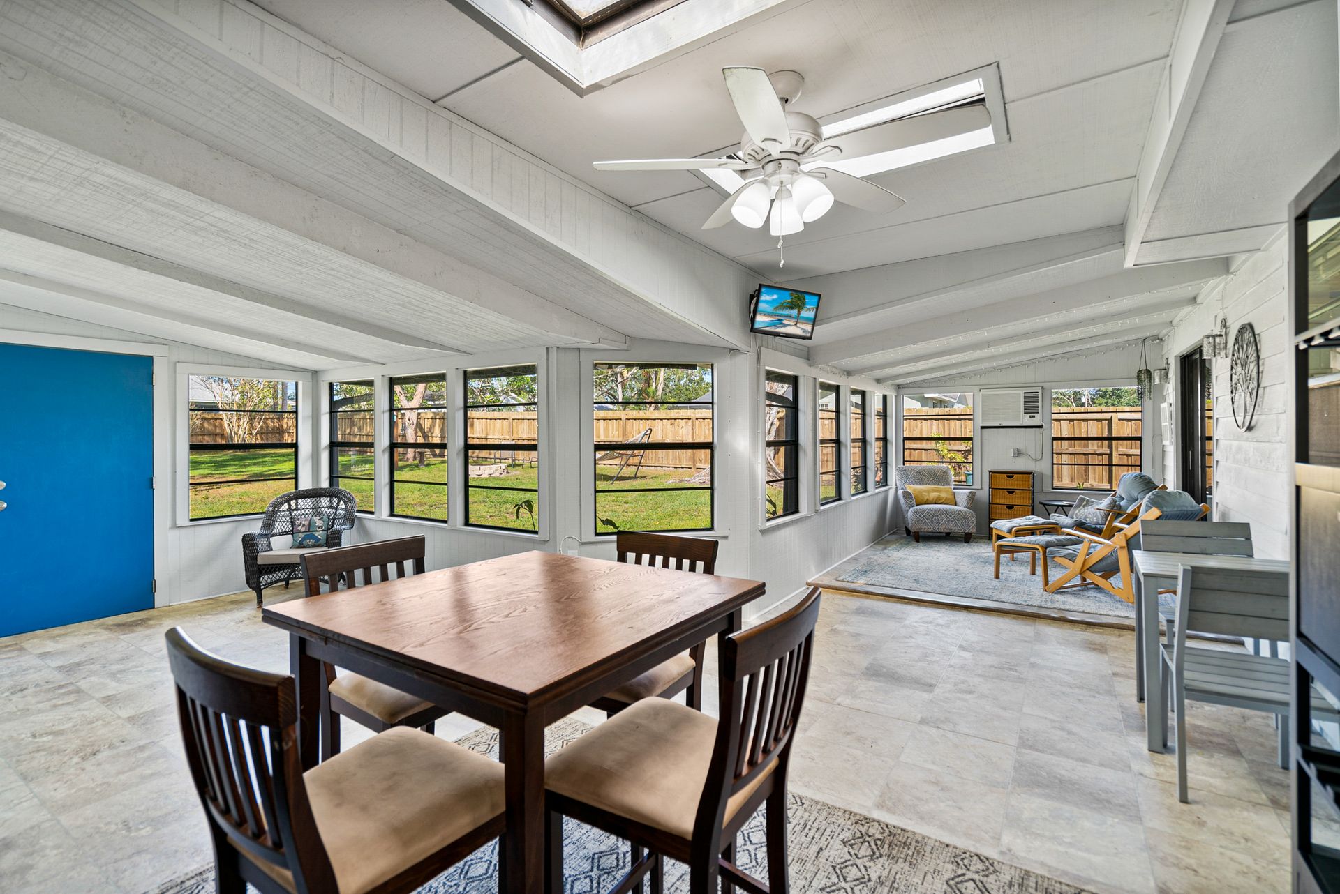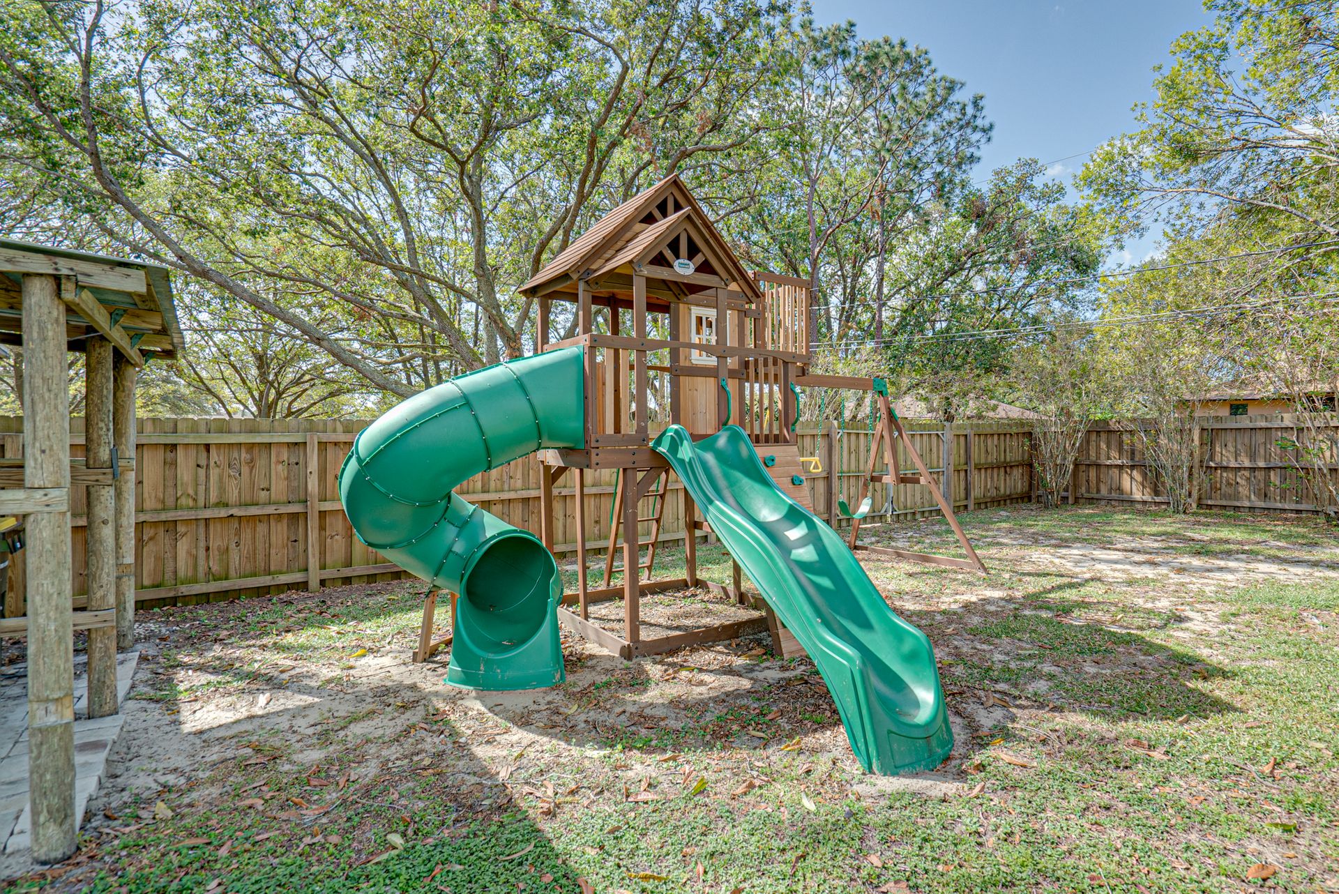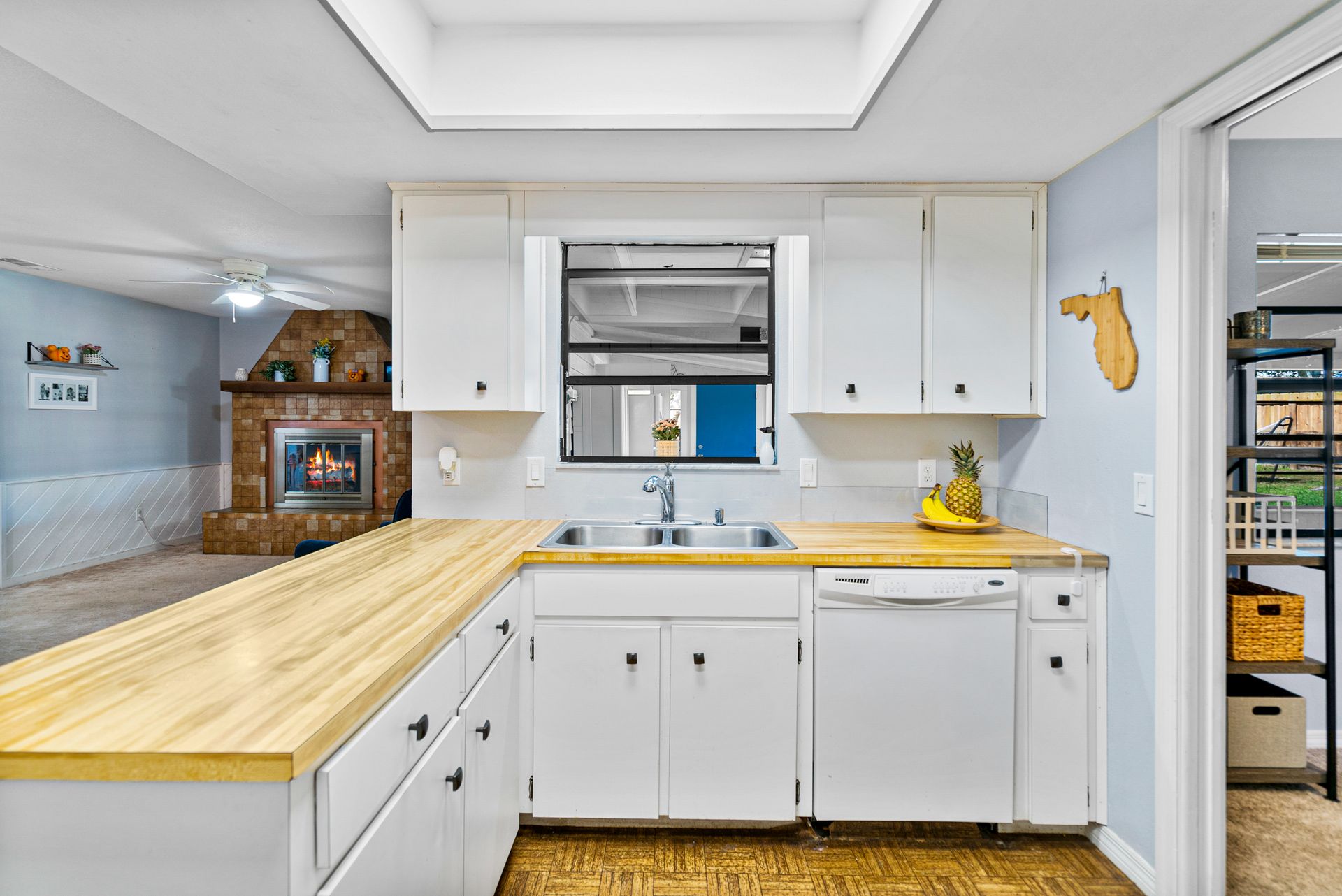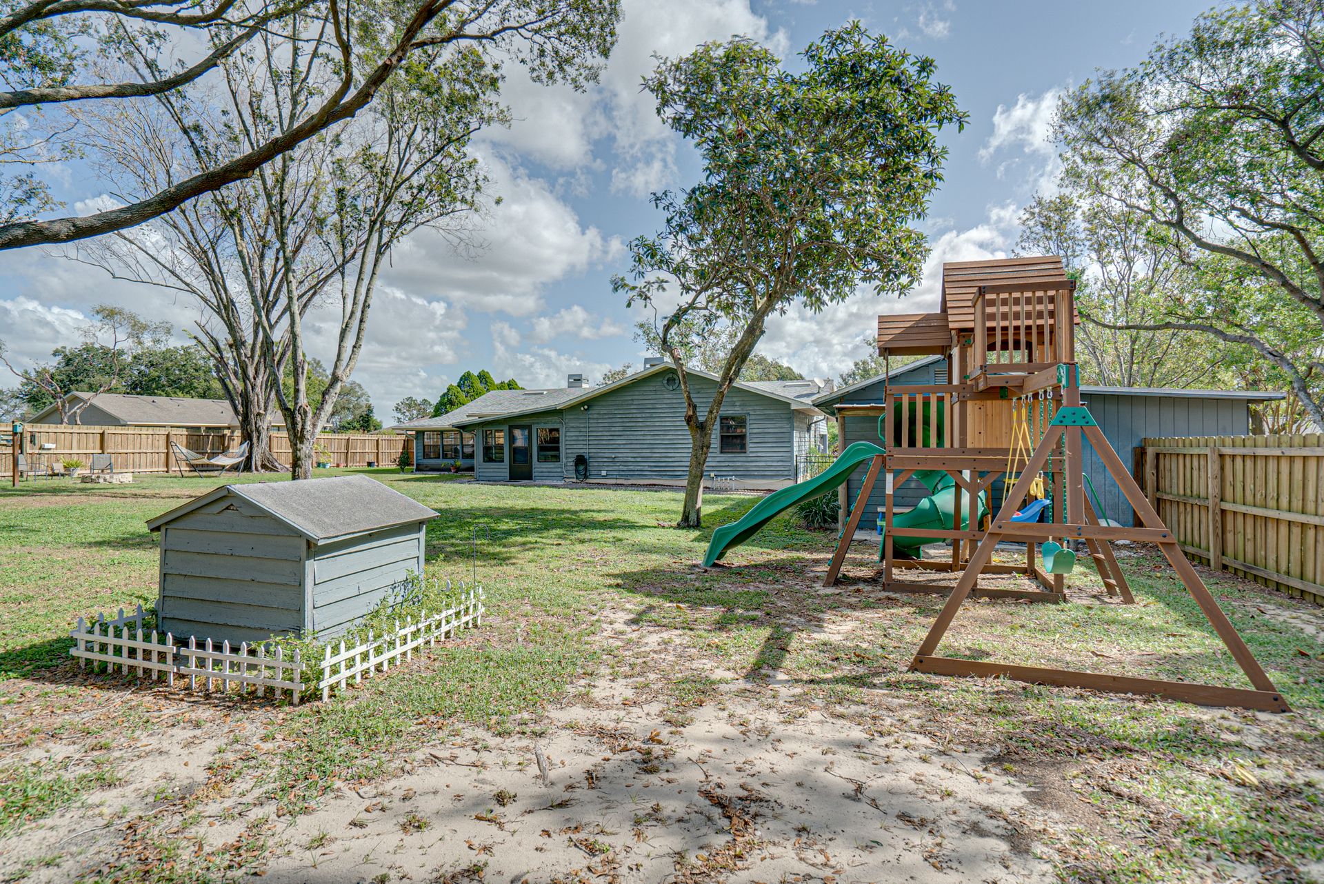 Nestled in a cul-de-sac in the highly-desirable, George Jenkins school district just off Clubhouse Road, this three-bed, three-bath home with four garage spaces is ready for you to make your mark! Approaching the front door is a sidewalk lined with mulched plant beds and a lush green lawn. The front porch is screened and covered, oversized with ceiling fans for enjoying a relaxing night after a long day. The front door opens into a foyer with the living room to the right. It wraps around the wall into the dining room which is now setup as a home office. The split bedroom plan has the primary on this side of the home with a fully-updated en suite featuring dual sinks and a glass-enclosed modern shower, a spacious walk-in closet and a set of sliding glass doors that lead out to the Florida room! The kitchen is efficient and open; a set of lower cabinets and countertop are all that separates it from the dining space and family room. The family room is anchored by a large fireplace, bringing both warmth and a strong focal point into the room. On the other side of the house are the two guest bedrooms and full bath. There's an inside utility room setup for a washer and dryer with a utility sink, and even setup with a toilet and shower for use as an extra bathroom if needed while entertaining or during an overnight stay. The previously mentioned Florida room has several designated spaces, a dining area, seating area and more. Utilize this to become whatever you would like it to be; a flexible space ready for you to find your own use! On a one-acre lot with no HOA, bring your RV, boat, golf carts or other recreational toys. Tons of storage with the secondary detached garage and workshop; you could even convert it to a hobby or recreational space! You truly need to see this property to realize what it brings to the table. Schedule your private showing today to make it yours!