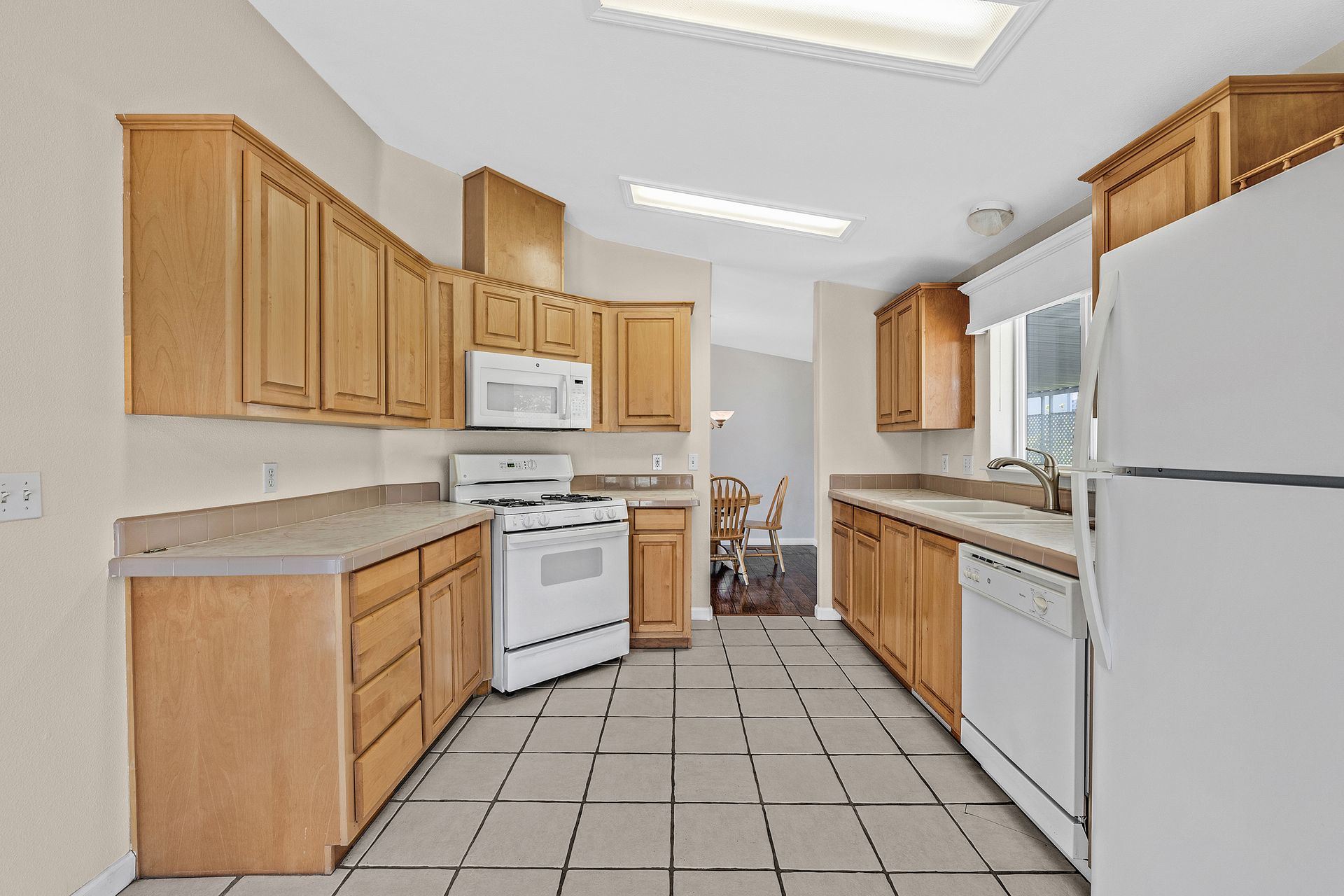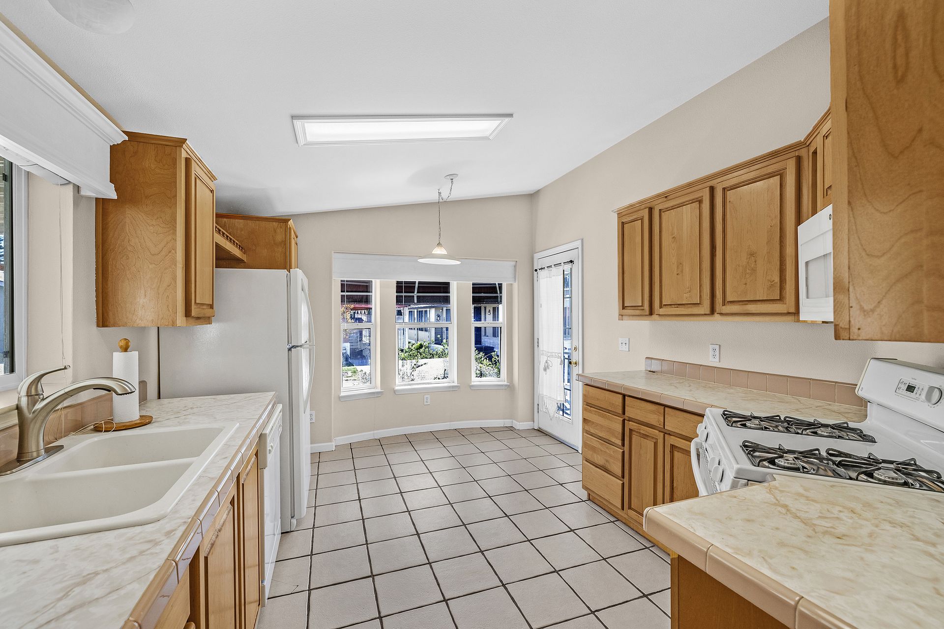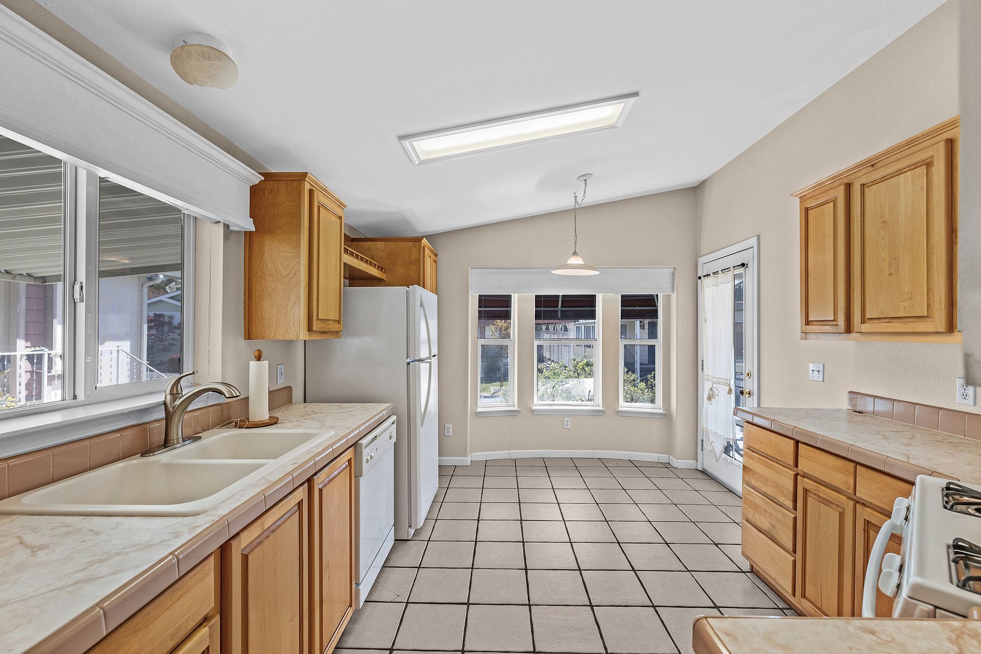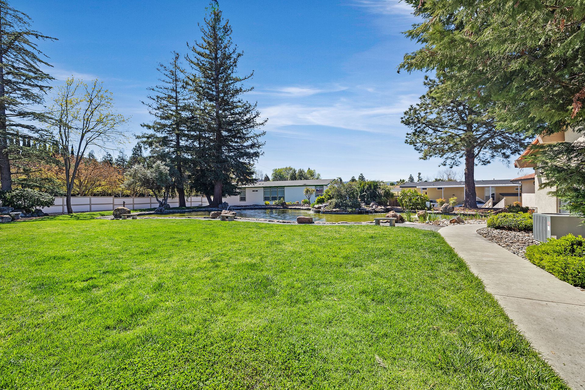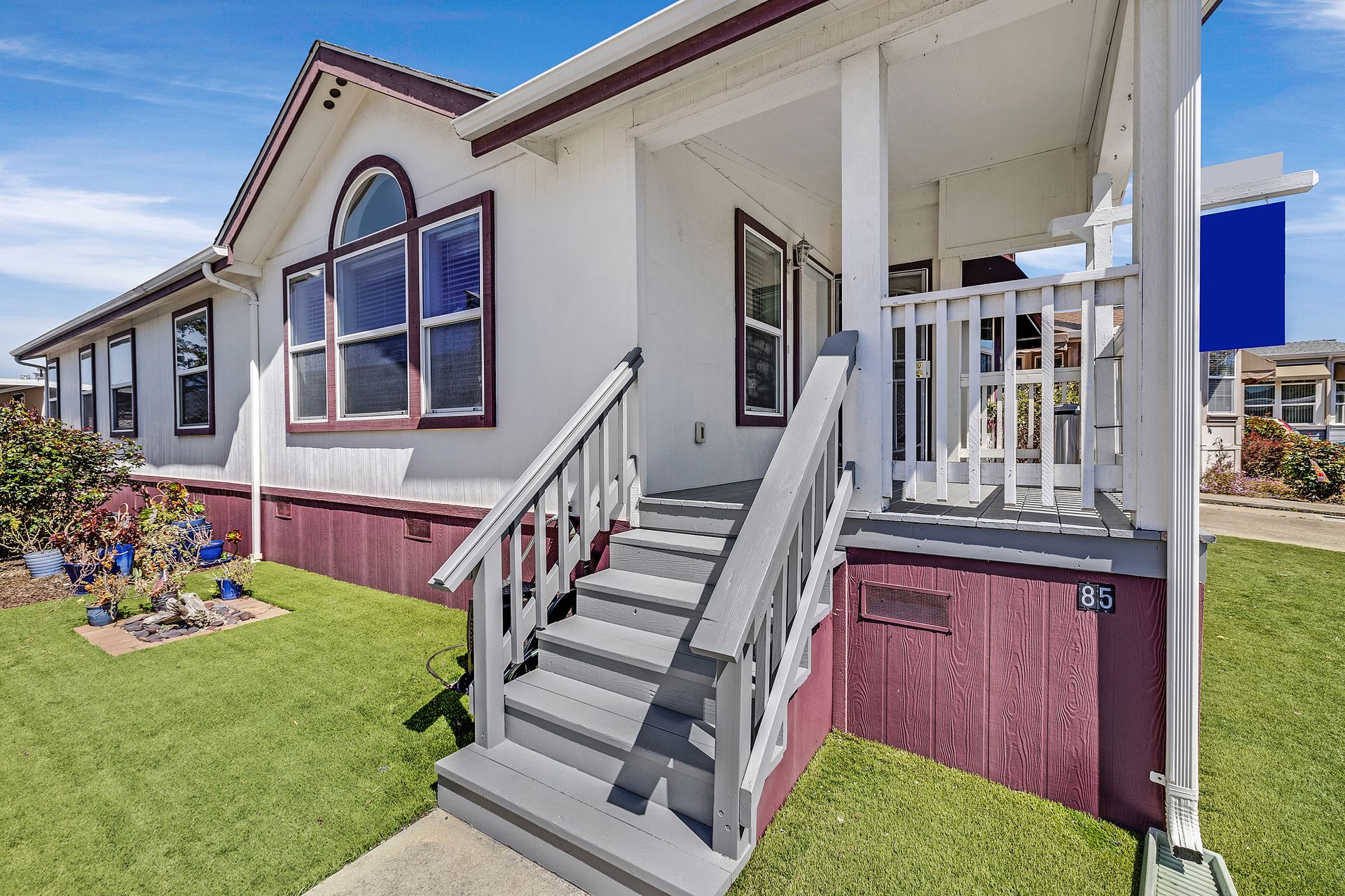 Located in desirable Vineyard Estates (senior 55+ park), this home beckons you with its timeless charm and modern conveniences. Built in 2003, this "Karsten" home offers approximately 1,308 square feet, with an inviting covered porch, spacious living room/dining room, a kitchen with a gas range and lots of cabinets and a space for a table to enjoy your morning coffee or tea. The home has high ceilings and dual-paned windows throughout, complemented by wood-look vinyl flooring that adds both elegance and durability. The three bedrooms have newer carpeting and the entire home has been freshly painted. In the primary suite, luxuriate in the spa-like ambiance of the soaking tub, accompanied by dual sinks and a stall shower, ideal for unwinding after a long day. The walk-in closet provides ample storage space. Enjoy an inside laundry with cabinetry and access to the carport with tandem parking. The park offers pool/spa, walking trails by a lovely pond and a clubhouse with places to relax, enjoy a game of pool or ping pong or read.