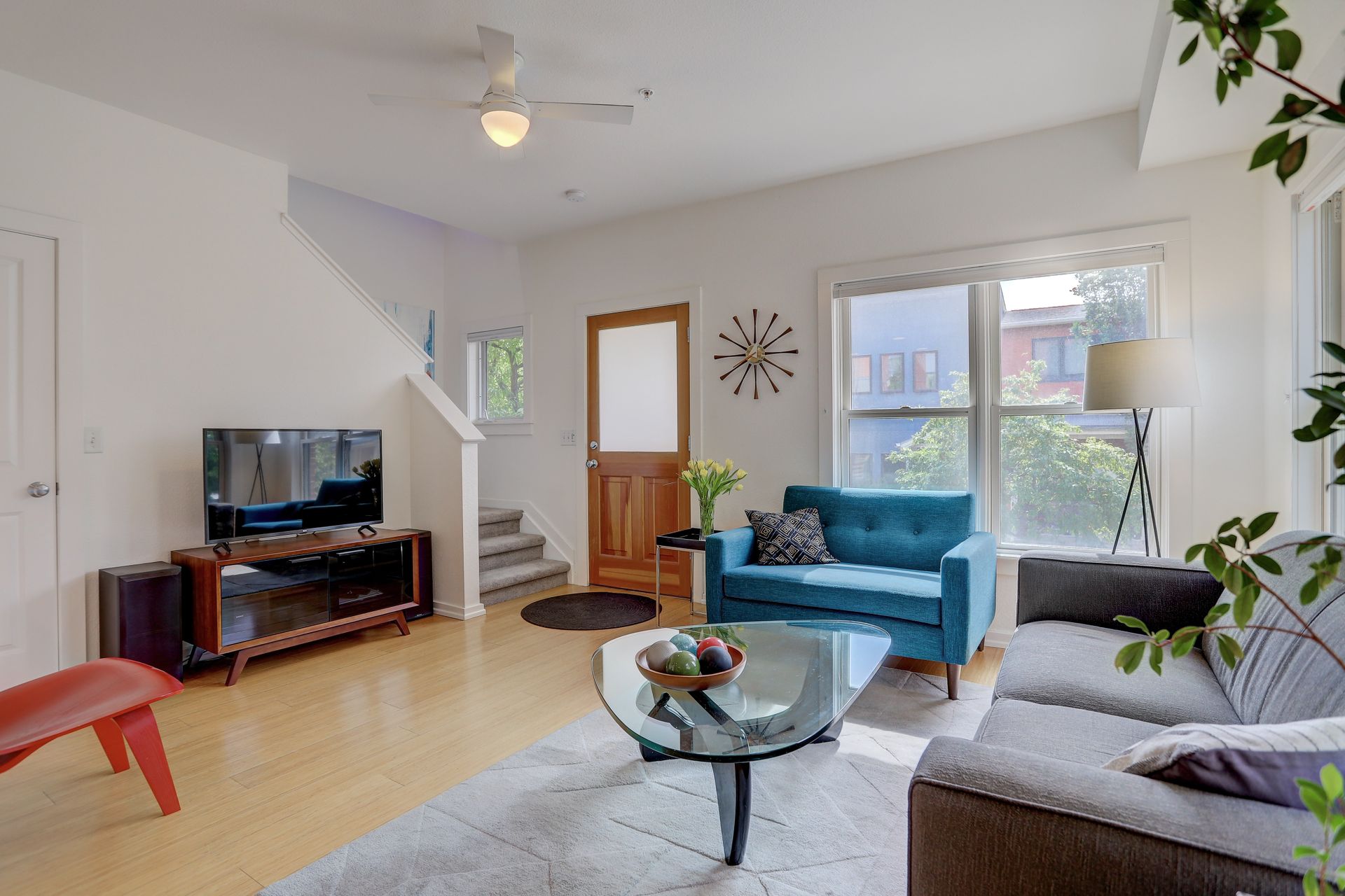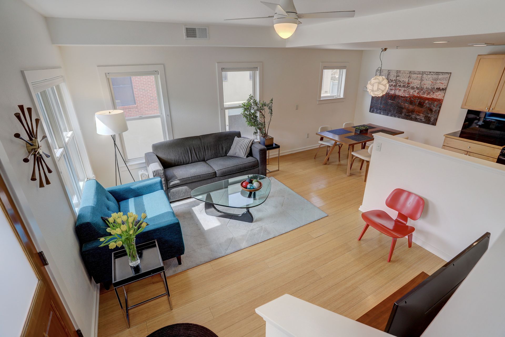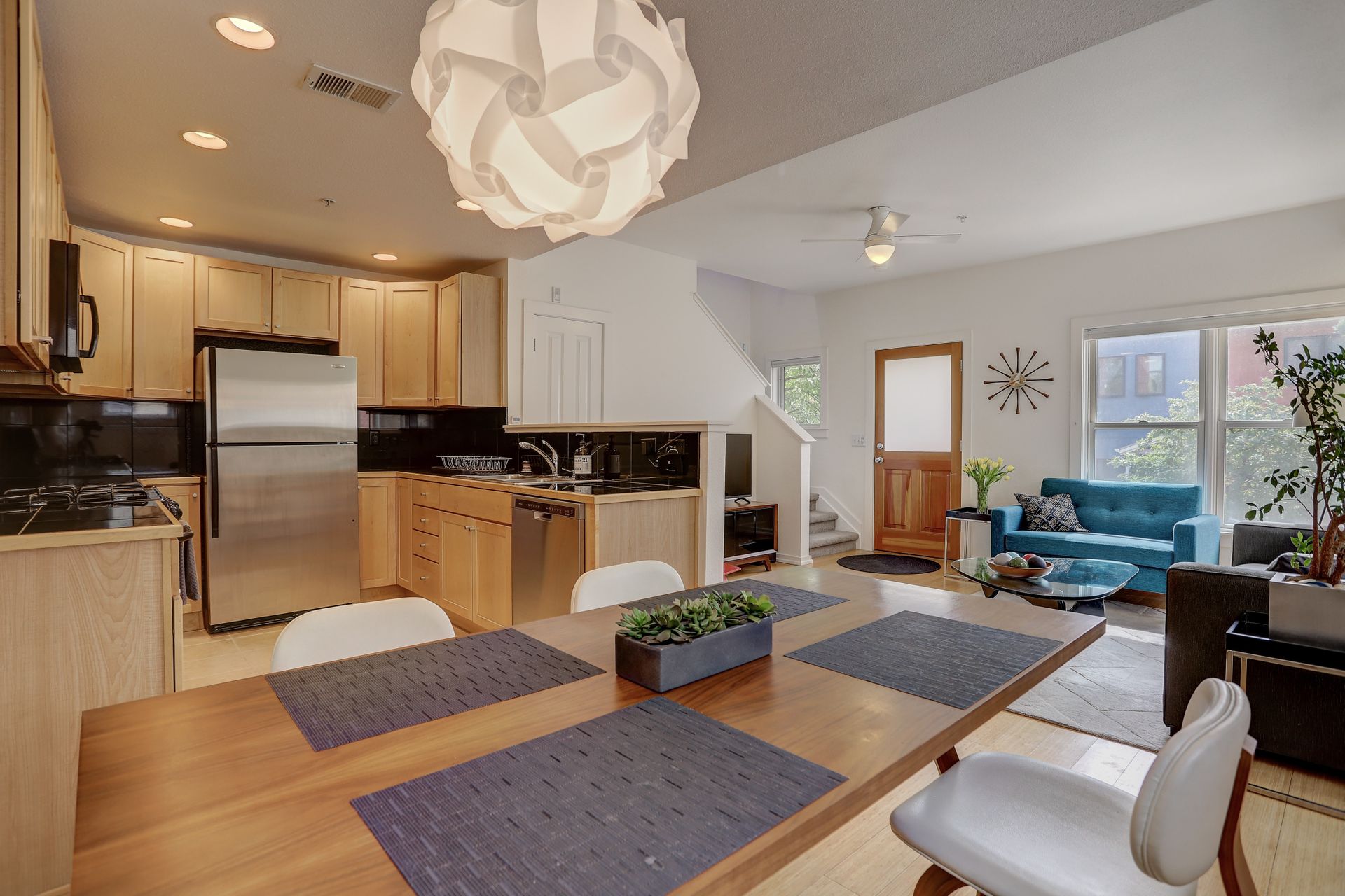 Welcome home to this 2-story townhouse style condo in the Steel Yards. This south facing corner unit boasts walking access to the Google Campus, Whole Foods, Target, and numerous other restaurants and shops. If you need to go a bit further you can stroll over to the RTD Depot Square Station, access two major bus lines, and the Goose Creek bike/walking path is also just out your door. Once home, you will enter through the covered private entrance to an open floor plan and bamboo flooring. The spacious kitchen includes granite countertops, stainless appliances, and plenty of cabinets for storage. In addition, there is a large storage closet under the stairs. The upper level bedroom is bright and spacious with a walk-in closet and balcony to enjoy sunset views of the Flatirons. The full bathroom and utility closet with washer and dryer complete the upper level. One assigned under building parking space is included. Gather with friends in the community park, and enjoy the vibrant Boulder Junction neighborhood.
