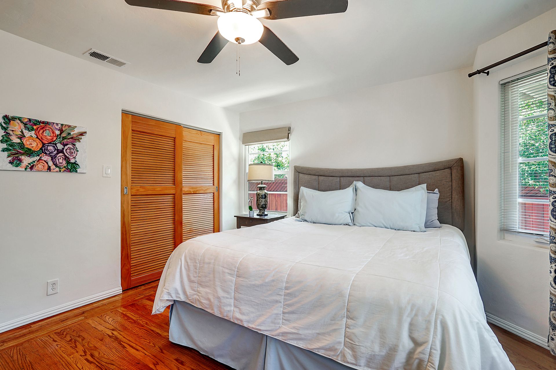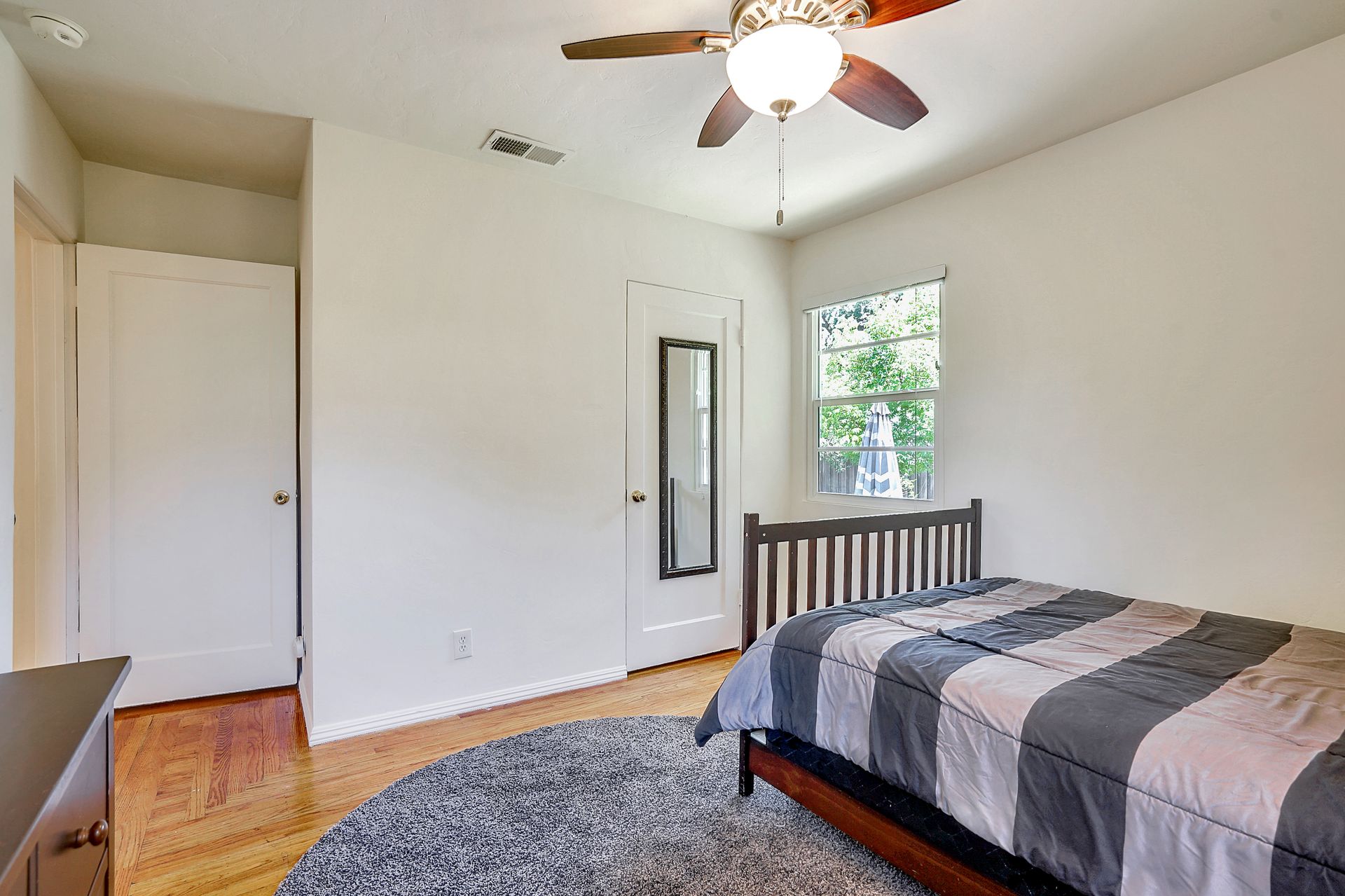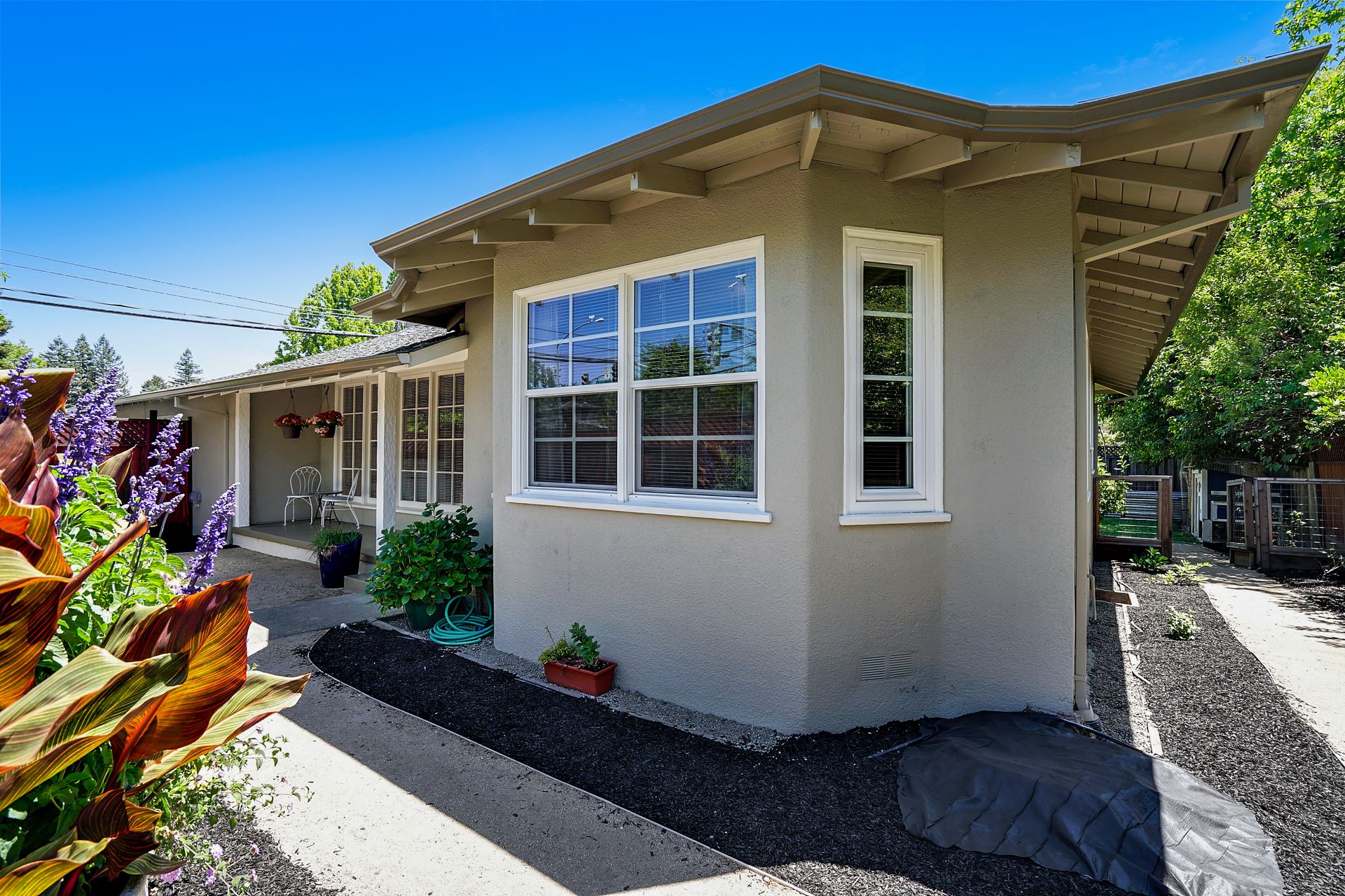 This lovely three bed, one bath home is beautiful inside and out. Sellers have retained vintage charm details while adding comfortable improvements including a newer central air furnace, updated plumbing, bathroom updates and so much more. The freshly painted walls accent the hardwood floors, and recessed lighting in the open beam living room sets it all off beautifully! Both the front and back yards feature covered porches with beautiful focal points - French doors leading to the back porch and four expansive windows looking out on the front. Sellers have poured themselves lovingly into the outside space which features a beautiful koi pond, multiple raised planter beds, a large backyard patio and brick barbecue, gorgeous rose bushes and a variety of other beautiful plants. The attractive lattice topped fence makes both the front and backyards very private. Additionally, the home is in a desirable neighborhood that is close to shopping, restaurants, several city & state parks, and has room to park your RV. It is quite simply, delightful!