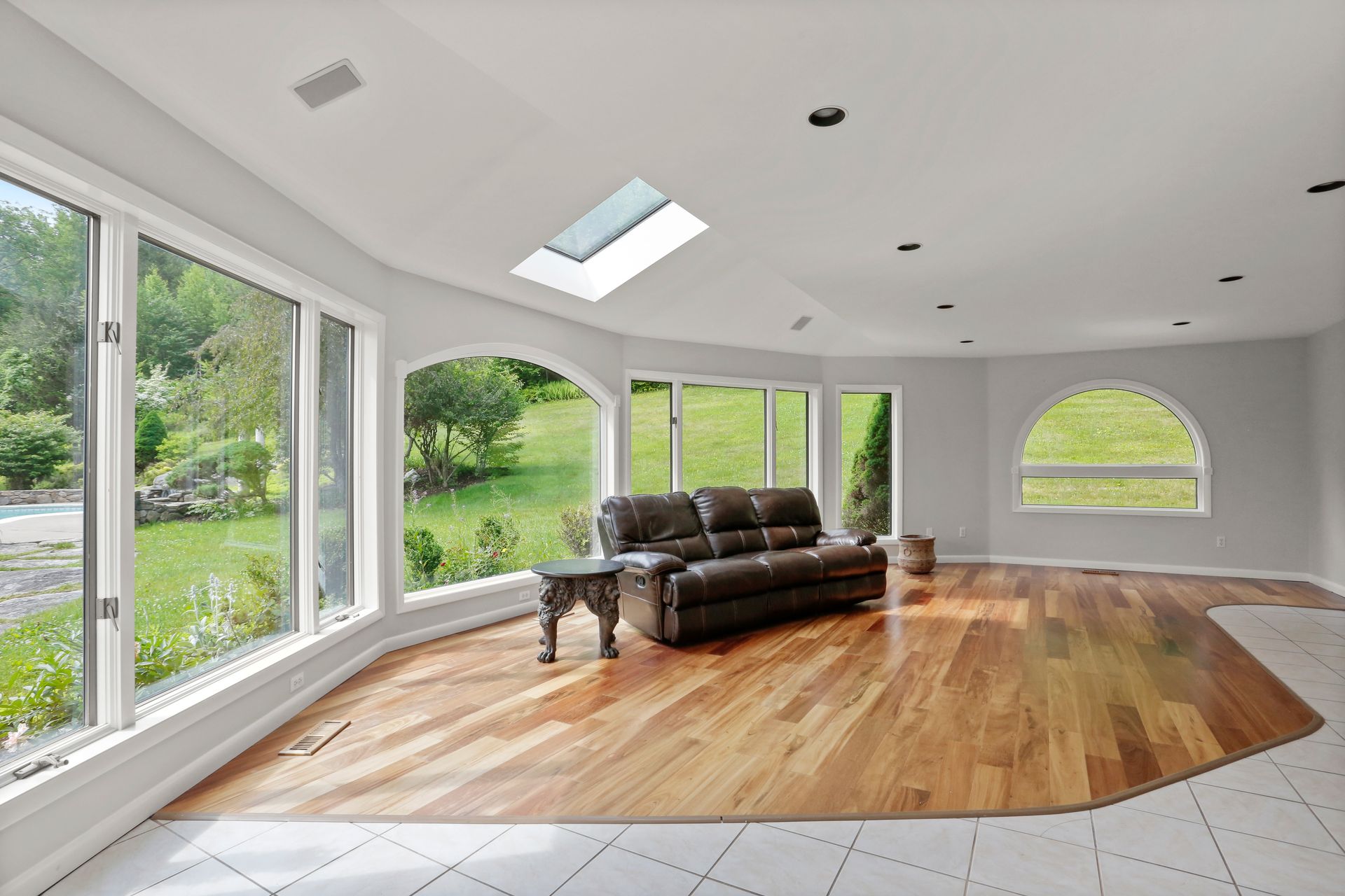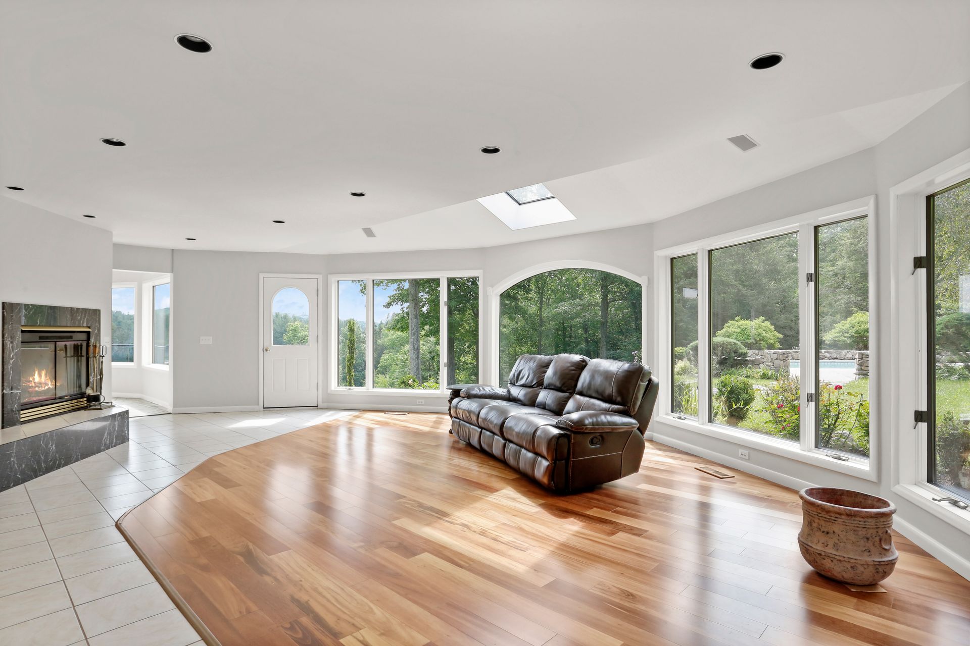 Find your inspiration and a deeper love of nature on this magnificent, over 30-acre landscape. This custom built, passive solar designed contemporary was thoughtfully engineered by the home’s only owner. The Azek wrap around decking provides a high-style yet earthy outdoor living space. The expanded foyer hosts an indoor garden and koi pond with waterfall. Large entertaining areas throughout including the light and bright eat-in kitchen and living room. Upstairs, find two wings, one includes the Master bedroom with en-suite bath, two walk-in closets and a private balcony. The second wing is home to the three other bedrooms and full bath. Remote working? No problem! There are two separate office spaces/bonus rooms. The lower level offers another 600 square feet of finished space with walk out. And outside is likely where you will find yourself as there is no shortage of breathtaking views from every angle. Even the in-ground, gunite pool is surrounded by serene countryside and glimpses of wildlife off in the distance. Detached, heated three-car garage outfitted with a lift, generator and 100-amp electrical service with 240-volt outlets. Located in bucolic Bridgewater, less than 90 minutes to midtown Manhattan and an easy commute to Brookfield, New Milford and Danbury.