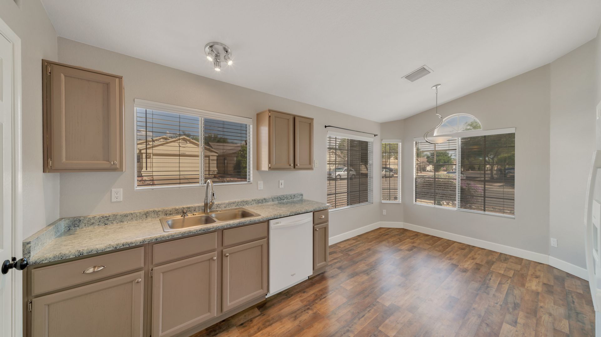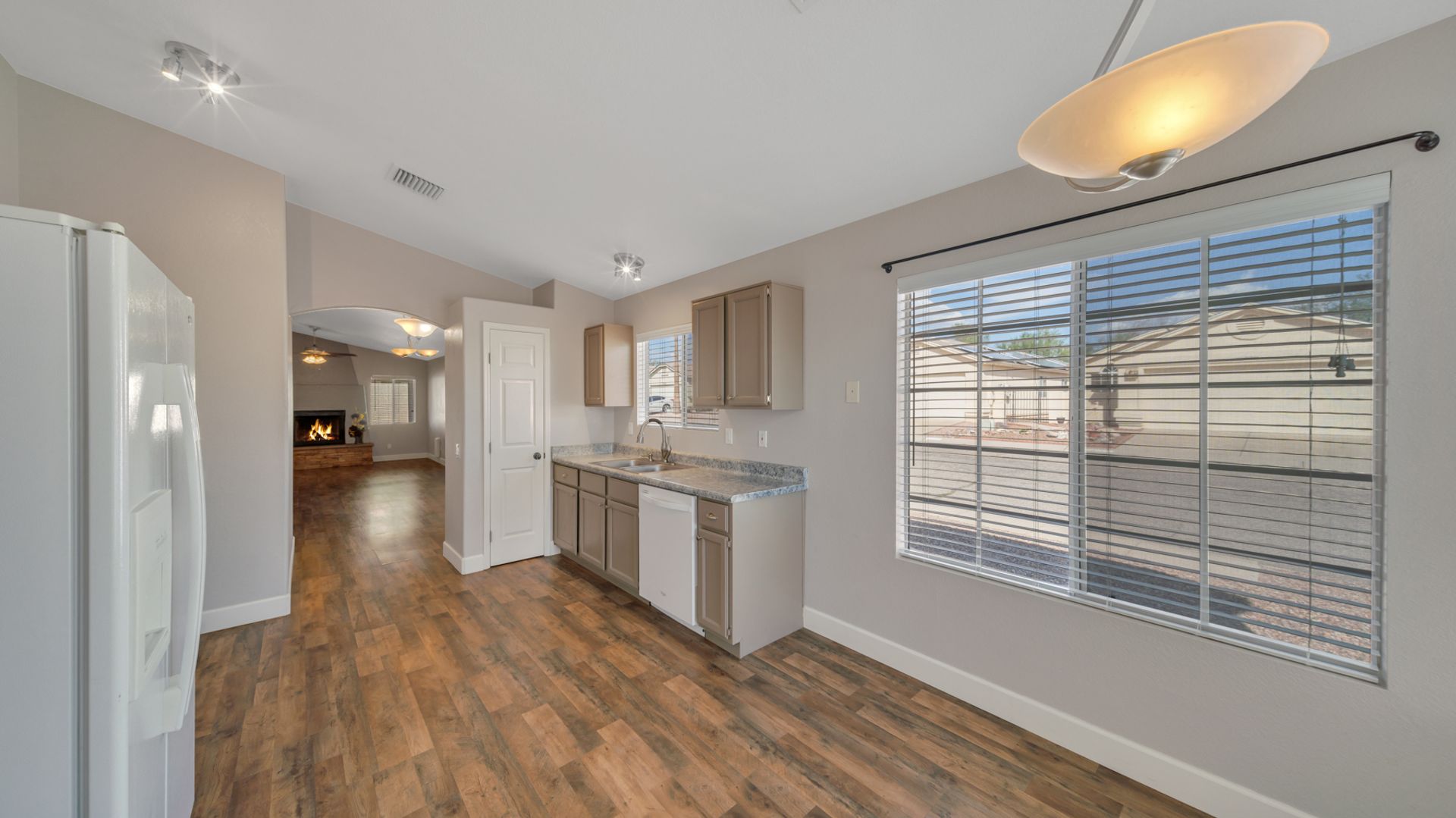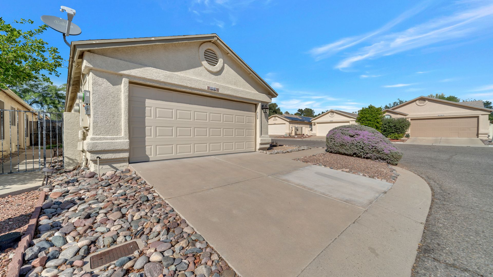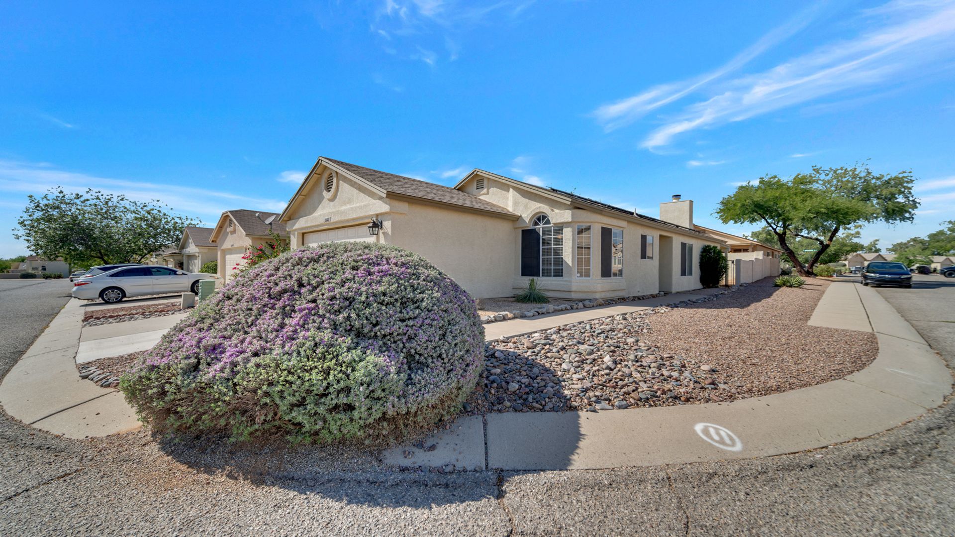 Welcome to Northwest Tucson living as it was meant to be enjoyed. This beautifully updated corner lot home is located in the desirable Moondance Village neighborhood. This home offers new wrought iron privacy doors and new garage door with Amazon keyless entry passcode. Newer flooring throughout. Enjoy open floor plan with vaulted ceilings, plant shelves, wood burning fireplace, updated kitchen/baths, newer interior/exterior paint, and blinds. This property allows for easy living with low-care yard and shaded covered patio. HOA includes Common Area Maintenance, Park, Pool, Spa, playground, and a basketball court. Close to schools, shopping and DRs Offices. This is HOME.