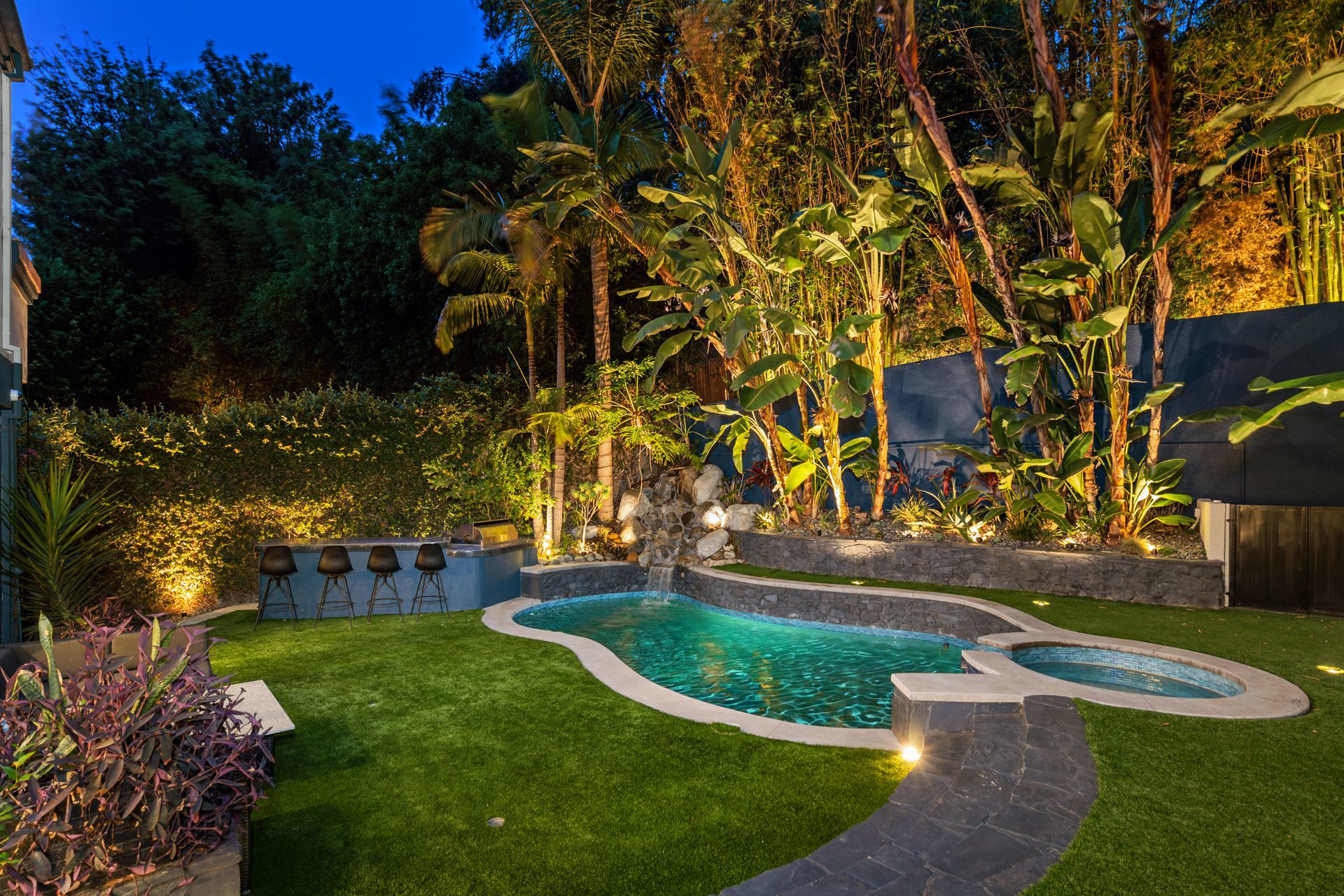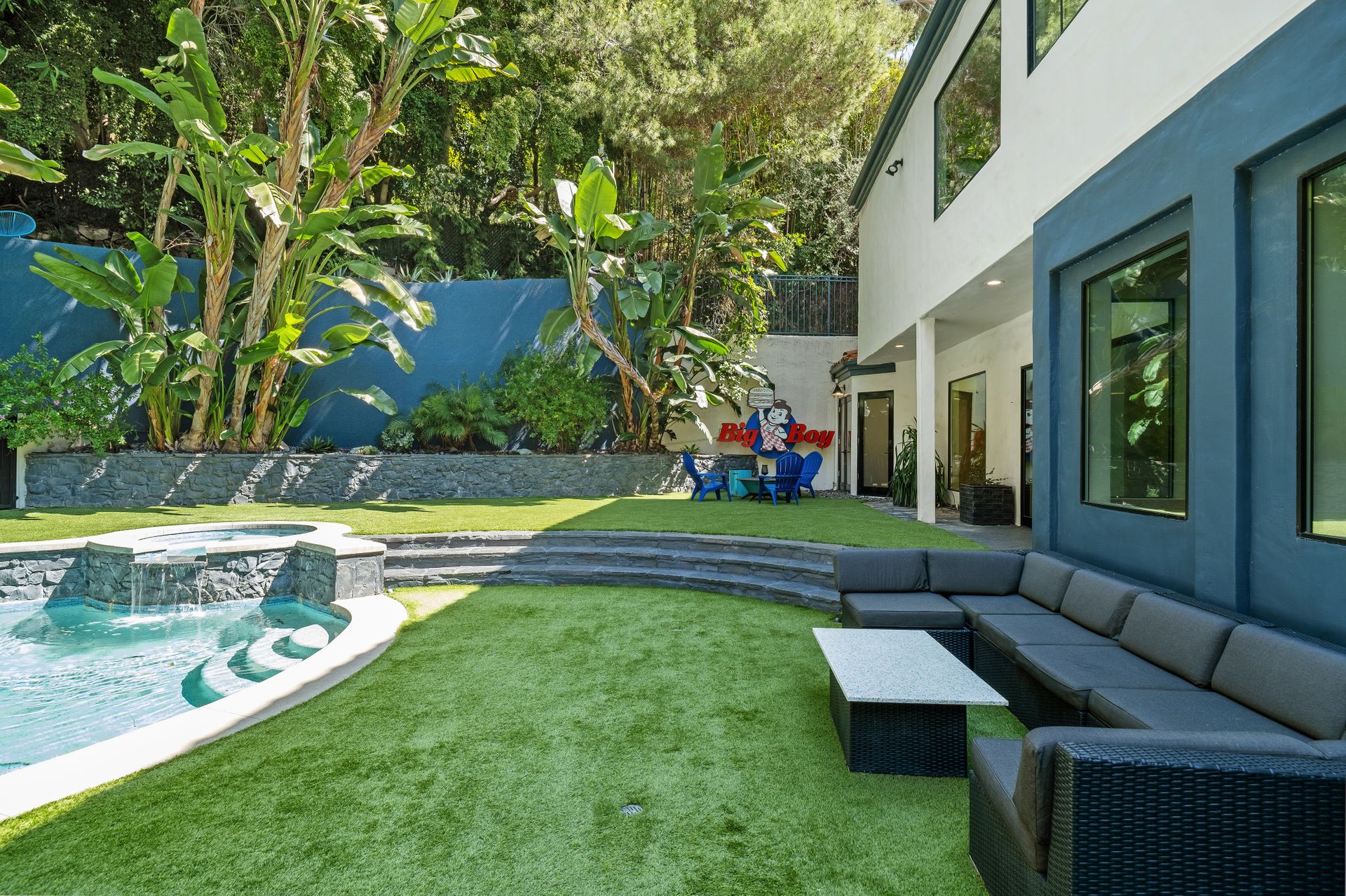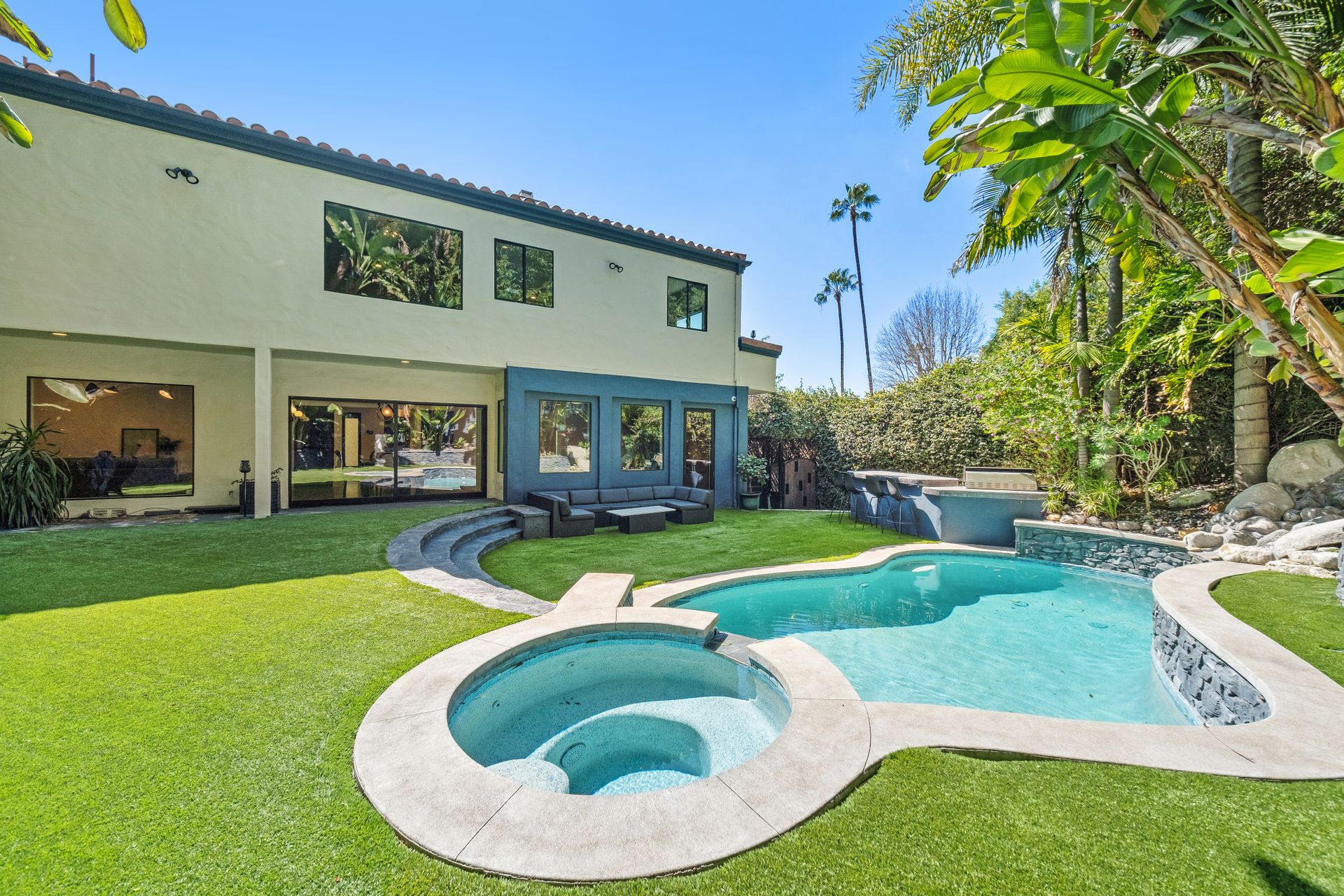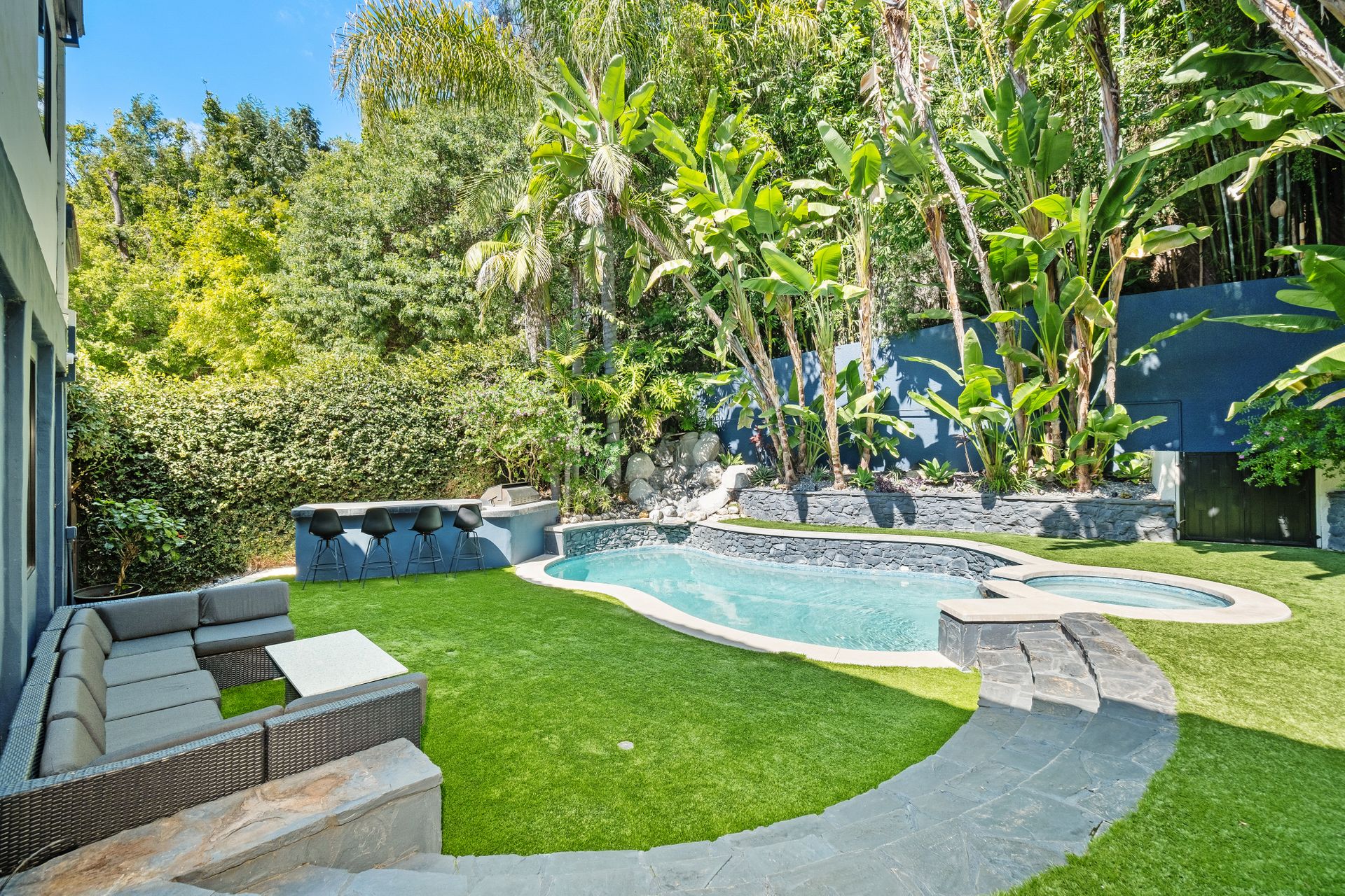 This stunning single-family home in Los Angeles, CA, is the ideal place for those looking for a unique and architecturally stunning property. With four bedrooms and five bathrooms, this 4,622 square-foot home has recently been upgraded and remodeled with the finest materials and attention to detail. The home features a true entertainer's backyard with a lagoon pool, hot tub, waterfall, outdoor kitchen/bar, and plenty of flat yard to play and socialize.