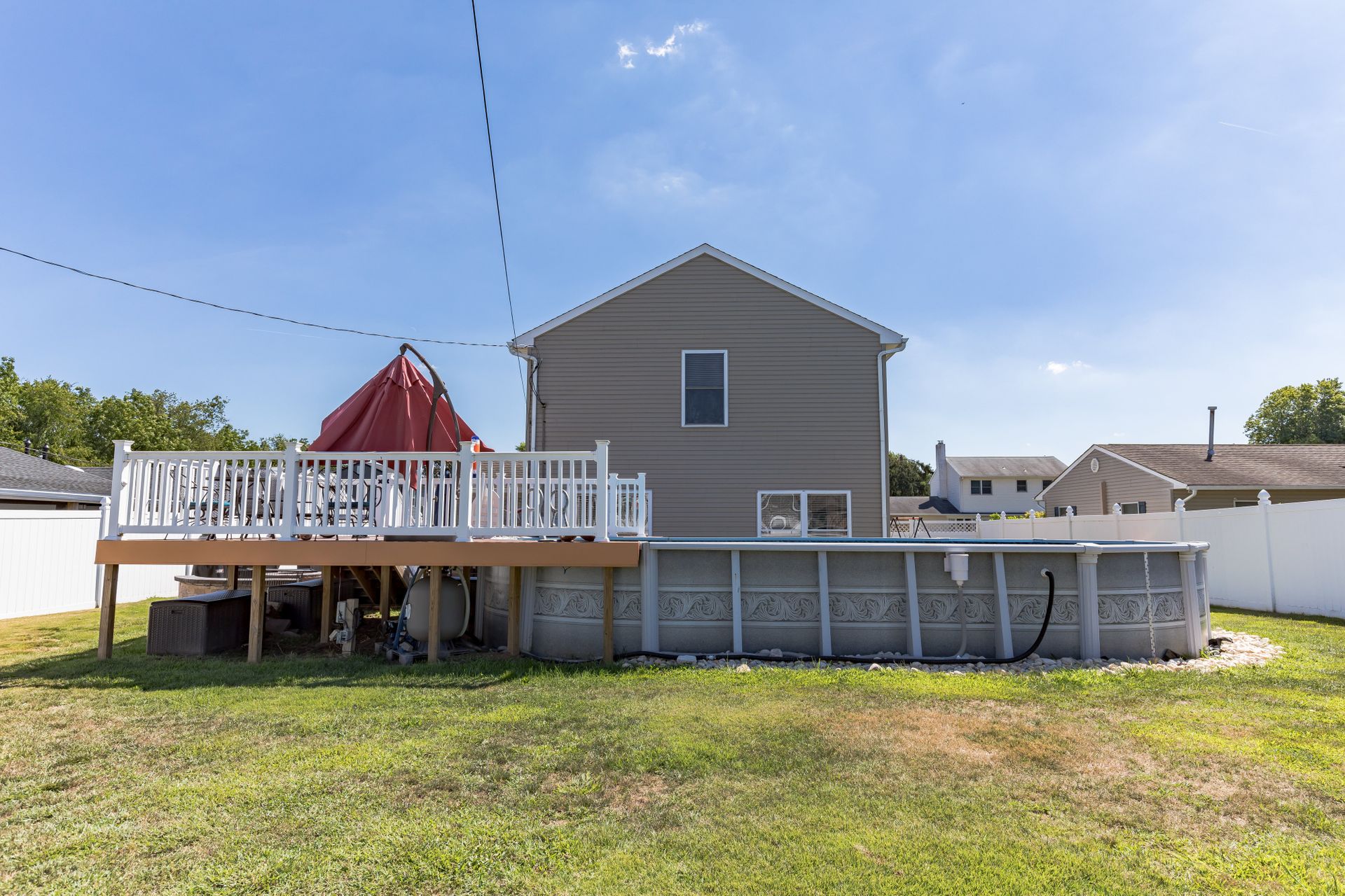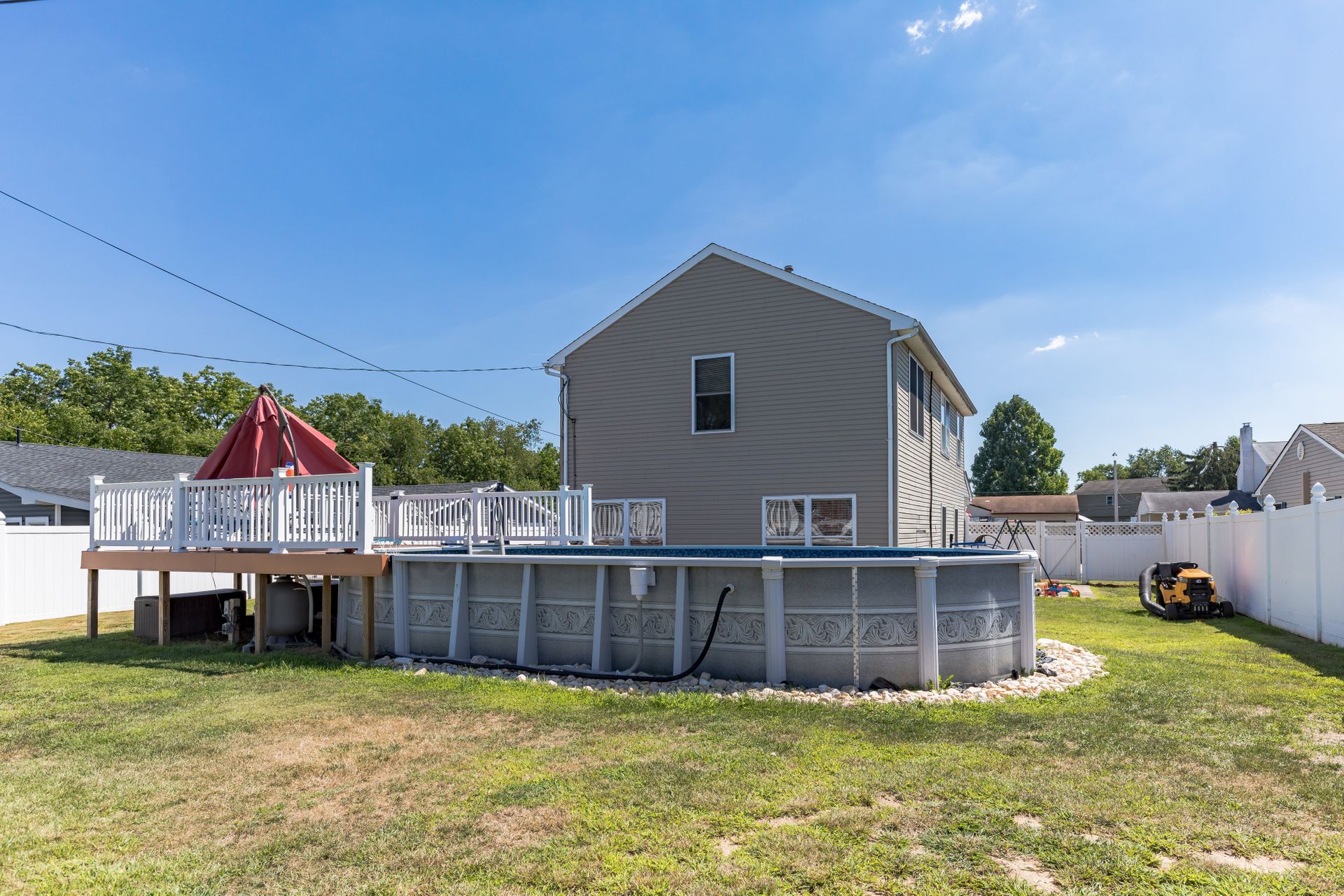 Come and experience this beautiful single Colonial-style home in desirable Falls Township. This four bedroom, two and one-half bath home is located within the Pennsbury School District and is less than 20 years old! This home features a huge main bedroom suite with a walk-in closet and its own full bathroom that includes double sinks and a walk-in shower. You'll also enjoy the comforts of central air, a large eat-in kitchen with an island and breakfast bar, a spacious dining room and the pellet stove in the family room. The laundry area is located on the second floor for added convenience. As you enter the private fenced-in backyard oasis, you'll find the above-ground pool surrounded by a composite material deck with an awesome oversized patio that includes a built-in fire pit and sitting wall, along with a granite table great for outdoor dining. This entire area is perfect for gatherings of all kinds and many enjoyable days and nights. Schedule your appointment today!