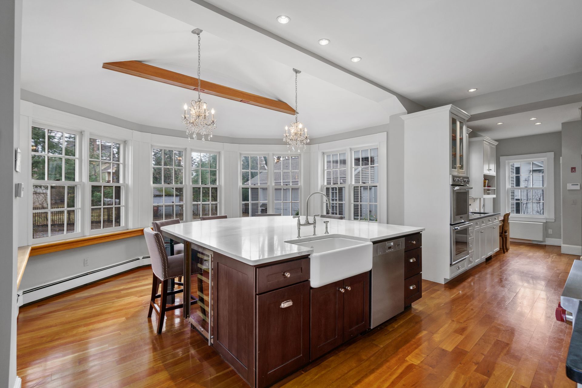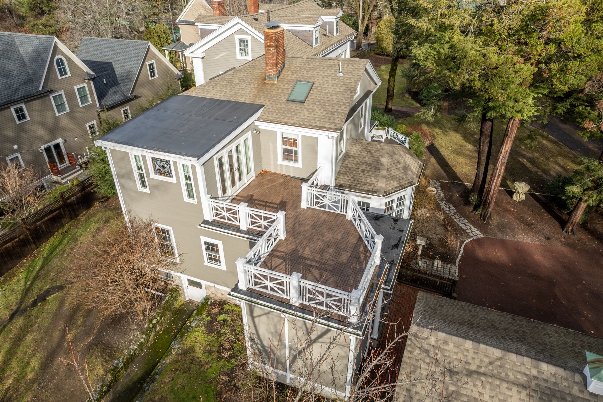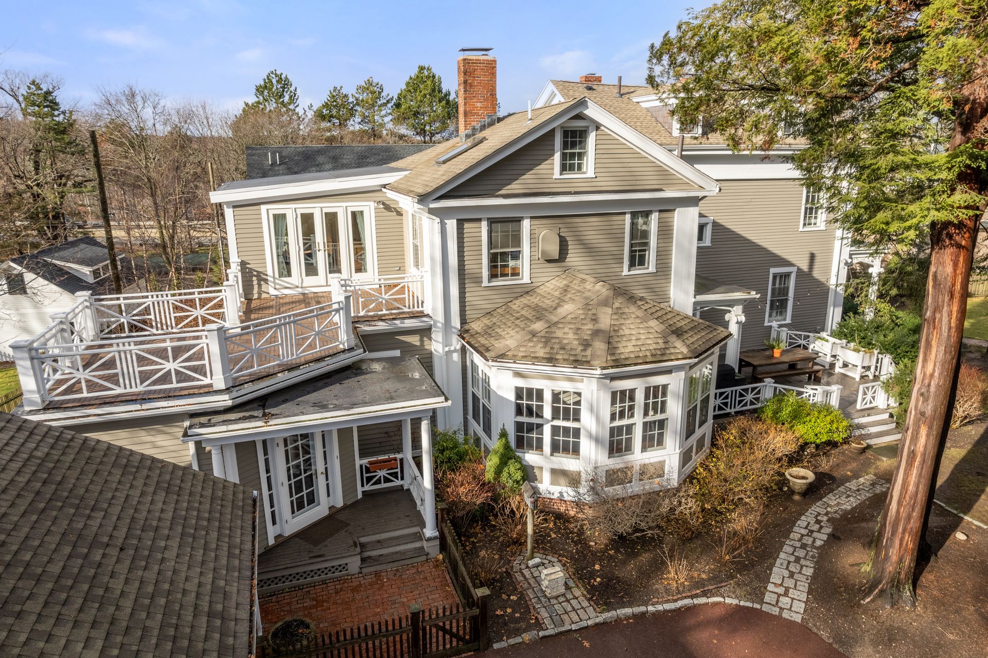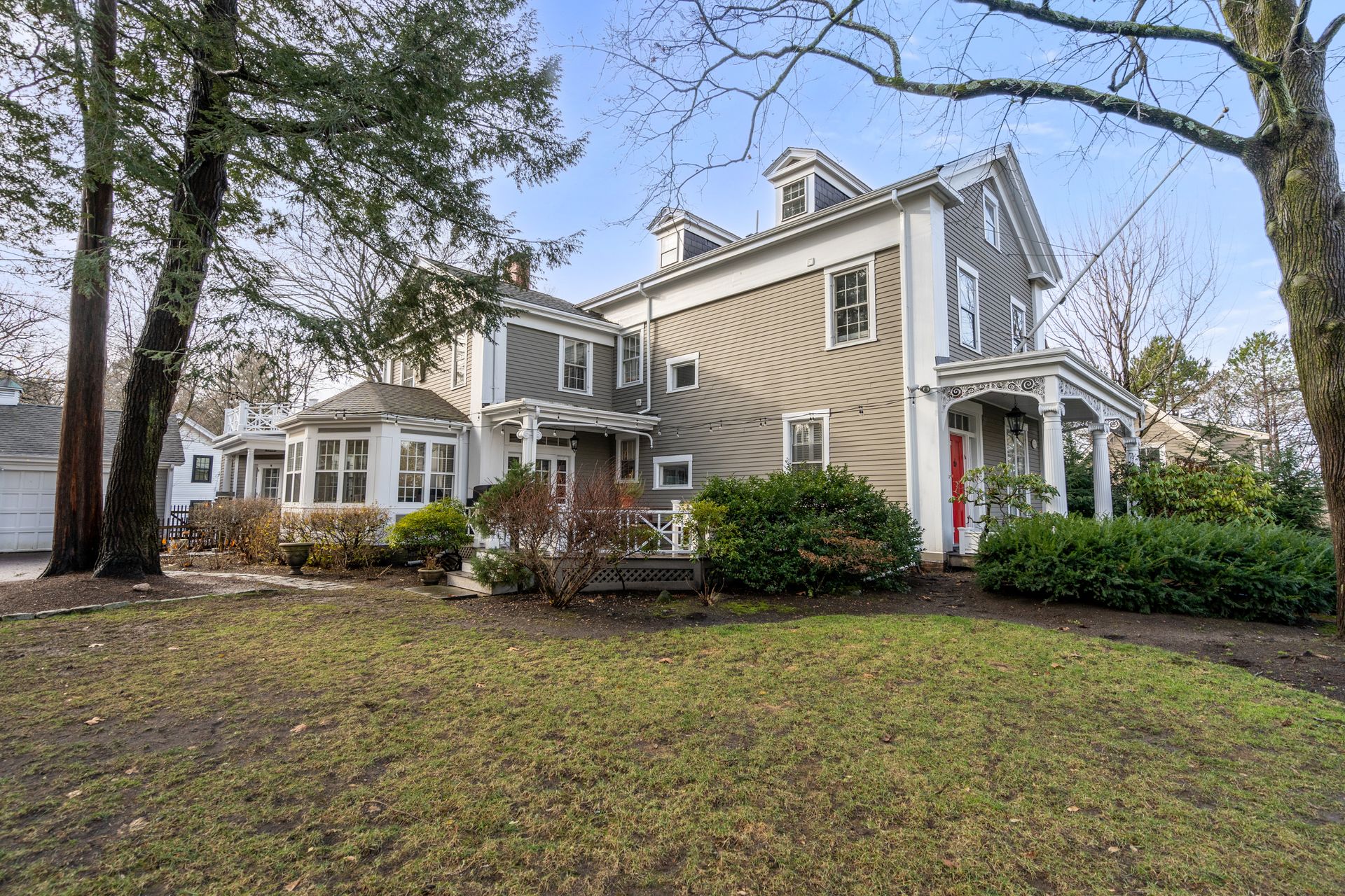 Welcome to one of Newton's treasured homes. This beautiful Greek Revival has been seamlessly renovated to combine historical elements with modern day living. Set back from the tree lined street with a sprawling front lawn, this home boasts a commanding presence. Expansive double fire placed living room with 11' foot ceilings and historical details opens to magnificent dining room with fireplace and adjacent porch. The updated chef's kitchen with an extraordinary half round island, surrounded by bay windows, an abundance of counter space and cabinetry. Extraordinary primary suite w/multiple closets, an office and private deck. Two additional bedrooms, a newly renovated bath plus laundry complete the 2nd floor. The 3rd floor has a lovely bedroom suite w/bath. A gem in the historical district of Auburndale. Close to the village, Charles River, shopping and public transportation and the highways.