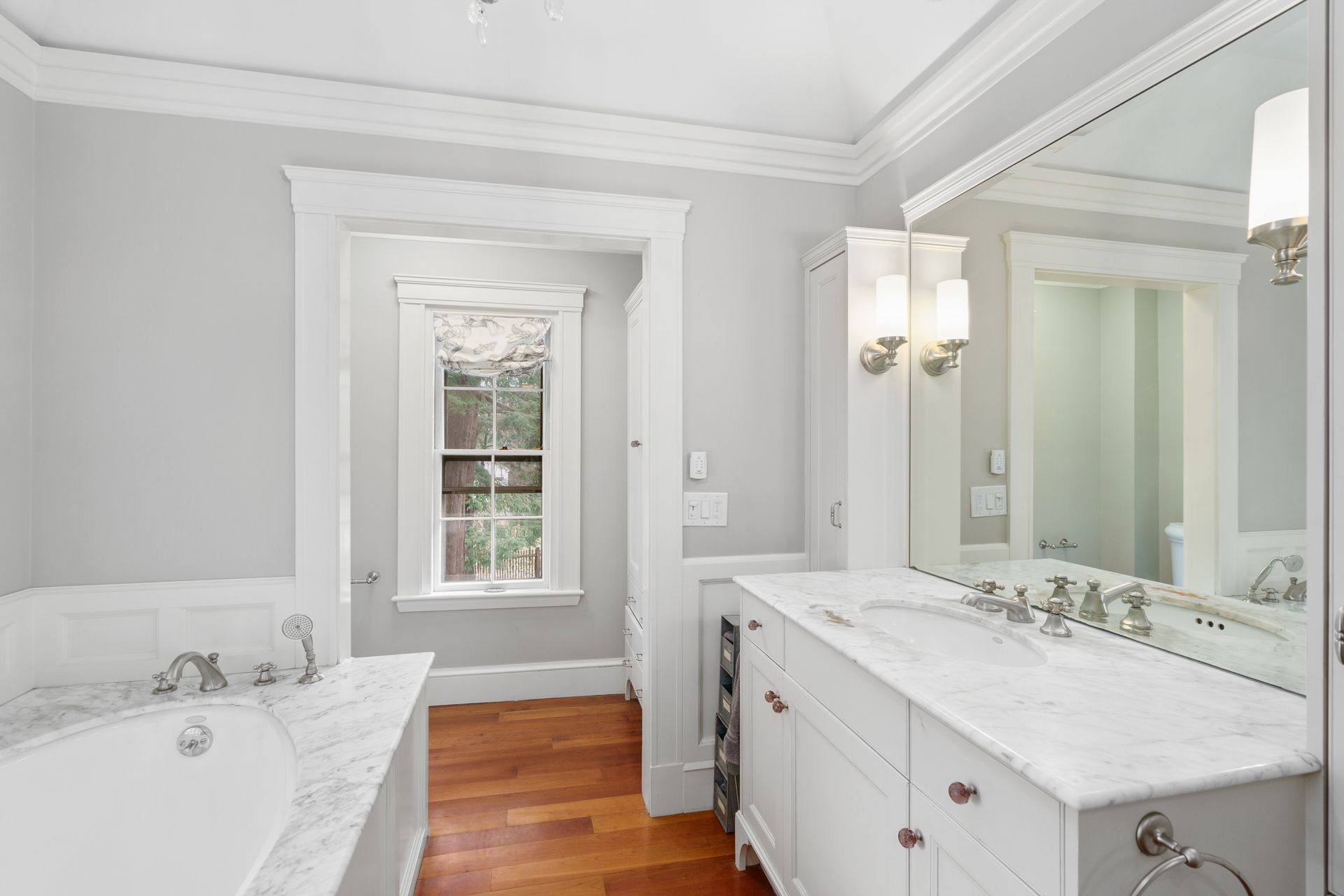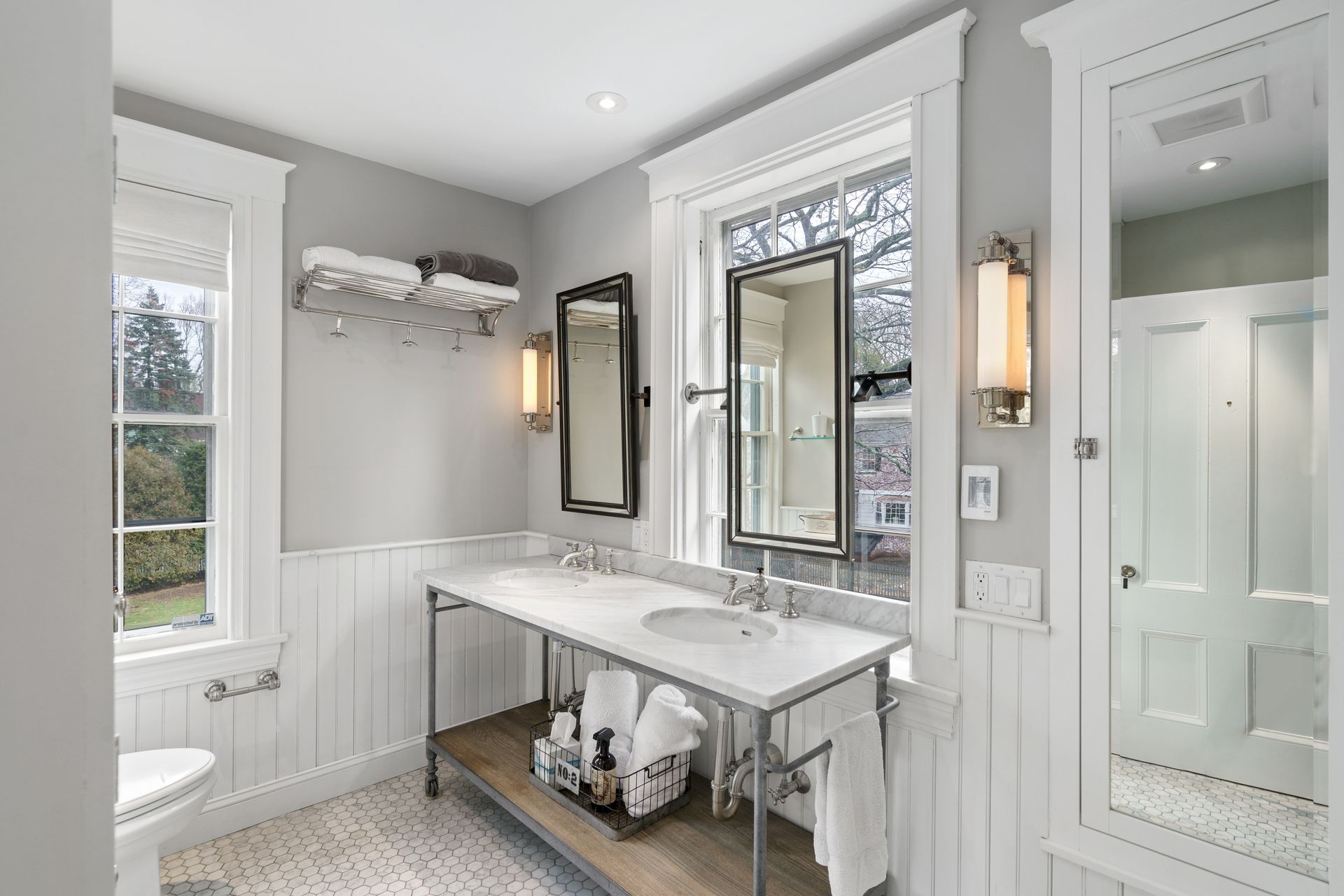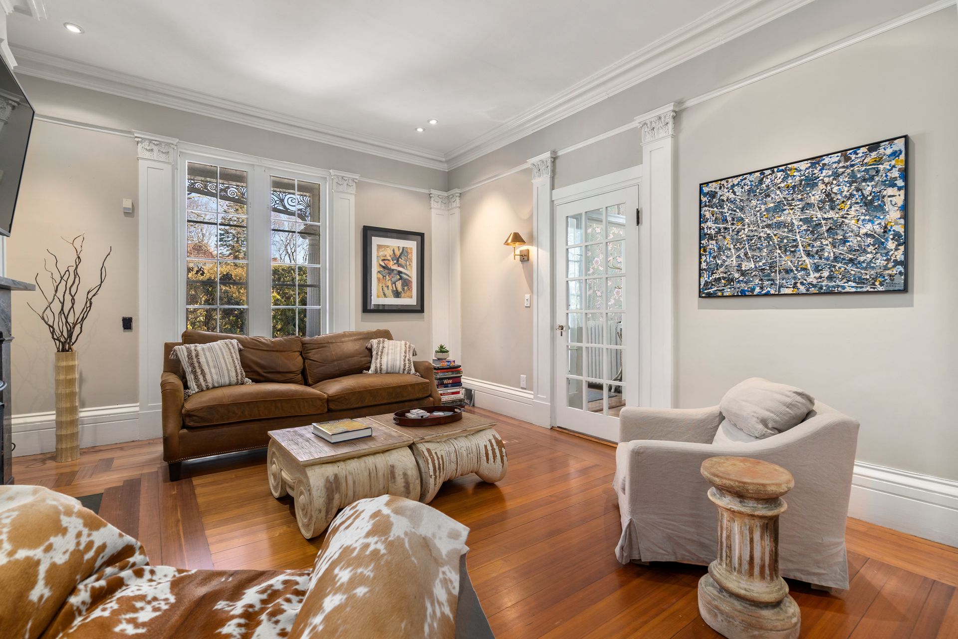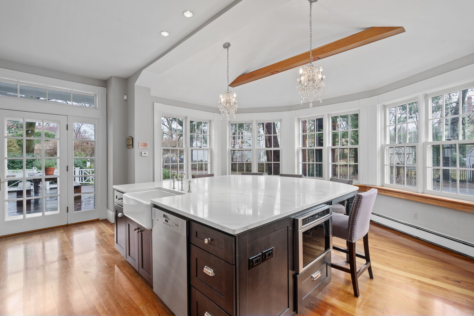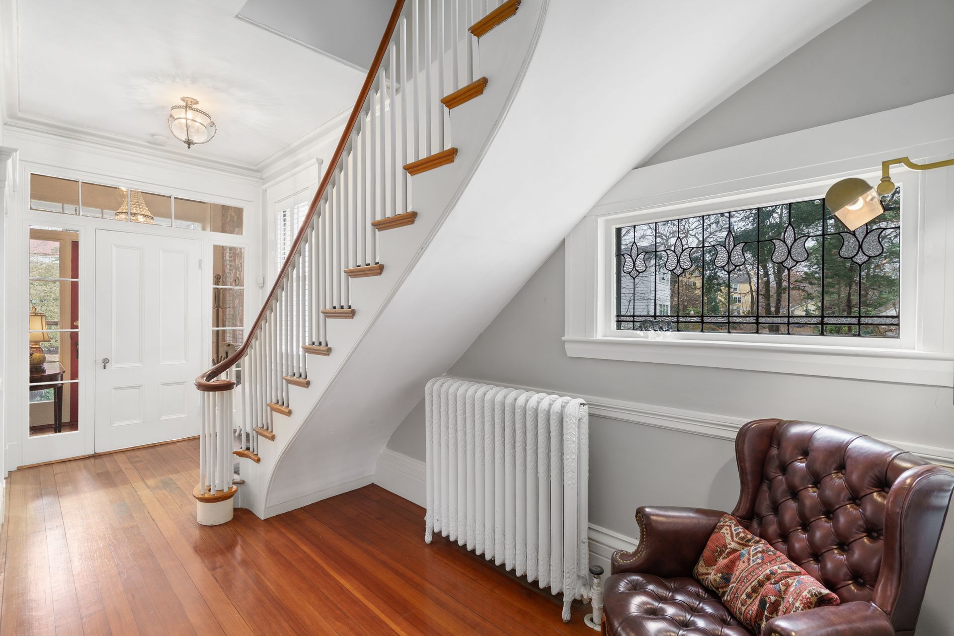 Welcome to one of Newton's treasured homes. This beautiful Greek Revival has been seamlessly renovated to combine historical elements with modern day living. Set back from the tree lined street with a sprawling front lawn, this home boasts a commanding presence. Expansive double fire placed living room with 11' foot ceilings and historical details opens to magnificent dining room with fireplace and adjacent porch. The updated chef's kitchen with an extraordinary half round island, surrounded by bay windows, an abundance of counter space and cabinetry. Extraordinary primary suite w/multiple closets, an office and private deck. Two additional bedrooms, a newly renovated bath plus laundry complete the 2nd floor. The 3rd floor has a lovely bedroom suite w/bath. A gem in the historical district of Auburndale. Close to the village, Charles River, shopping and public transportation and the highways.