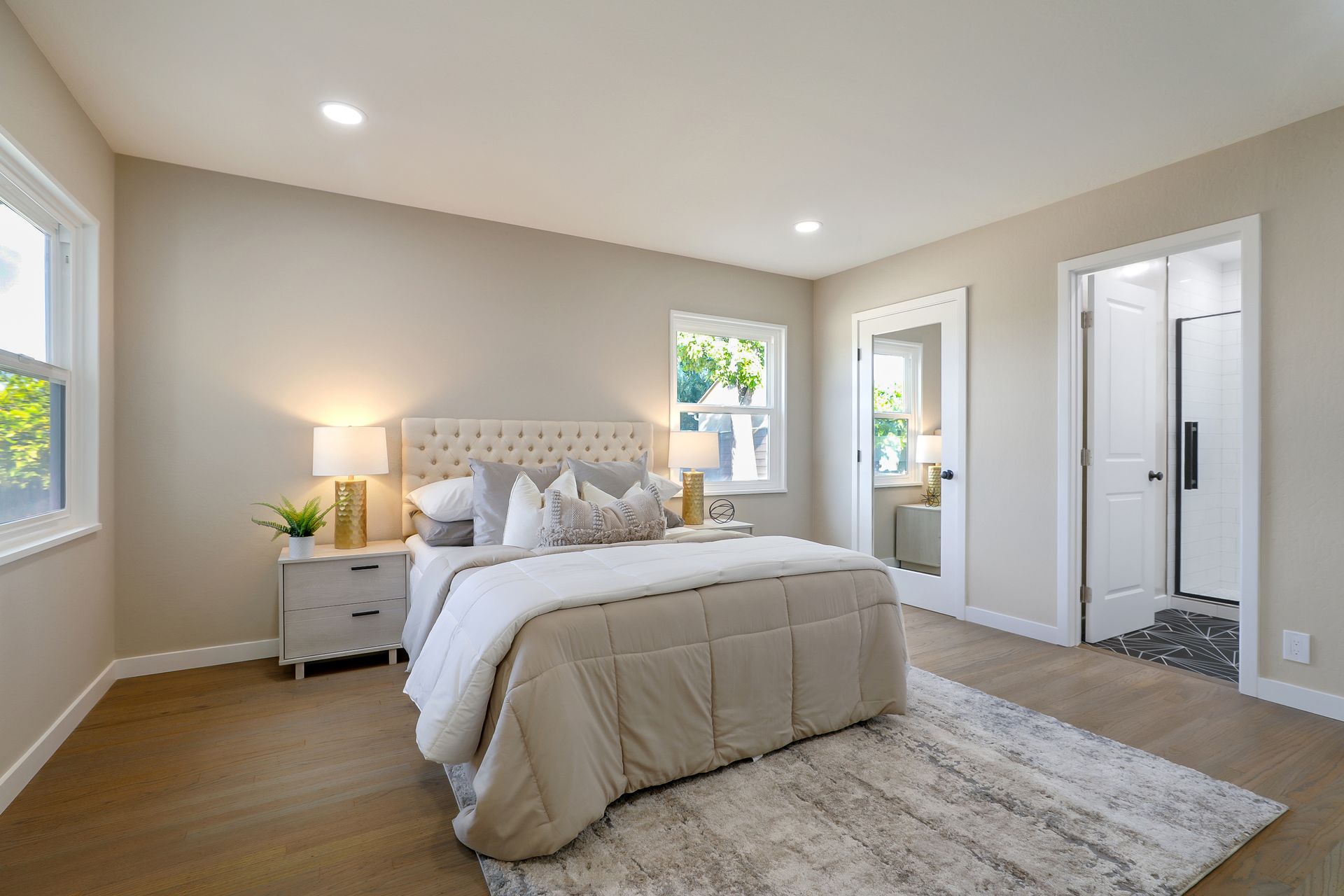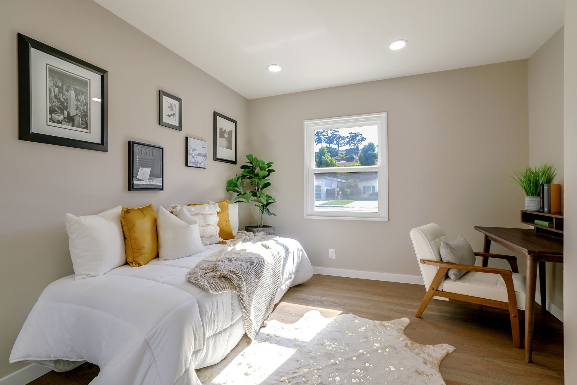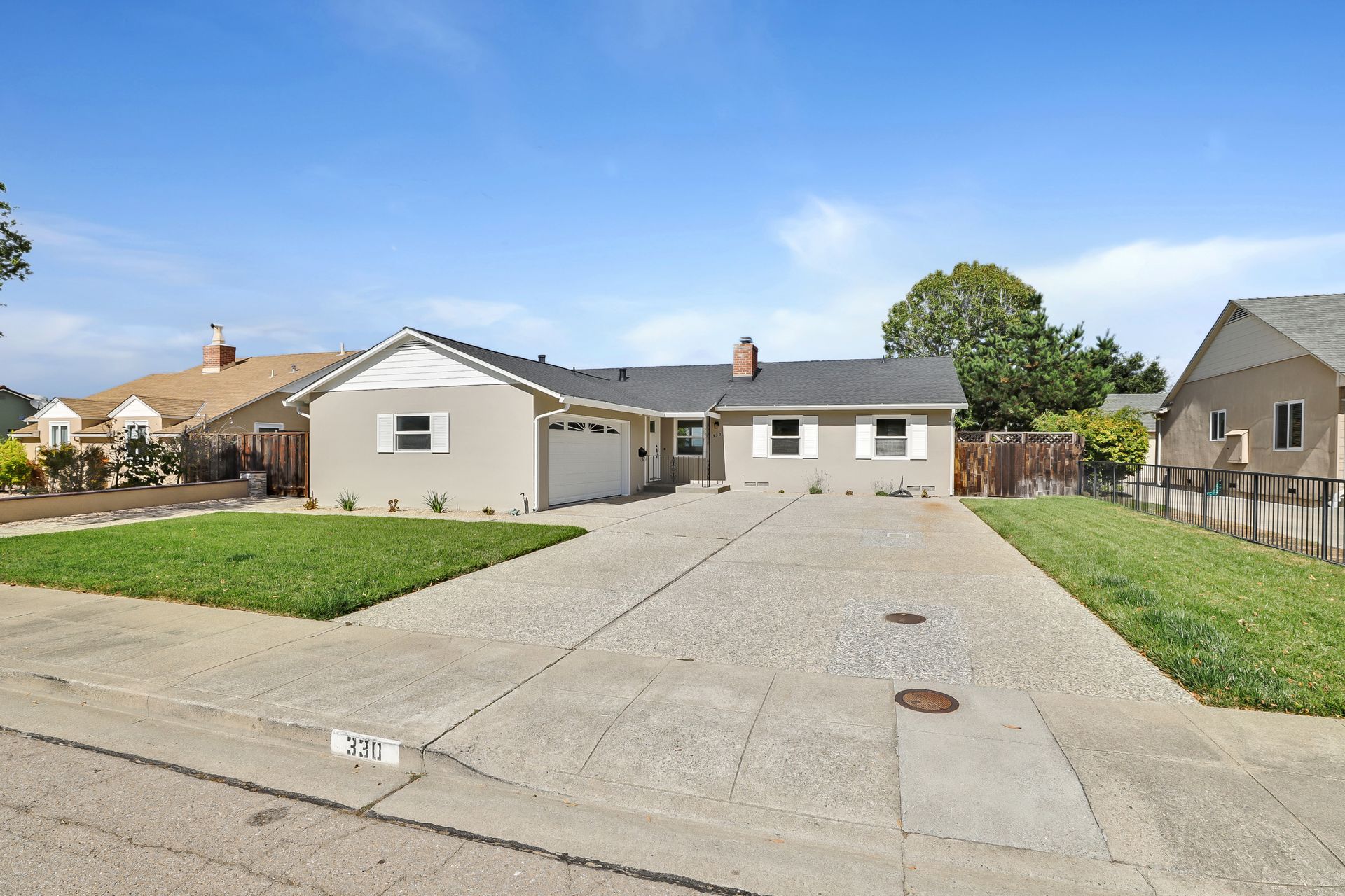 This fabulous three bedroom, two bath ranch-style home is located on an oversized level lot in the Mills Estate neighborhood of Millbrae. Features include solid interior doors, double pane windows, two sun tunnels, refinished hardwood floors, a dining area, breakfast nook and a living room with an LED fireplace. A beautifully remodeled kitchen features quartz countertops, glass backsplash, shaker-style cabinets with soft close feature and stainless steel LG appliances including the dishwasher, refrigerator and an electric range with hood, air fry and convection bake features and a breakfast nook. A remodeled hall bathroom offers a tub with a shower stall, tiled floors and a quartz-topped vanity. A luxurious primary bedroom suite invites relaxation with a walk-in closet with a doorway leading to the backyard as well as a renovated bath with a nicely tiled shower stall, quartz-topped vanity, tiled floors and mirrored closet doors. Enjoy recessed lighting throughout, a freshly painted interior and exterior and a recently replaced composition shingle roof in 2022. The attached two-car garage has epoxy floors and a washer and dryer. Outside a nicely landscaped front yard features a sprinkler system and the spacious and landscaped backyard beckons entertaining with a patio area, fruit trees and more.