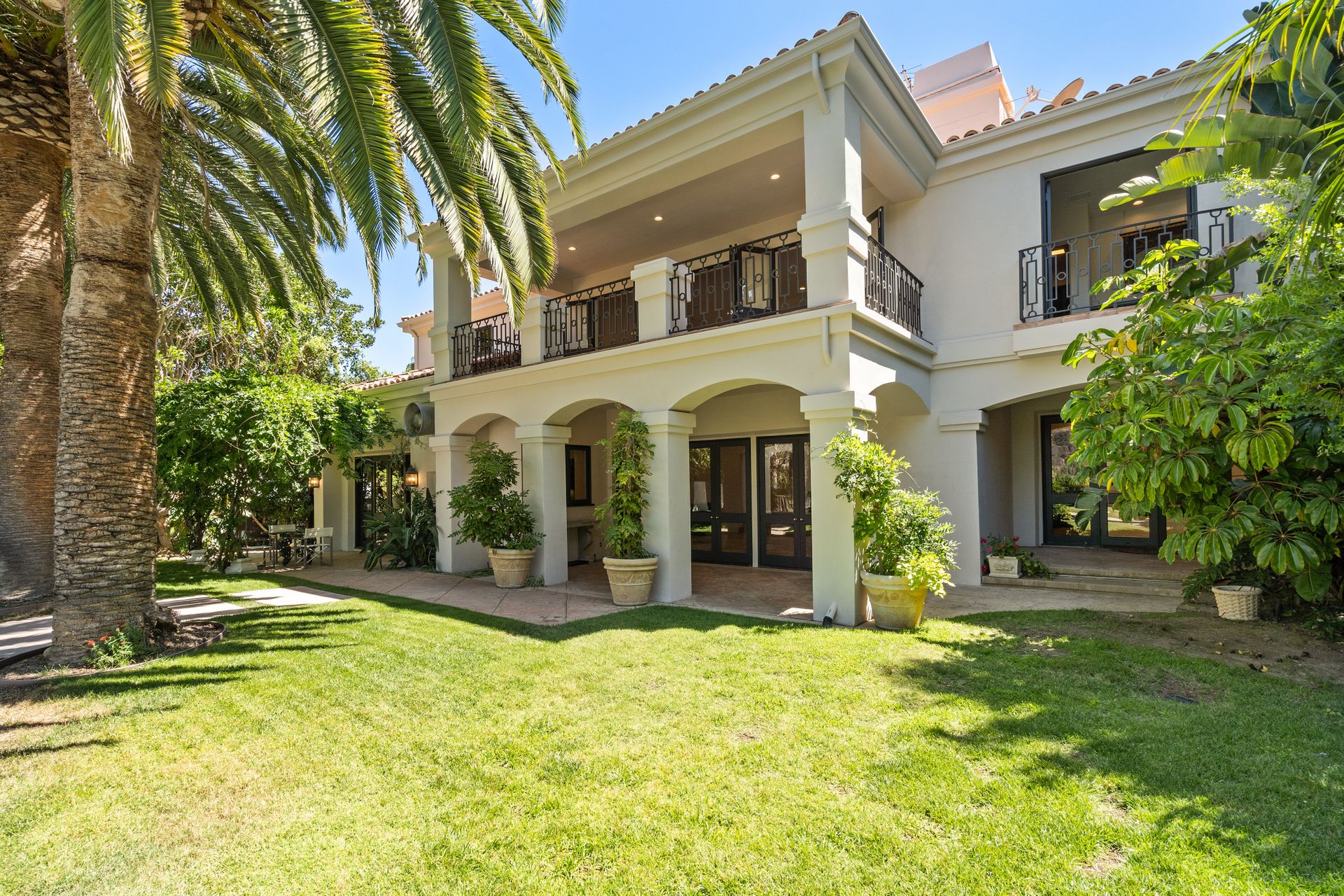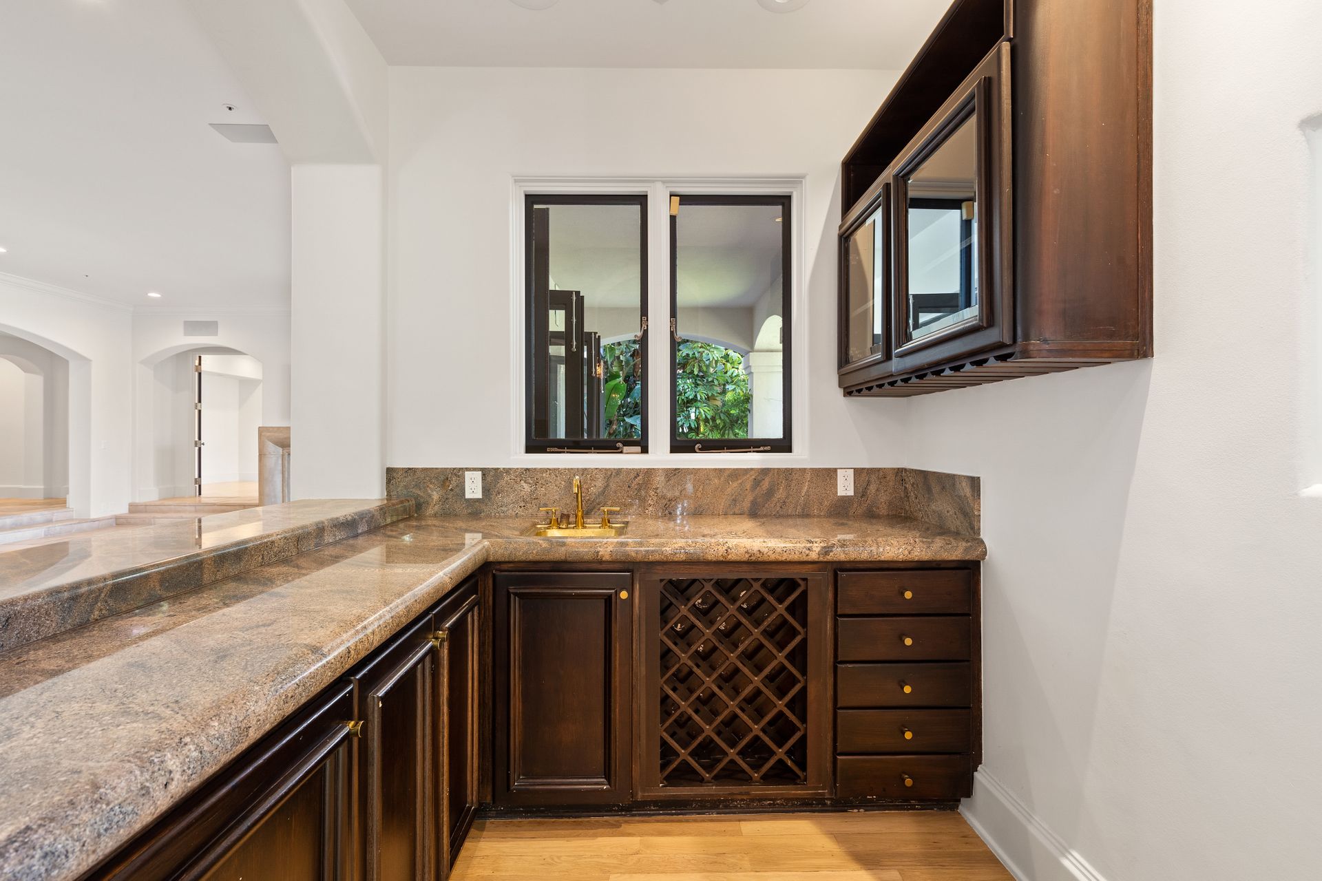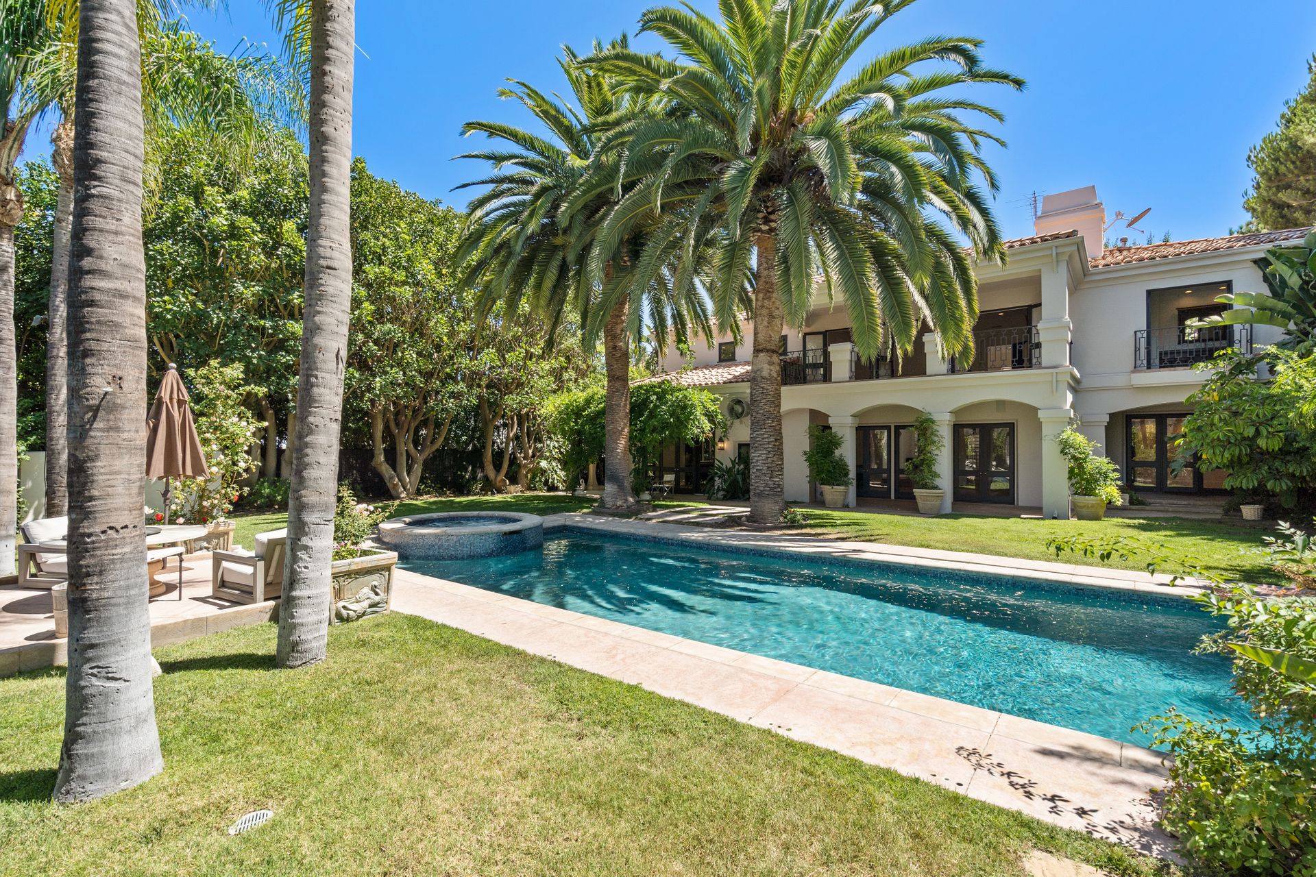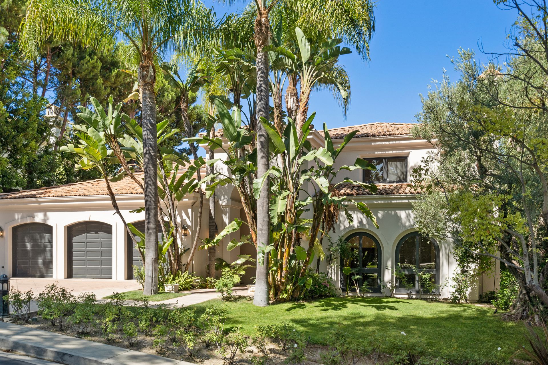 Luxurious six-bedroom, seven-bathroom estate for lease in the coveted Mulholland Estates. Set privately behind a 24/7 security-monitored gate, this home has 6,965 sf of living space on a 26,165 sf lot with a pool and private tennis court positioned from North to South. Mediterranean in design, the ground floor includes a large formal living room and fireplace, a formal dining room with seating for 12, a butler's pantry, a built-in wet bar, a generously sized family room that includes a fireplace, a maid's room with an en-suite bathroom, an office, and a powder room. The grand kitchen is outfitted with a large stone island, professional-grade Wolf range and grill, and plenty of space for breakfast seating. The master suite is located upstairs with a large fireplace and french doors opening to the balcony overlooking a beautiful and private yard. Dual en-suite bathrooms with walk-in closets flank the master bedroom and include amenities such as a soaking tub, steam shower, spacious vanities, industrial-grade safe and water closets. Three additional guest bedrooms complete the second floor with en-suite baths and a library. High ceilings and newly refinished hardwood floors create a warm and inviting experience throughout the home. A gorgeous and tranquil backyard is complete with a pool, hot tub, water slide, and waterfall. The private tennis court has recently been resurfaced and upgraded. Three-car garage. Mulholland Estates offers additional tennis courts, pickle, basketball, squash, and racquetball courts, as well as a playground and community center.
