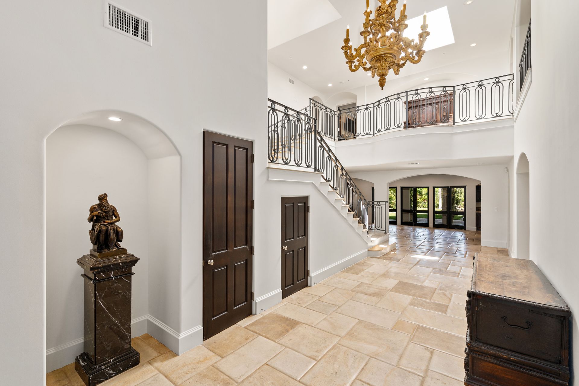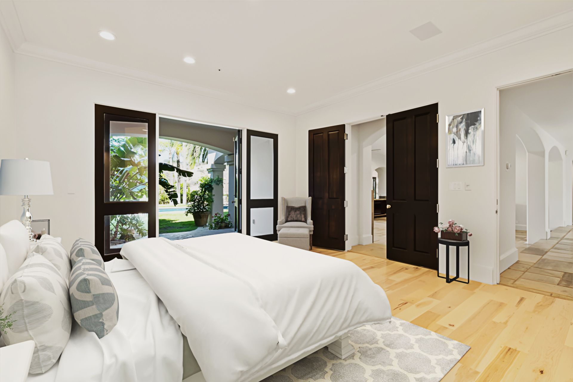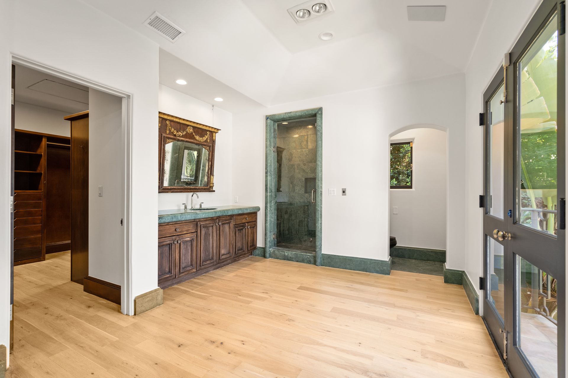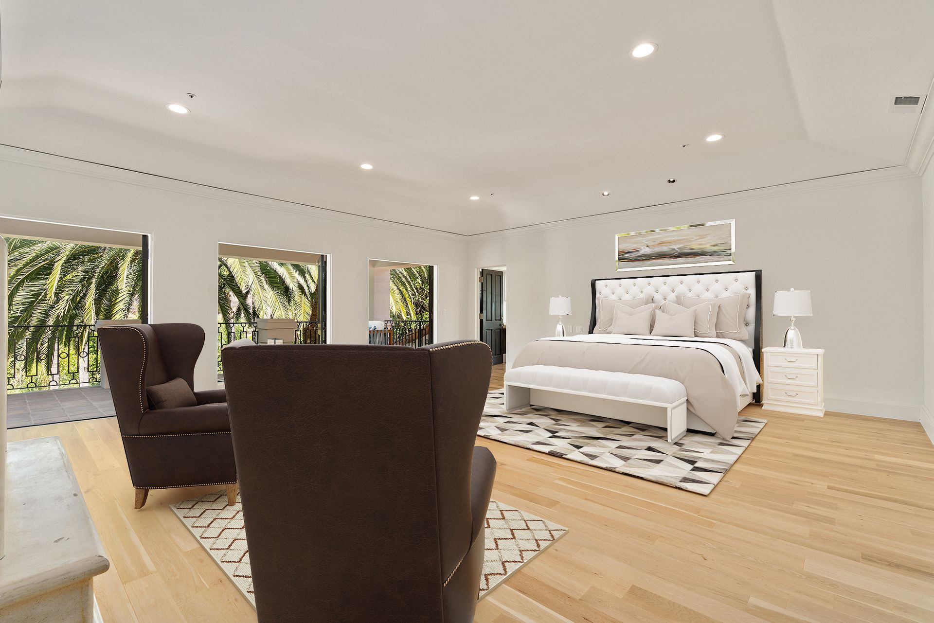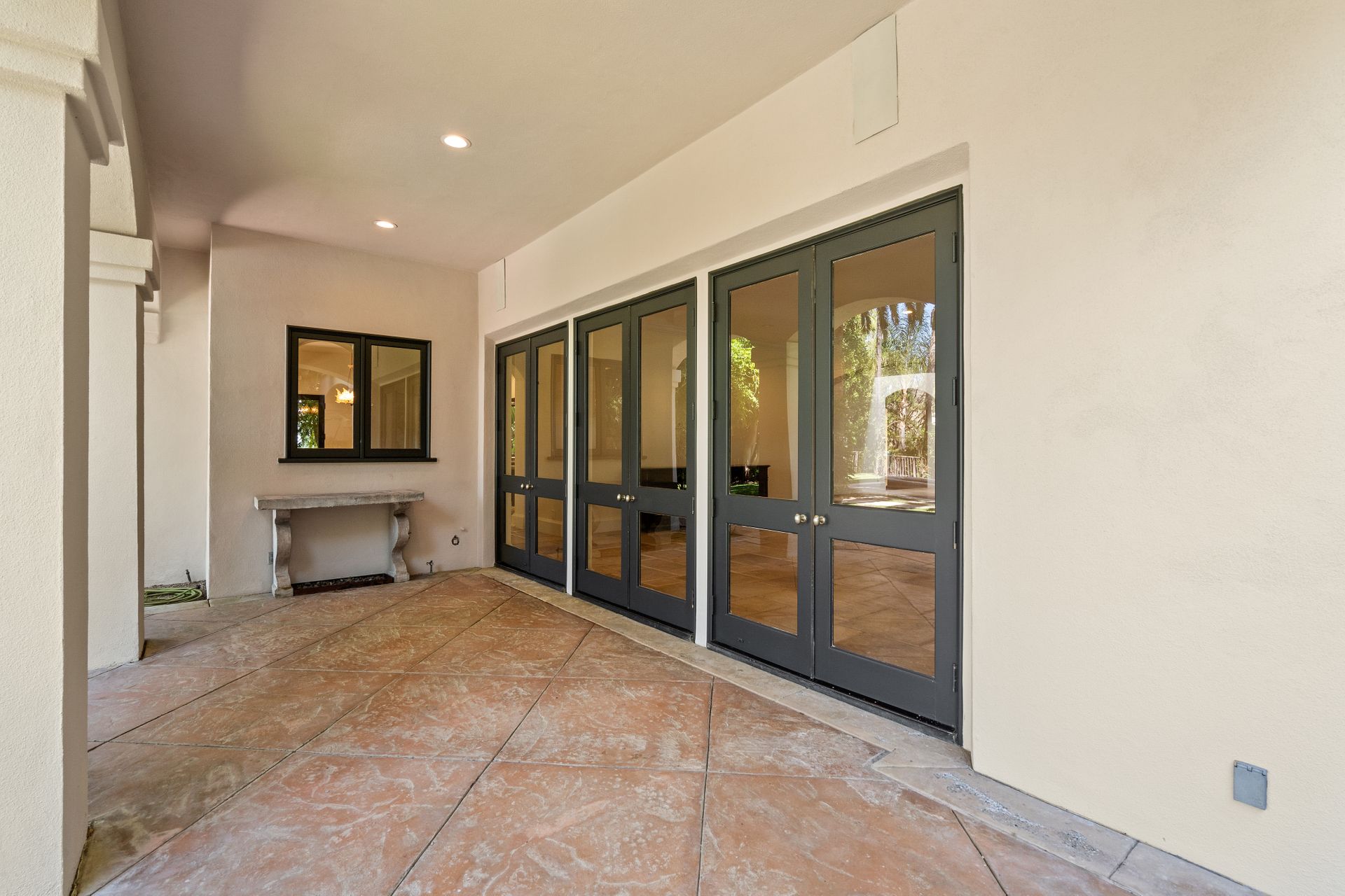 Luxurious six-bedroom, seven-bathroom estate for lease in the coveted Mulholland Estates. Set privately behind a 24/7 security-monitored gate, this home has 6,965 sf of living space on a 26,165 sf lot with a pool and private tennis court positioned from North to South. Mediterranean in design, the ground floor includes a large formal living room and fireplace, a formal dining room with seating for 12, a butler's pantry, a built-in wet bar, a generously sized family room that includes a fireplace, a maid's room with an en-suite bathroom, an office, and a powder room. The grand kitchen is outfitted with a large stone island, professional-grade Wolf range and grill, and plenty of space for breakfast seating. The master suite is located upstairs with a large fireplace and french doors opening to the balcony overlooking a beautiful and private yard. Dual en-suite bathrooms with walk-in closets flank the master bedroom and include amenities such as a soaking tub, steam shower, spacious vanities, industrial-grade safe and water closets. Three additional guest bedrooms complete the second floor with en-suite baths and a library. High ceilings and newly refinished hardwood floors create a warm and inviting experience throughout the home. A gorgeous and tranquil backyard is complete with a pool, hot tub, water slide, and waterfall. The private tennis court has recently been resurfaced and upgraded. Three-car garage. Mulholland Estates offers additional tennis courts, pickle, basketball, squash, and racquetball courts, as well as a playground and community center.