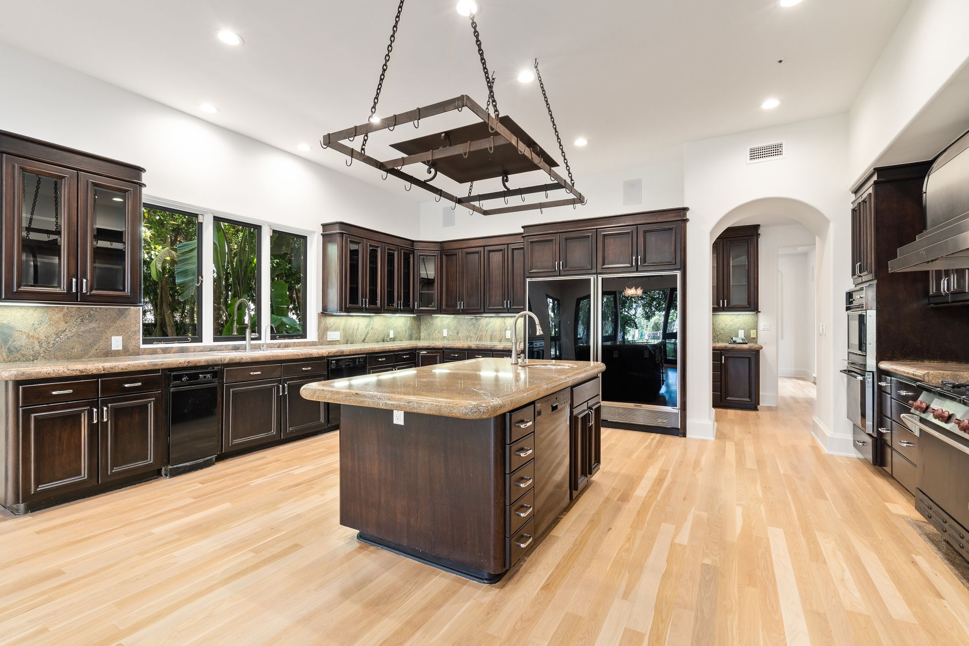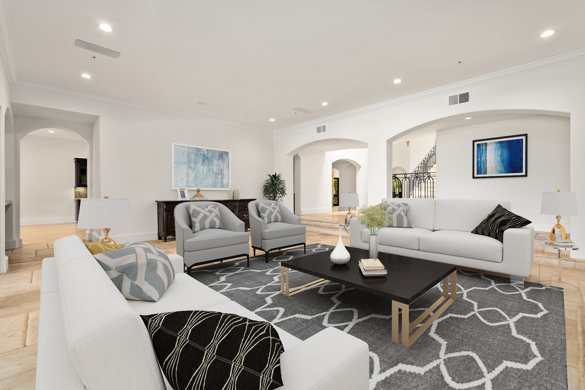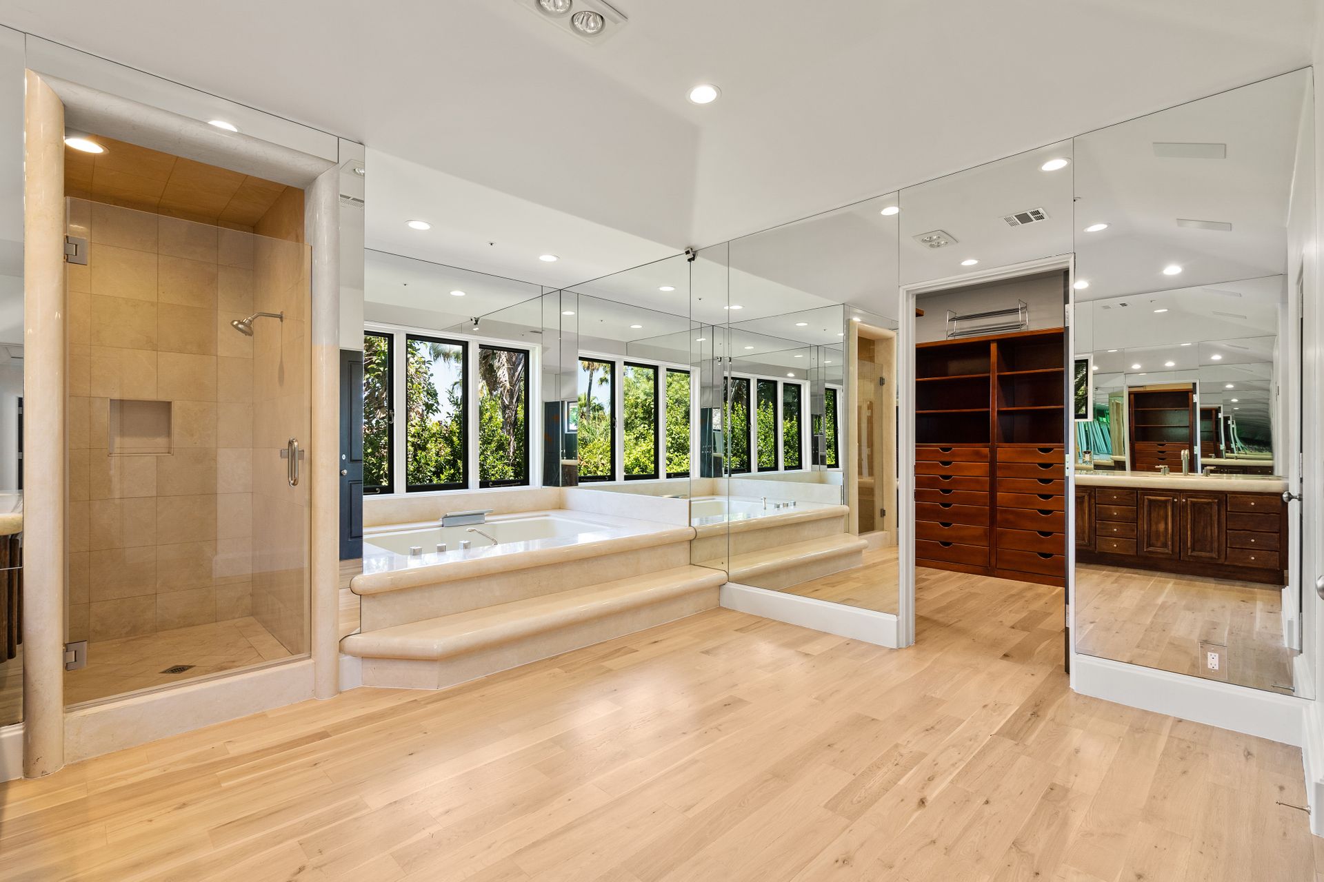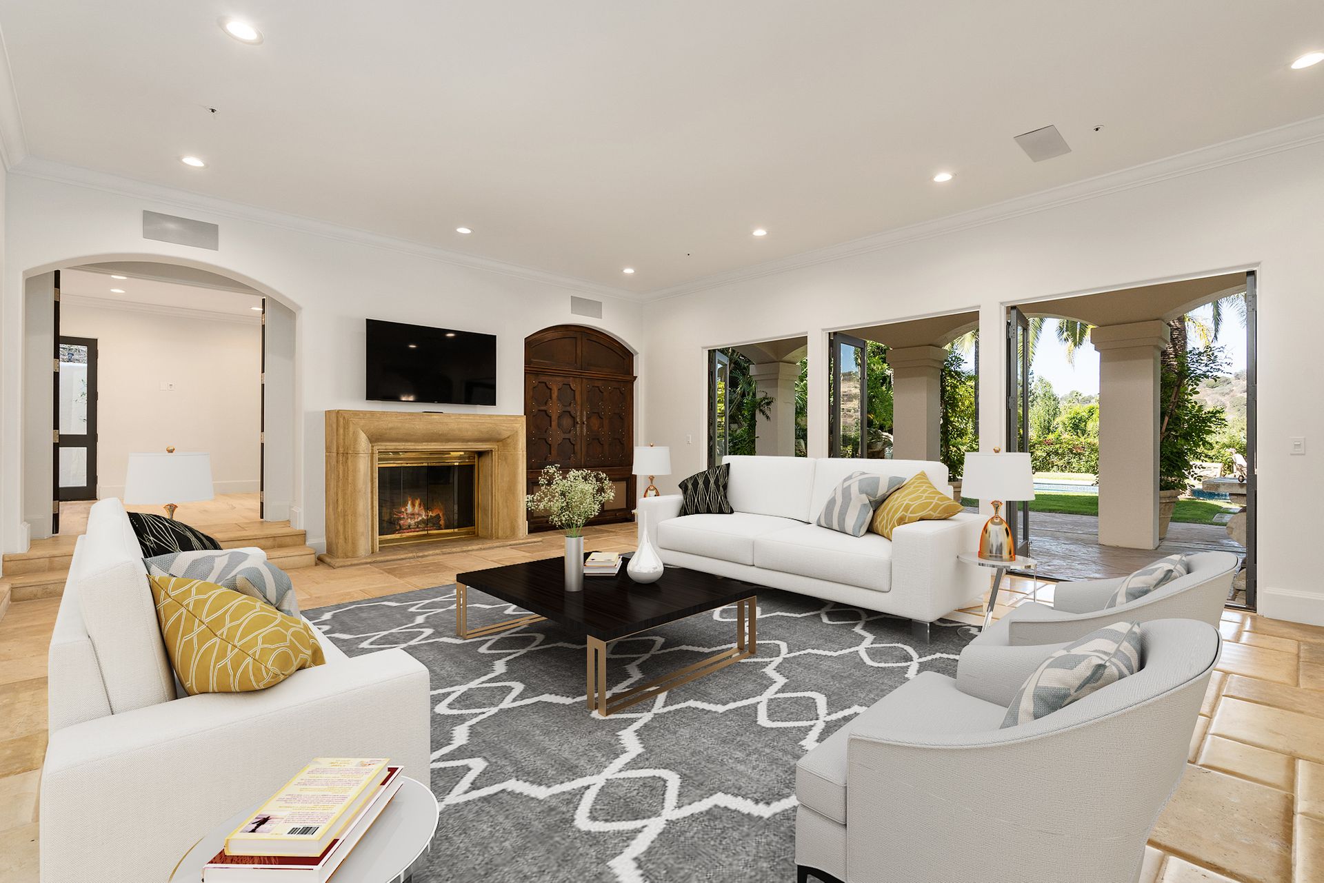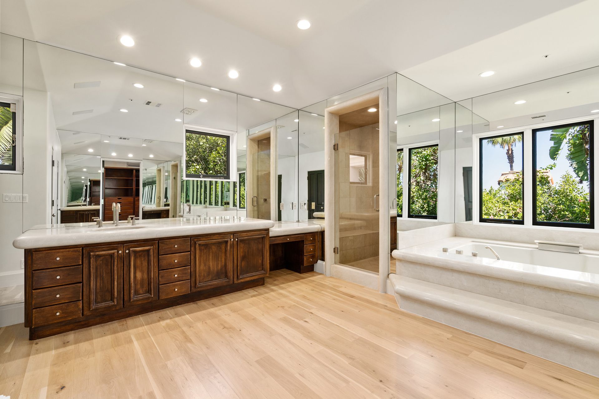 Luxurious six-bedroom, seven-bathroom estate for lease in the coveted Mulholland Estates. Set privately behind a 24/7 security-monitored gate, this home has 6,965 sf of living space on a 26,165 sf lot with a pool and private tennis court positioned from North to South. Mediterranean in design, the ground floor includes a large formal living room and fireplace, a formal dining room with seating for 12, a butler's pantry, a built-in wet bar, a generously sized family room that includes a fireplace, a maid's room with an en-suite bathroom, an office, and a powder room. The grand kitchen is outfitted with a large stone island, professional-grade Wolf range and grill, and plenty of space for breakfast seating. The master suite is located upstairs with a large fireplace and french doors opening to the balcony overlooking a beautiful and private yard. Dual en-suite bathrooms with walk-in closets flank the master bedroom and include amenities such as a soaking tub, steam shower, spacious vanities, industrial-grade safe and water closets. Three additional guest bedrooms complete the second floor with en-suite baths and a library. High ceilings and newly refinished hardwood floors create a warm and inviting experience throughout the home. A gorgeous and tranquil backyard is complete with a pool, hot tub, water slide, and waterfall. The private tennis court has recently been resurfaced and upgraded. Three-car garage. Mulholland Estates offers additional tennis courts, pickle, basketball, squash, and racquetball courts, as well as a playground and community center.