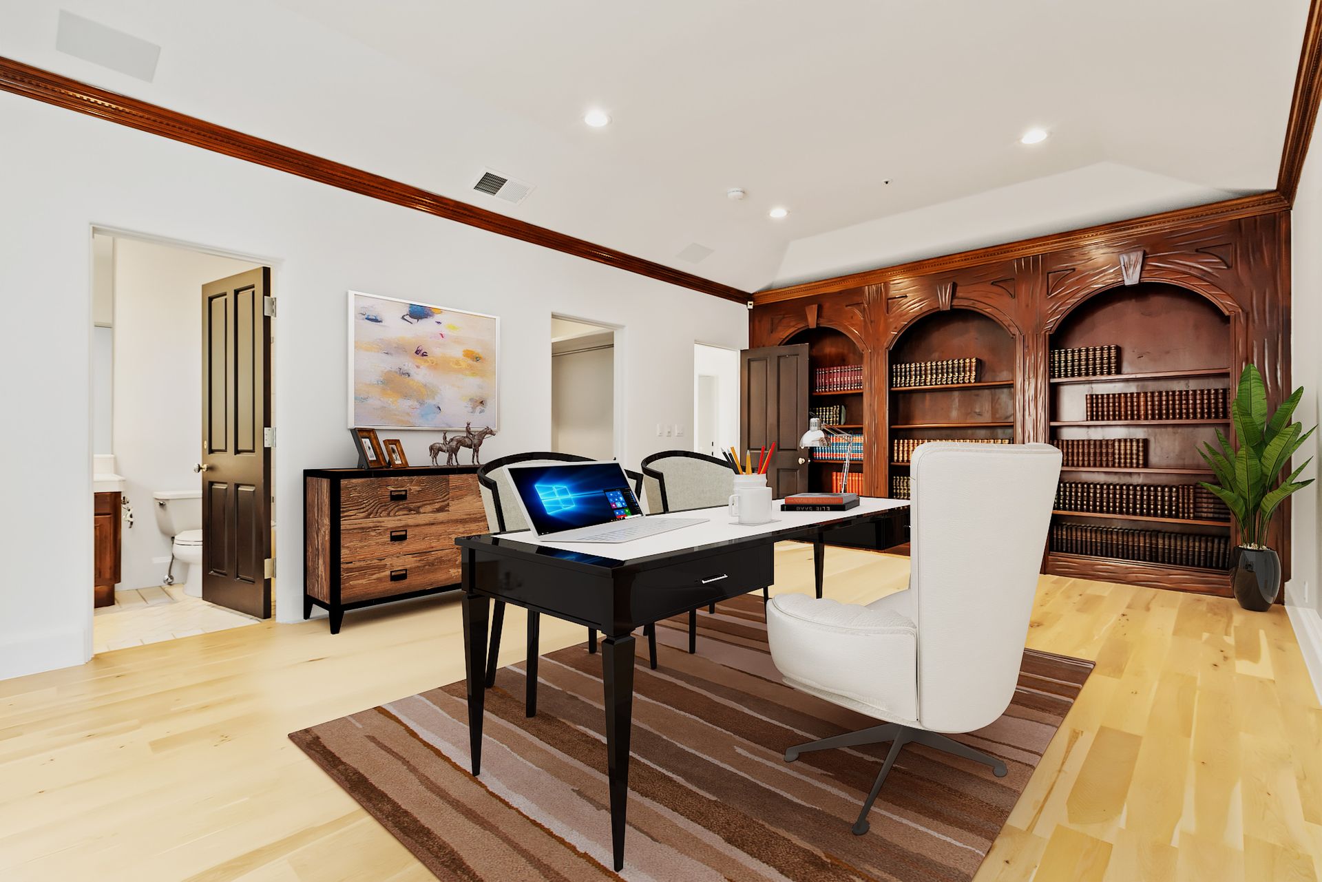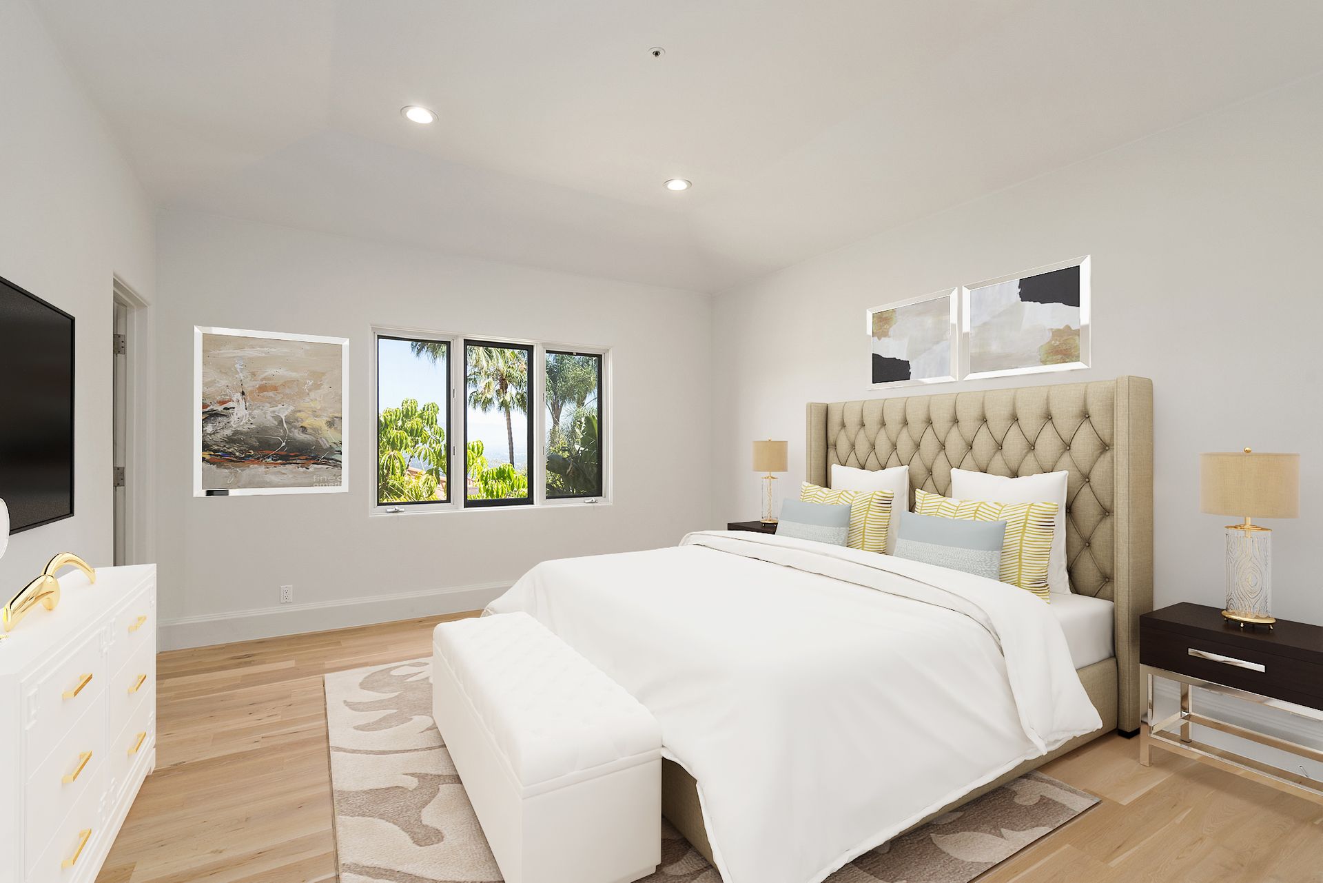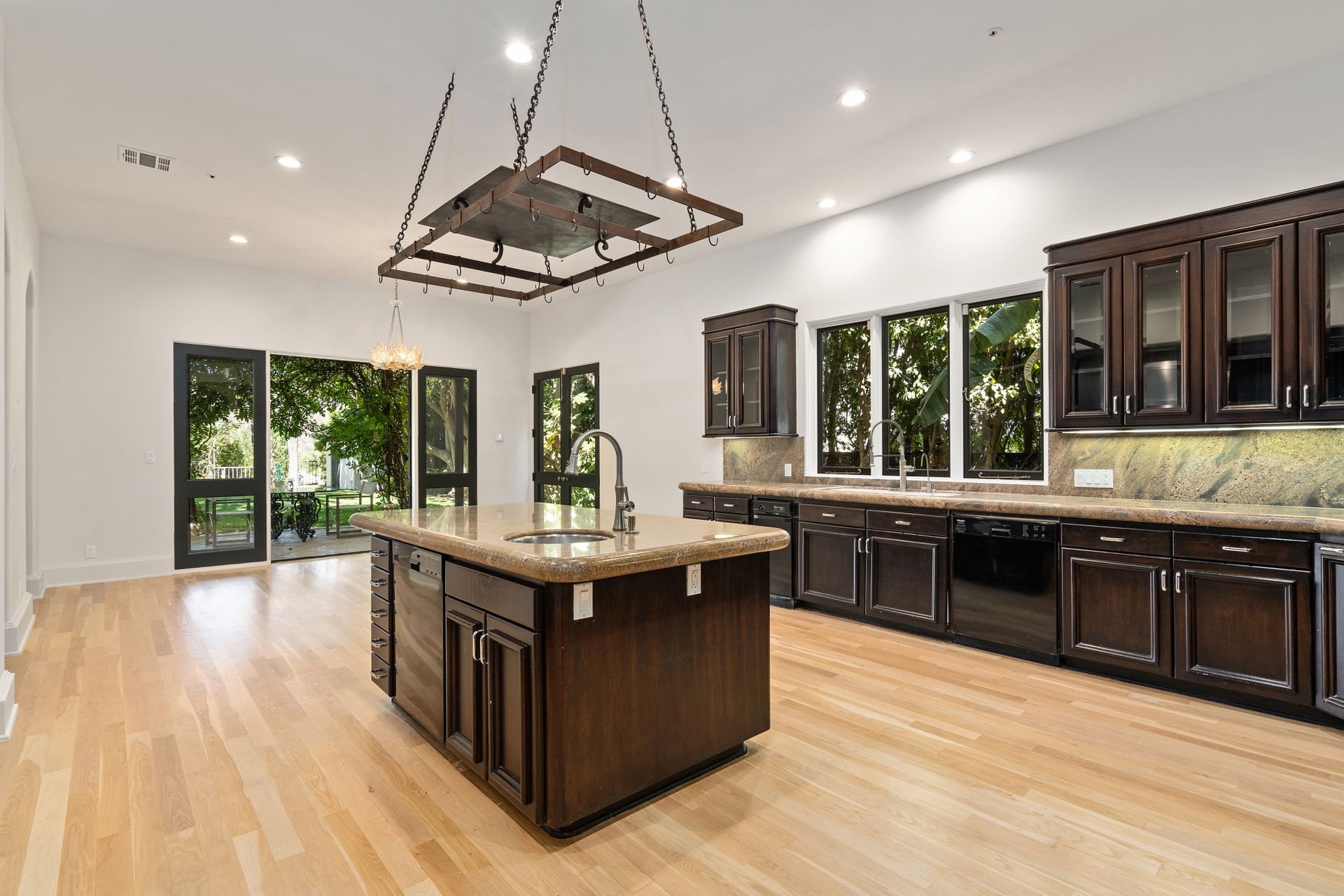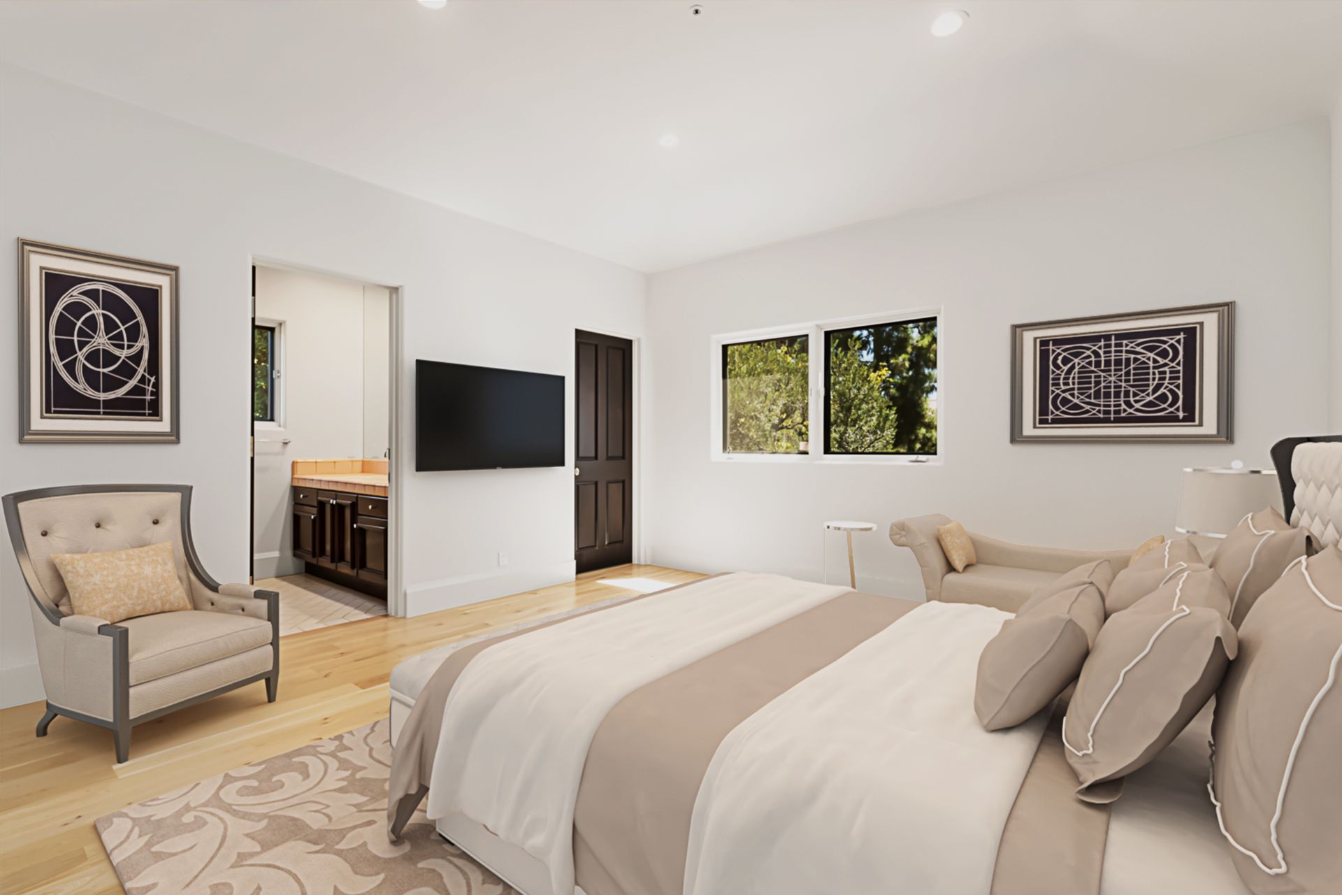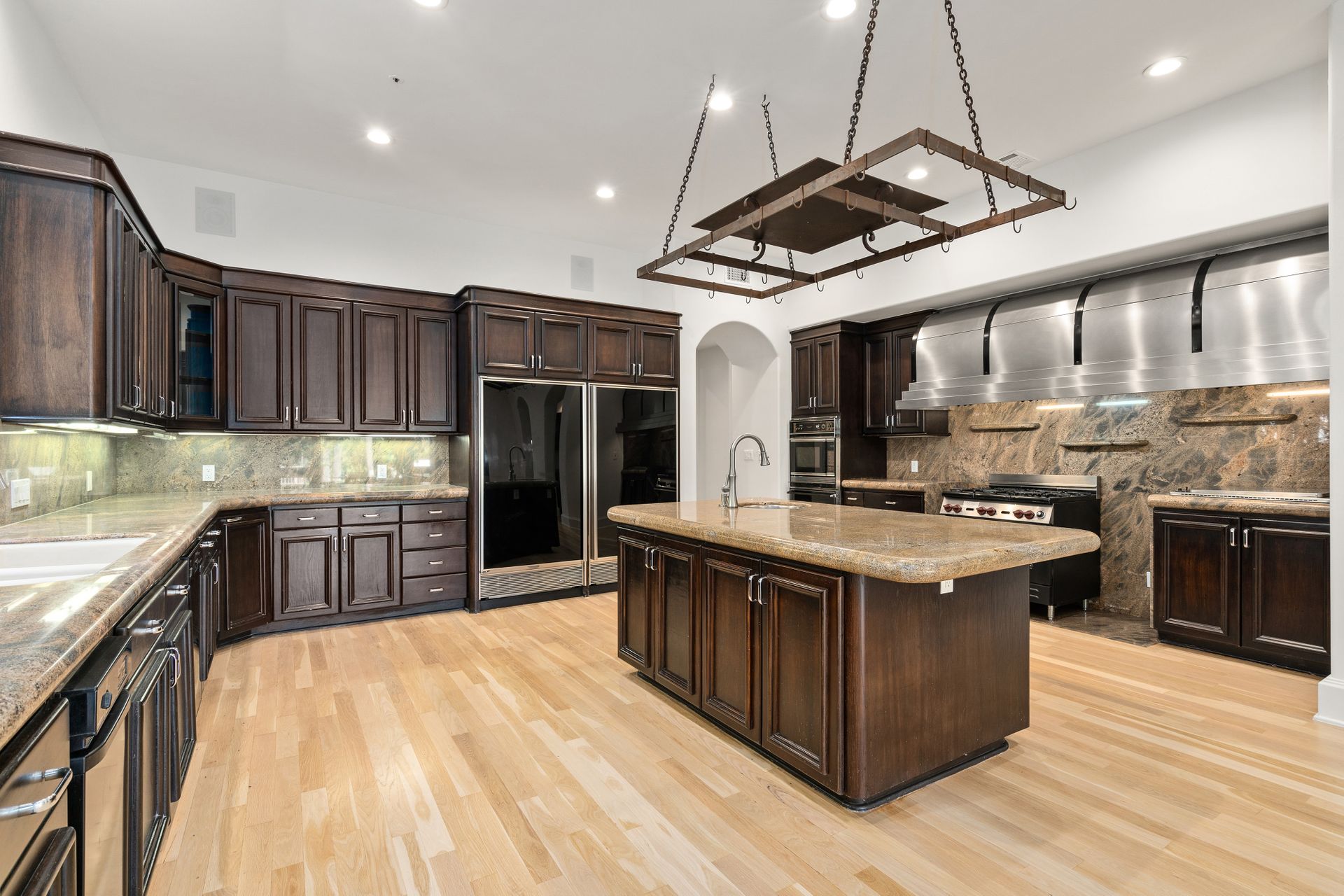Luxurious six-bedroom, seven-bathroom estate for lease in the coveted Mulholland Estates. Set privately behind a 24/7 security-monitored gate, this home has 6,965 sf of living space on a 26,165 sf lot with a pool and private tennis court positioned from North to South. Mediterranean in design, the ground floor includes a large formal living room and fireplace, a formal dining room with seating for 12, a butler's pantry, a built-in wet bar, a generously sized family room that includes a fireplace, a maid's room with an en-suite bathroom, an office, and a powder room. The grand kitchen is outfitted with a large stone island, professional-grade Wolf range and grill, and plenty of space for breakfast seating. The master suite is located upstairs with a large fireplace and french doors opening to the balcony overlooking a beautiful and private yard. Dual en-suite bathrooms with walk-in closets flank the master bedroom and include amenities such as a soaking tub, steam shower, spacious vanities, industrial-grade safe and water closets. Three additional guest bedrooms complete the second floor with en-suite baths and a library. High ceilings and newly refinished hardwood floors create a warm and inviting experience throughout the home. A gorgeous and tranquil backyard is complete with a pool, hot tub, water slide, and waterfall. The private tennis court has recently been resurfaced and upgraded. Three-car garage. Mulholland Estates offers additional tennis courts, pickle, basketball, squash, and racquetball courts, as well as a playground and community center.