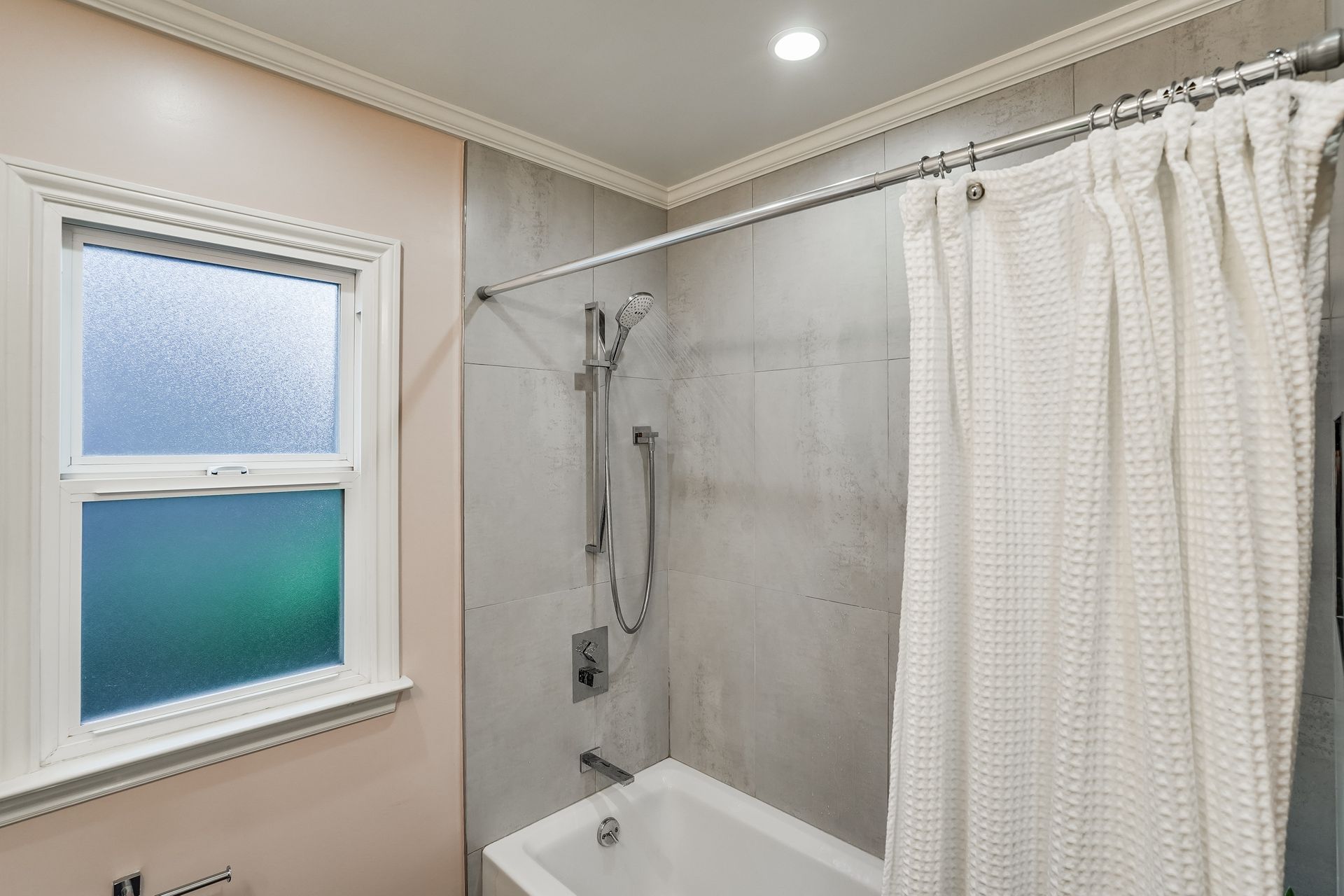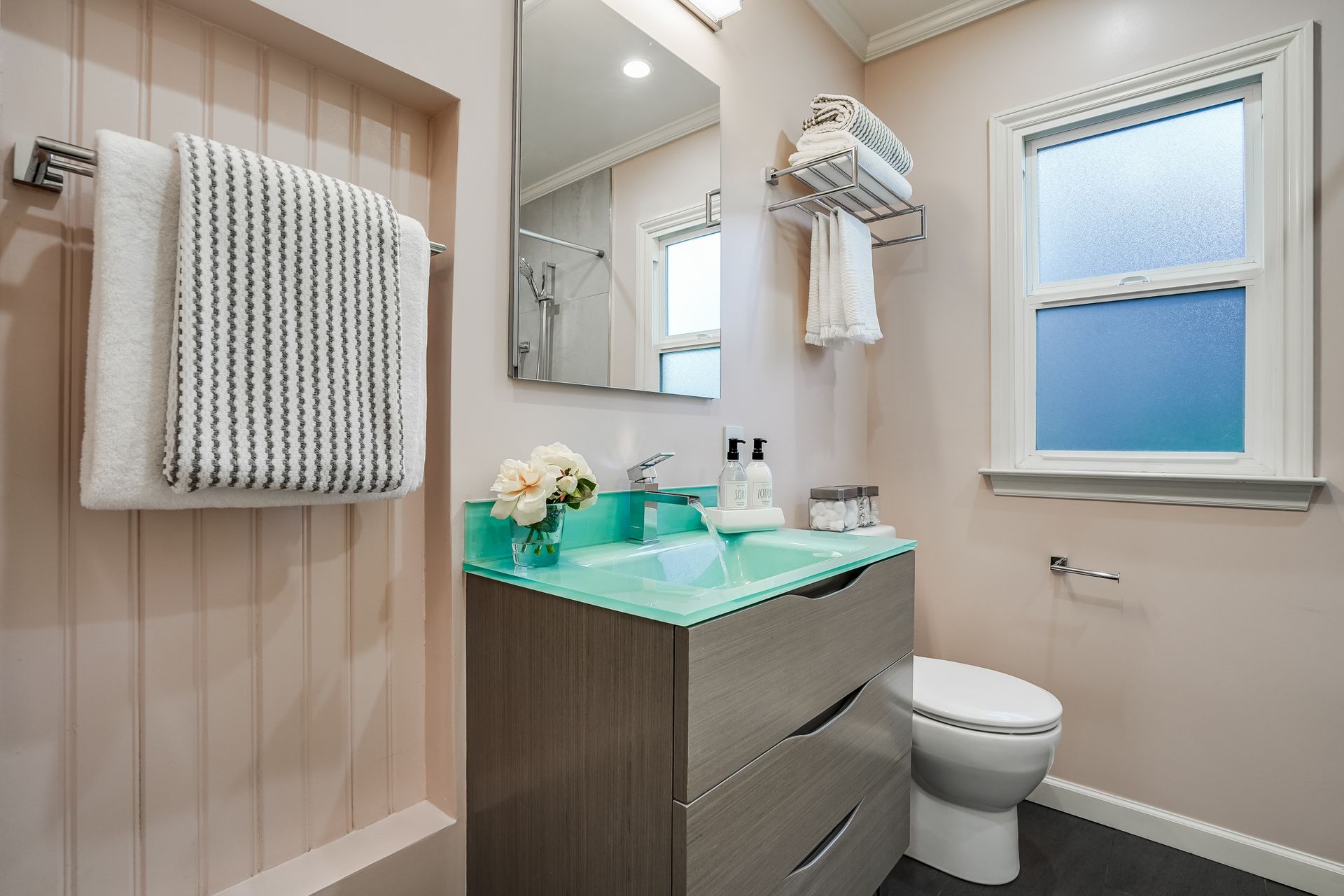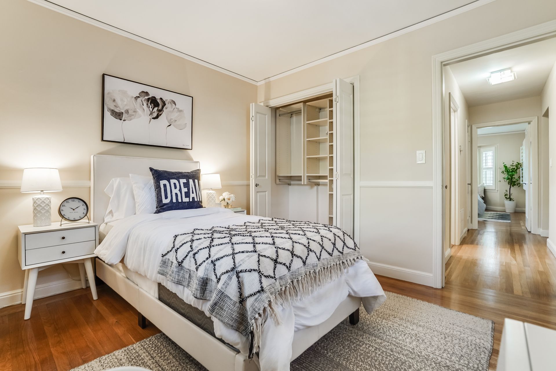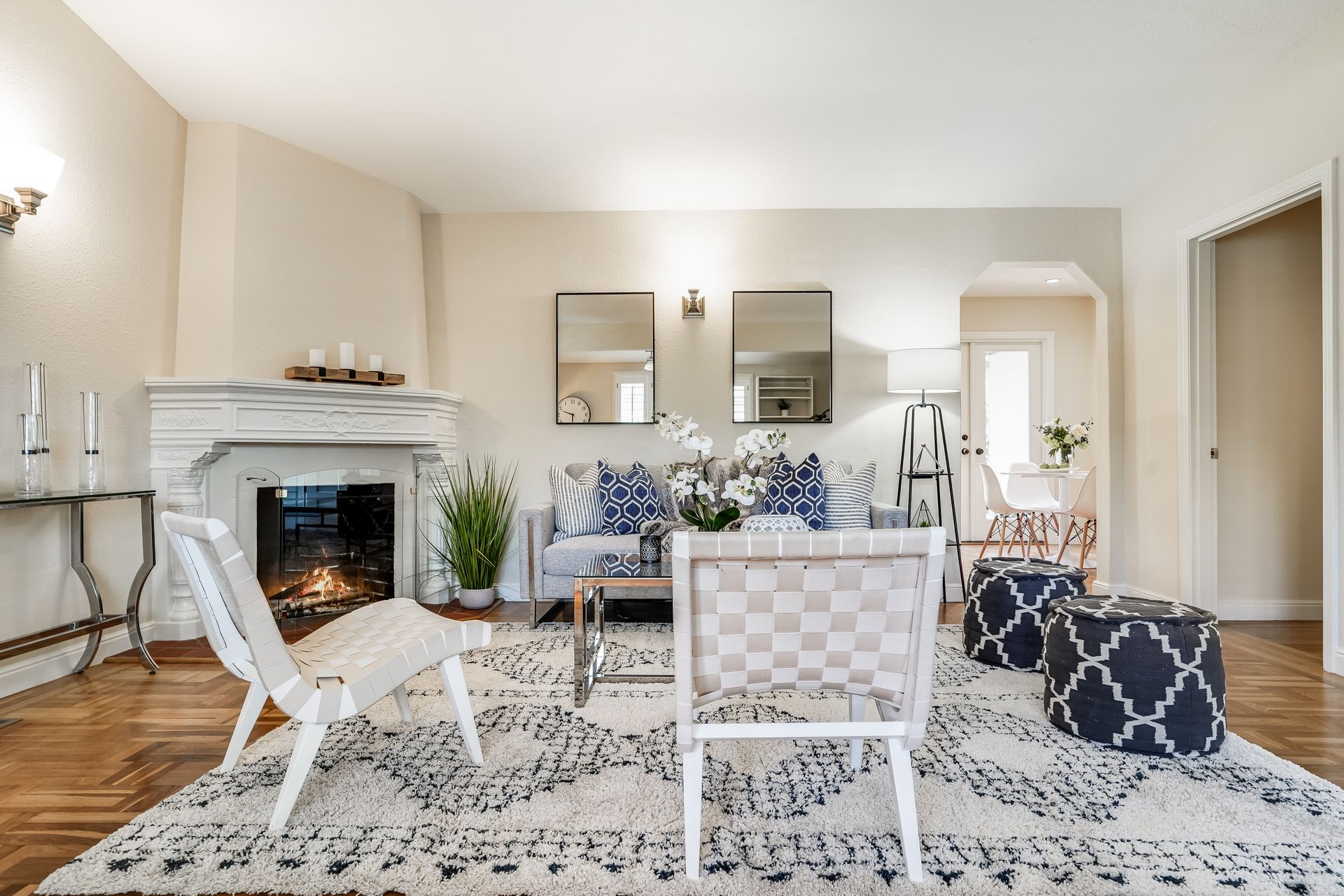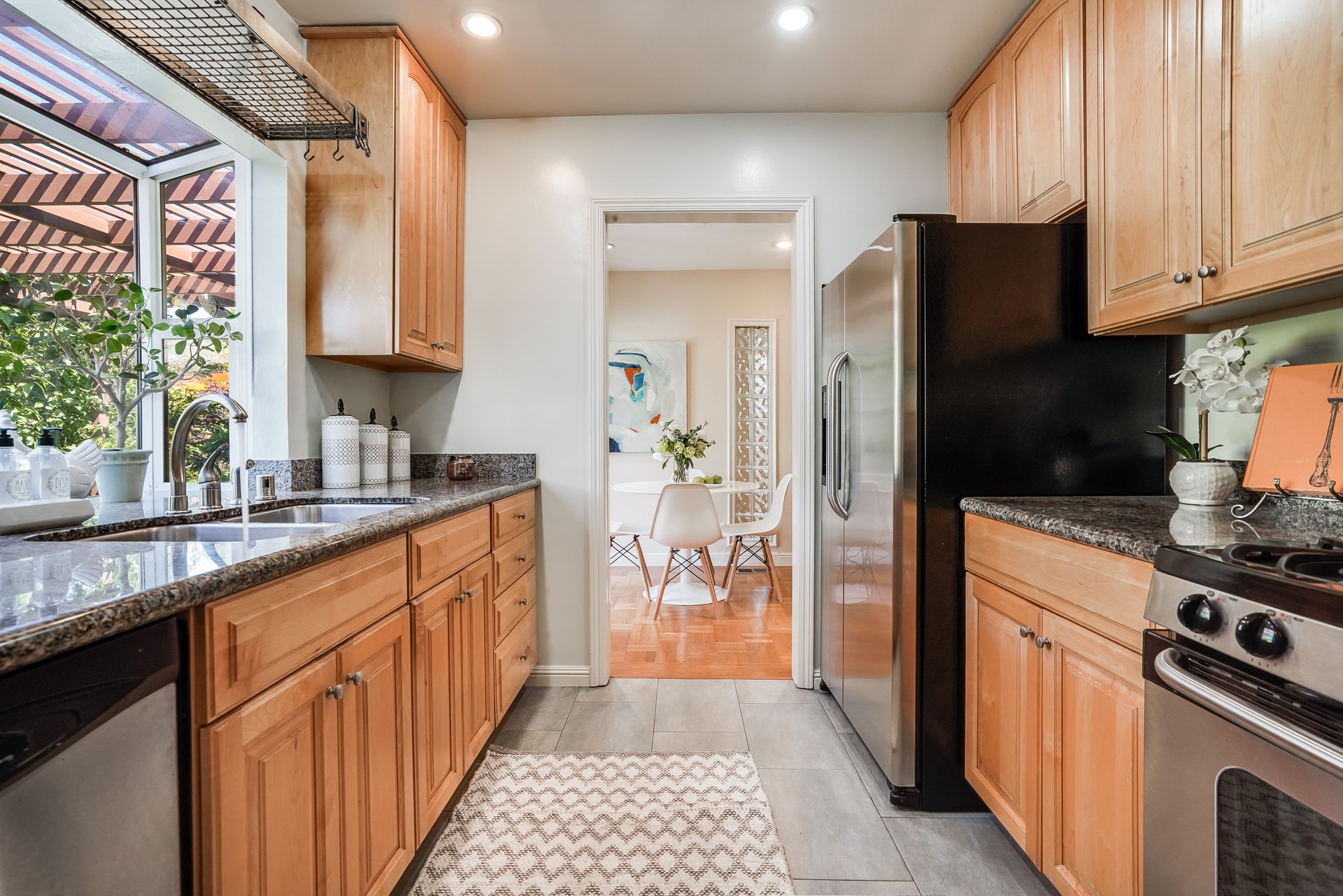 The formal dining room has French doors that lead out to a deck overlooking the private and peaceful backyard with fruit trees. You'll find a bay window overlooking the front yard in the master bedroom. The bathrooms are tastefully upgraded, featuring Italian Porcelanosa tile.
