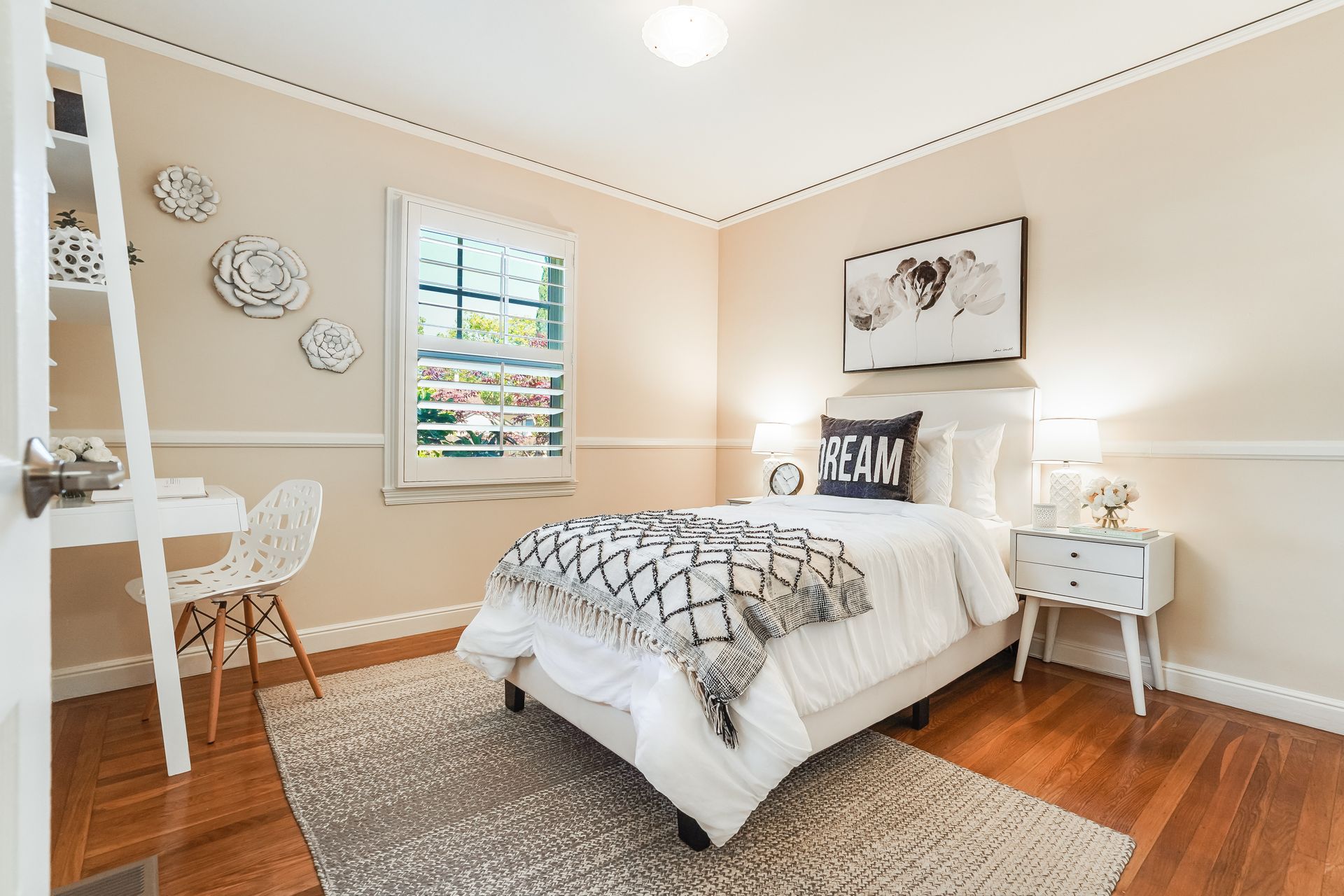 High/vaulted ceilings, beautiful hardwood floors, dual pane, plantation shutters and more. Newer interior paint and water heater.