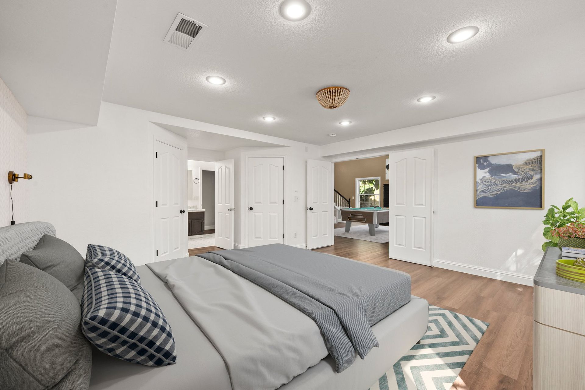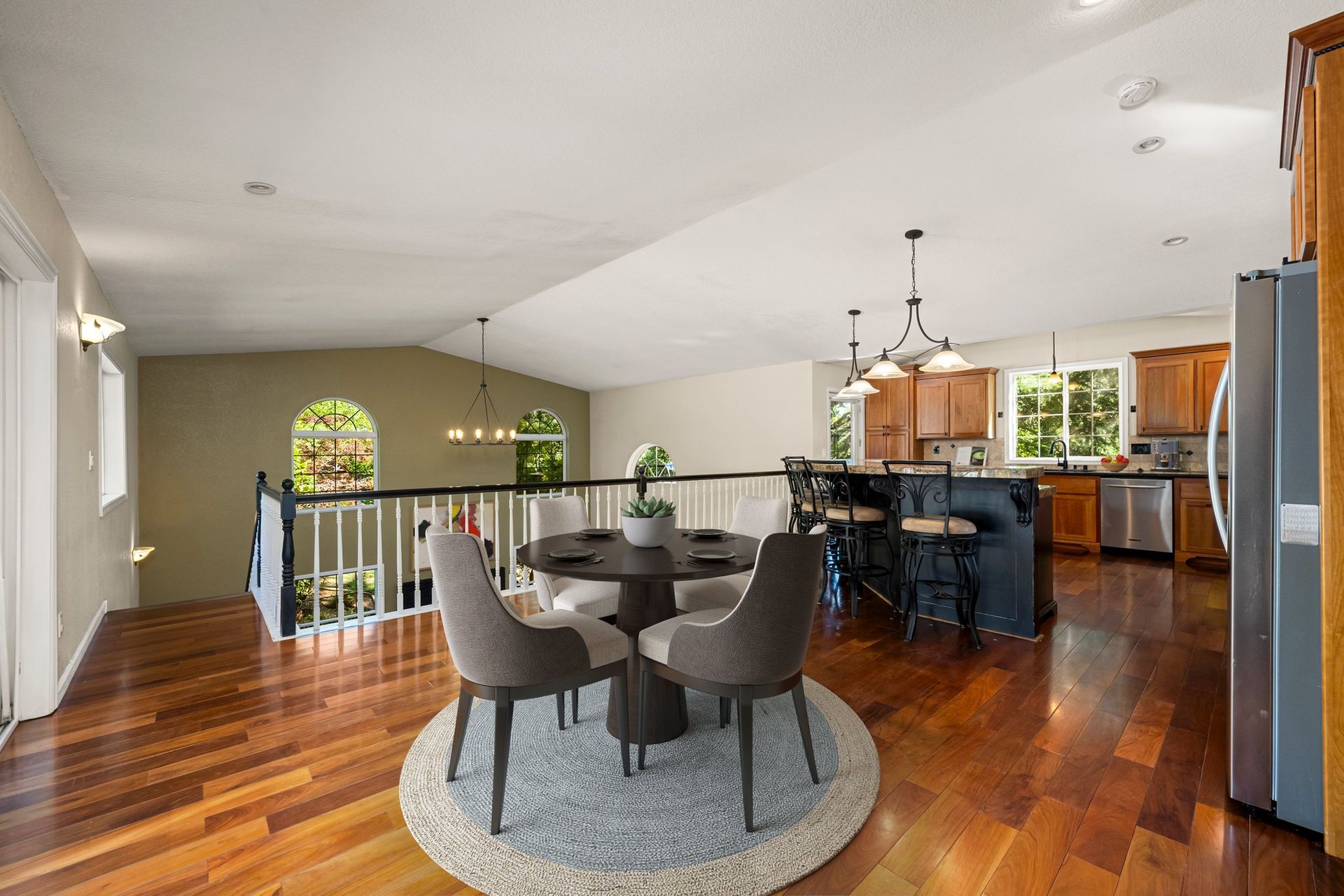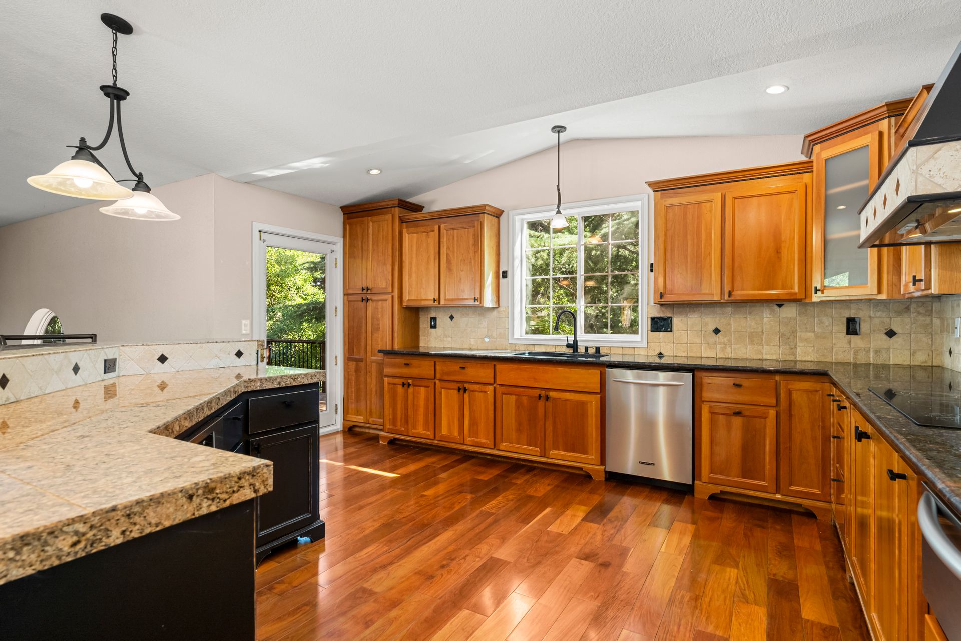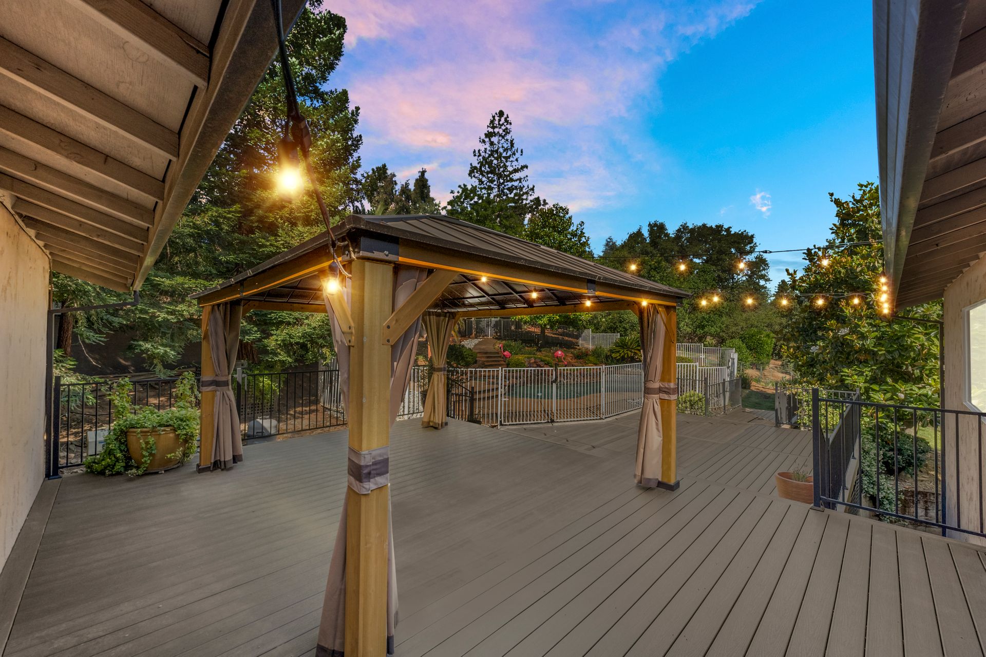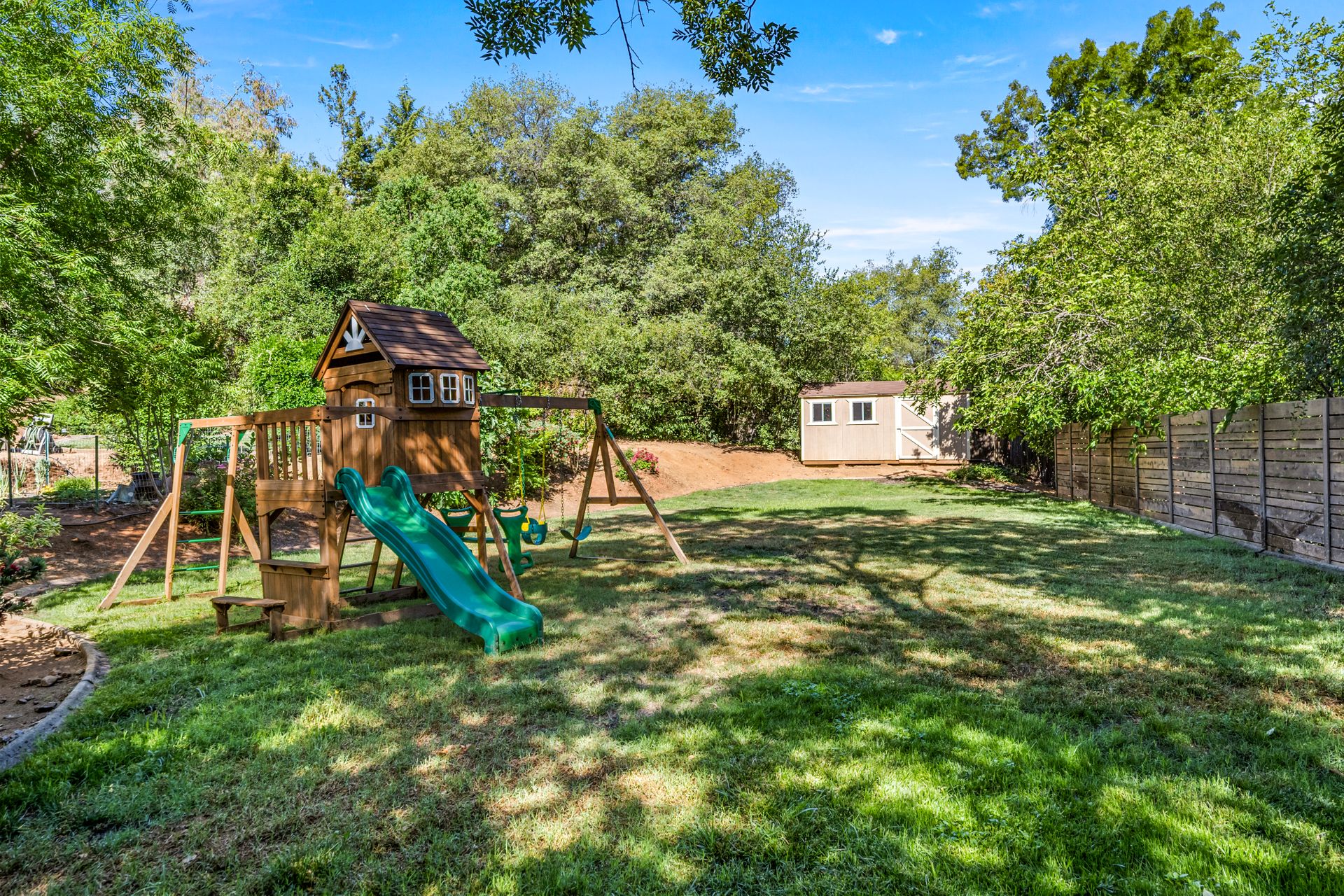 This MULTI-LEVEL HOME features approximately 2,800 square feet with TWO PRIMARY SUITES, one on each level. The great room concept offers extended wood flooring and a TREEHOUSE-LIKE AMBIANCE surrounded with many windows to bring in the views. It flows to a beautiful kitchen with a large island, updated appliances and granite countertops. The gorgeous upstairs primary suite has a "chic" primary bath with a barn door entry and a fabulous walk-in closet with custom features. There is an additional bedroom and full bath on the main level too. Downstairs has a spacious BONUS ROOM with high ceilings, a fireplace, built-in cabinetry, a newer inside laundry room and an office space along with the second primary suite. Upscale lighting, luxury vinyl plank flooring and fresh interior paint fill much of the interior. The PRIVATE, PARK-LIKE approximately 0.54 acre PARCEL with a BUILT-IN POOL, SPA, GAZEBO, PLAY STRUCTURE, SHED and lots of maintenance free decking is for outdoor enjoyment and large scale entertaining. There is plenty of room ideal for a large garden too. Enjoy a two-car garage and solar! There is additional parking/possible RV space and plenty of storage. The home is located minutes to Cameron Park Lake recreation and Cameron Park Country Club for the golf enthusiast! Love Where you Live! Comfortable and Convenient Living in Cameron Park!