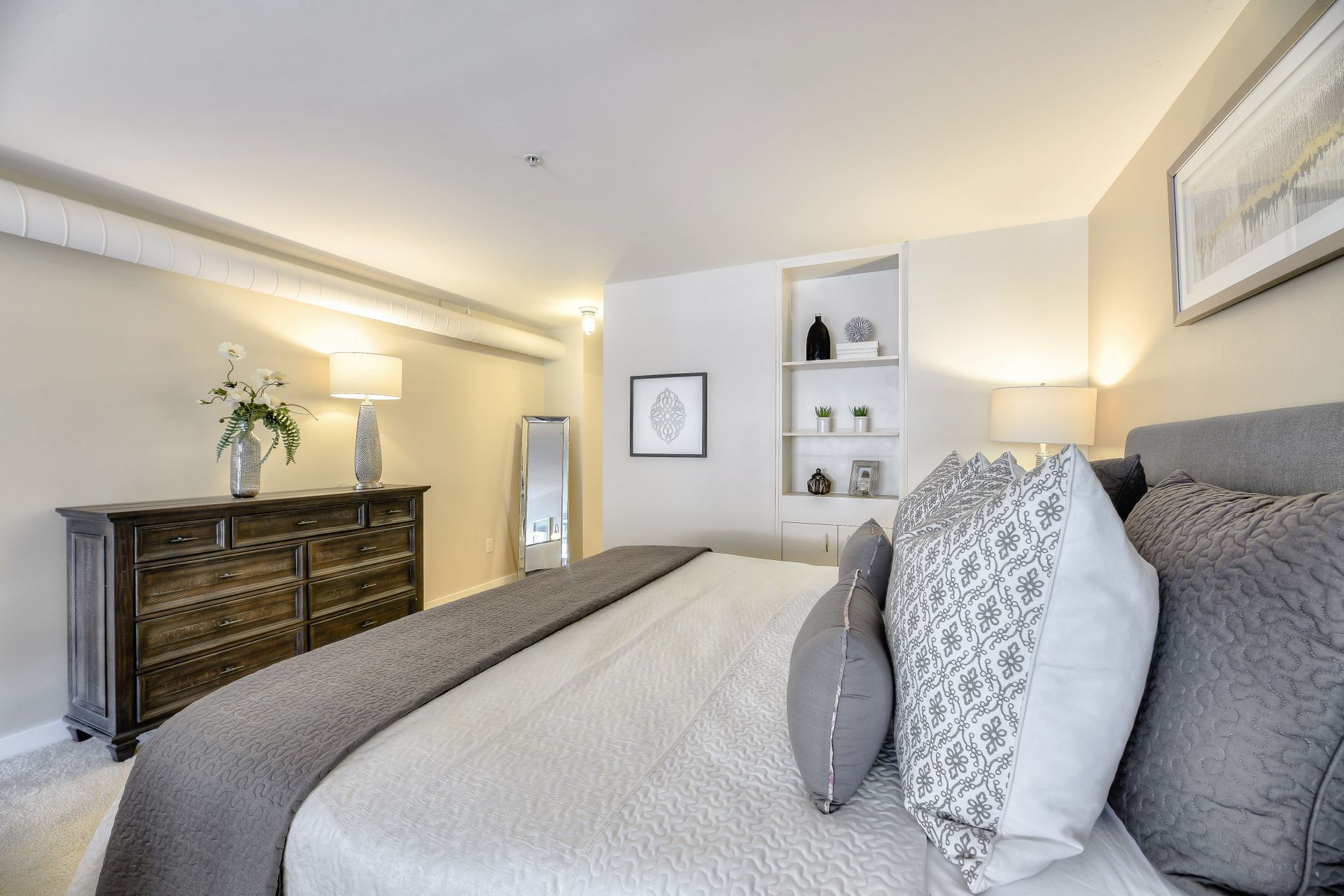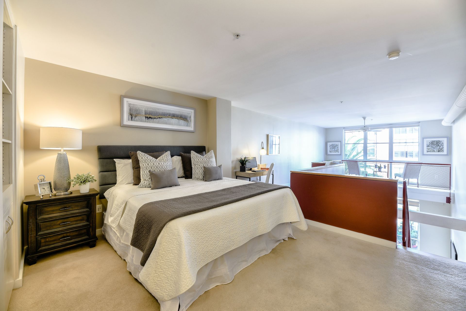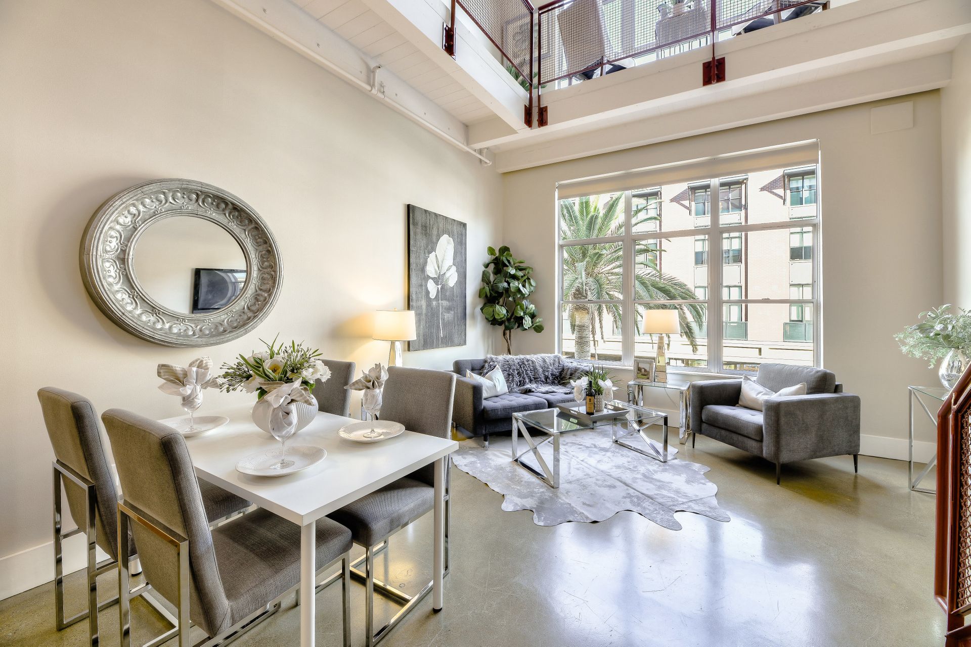 This Santana Row loft-style home offers the best in urban style living! This unit, in a prime location, has it all! East facing with morning sunlight, this expansive and modern second-floor home showcases soaring 22 foot ceilings in a light-filled, open and spacious floor plan. The primary living area has incredible floor-to-ceiling windows boasting breathtaking and picturesque views of Santana Row’s renowned main street! This rare and most sought-after floor plan includes a catwalk on the upper floor which is ideal for sipping wine or coffee while people watching! The generously scaled master bedroom loft offers an extra-large walk-in closet, a laundry closet and a dual-vanity bathroom with granite countertops. The first floor also features a second bedroom and half bath. An array of extraordinary dining experiences, entertainment, a gym, spas and an abundance of shopping are at your doorstep. Enjoy convenient access to commute routes and secured garage access with an allocated parking space and a private elevator for building entry. Don’t let this one slip by! Make your dream come true!