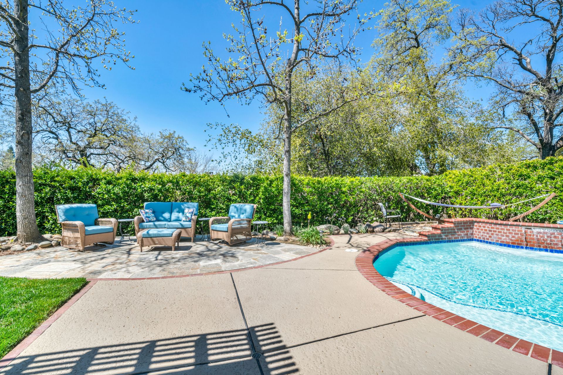 Welcome to your dream home! Updated and move-in ready with over 3200 sq ft on nearly .25 acre. Excellent for comfortable everyday living and entertaining with oversized rooms, many social areas, spacious kitchen and spectacular backyard with sparkling pool. Inviting landscaping and remodeled entryway highlight the open floor plan of this gorgeous home. The living room with stacked stone fireplace and dining room are bright and open. The spacious eat-in kitchen has stainless steel appliances, granite counters, white cabinets, and tasteful lighting. The adjoining family room with stacked stone fireplace is ideal. The flat backyard is amazing with multiple sitting areas, a giant swing and refreshing pool with a slide. Full bath and bedroom on the main level is ideal for visitors or home office use. Upstairs are three bedrooms and two full baths. The main bedroom is oversized with a stacked stone fireplace. The main bath offers a spa-like experience with frameless glass shower, a free standing tub, two large vanities, and a roomy dressing area connected to the large custom closet. Oversized garage will fit longer vehicles. Close to Overlook Park, shopping, restaurants, award winning schools and Folsom Lake. No HOA or Mello Roos. Come see your dream home!
