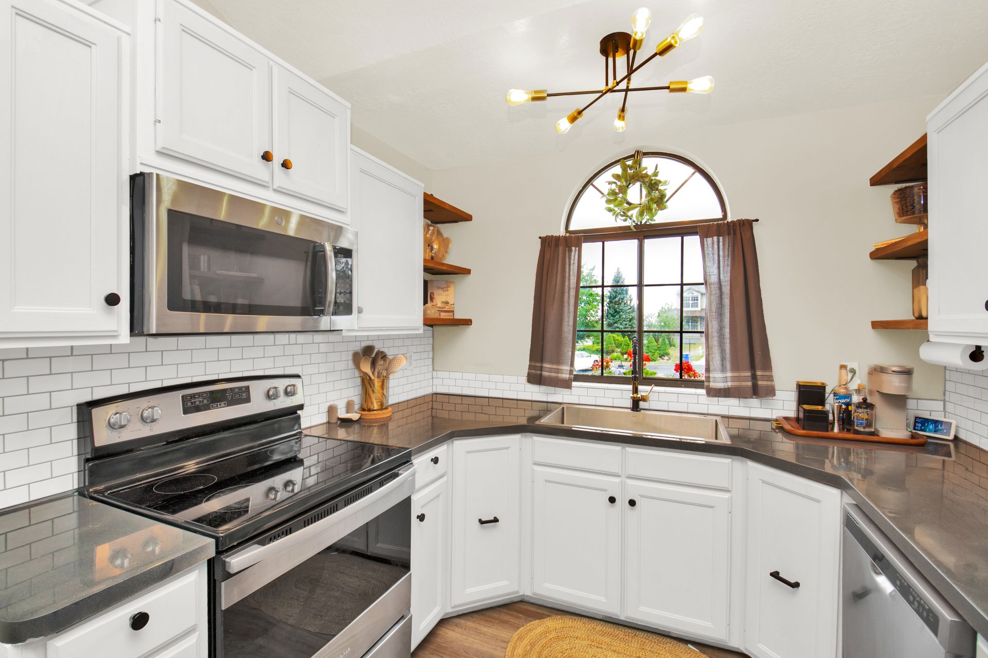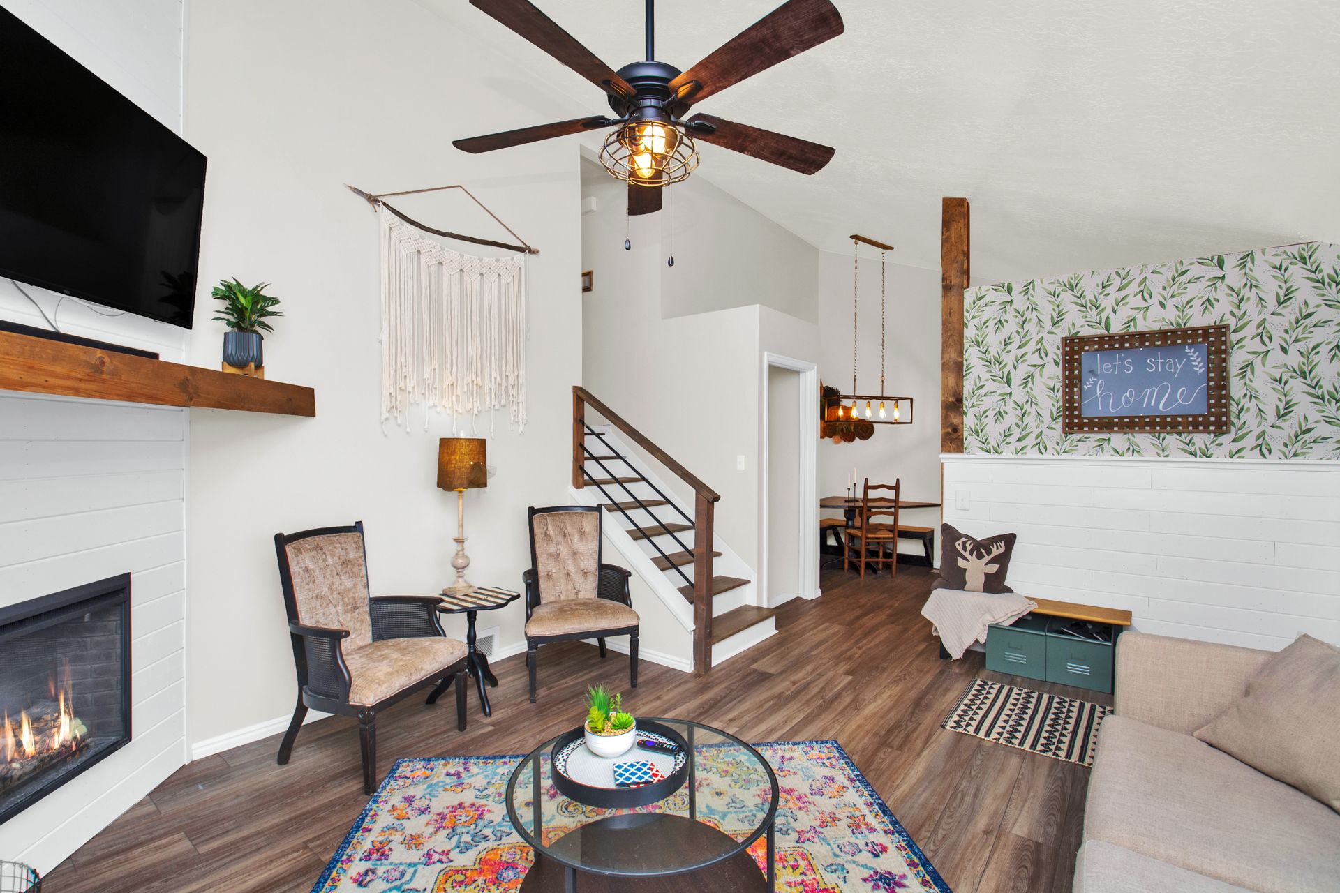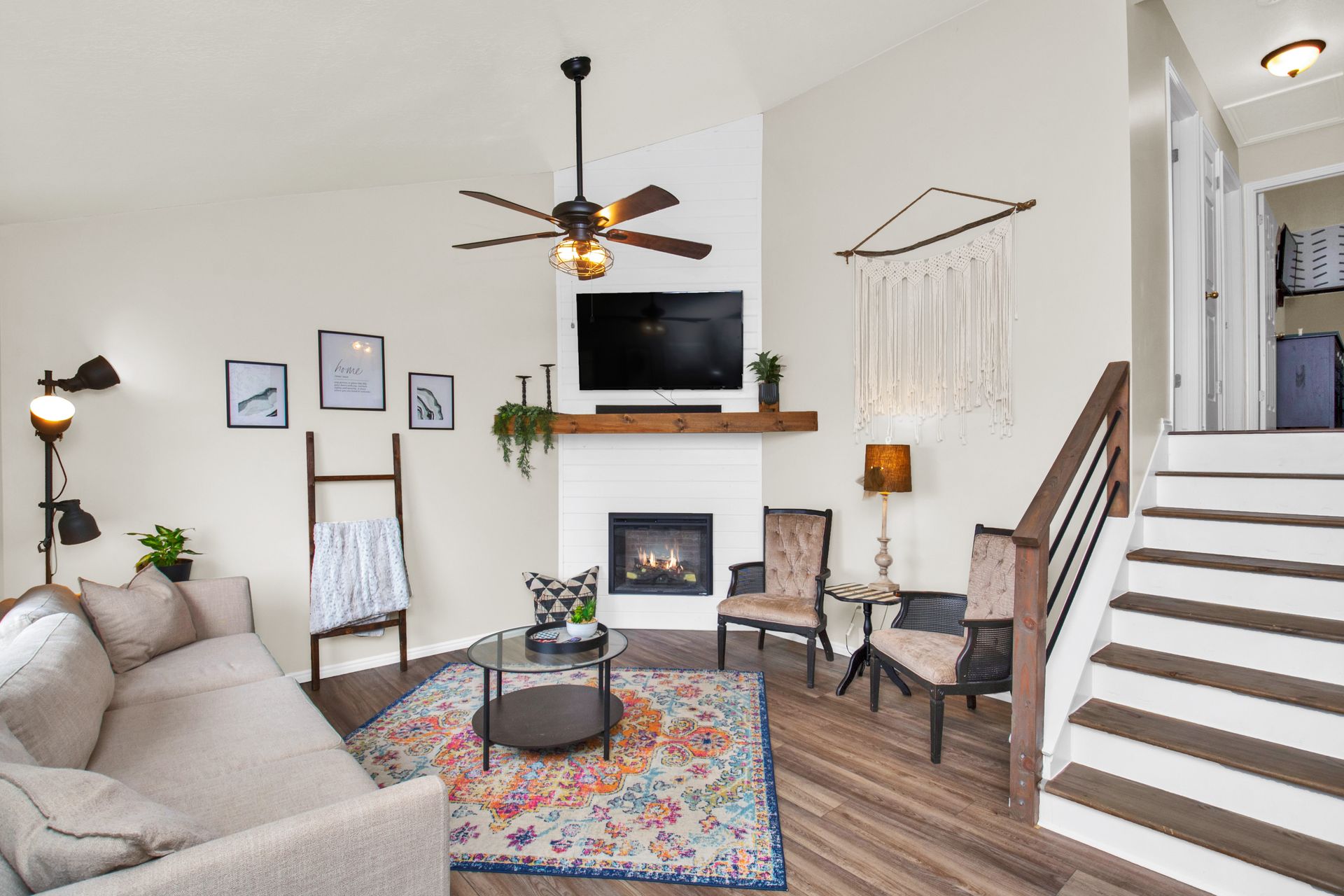 Incredible mountain views, open space common areas, nature paths, easy access to mountain recreation and a secluded serene setting await you in this well cared for and updated home that is nestled in a cul-de-sac. You will enjoy the large yard, patio with pergola, and raised garden beds while enjoying the stunning scenery. Rest easy with maintenance free living, as the current owners have done numerous upgrades that include a farmhouse sink in the kitchen, built-in seating and table for cozy conversations, newer refrigerator, furnace, hot water heater, and air conditioning condenser. This home also has newer paint, flooring, and updated bathrooms and lighting throughout. Enjoy the addition of an electric fireplace insert and hearth, and many other delightful additions. Don't hesitate to come and call this charming place home!