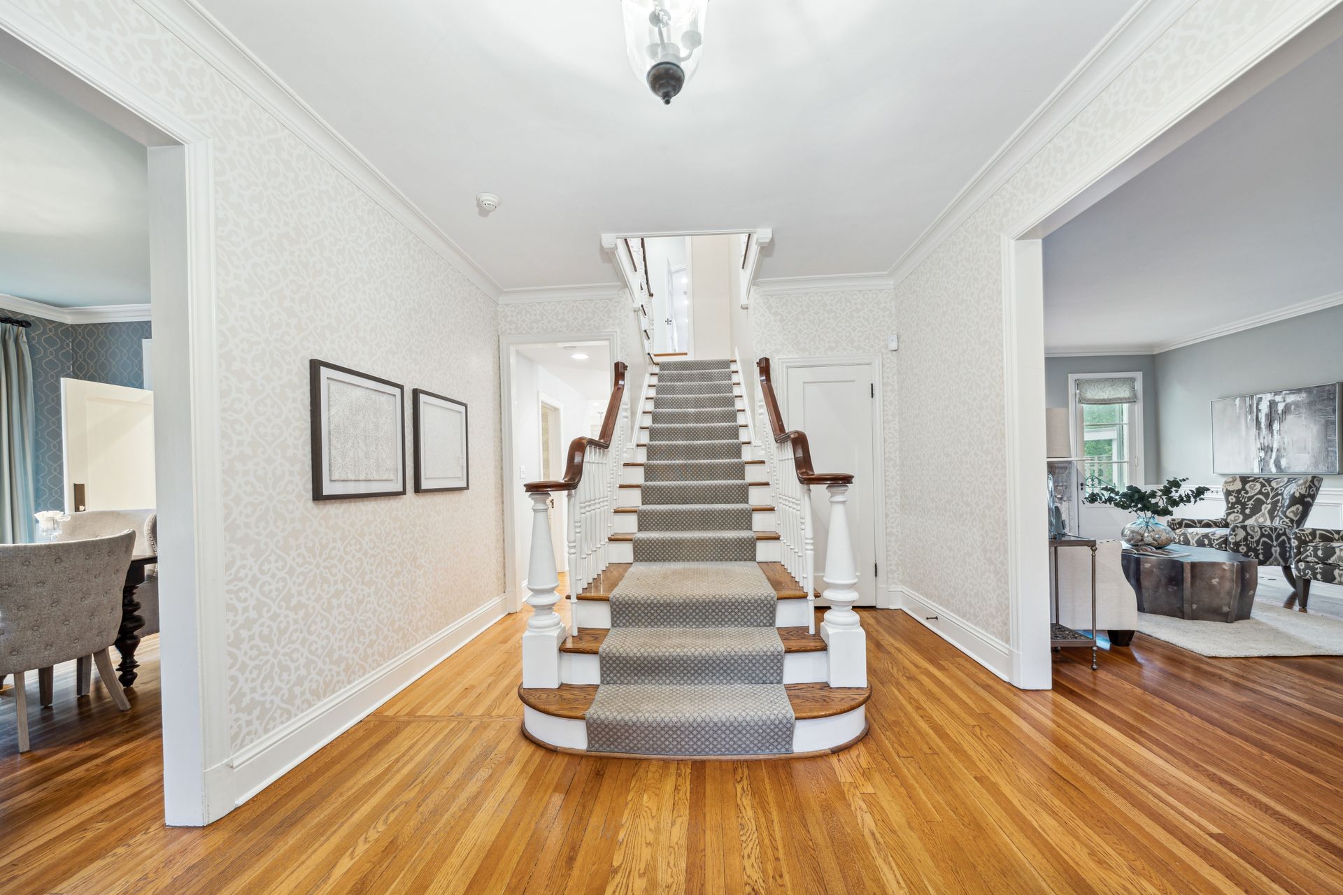 Stately and spacious four-bedroom Claverach Park gem located in the heart of Clayton with 6,150 square feet of living space on three levels. Renovated kitchen and baths, seamless three-story addition, light filled great-room with built-in bookcases and gas fireplace with a marble surround. Kitchen includes two center island marble countertops, stainless SubZero appliances, four sinks. Viking gas cooktop, wine refrigerator, and butler's pantry. Large primary suite has dressing area with walk-in closets and luxury bath with jet tub and walk-in shower with a glass door. Wood floors, three fireplaces, upstairs laundry with sink, countertop, lots of storage, wood floors, 24'x19' low maintenance deck, and two sitting rooms off bedrooms. Wonderful 11'x6' main floor sunporch, upstairs skylight, dry walled garage with heater and geothermal HVAC. All new "Pella" windows are coming soon throughout except in the three story rear addition. Four bedrooms, four baths on the second level. The lower level features a rec room, playroom, utility room, wine cellar, half bath, and pet shower. Premier location convenient to schools, shopping, restaurants, and highways. Close to the Clayton Business District.