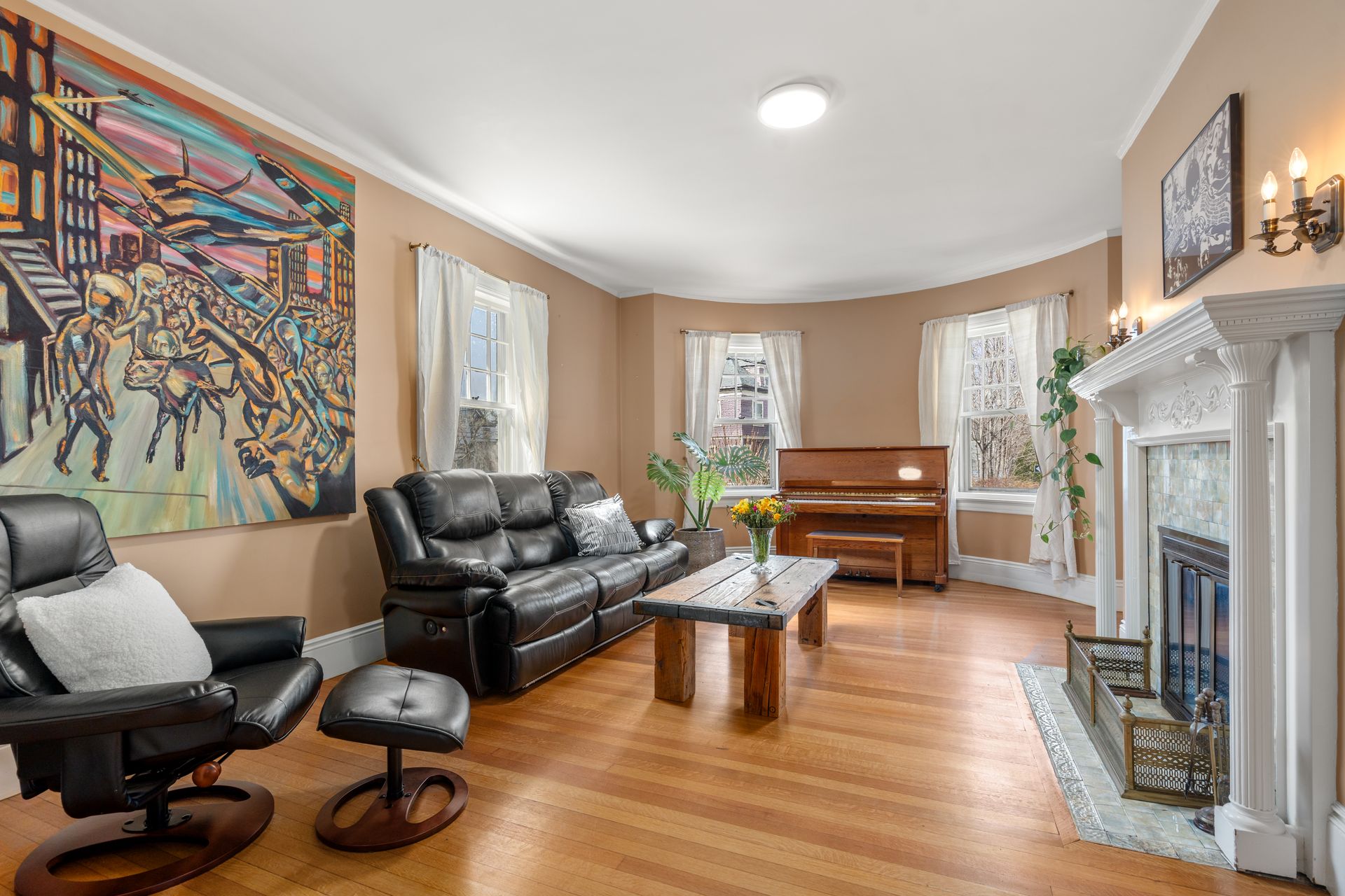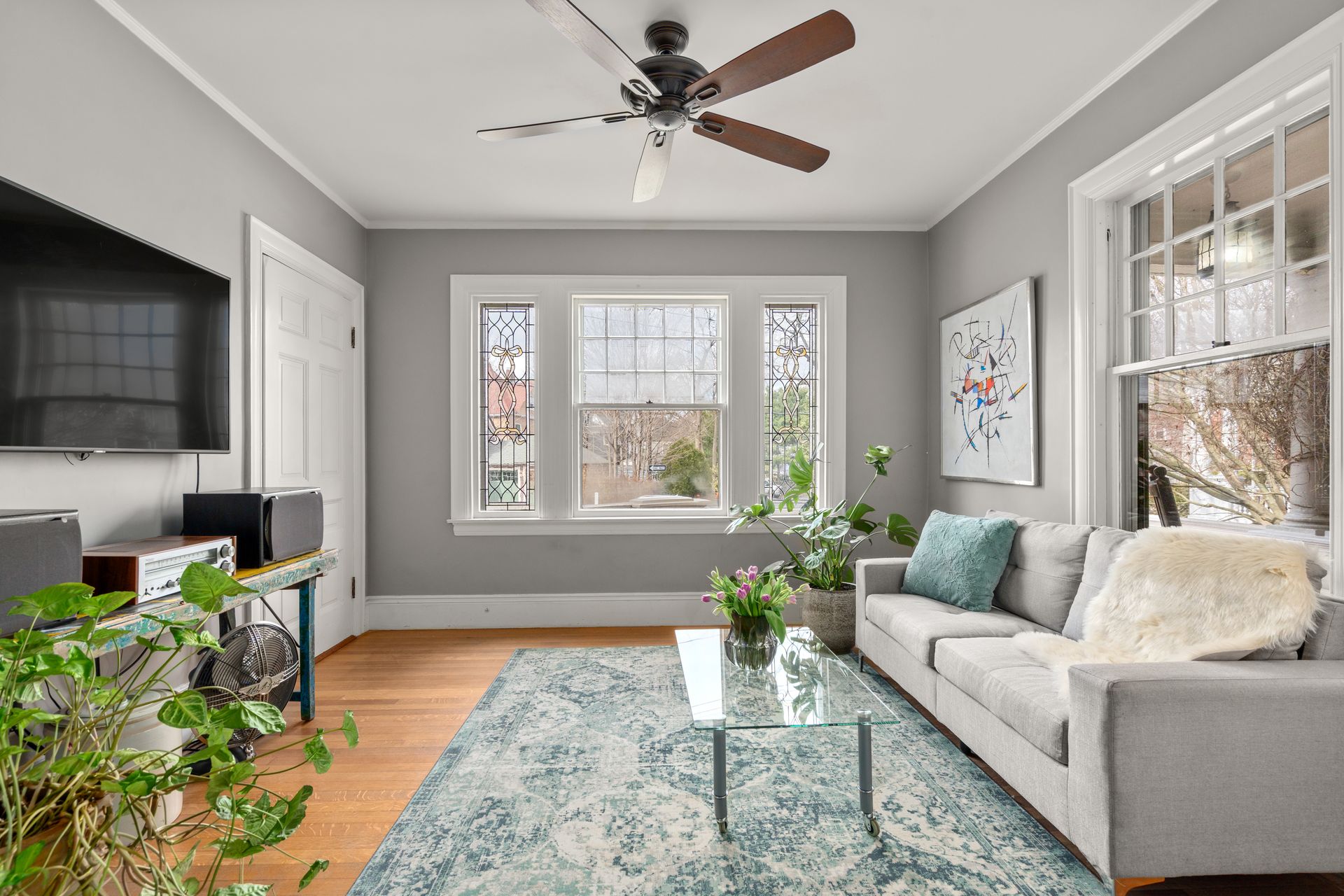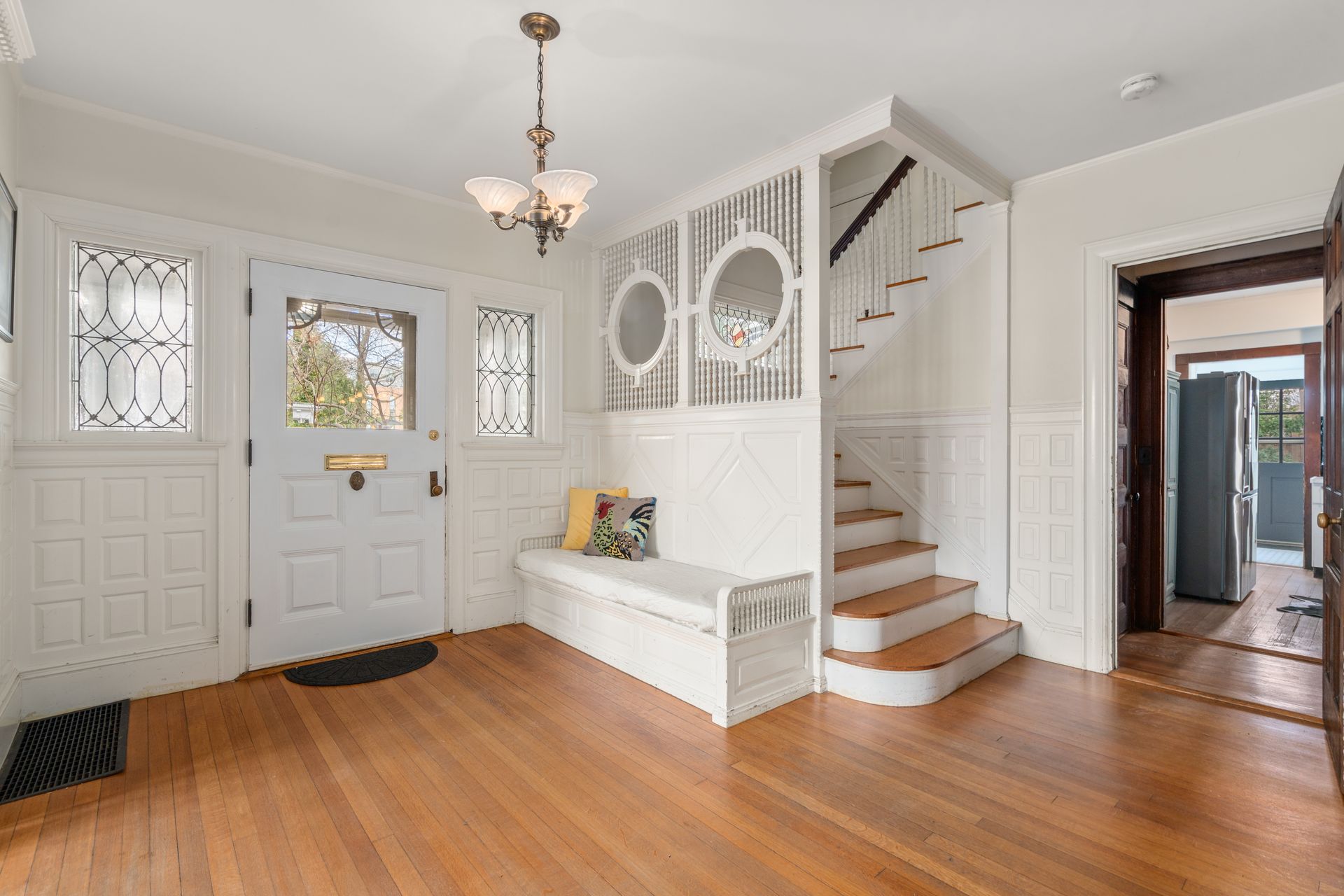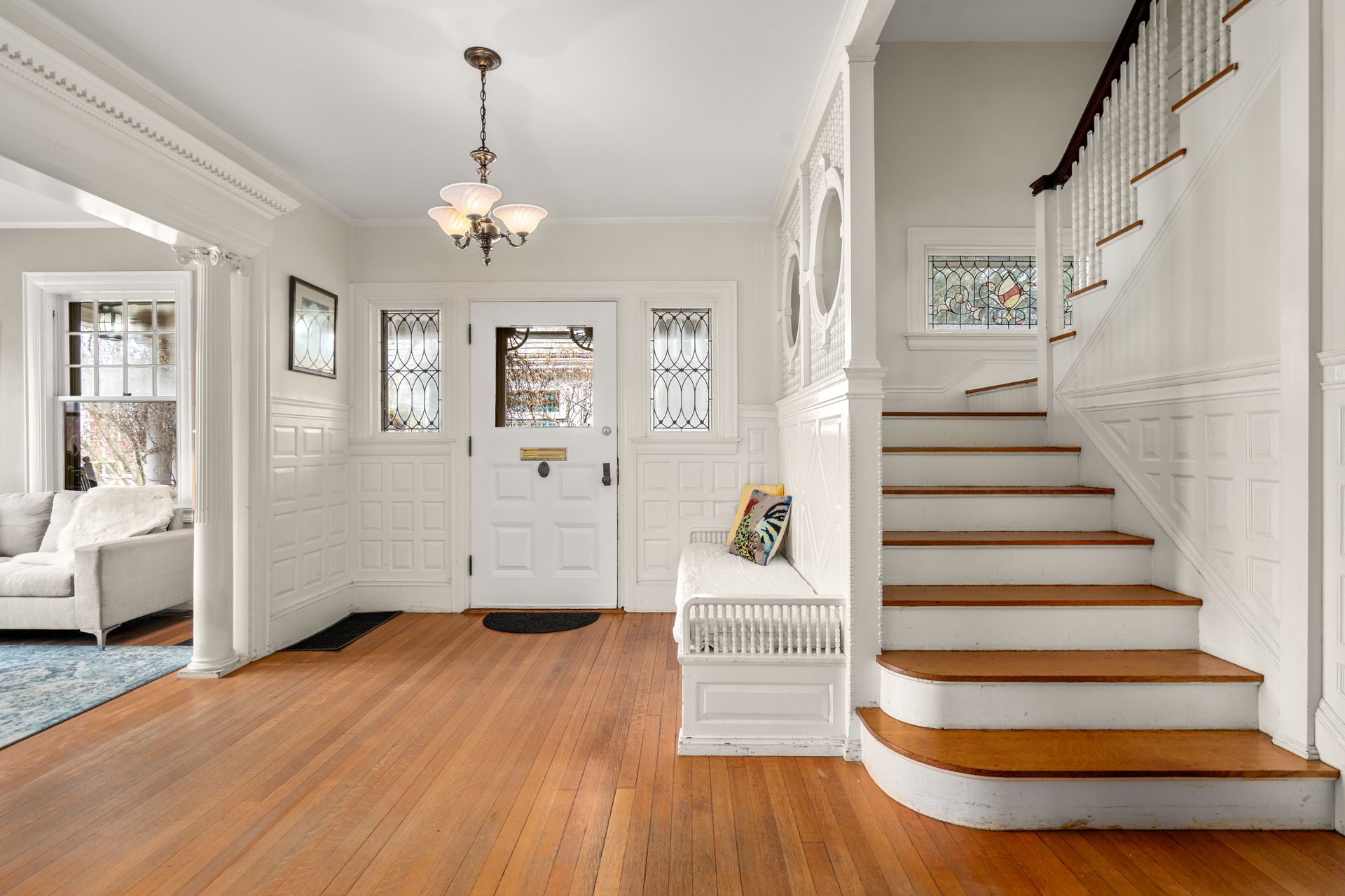 Historic Queen Anne single-family home in the heart of Newtonville, featuring six bedrooms, two bathrooms on an approximately 8,710 square foot lot. A charming porch with a swing invites you into a grand foyer with a sitting room leading to the generous living and dining rooms, both with fireplaces, high ceilings, beautiful hardwood floors, and period details throughout. Bring your ideas for the retro kitchen offering two original walk-in pantries. The first floor also features a full bath with an adjacent laundry area with access to a porch overlooking the spacious backyard.