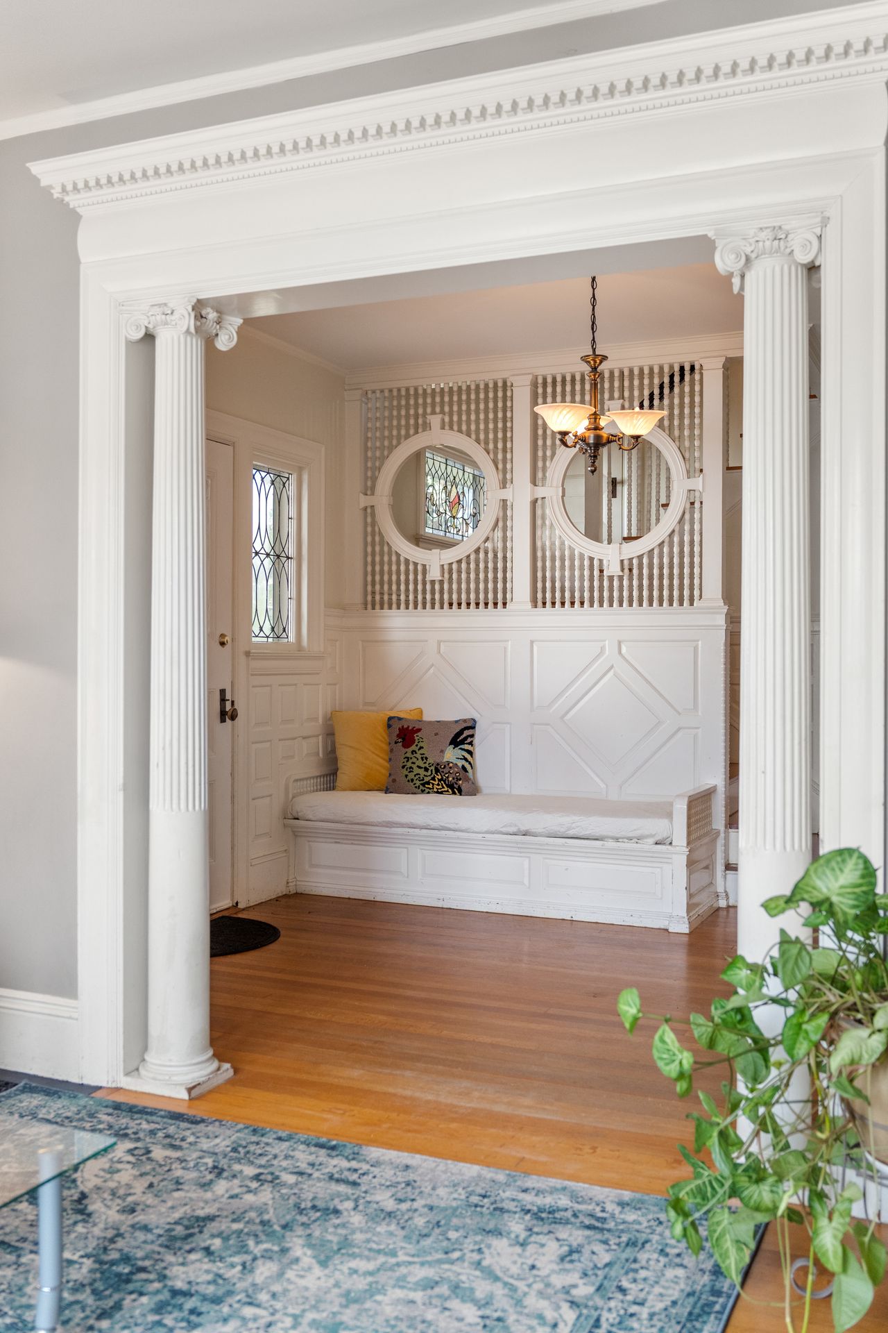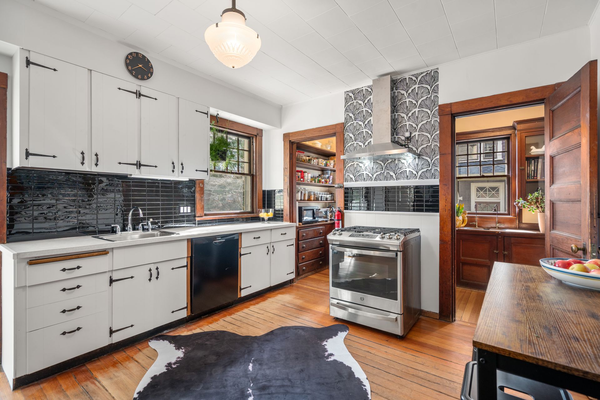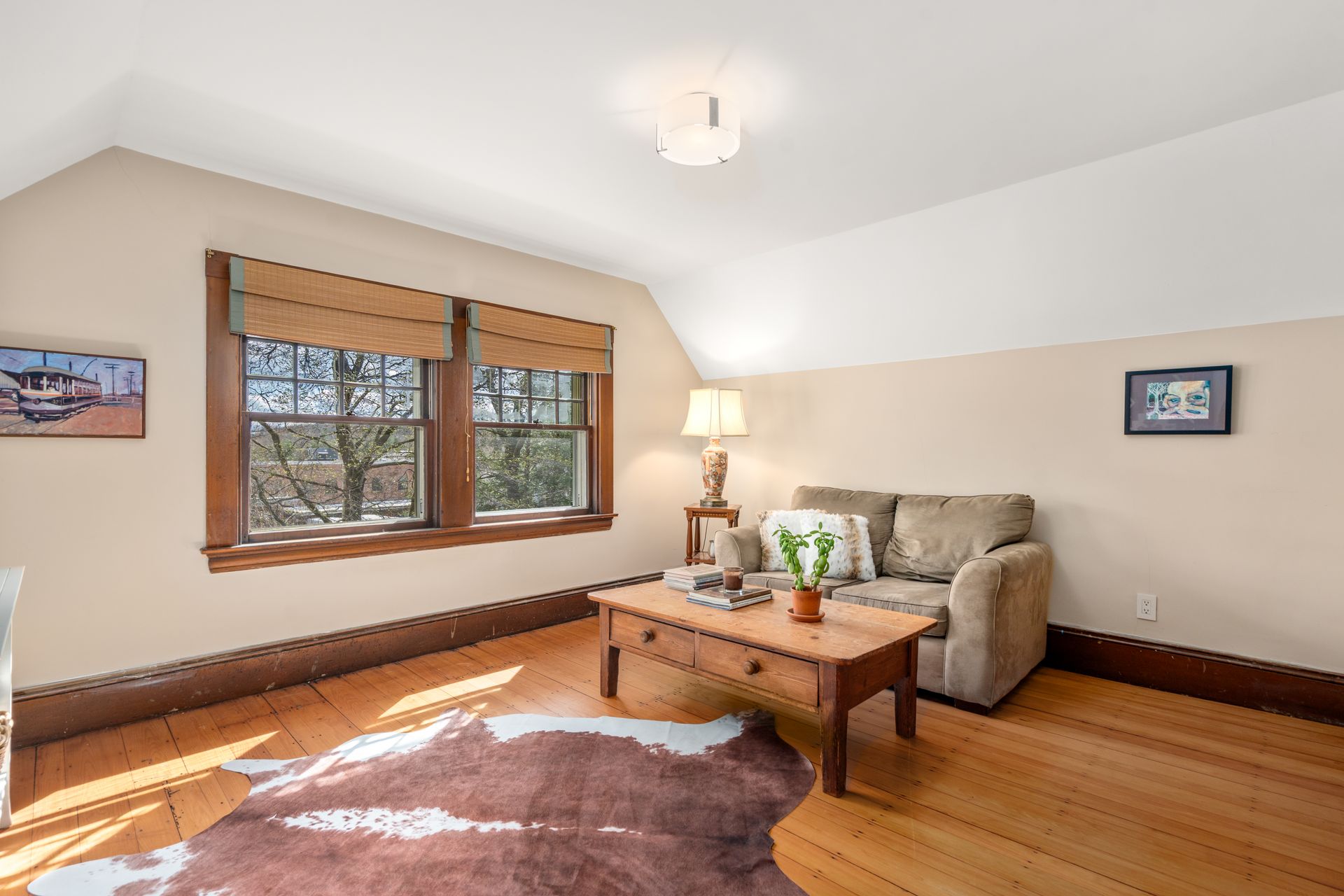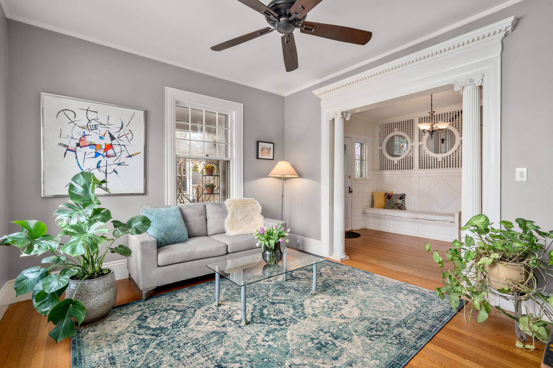 Historic Queen Anne single-family home in the heart of Newtonville, featuring six bedrooms, two bathrooms on an approximately 8,710 square foot lot. A charming porch with a swing invites you into a grand foyer with a sitting room leading to the generous living and dining rooms, both with fireplaces, high ceilings, beautiful hardwood floors, and period details throughout. Bring your ideas for the retro kitchen offering two original walk-in pantries. The first floor also features a full bath with an adjacent laundry area with access to a porch overlooking the spacious backyard.