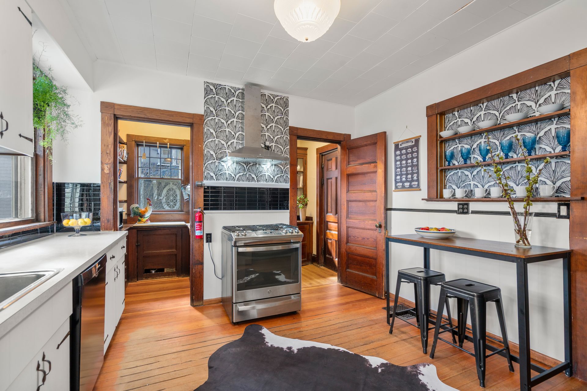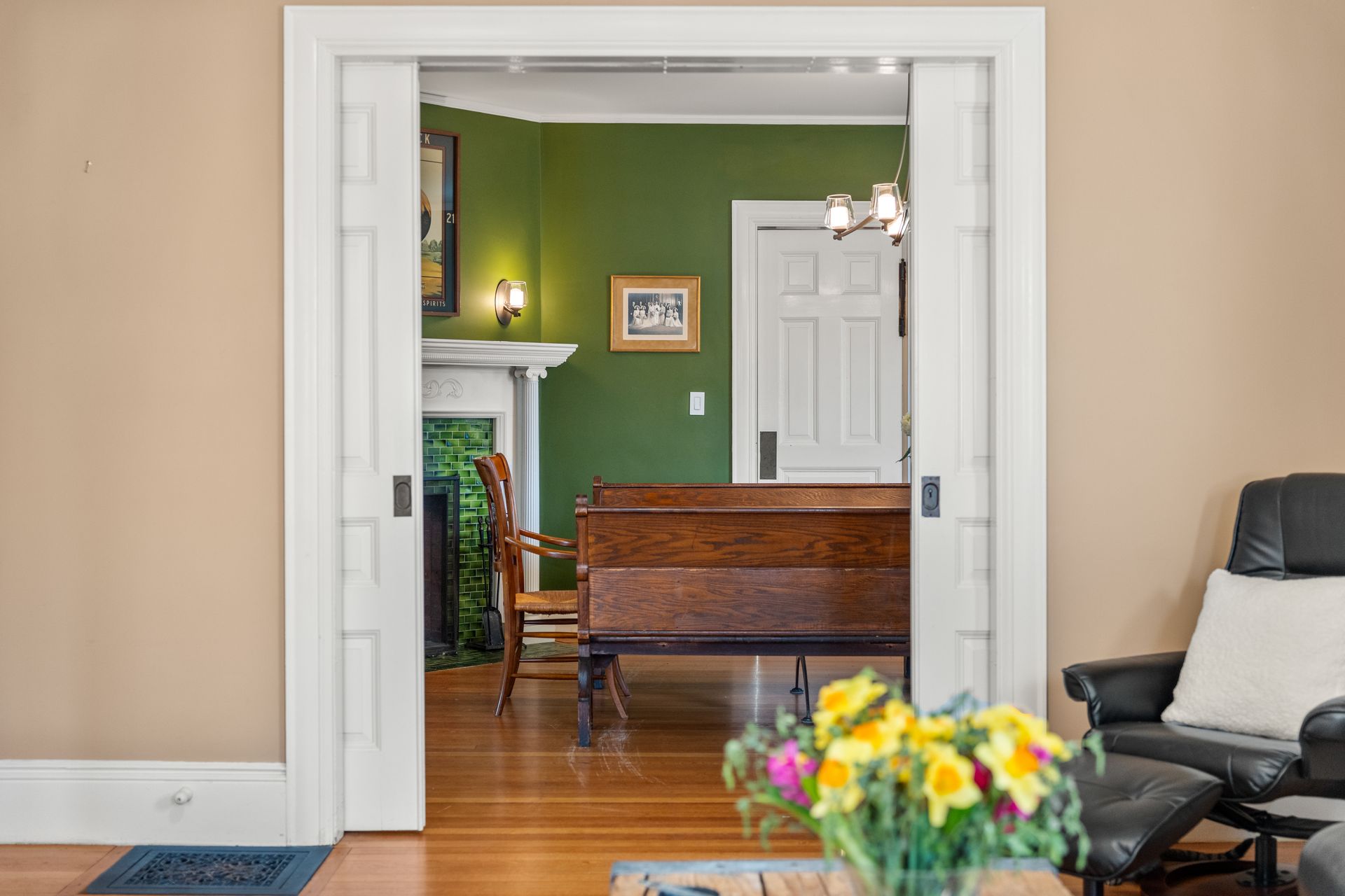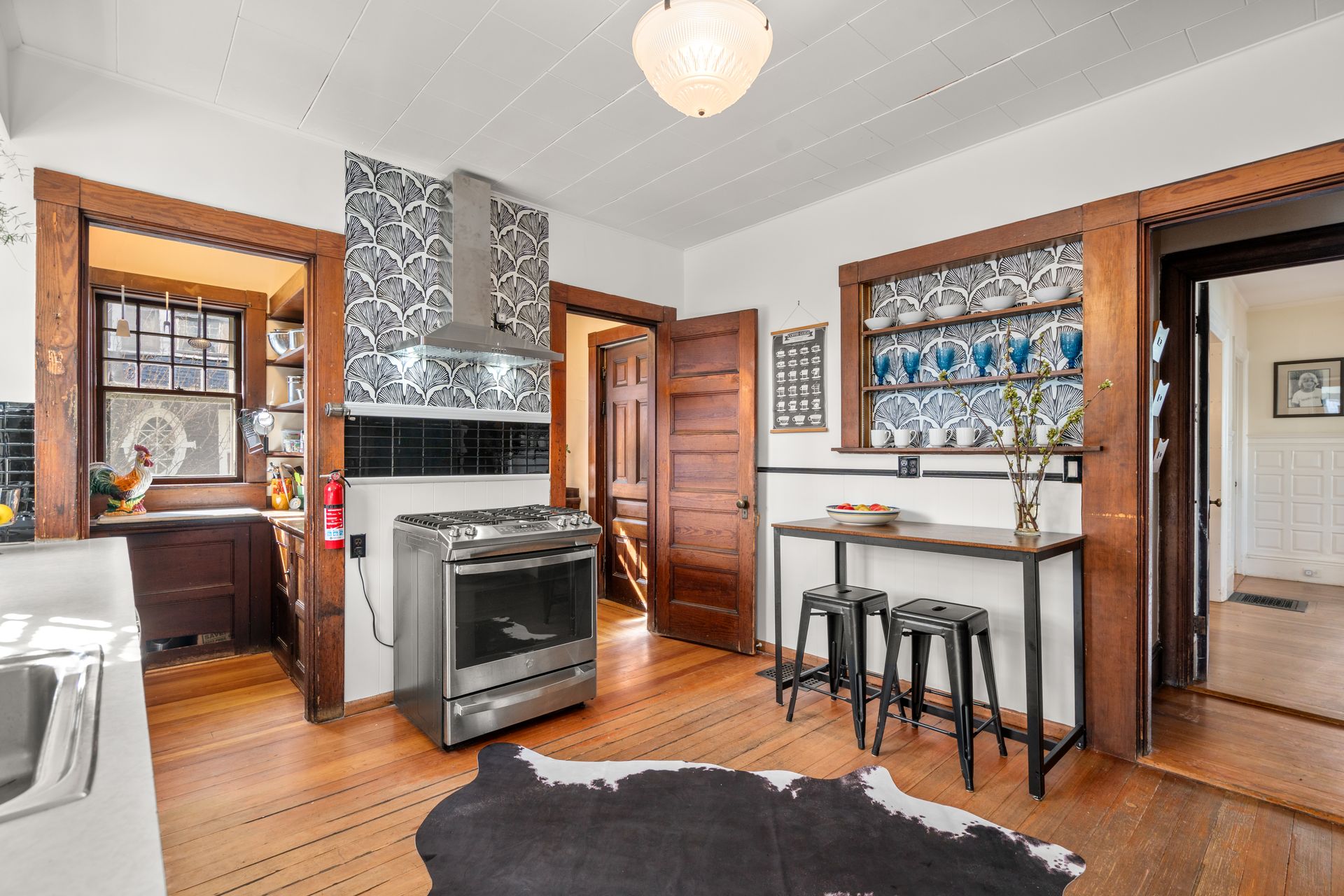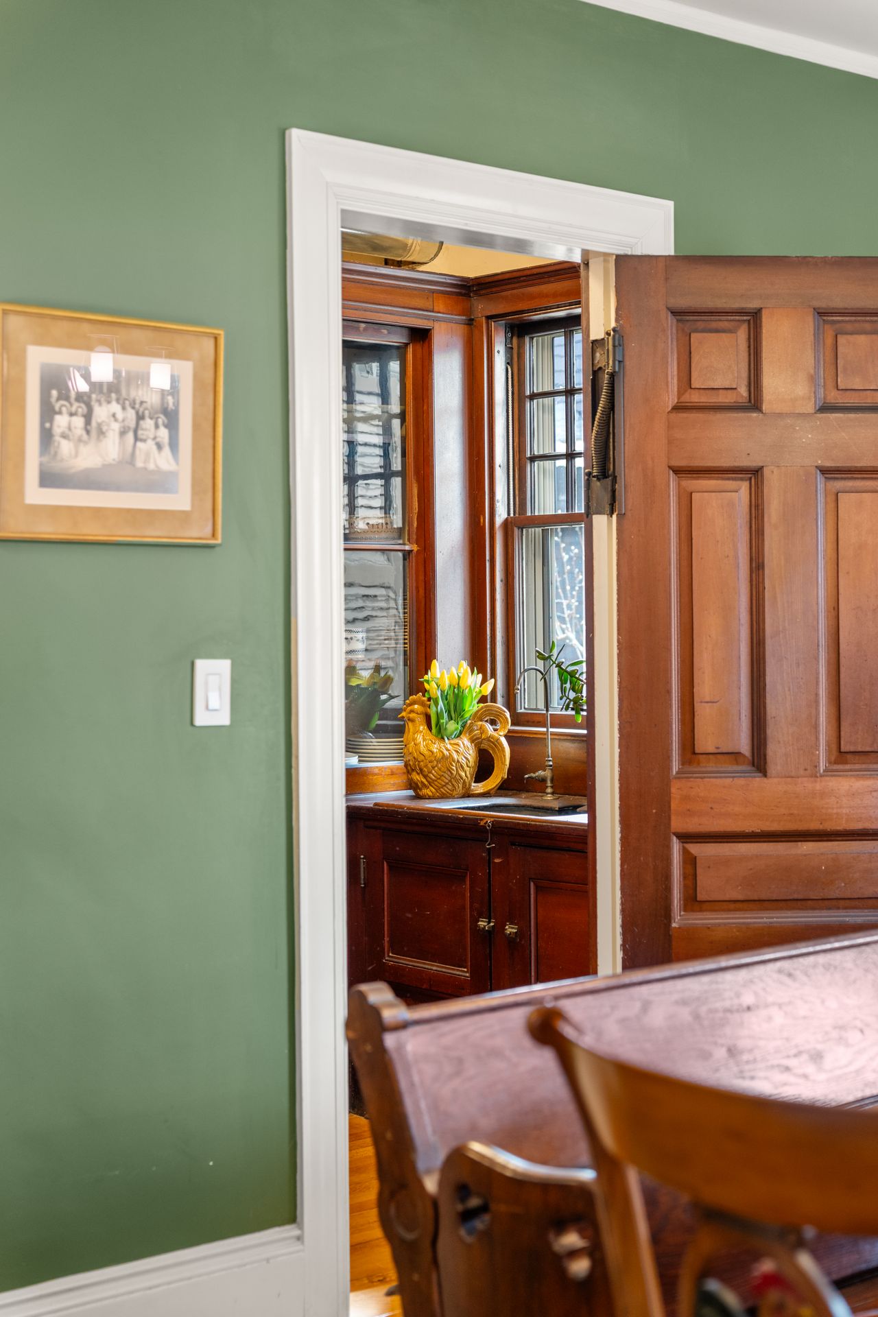 Historic Queen Anne single-family home in the heart of Newtonville, featuring six bedrooms, two bathrooms on an approximately 8,710 square foot lot. A charming porch with a swing invites you into a grand foyer with a sitting room leading to the generous living and dining rooms, both with fireplaces, high ceilings, beautiful hardwood floors, and period details throughout. Bring your ideas for the retro kitchen offering two original walk-in pantries. The first floor also features a full bath with an adjacent laundry area with access to a porch overlooking the spacious backyard.