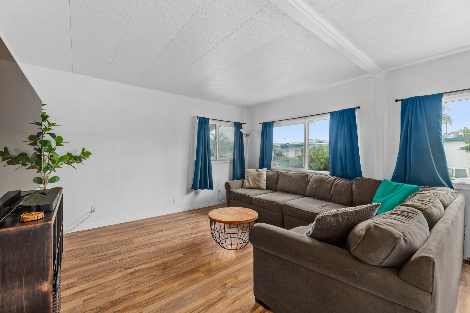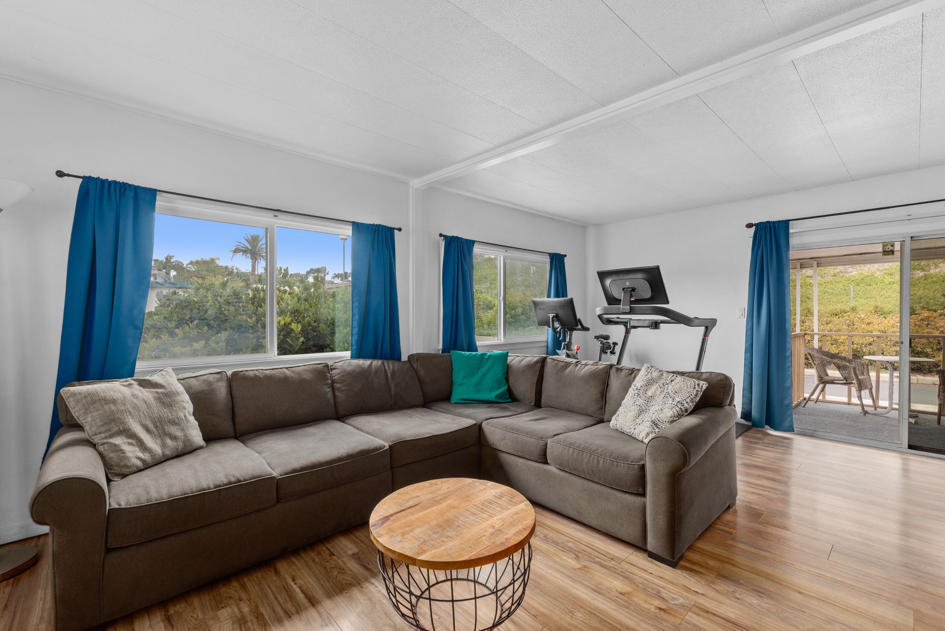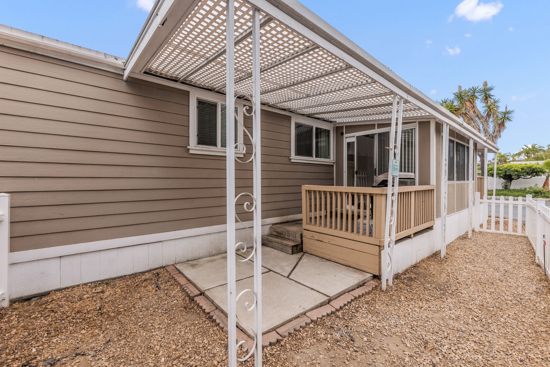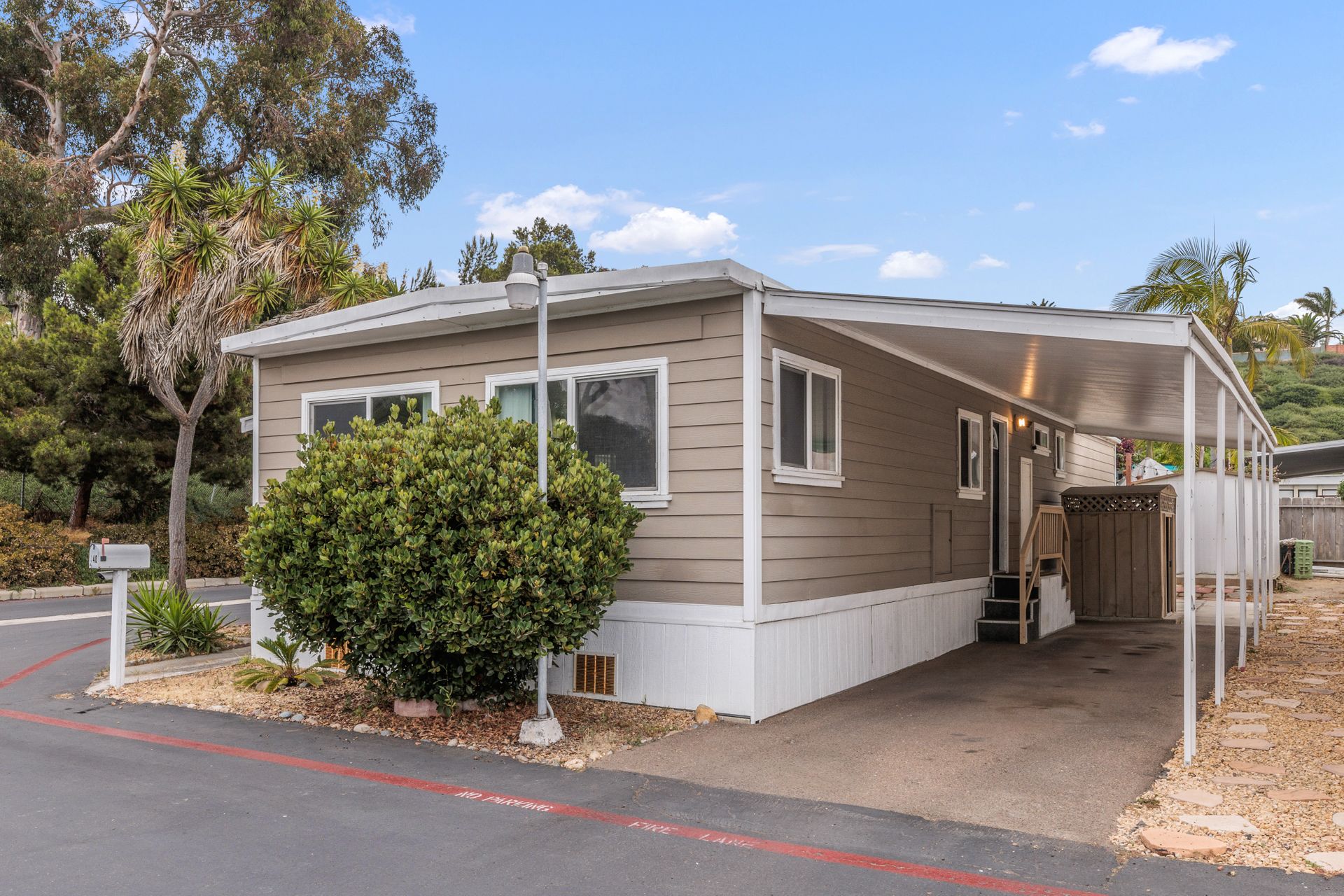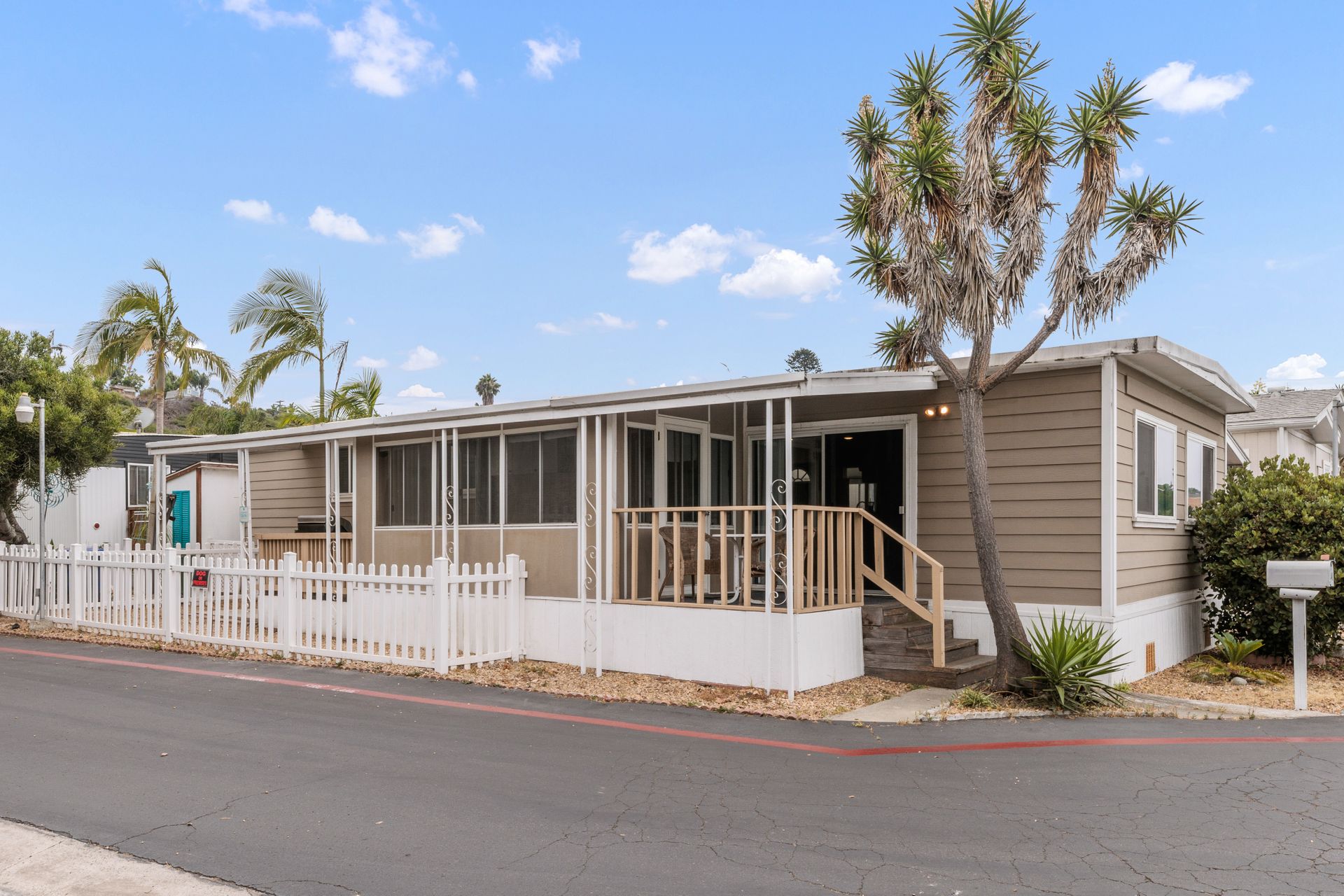 The charming 2 bed/2 bath, 1120 sq ft mobile home is located West of the 5 freeway in a rent-controlled, family park known as Cavalier Mobile Estates. The home features updated kitchen and baths, newer flooring, windows, paint, lighting and more. A portion of the front porch was enclosed offering additional space not included in the square footage. The modest yard features white picket vinyl fencing, perfect for a small dog. The carport can accommodate 2 cars and there are full size washer/dryer hookups inside a shed within the carport. Two guest passes are included for visitor parking. The space rent is currently $487/month for those who plan to owner-occupy. Park amenities include 2 pools, a spa, 2 clubhouses, a tot lot, 2 car washes and 2 laundry facilities. The home is conveniently located just off the 5 and Oceanside Blvd, approximately 1 mile from the beach.