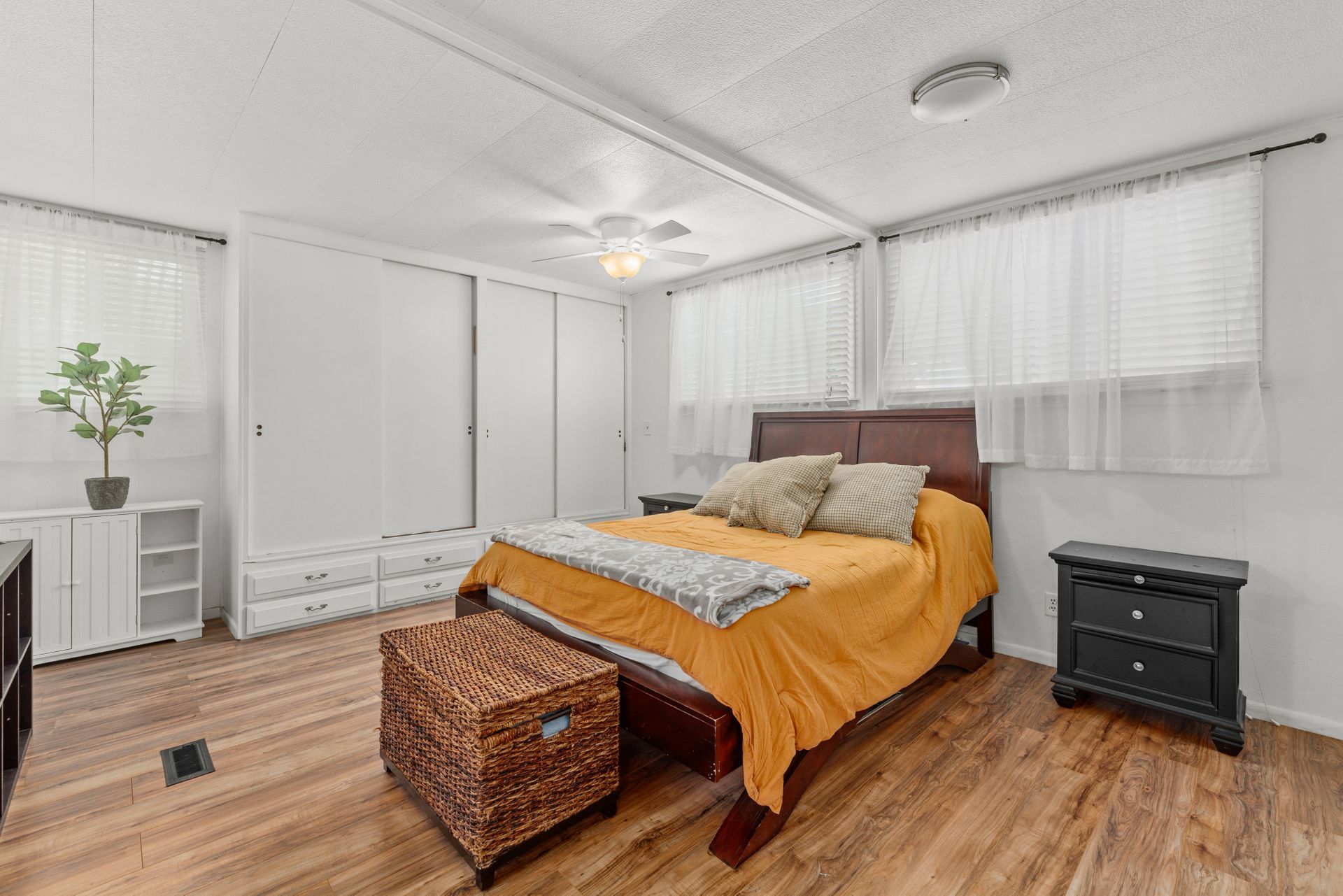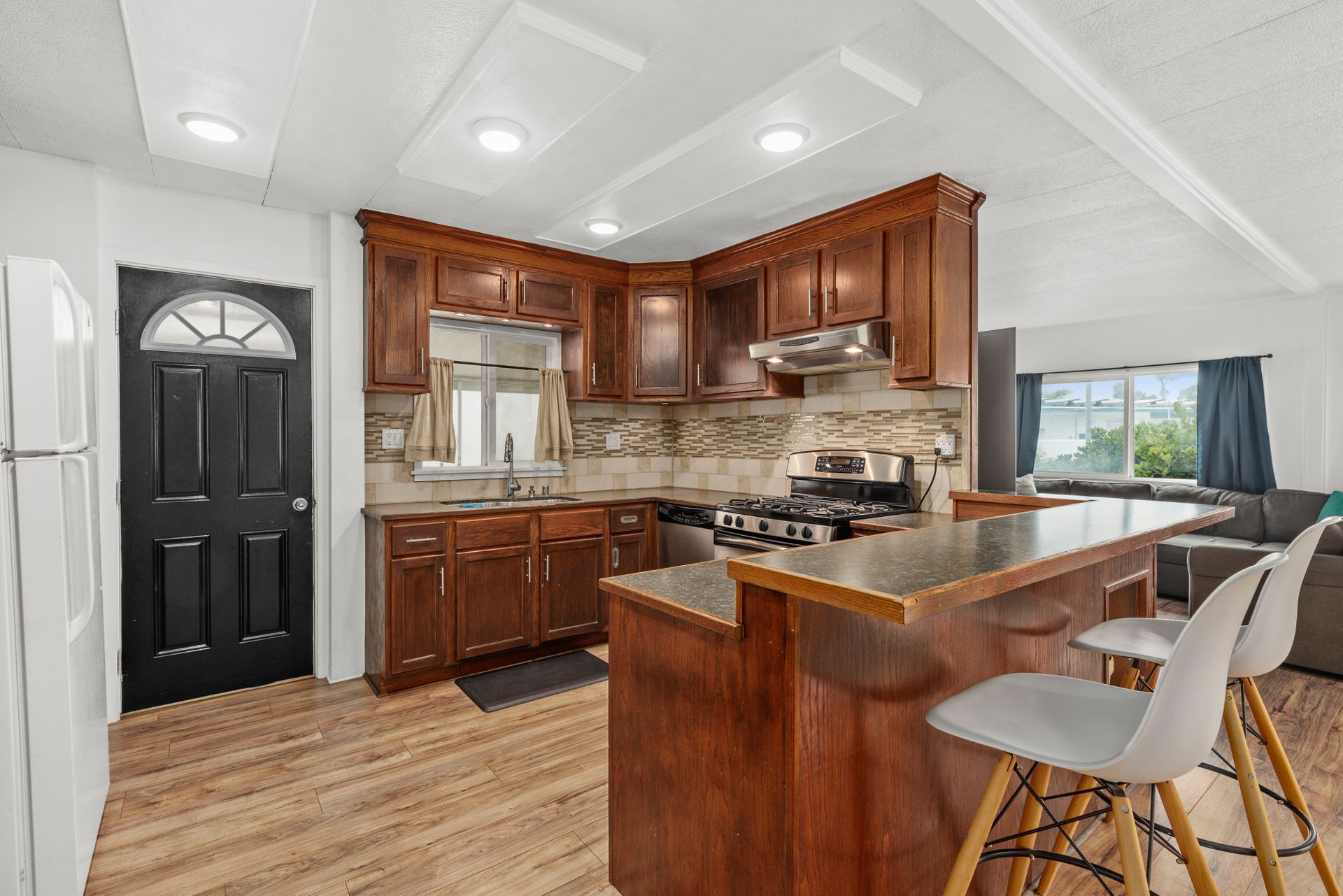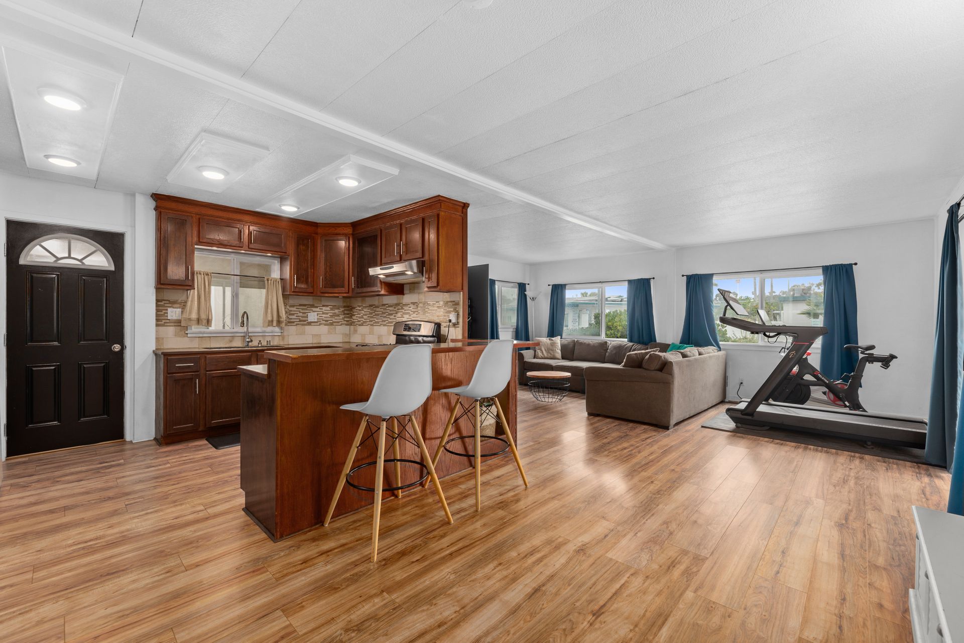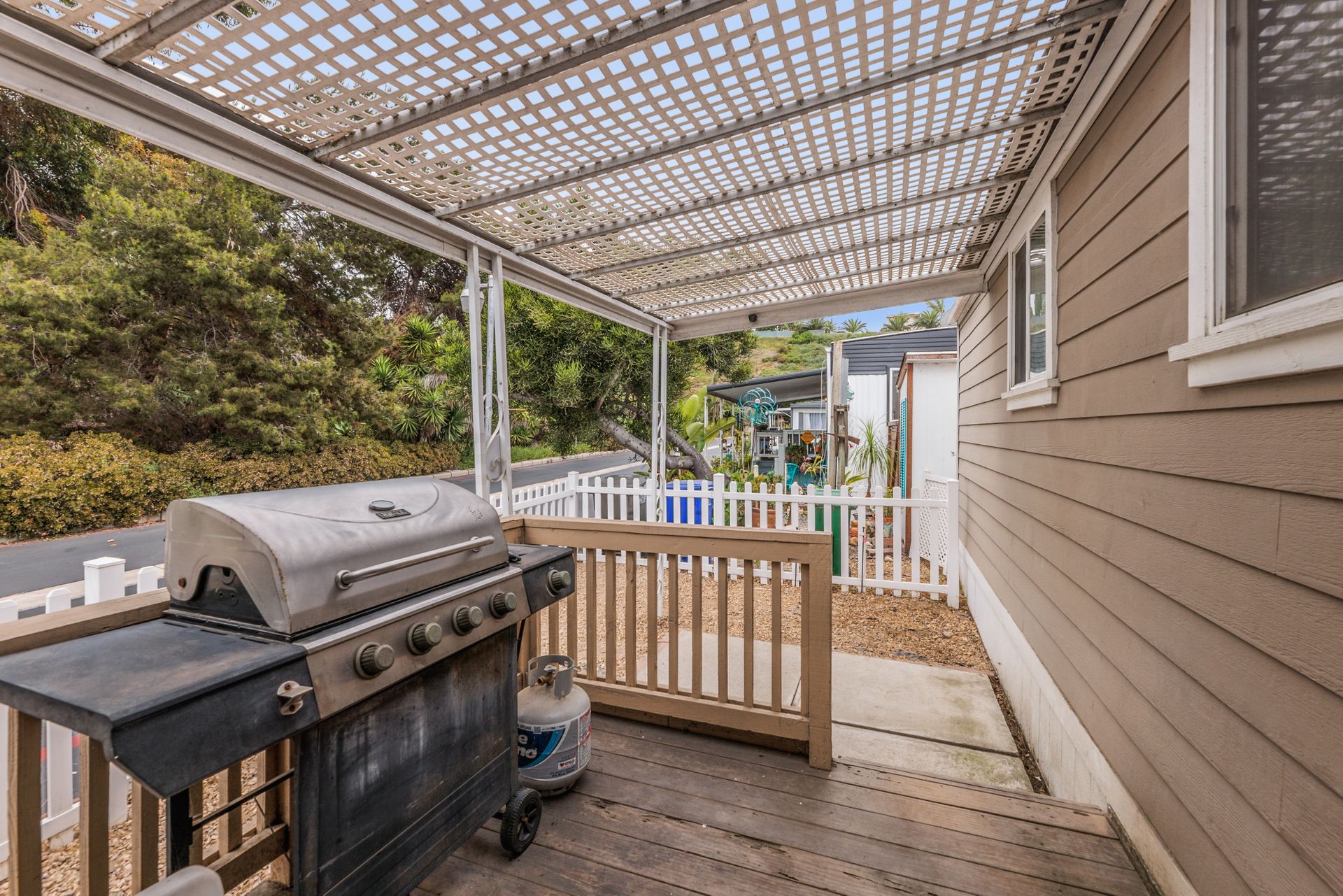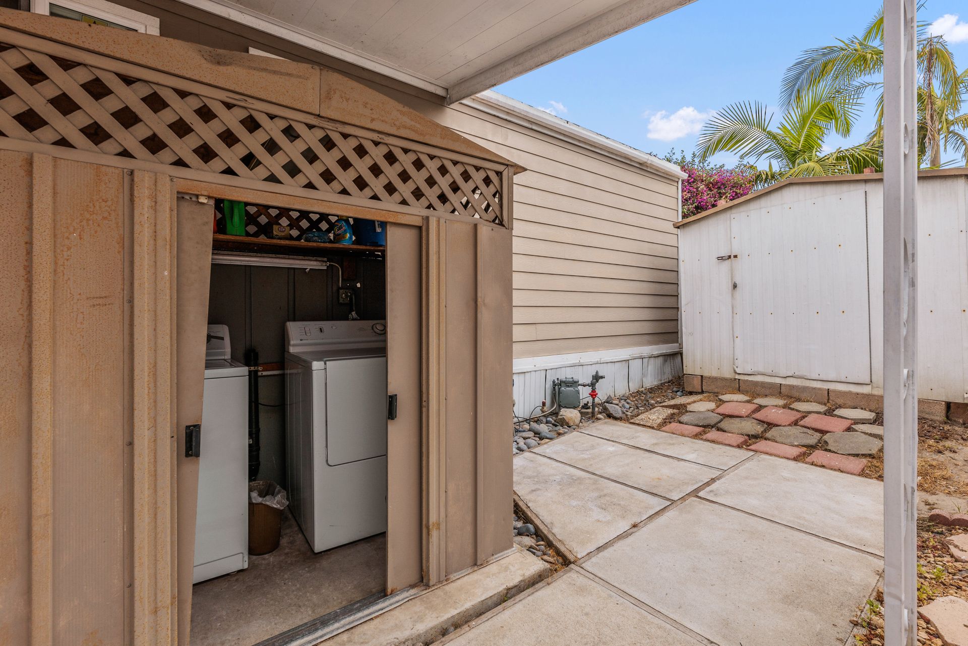 The charming 2 bed/2 bath, 1120 sq ft mobile home is located West of the 5 freeway in a rent-controlled, family park known as Cavalier Mobile Estates. The home features updated kitchen and baths, newer flooring, windows, paint, lighting and more. A portion of the front porch was enclosed offering additional space not included in the square footage. The modest yard features white picket vinyl fencing, perfect for a small dog. The carport can accommodate 2 cars and there are full size washer/dryer hookups inside a shed within the carport. Two guest passes are included for visitor parking. The space rent is currently $487/month for those who plan to owner-occupy. Park amenities include 2 pools, a spa, 2 clubhouses, a tot lot, 2 car washes and 2 laundry facilities. The home is conveniently located just off the 5 and Oceanside Blvd, approximately 1 mile from the beach.