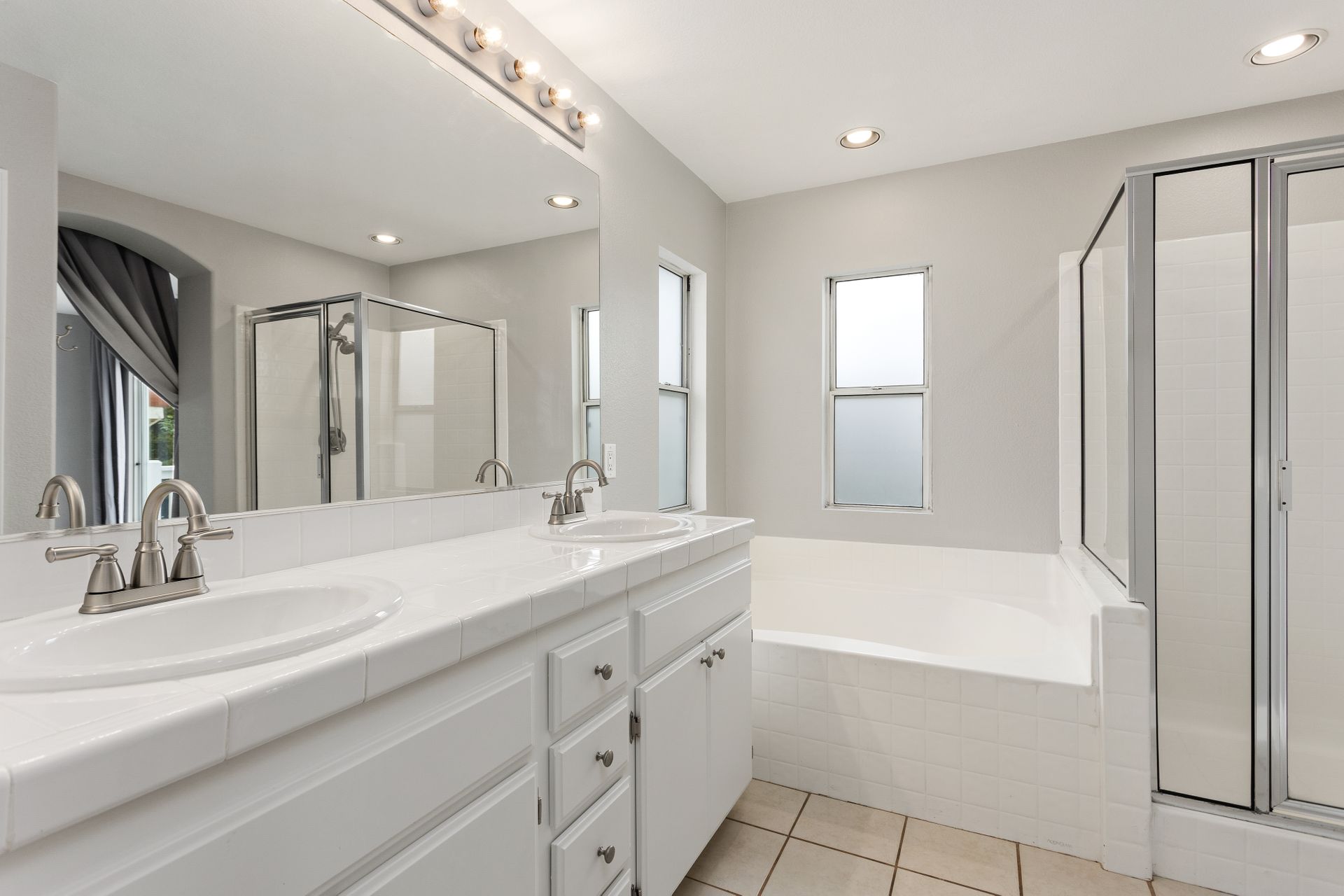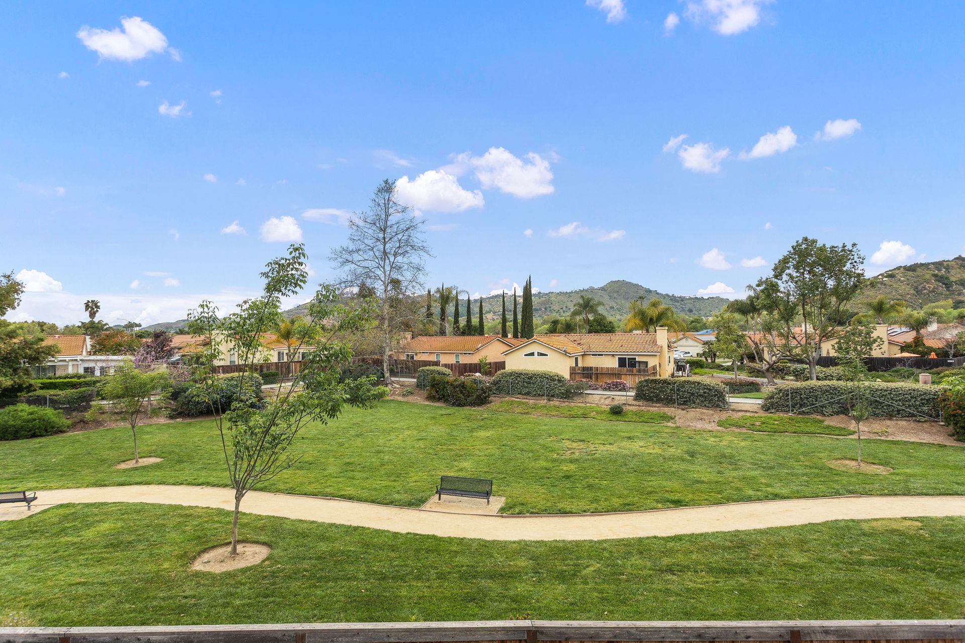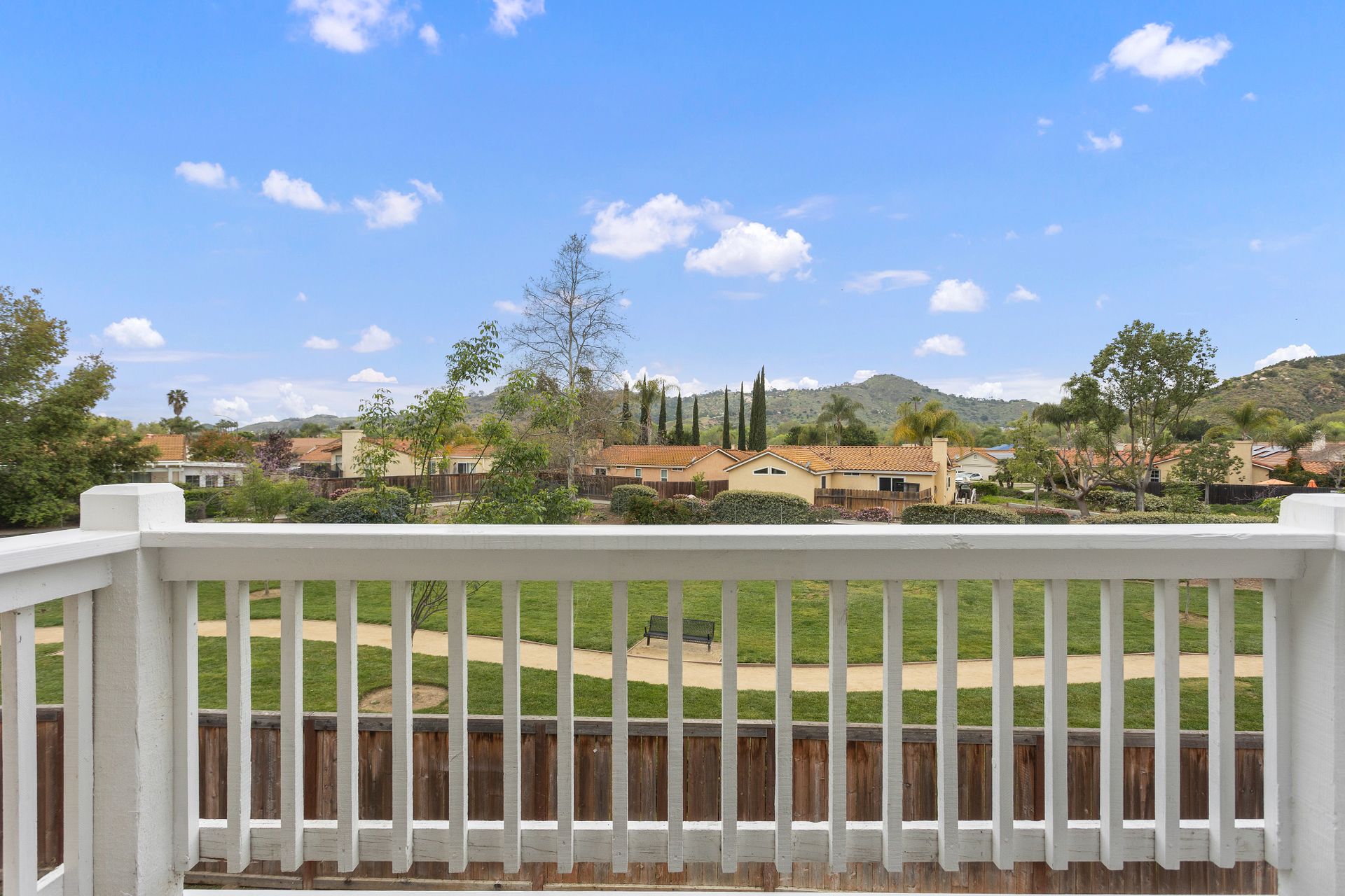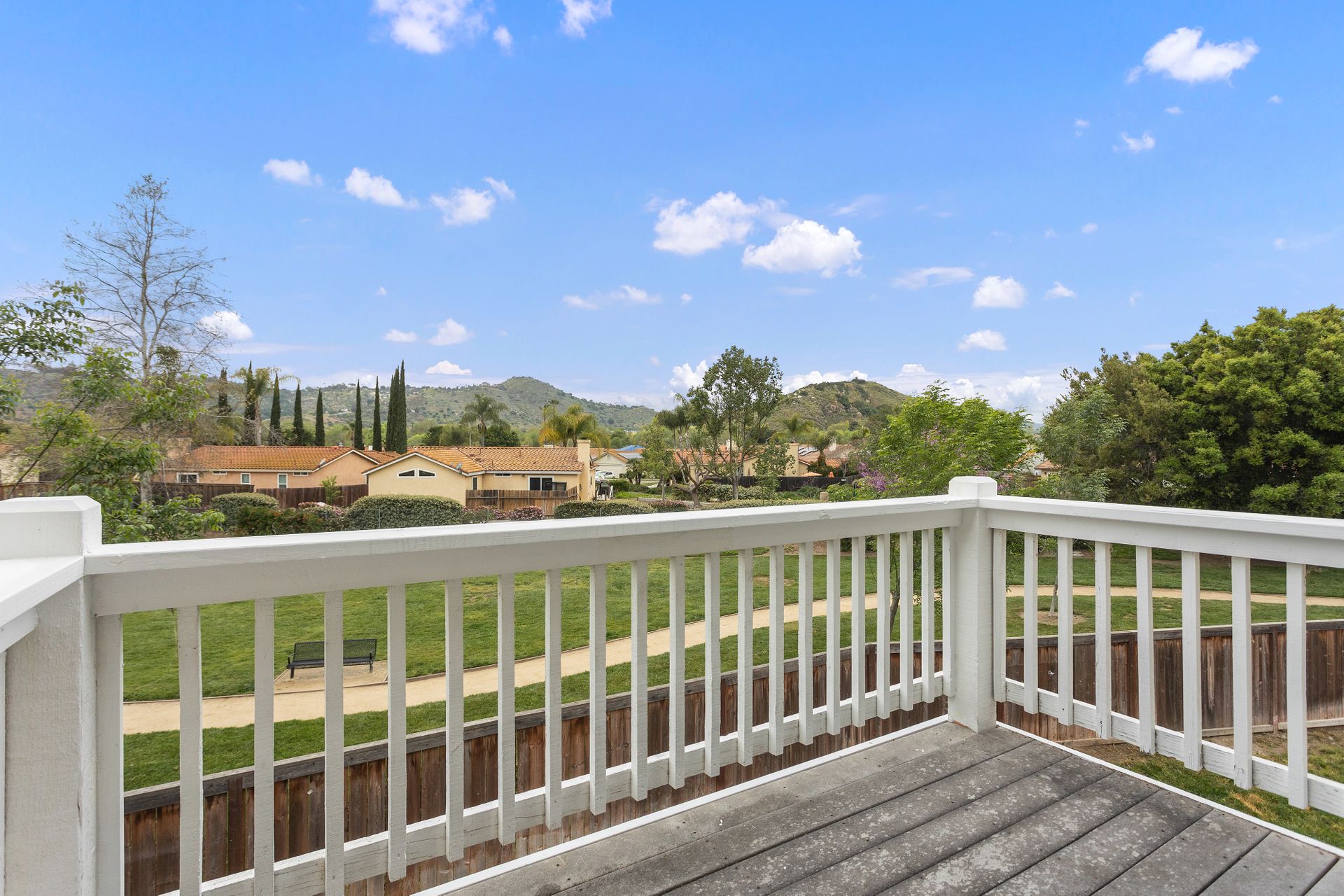 This beautiful, move-in-ready home is situated on a cul-de-sac in the enclave of homes known as Lake Rancho Viejo, located just east of the 15 freeway and south of the 76. Enjoy gorgeous mountain views from nearly every window in the house and a lovely walking trail and greenbelt just behind the home. As you enter the home, you will love the high ceilings and open concept floorplan. The spacious kitchen features stainless steel appliances, newly painted cabinets, a new sink, walk-in pantry, and a large breakfast bar. In addition to the living room, dining room, and kitchen, there is a bedroom and full bath on the first floor along with the laundry room. Upstairs you will find two guest bedrooms adjoined by a Jack-and-Jill bathroom as well as the primary bedroom with ensuite bath, walk-in closet, and a slider out to the deck where you can take in those mountain views while you enjoy a cup of coffee in the morning or a glass of wine in the evening. The wrap-around back yard includes a large storage shed for all your gardening tools, and a pitching mound with more than 60 feet of space for perfecting your curve ball! The 2-car garage has several floor to ceiling storage cabinets and leads you right into the kitchen so you don't have to carry the groceries too far. Other features of the home include engineered wood floors, newer A/C, newer water heater, water softener, new sinks in the primary bath, newly refinished tub/shower surfaces in the guest baths, new carpet on the stairs, and partial replacement of the roof less than one year ago. The HOA dues are approx $78/month and no mello-roos. Stop by today and get to know the beautiful community of Lake Rancho Viejo!