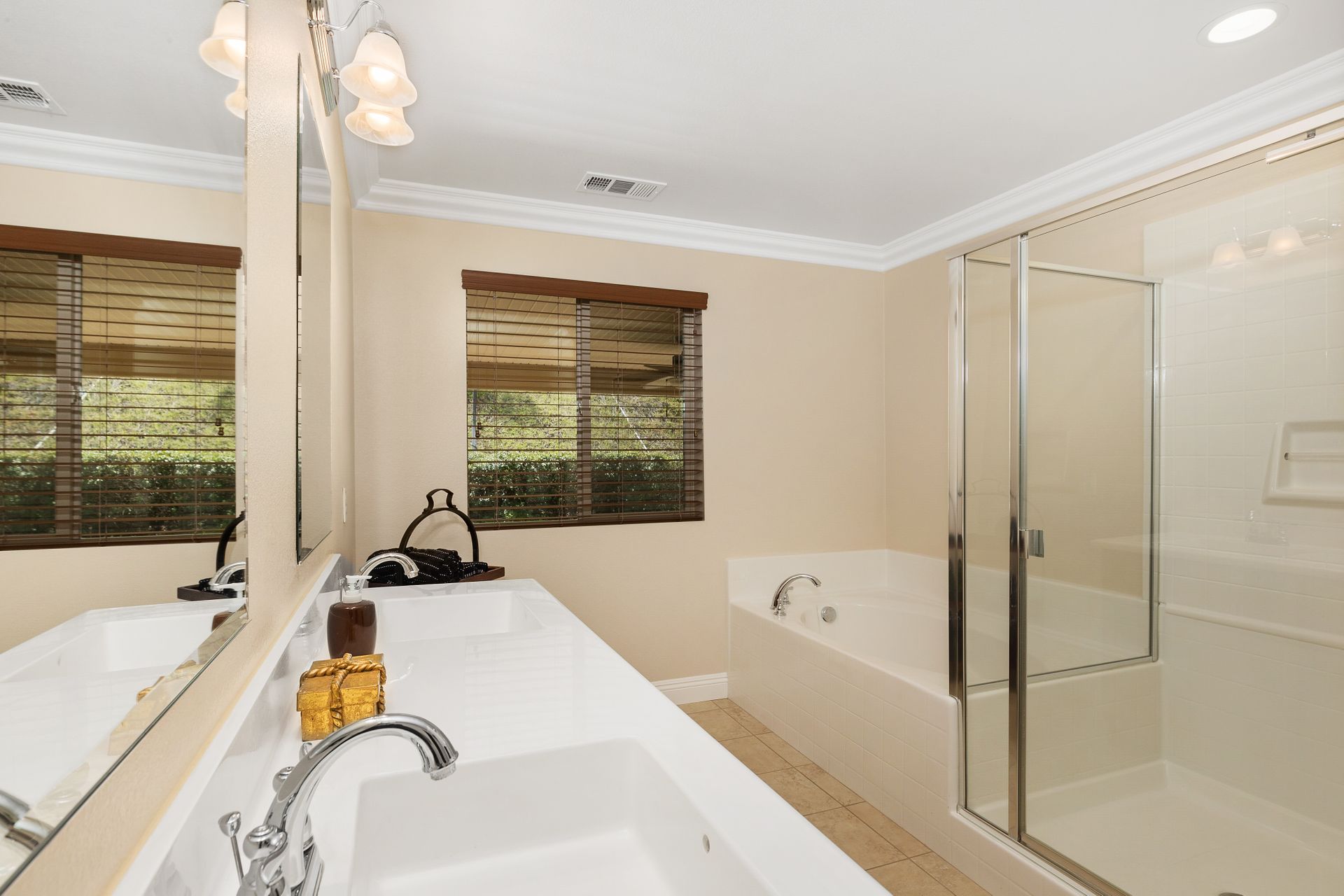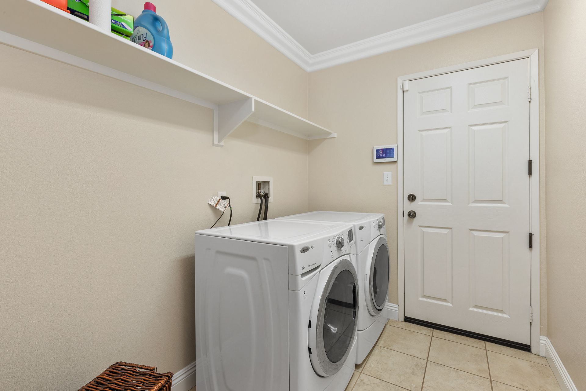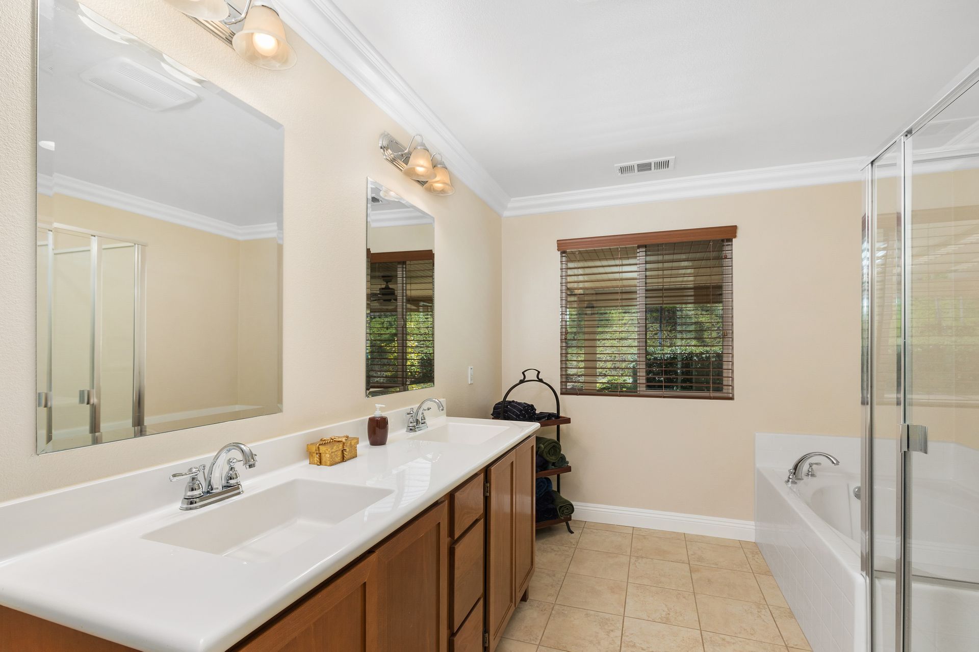 The primary bedroom features a spacious walk-in closet and en-suite bathroom, including a separate tub and shower. There are ceiling fans in each room, an indoor laundry room and crown molding throughout. The three-car finished garage is ideal for storage or make part of it an at-home gym!