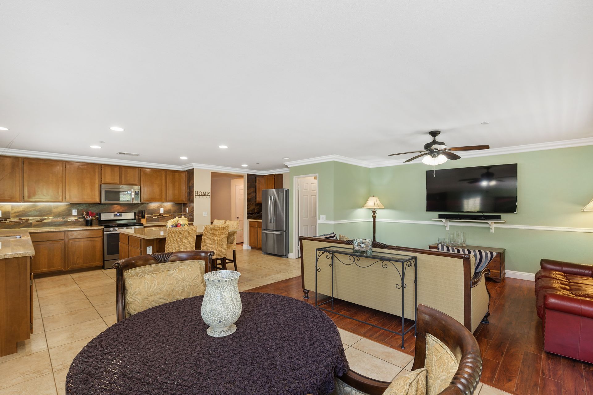 The open concept layout of the home is ideal for entertaining guests, with the kitchen seamlessly connecting to the family room and dining area. The walk-in pantry and large center island in the kitchen add convenience and functionality to the space.