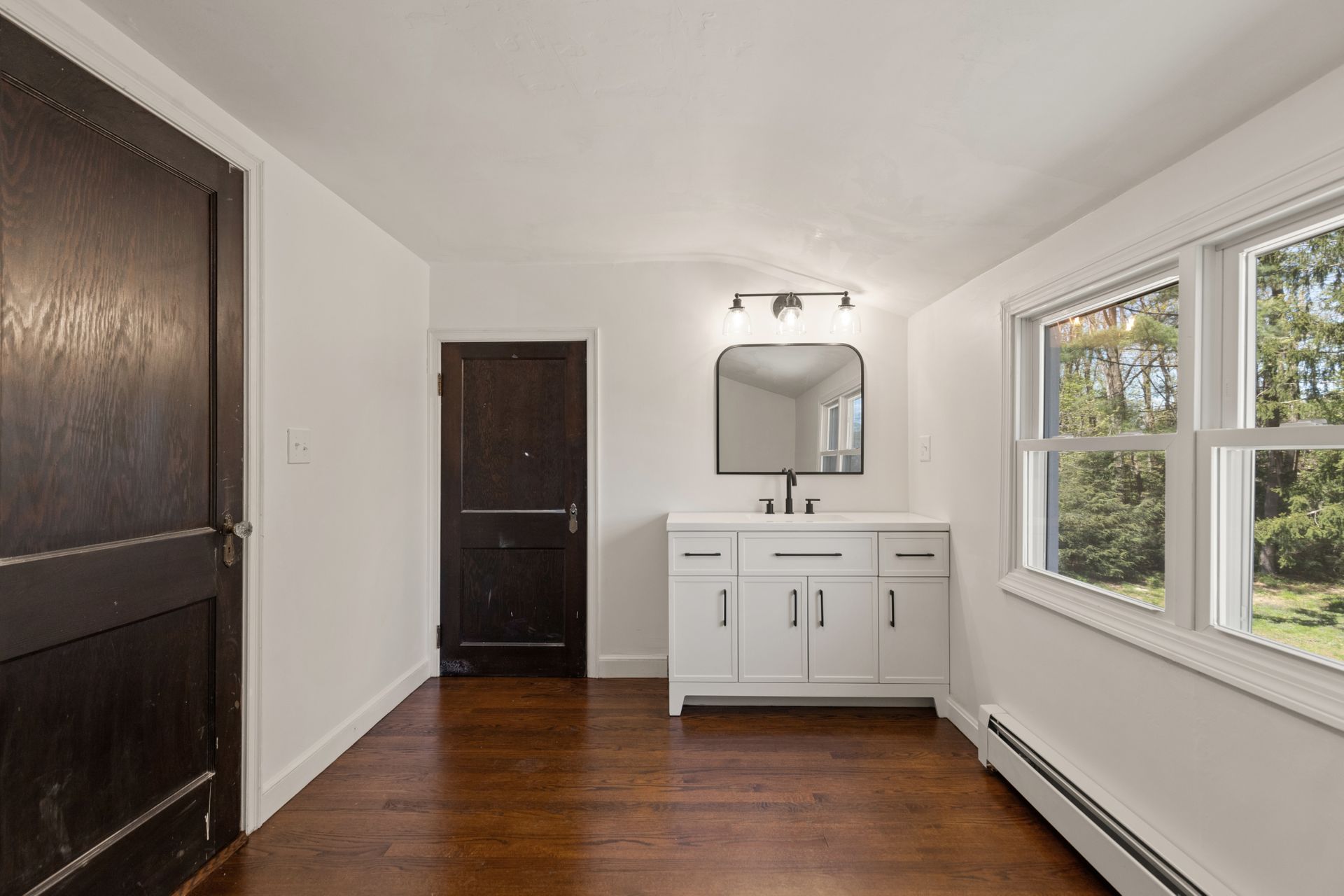 This charming four bedroom, three bathroom abode seamlessly blends modern comforts with timeless character. As you enter inside, a beautifully updated kitchen and cozy living room await. Refinished hardwood floors and fresh paint create a warm ambiance throughout. The first floor hosts two inviting bedrooms and a stylishly updated full bathroom, offering a retreat-like atmosphere. Venture upstairs to discover a shared loft area and two more delightful bedrooms, each with its own full bathroom, ensuring privacy and comfort for all. Outside, a detached barn with horse stalls, a tack room, and a paddock beckons, ideal for equine enthusiasts or those craving rustic charm. Practical features such as heated gutters, a generator, and a private well offer convenience and peace of mind. Located in Holden, a Right-to-Farm community, this home combines the tranquility of country living with the convenience of town amenities.