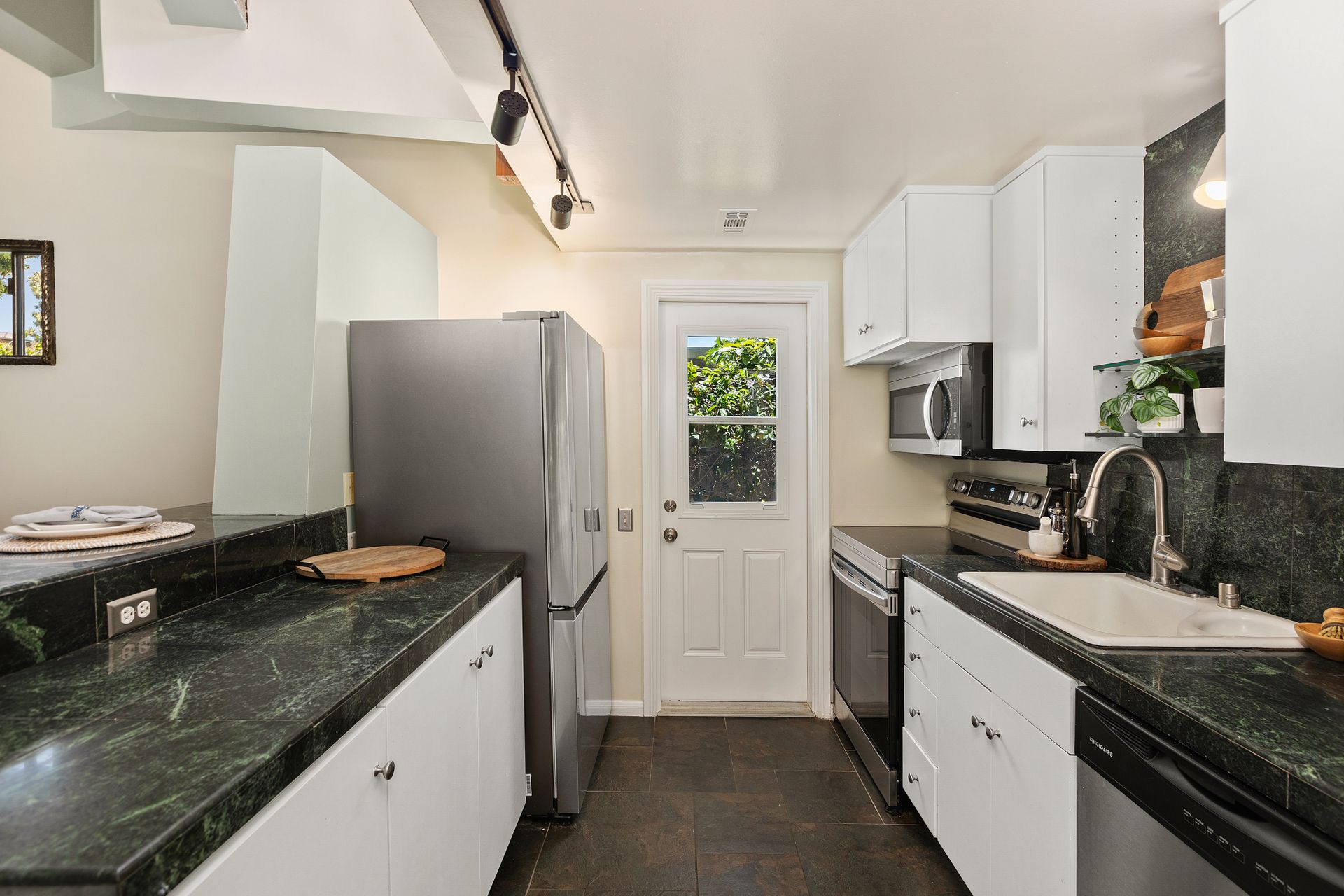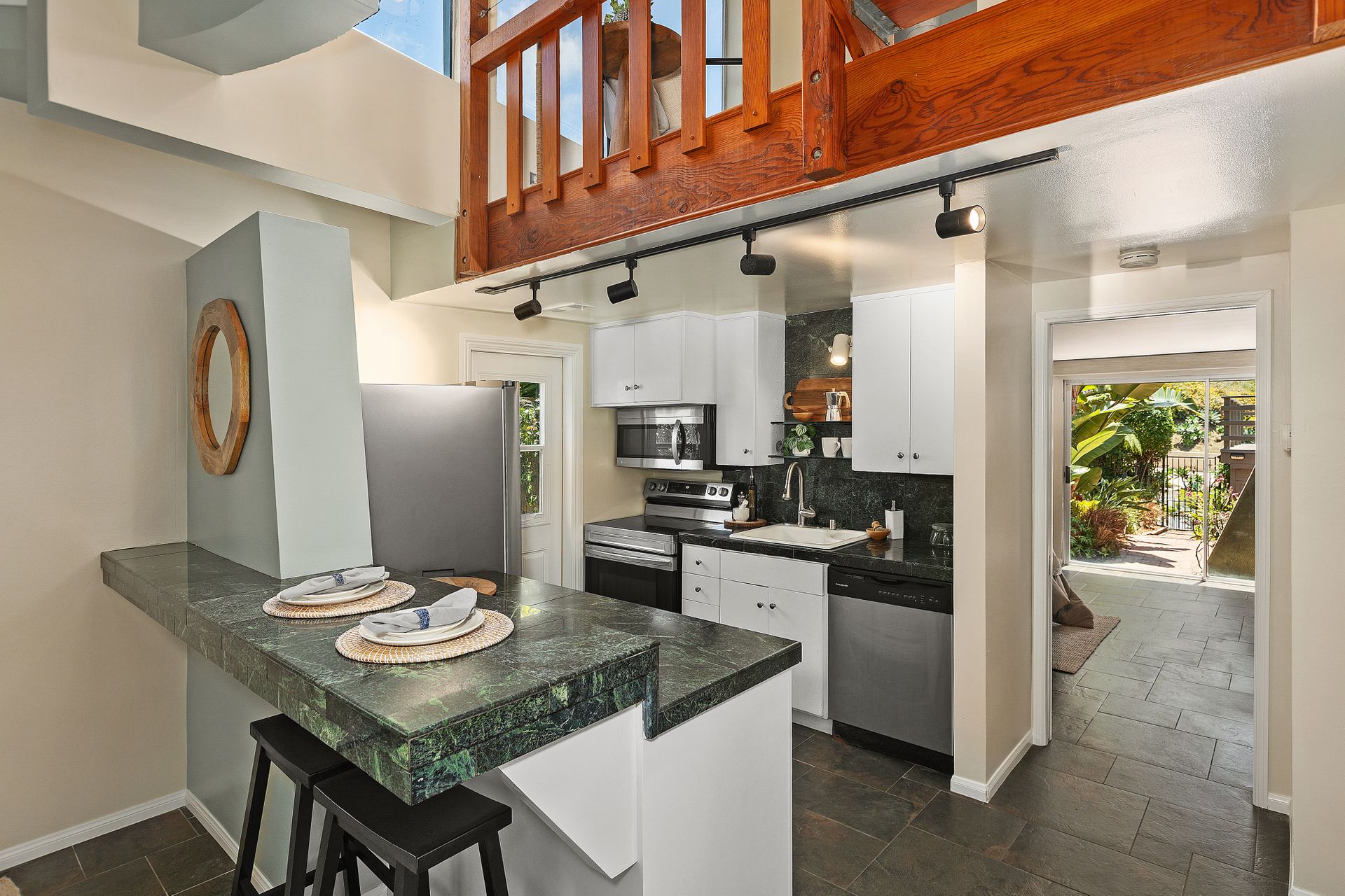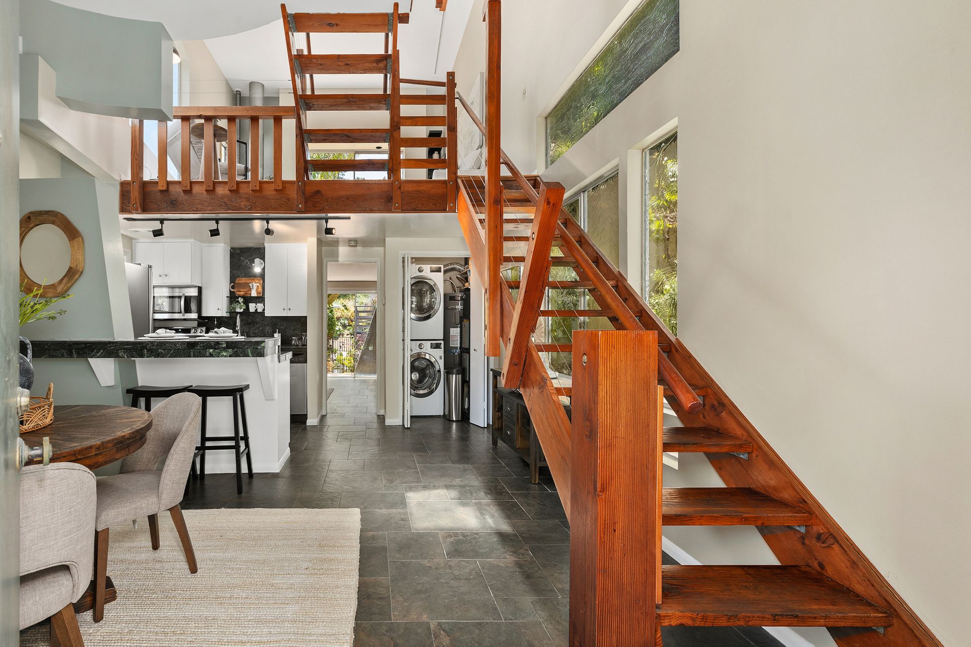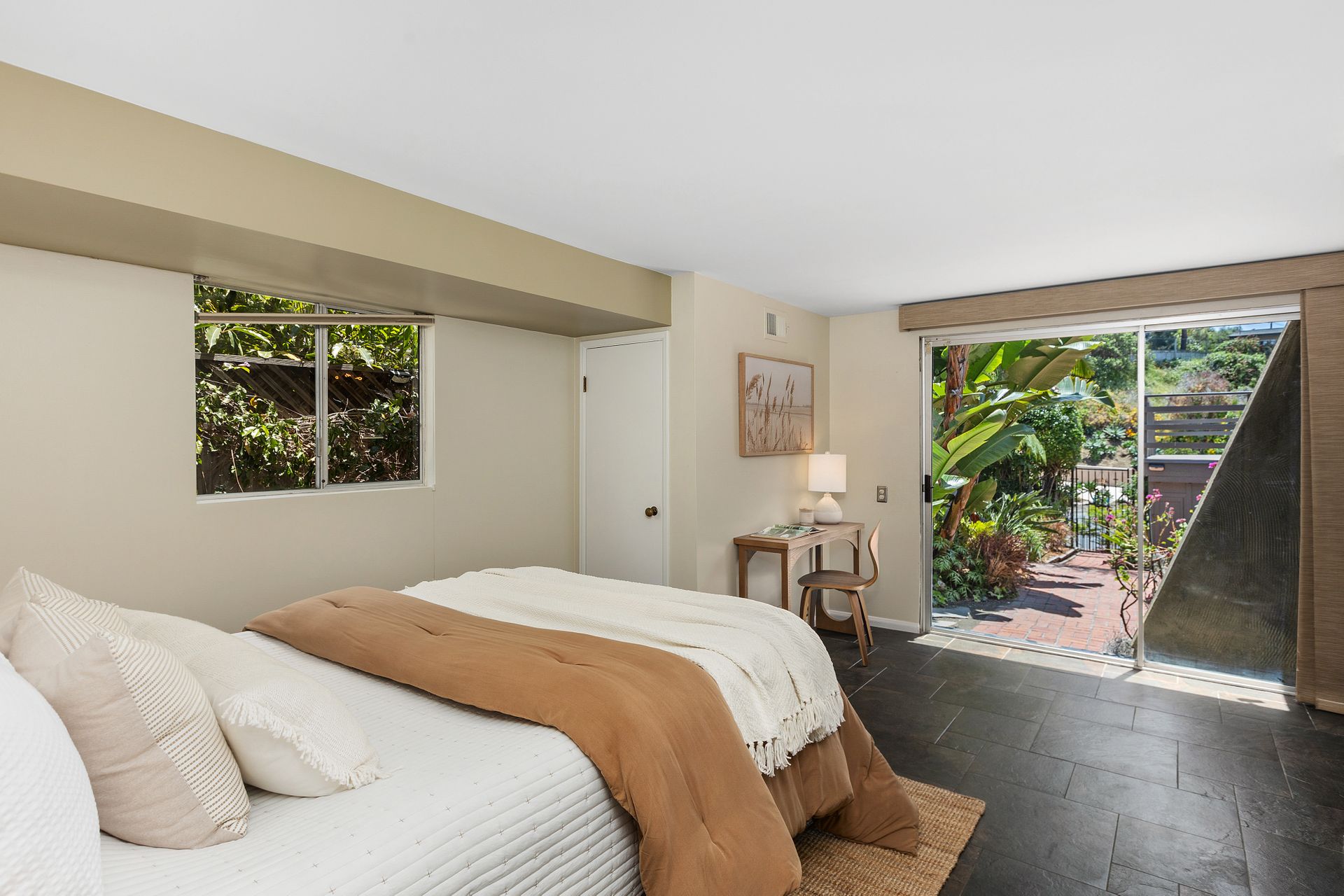 A dreamy retreat, with its captivating views of San Diego Bay, downtown and sailing regattas. A unique design by award winning architect Tom Grandona, the attention to detail in this three-level, two bedroom, two bath custom home is evident, from the spacious 11-foot high kitchen and living room ceilings with its breathtaking views, to the cozy rotunda primary bedroom suite with its own party deck. The hickory flooring and slate tile add a touch of warmth and elegance throughout the home, complementing the updated kitchen and appliances. This residence seamlessly blends indoor and outdoor living with three skylights and sliding glass doors leading to a rear yard sanctuary and deck atop the one-car carport. Being just minutes from yacht clubs, La Playa Trails and the vibrant Point Loma Village, adds to the allure of this Point Loma gem. It truly is a place where one can relax, entertain and enjoy the beauty of San Diego Bay.