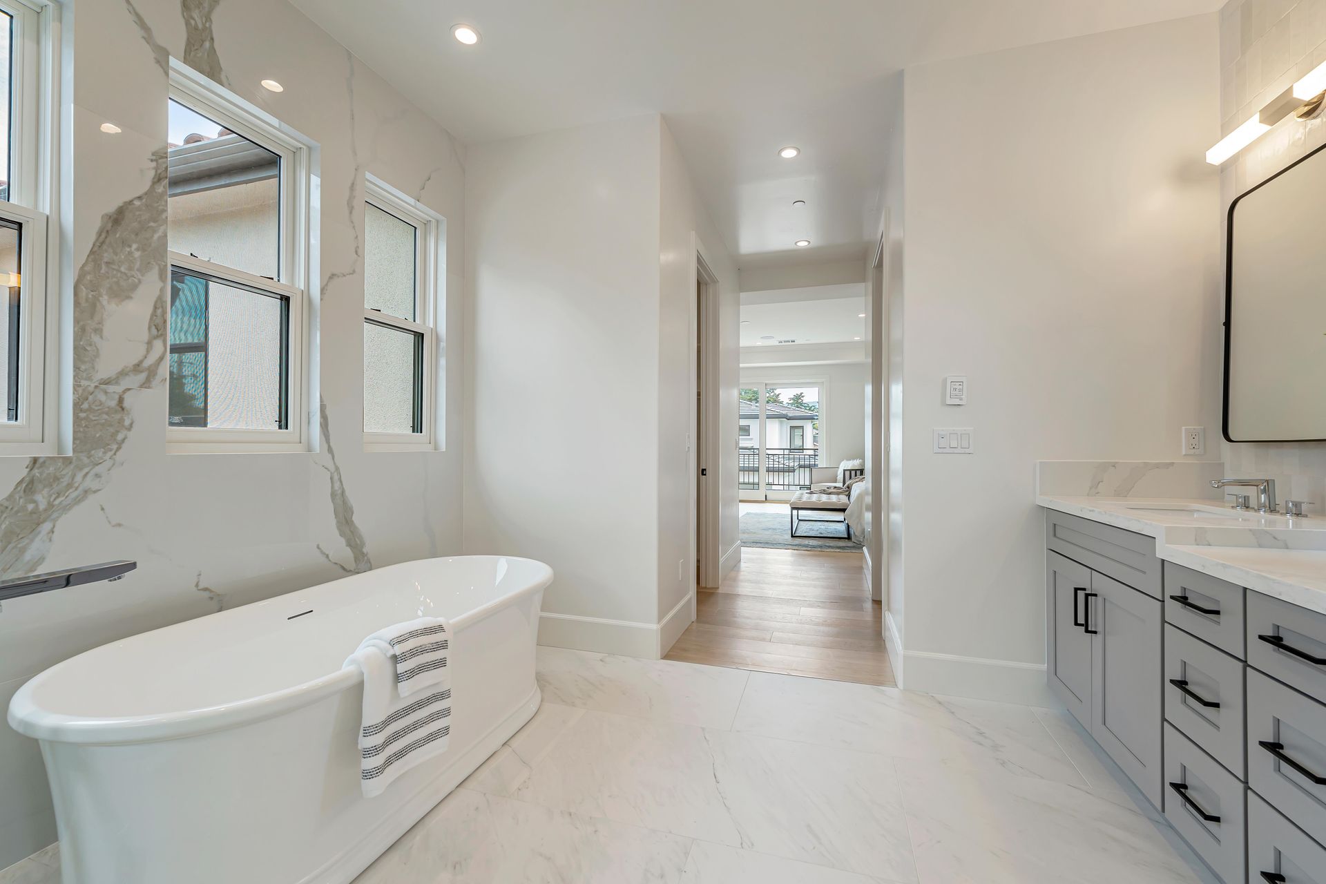 This beautiful, Mediterranean contemporary, newly construction home is located in the highly desirable Martens-Carmelita neighborhood. Enjoy an approximately13,550 square foot lot with a main house offering roughly 4,139 square feet and an ADU with around 699 square feet. This luxury custom-built, newly built home features high ceilings with abundant natural lighting and high-quality finishes. Beautiful hardwood flooring is found throughout. The chef's kitchen is equipped with executive level Bertazzoni stainless steel appliances, beautiful quartz countertops and an oversized island. A modern fireplace with a book-matched porcelain slab surrounds the living room. Elegant porcelain floor-to-ceiling full slab surrounds the shower wall, heated flooring in the primary bath. This home also includes two balconies and one big, covered porch. EV charging outlets and tons of energy-saving features include Anderson windows and doors. You can also find both electric and natural gas in this newly built home. Enjoy being located in an area with excellent schools and having a convenient commute to major tech companies.