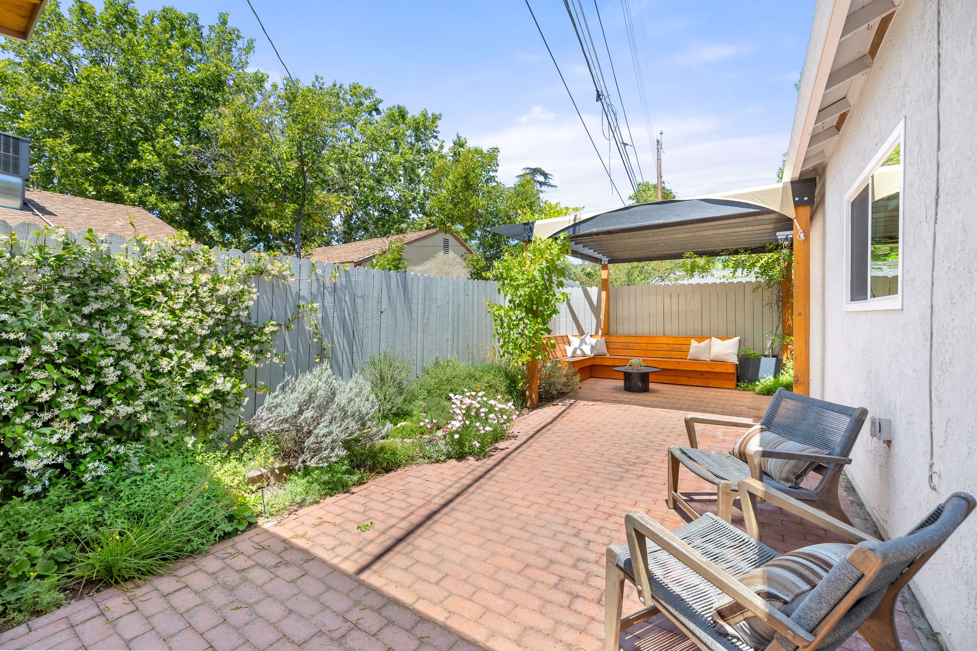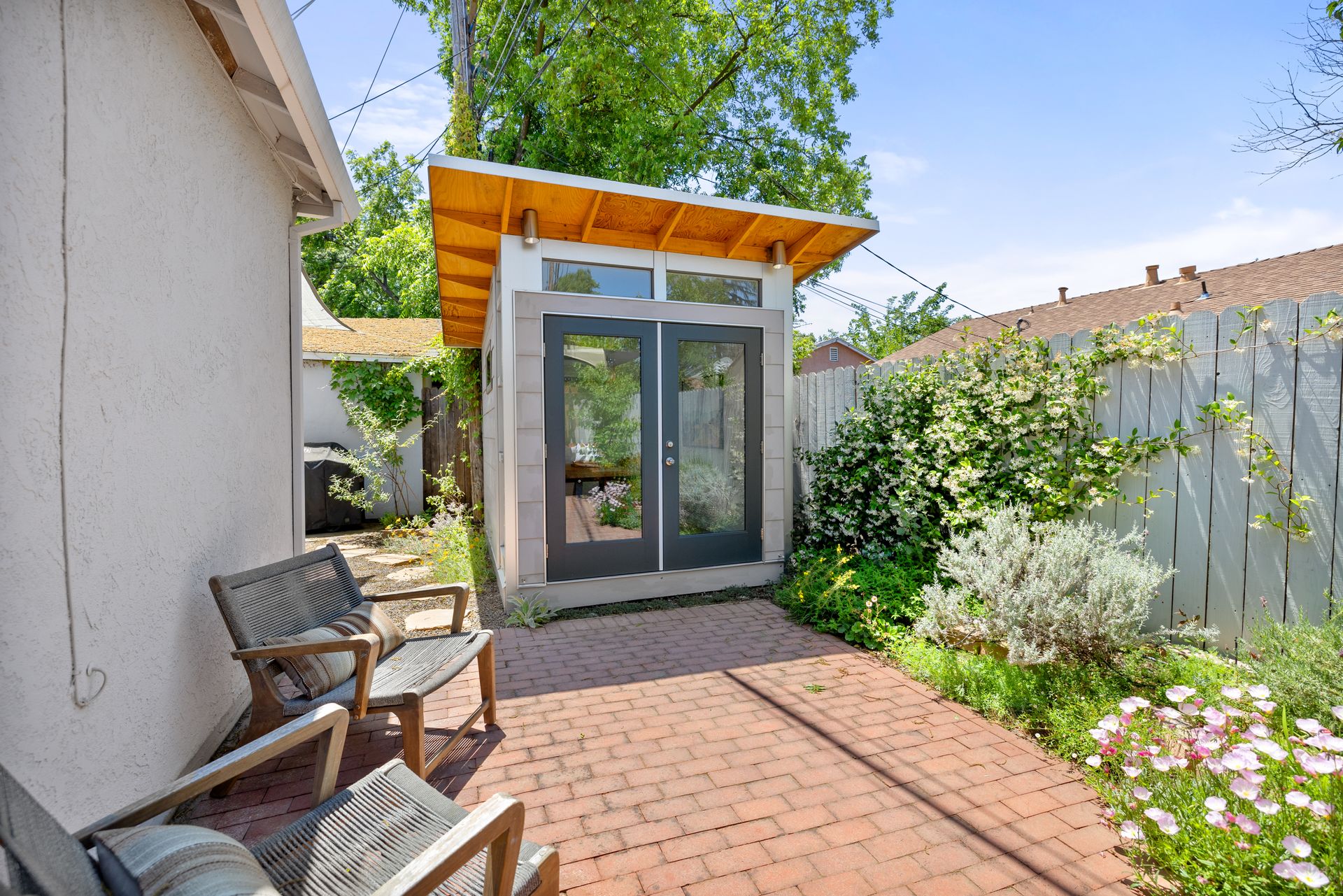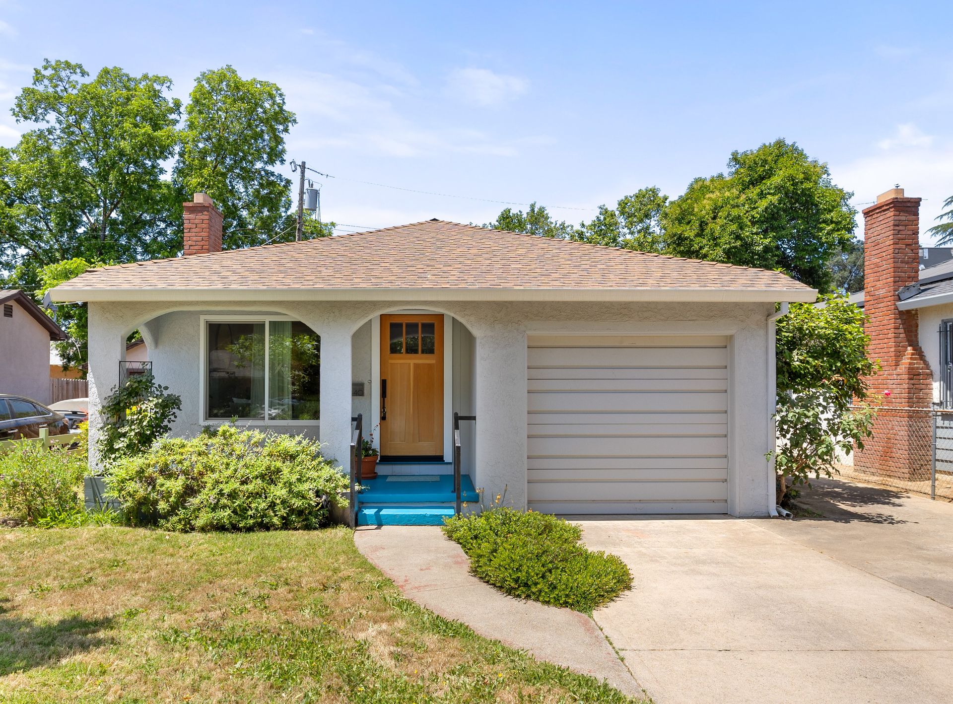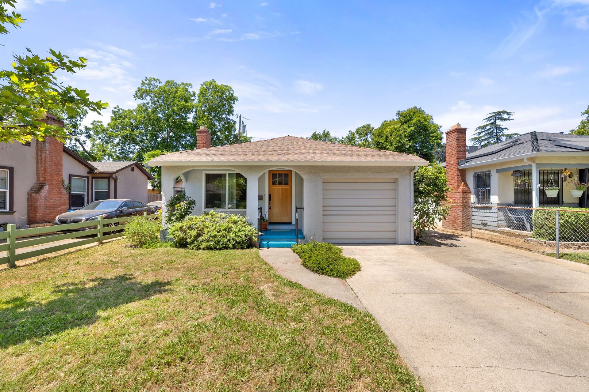 With over 1,300 square feet, this adorable 3 bedroom, 2 bath Oak Park bungalow is the ideal place to call home. The beautiful and spacious living room centers around the brick fireplace and sets the stage for this wonderful property. The kitchen and dining area have been updated with white shaker cabinets, granite countertops, stainless steel appliances and custom-built window-bench seating. Updated bathrooms, Maple wood floors, dual-pane windows, a tankless water heater, newer HVAC system, attached one-car garage and a custom laundry room with a combined washer/dryer and cabinets are just some of the amazing features. The remote third bedroom sits down in the back of the home and is so versatile. Currently used as a family room, it could also ideally be a second primary suite, playroom, studio or workout space. Spend wonderful afternoons out on the custom brick patio with its lovely pergola. There is even a detached separate office studio for additional bonus space, which features dual-pane windows and separate heating and air. Enjoy being close to McGeorge Law School, UDC Med Center, Christian Brothers High School and so much more! You don’t want to miss this one!