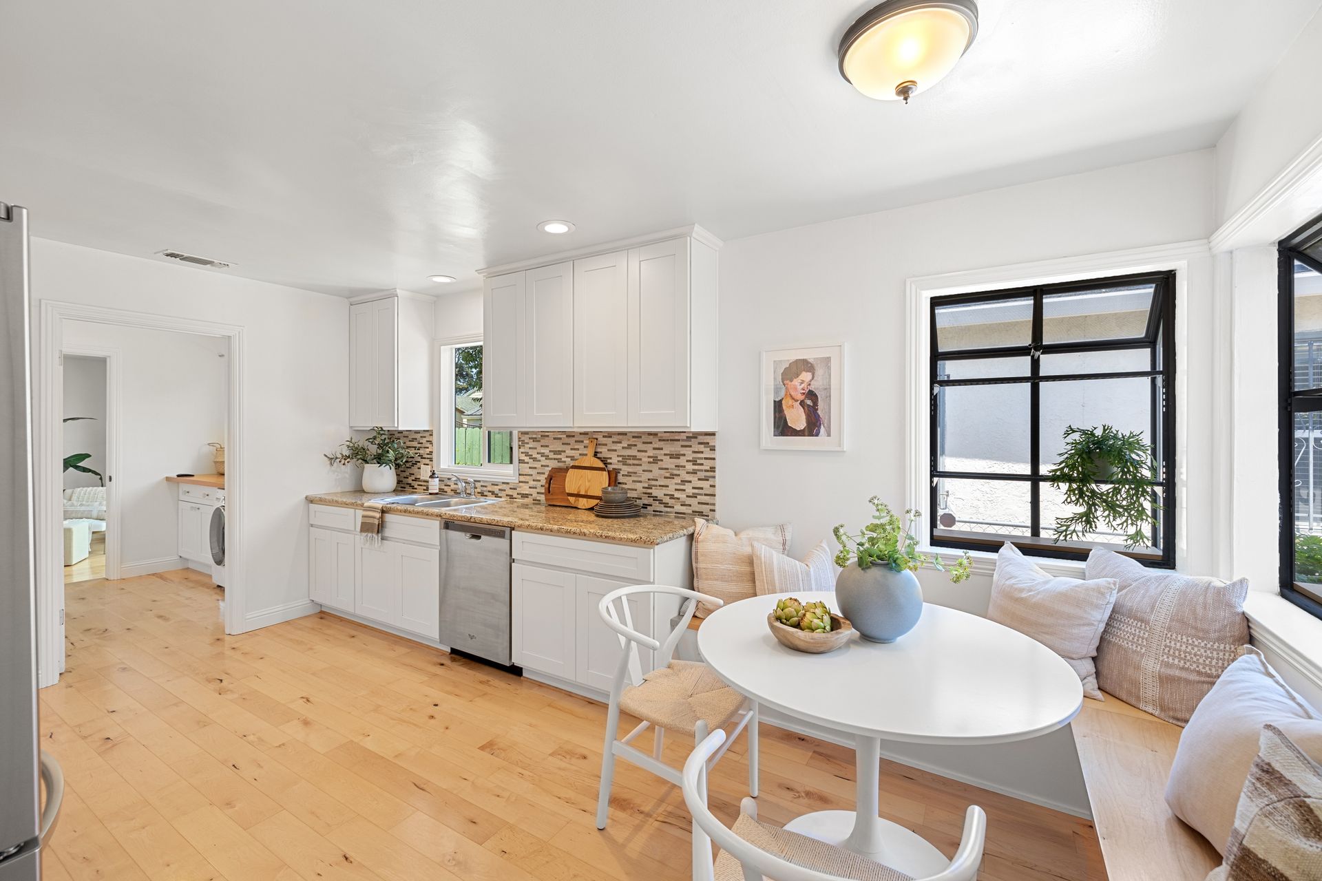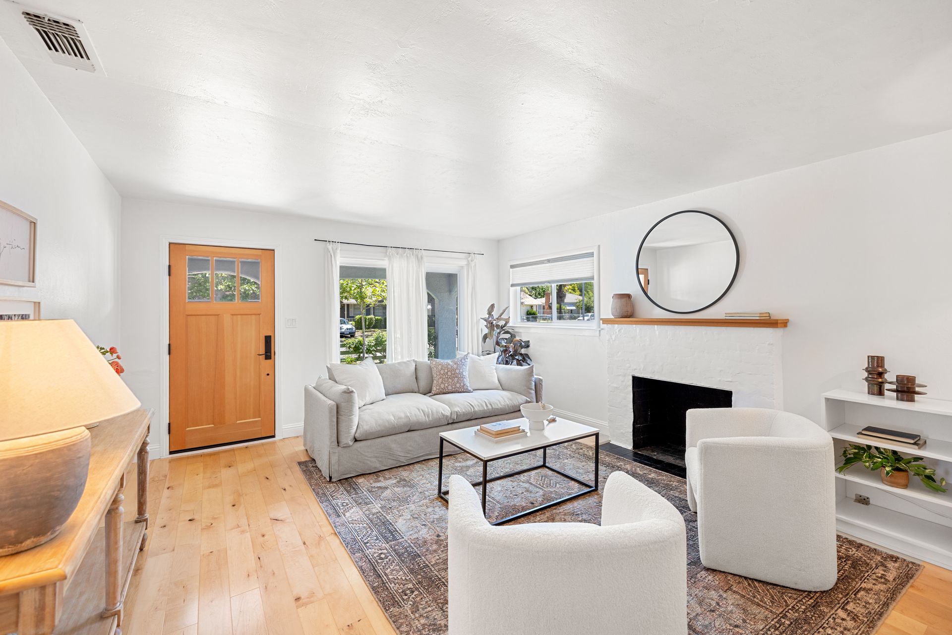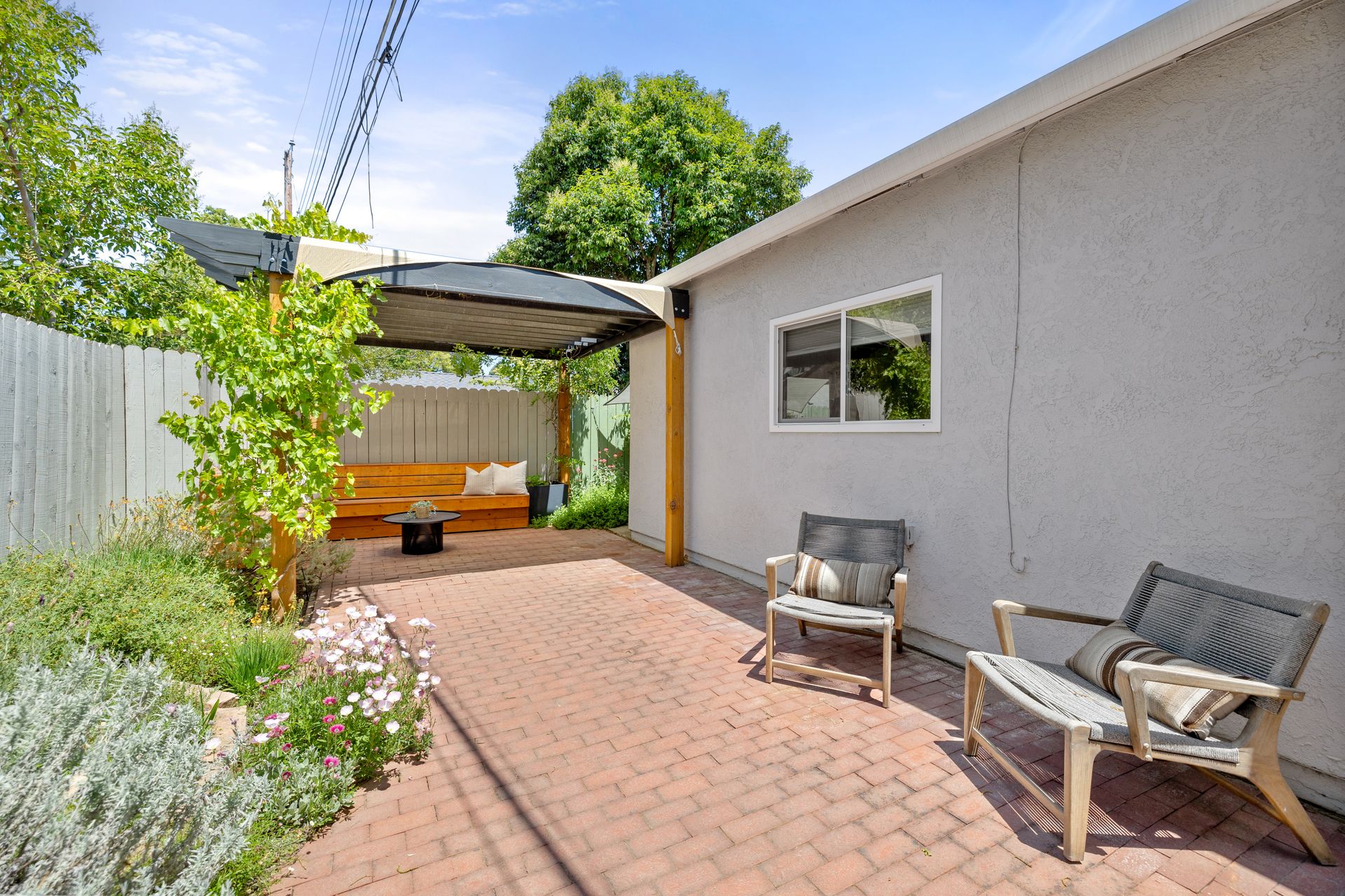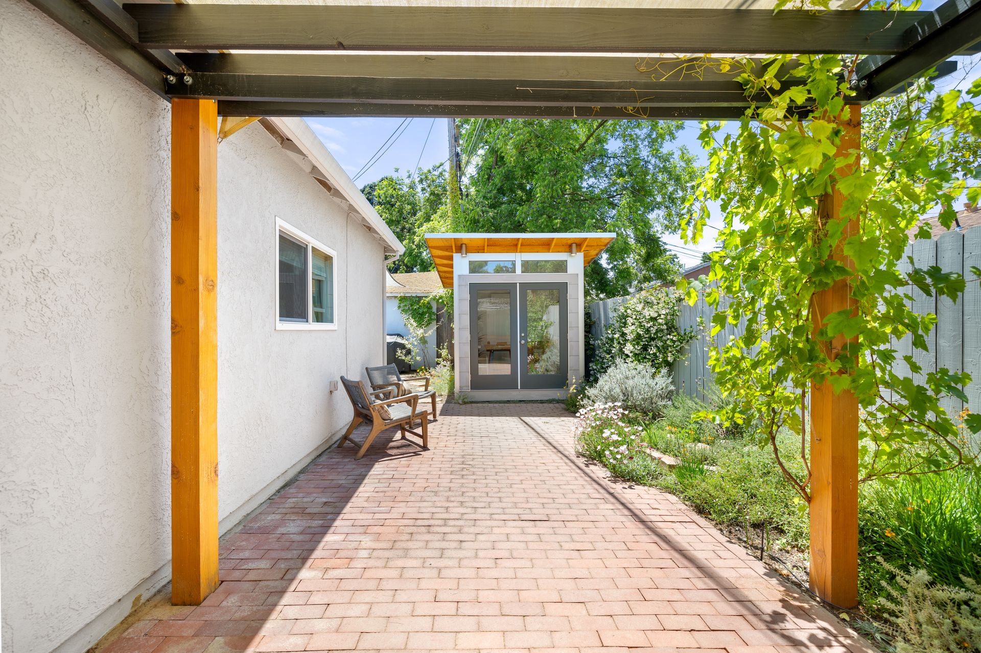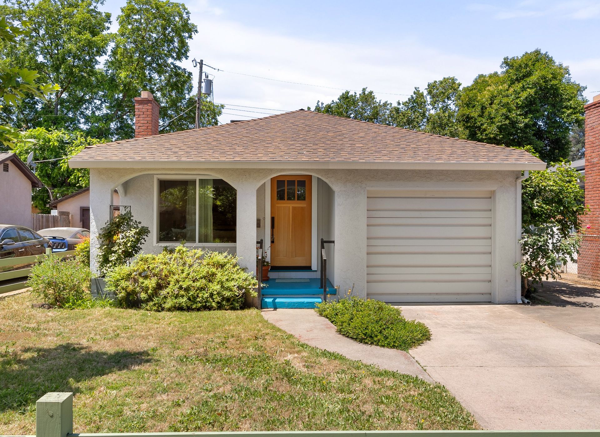 With over 1,300 square feet, this adorable 3 bedroom, 2 bath Oak Park bungalow is the ideal place to call home. The beautiful and spacious living room centers around the brick fireplace and sets the stage for this wonderful property. The kitchen and dining area have been updated with white shaker cabinets, granite countertops, stainless steel appliances and custom-built window-bench seating. Updated bathrooms, Maple wood floors, dual-pane windows, a tankless water heater, newer HVAC system, attached one-car garage and a custom laundry room with a combined washer/dryer and cabinets are just some of the amazing features. The remote third bedroom sits down in the back of the home and is so versatile. Currently used as a family room, it could also ideally be a second primary suite, playroom, studio or workout space. Spend wonderful afternoons out on the custom brick patio with its lovely pergola. There is even a detached separate office studio for additional bonus space, which features dual-pane windows and separate heating and air. Enjoy being close to McGeorge Law School, UDC Med Center, Christian Brothers High School and so much more! You don’t want to miss this one!