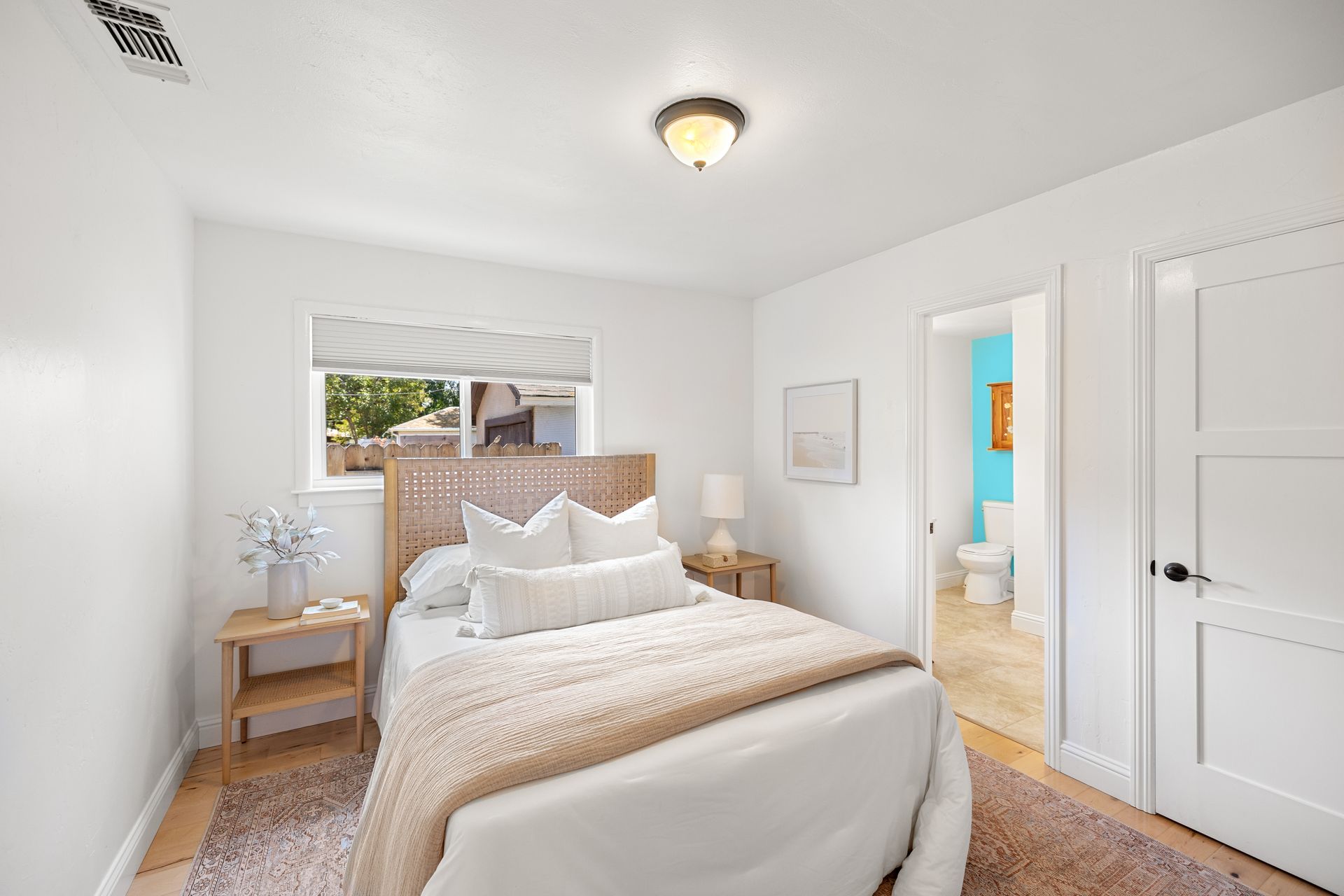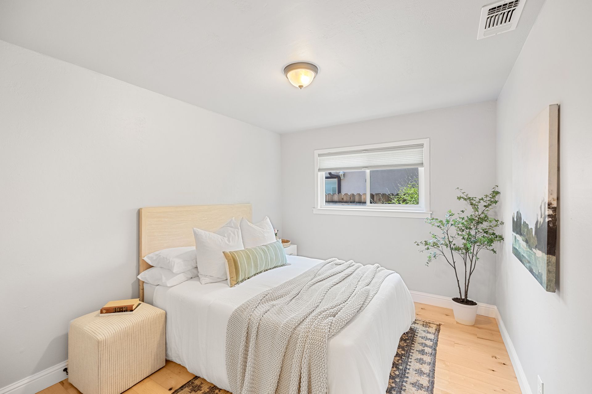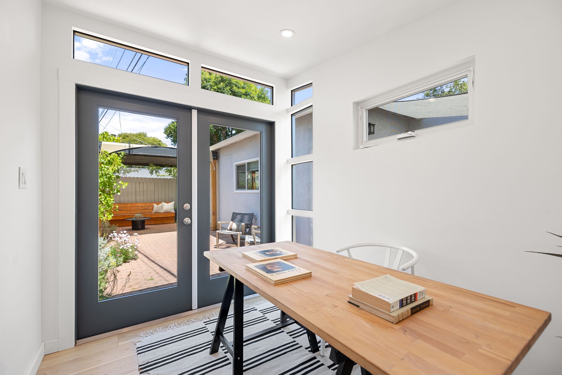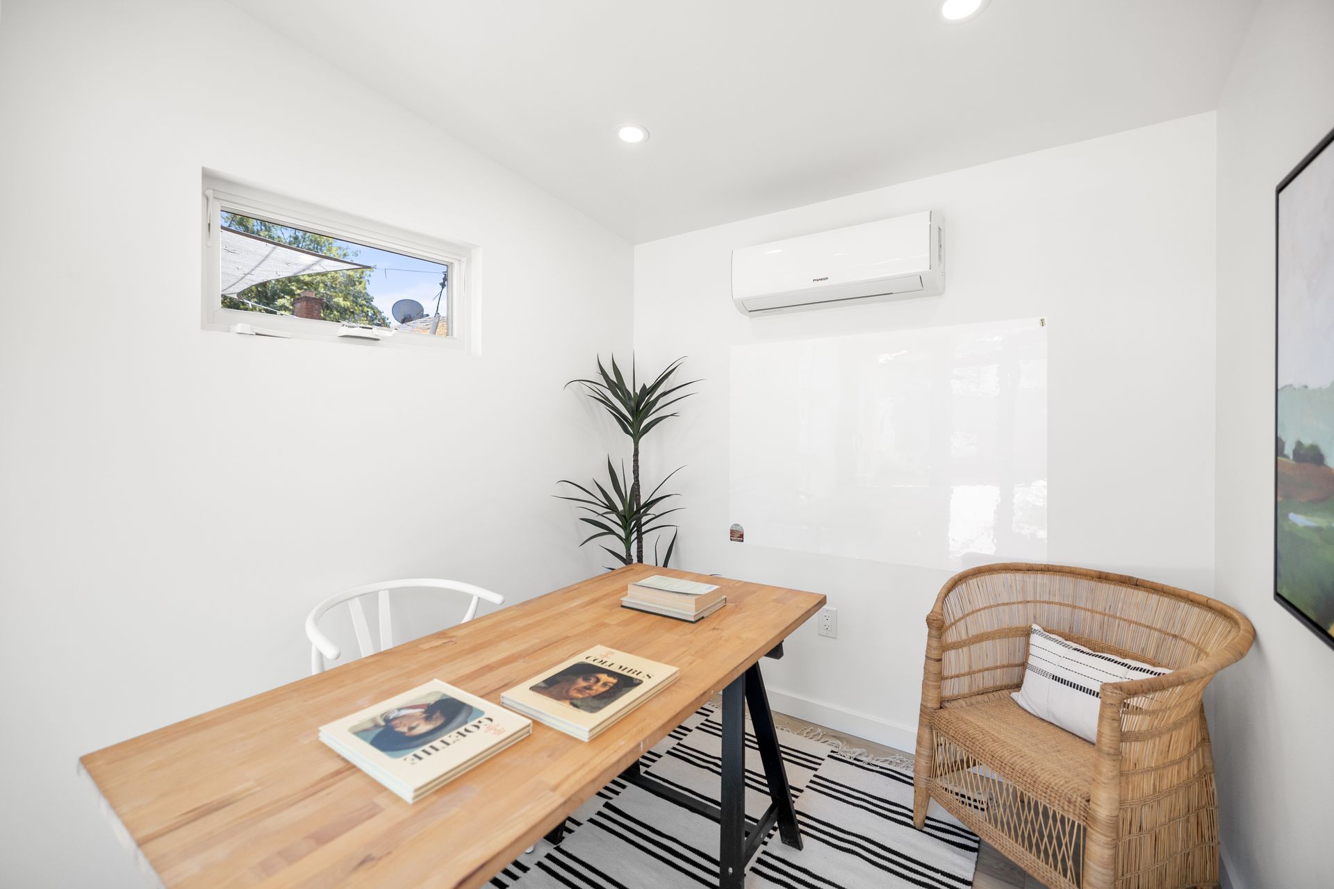 With over 1,300 square feet, this adorable 3 bedroom, 2 bath Oak Park bungalow is the ideal place to call home. The beautiful and spacious living room centers around the brick fireplace and sets the stage for this wonderful property. The kitchen and dining area have been updated with white shaker cabinets, granite countertops, stainless steel appliances and custom-built window-bench seating. Updated bathrooms, Maple wood floors, dual-pane windows, a tankless water heater, newer HVAC system, attached one-car garage and a custom laundry room with a combined washer/dryer and cabinets are just some of the amazing features. The remote third bedroom sits down in the back of the home and is so versatile. Currently used as a family room, it could also ideally be a second primary suite, playroom, studio or workout space. Spend wonderful afternoons out on the custom brick patio with its lovely pergola. There is even a detached separate office studio for additional bonus space, which features dual-pane windows and separate heating and air. Enjoy being close to McGeorge Law School, UDC Med Center, Christian Brothers High School and so much more! You don’t want to miss this one!