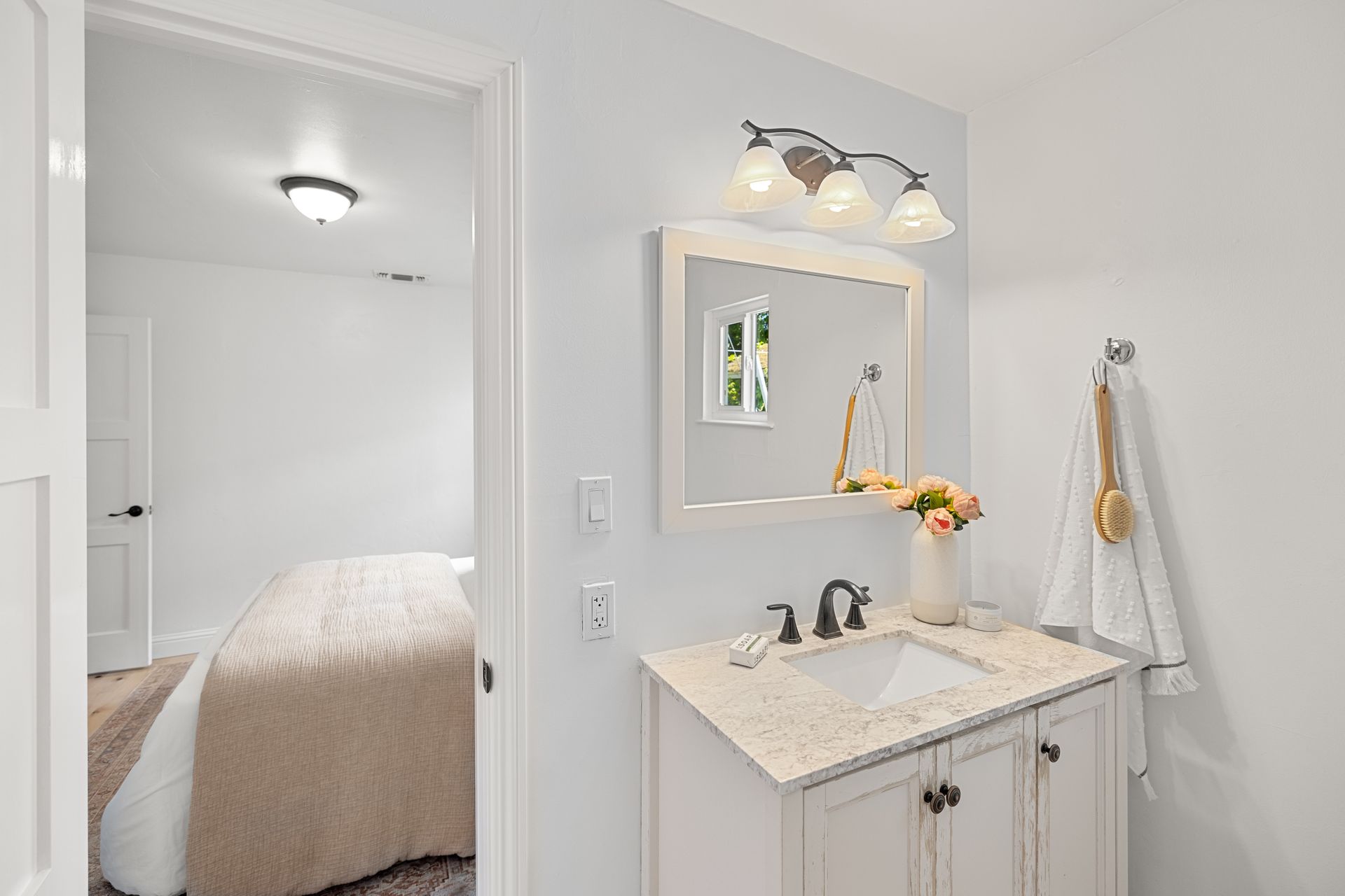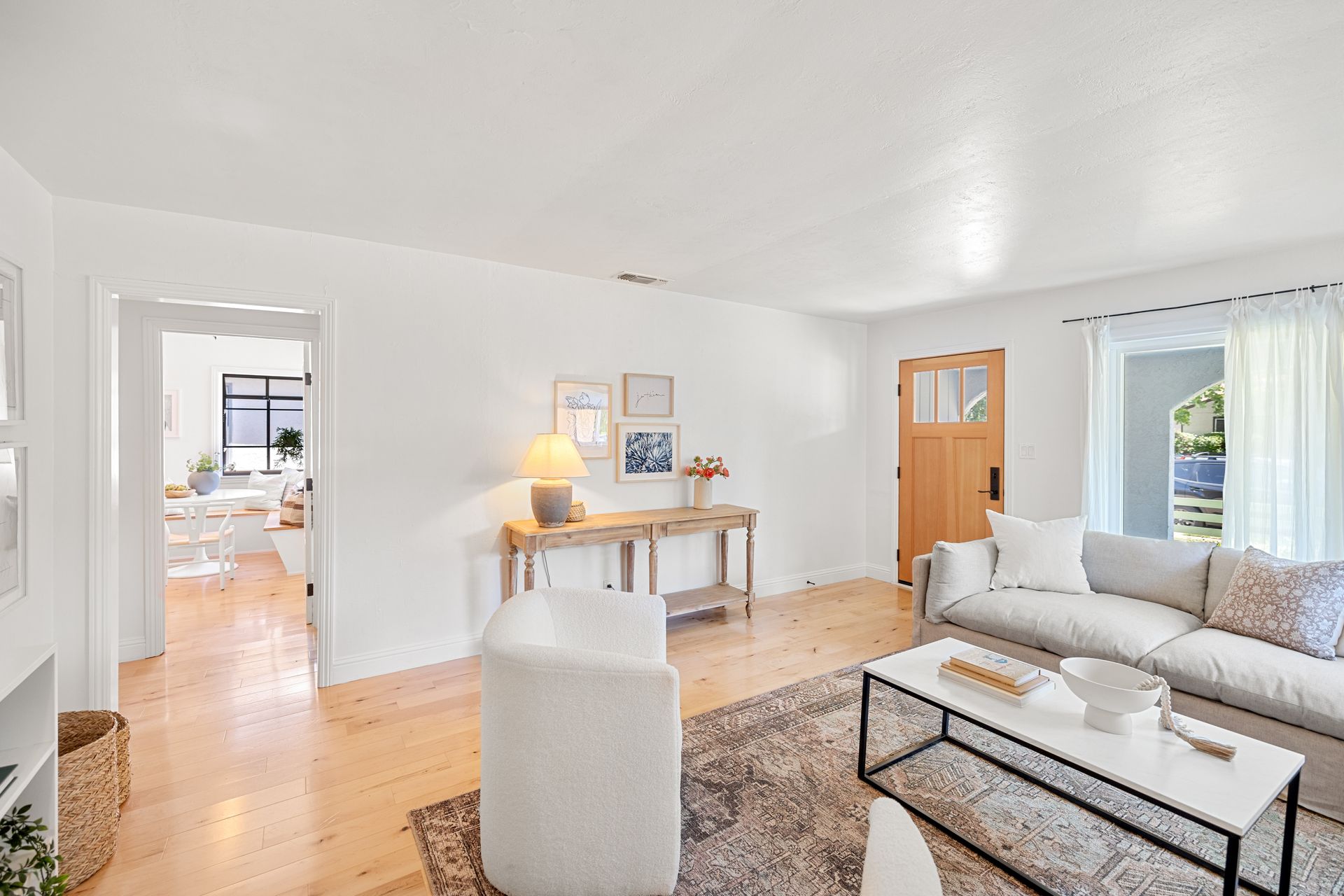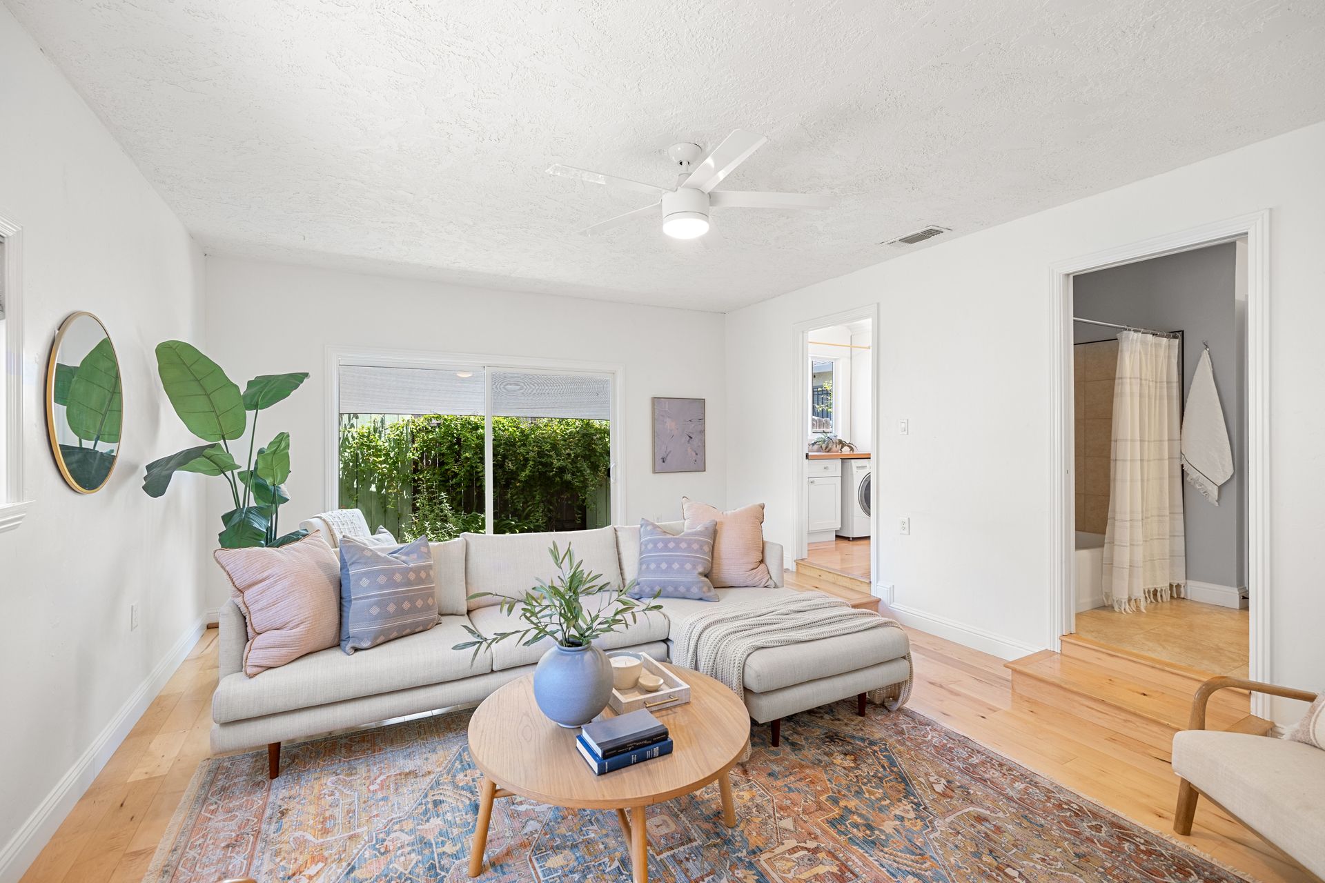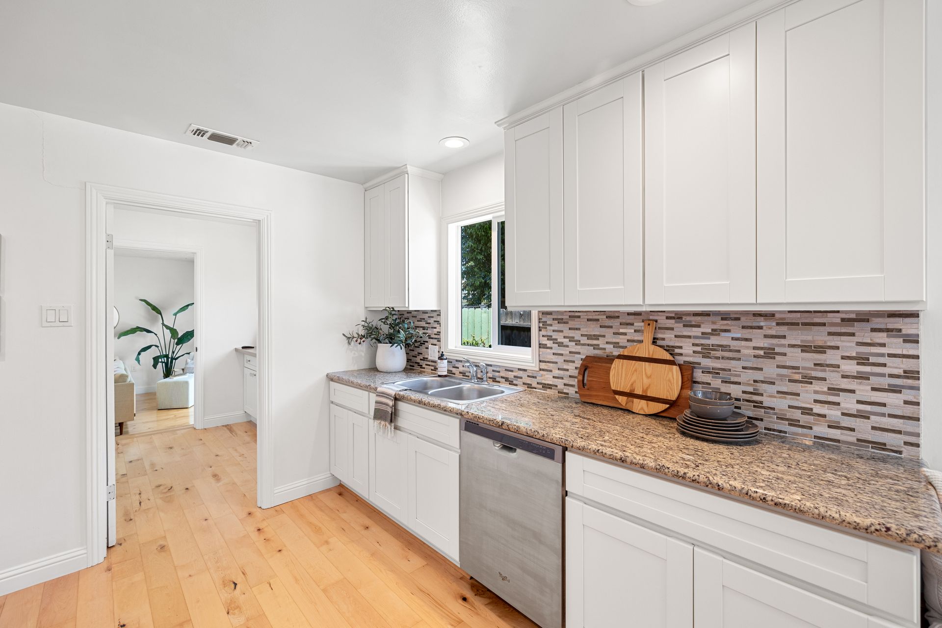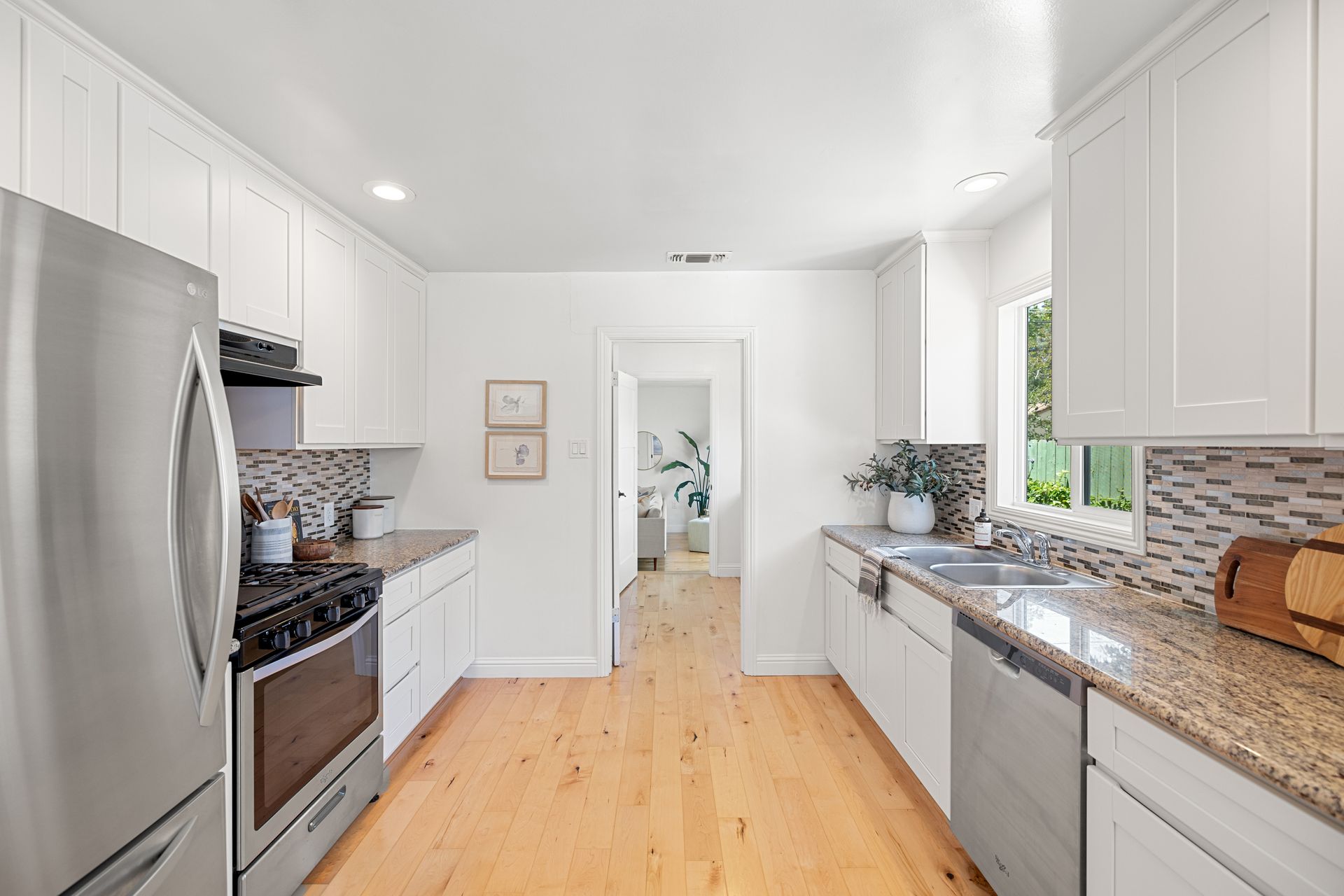 With over 1,300 square feet, this adorable 3 bedroom, 2 bath Oak Park bungalow is the ideal place to call home. The beautiful and spacious living room centers around the brick fireplace and sets the stage for this wonderful property. The kitchen and dining area have been updated with white shaker cabinets, granite countertops, stainless steel appliances and custom-built window-bench seating. Updated bathrooms, Maple wood floors, dual-pane windows, a tankless water heater, newer HVAC system, attached one-car garage and a custom laundry room with a combined washer/dryer and cabinets are just some of the amazing features. The remote third bedroom sits down in the back of the home and is so versatile. Currently used as a family room, it could also ideally be a second primary suite, playroom, studio or workout space. Spend wonderful afternoons out on the custom brick patio with its lovely pergola. There is even a detached separate office studio for additional bonus space, which features dual-pane windows and separate heating and air. Enjoy being close to McGeorge Law School, UDC Med Center, Christian Brothers High School and so much more! You don’t want to miss this one!