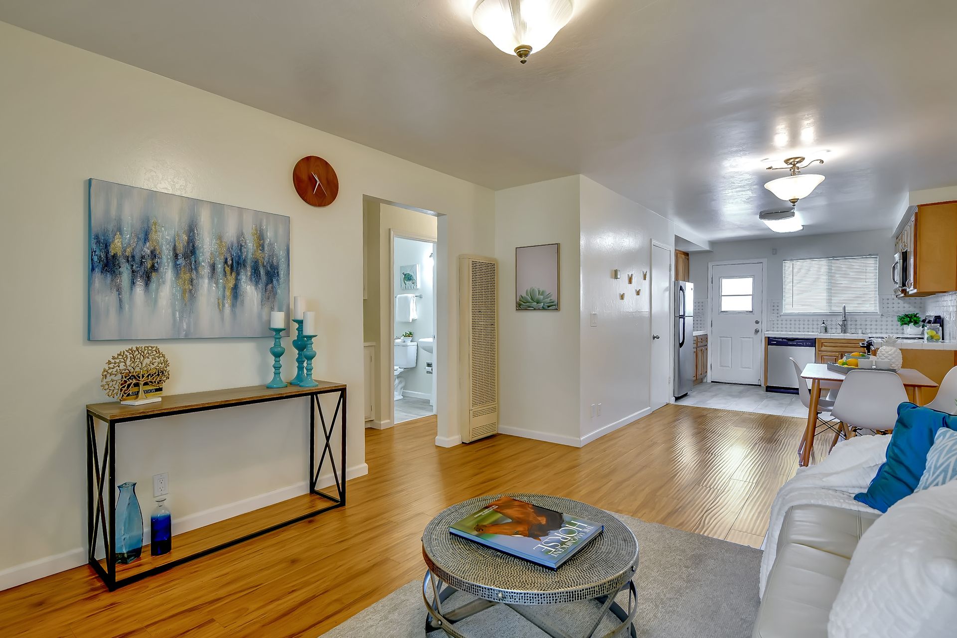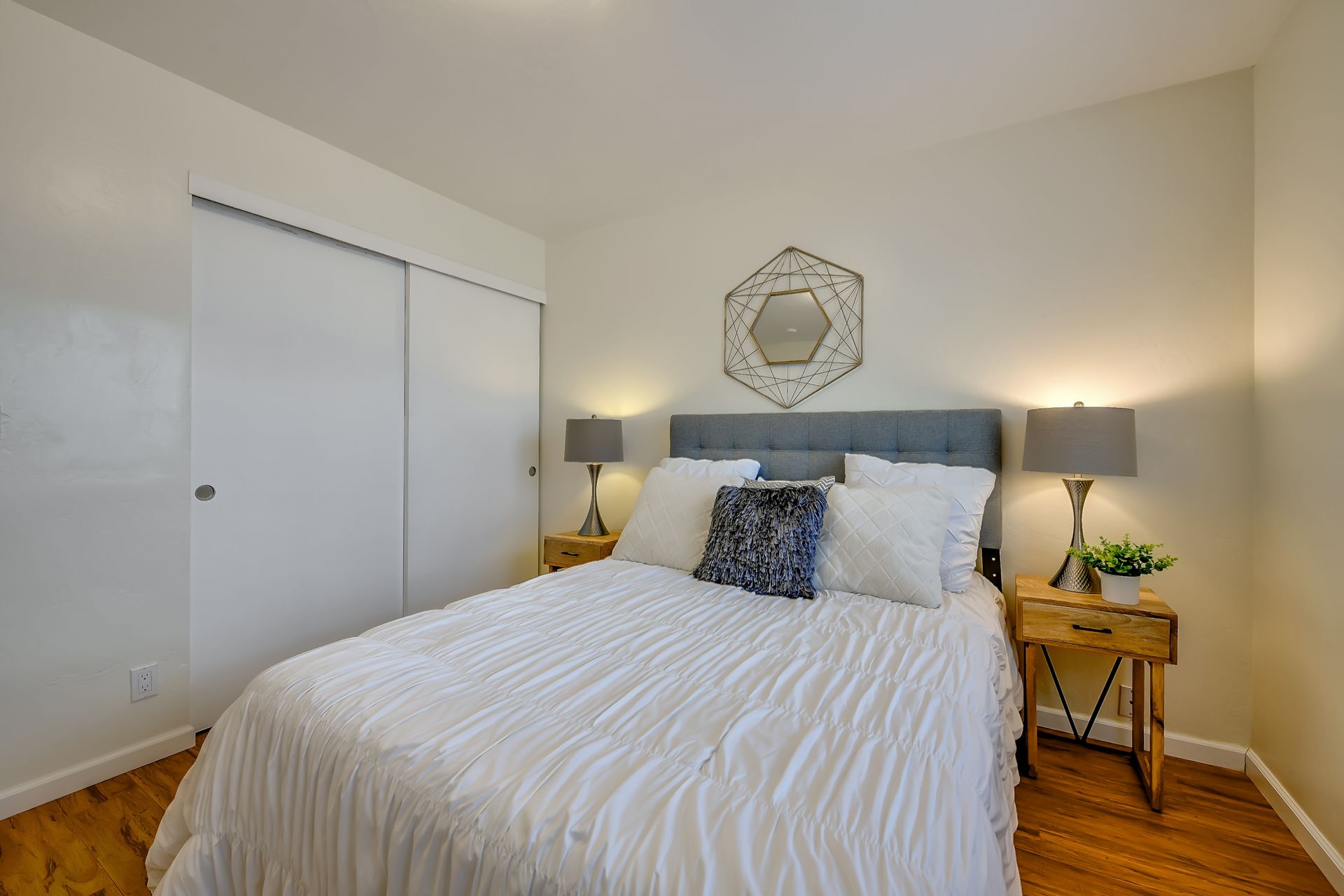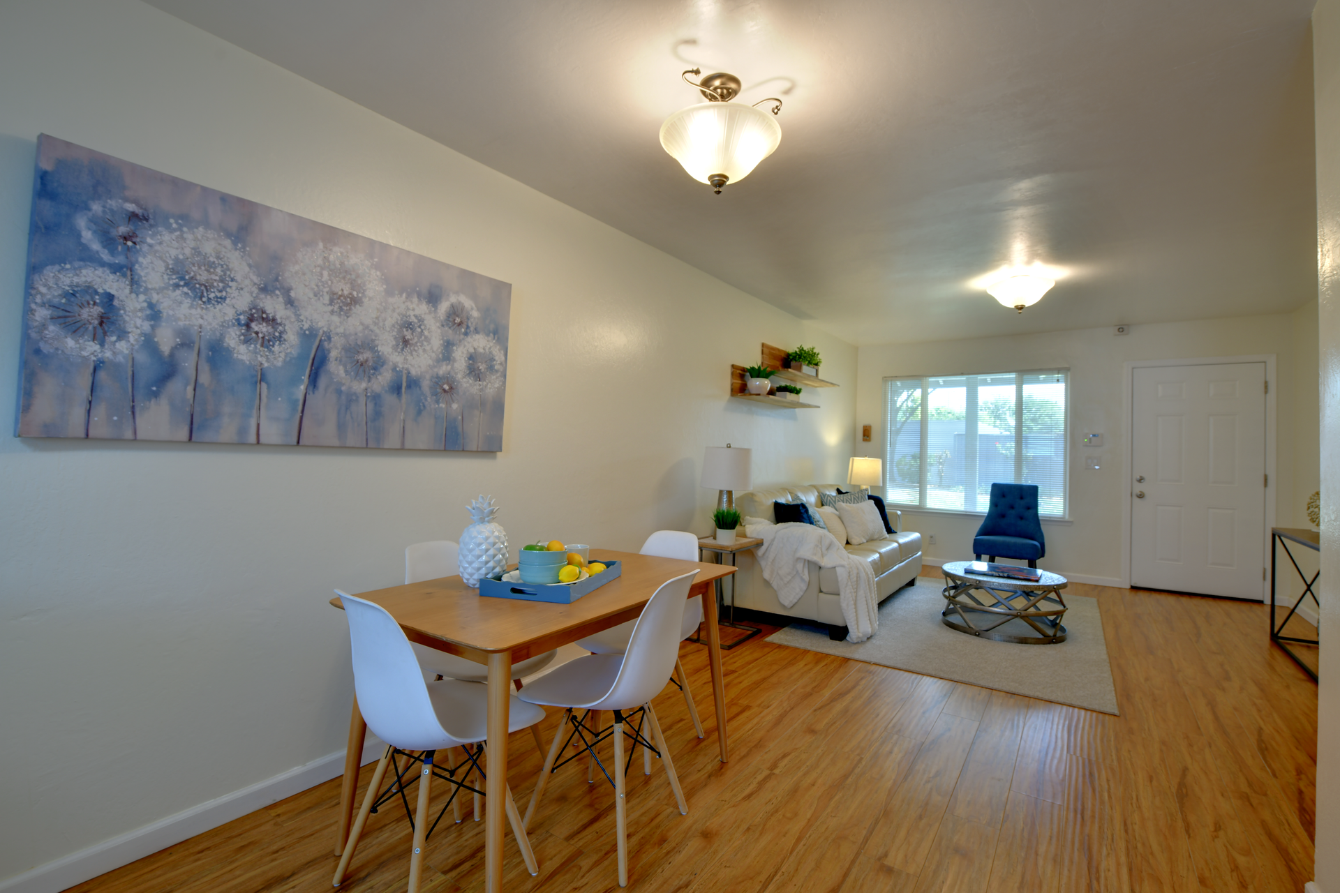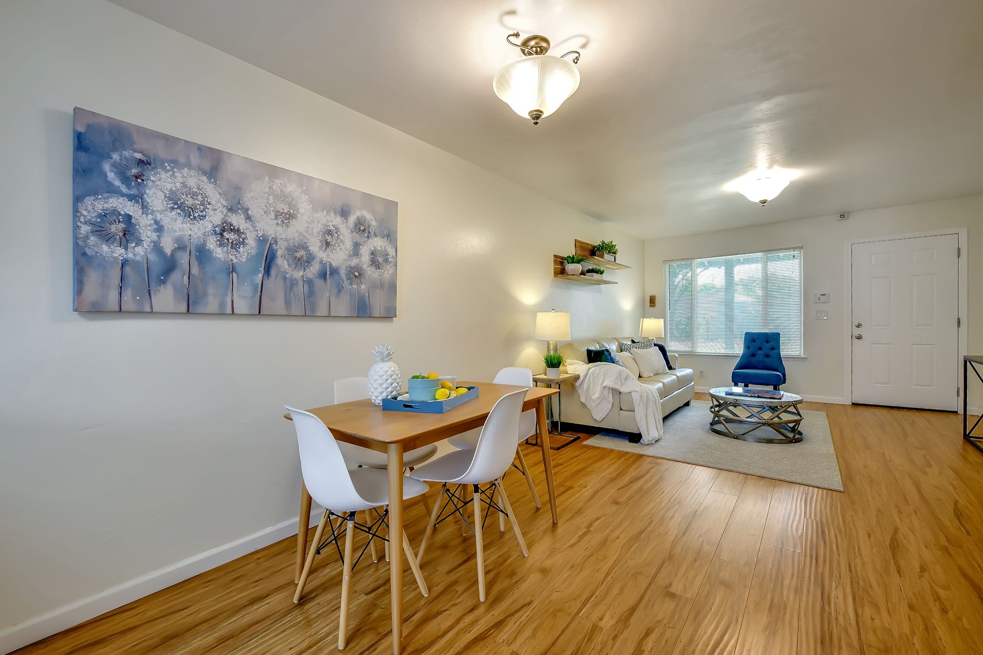 Ideal, well kept 2/1 townhome in desirable complex. Just minutes drive to shopping, restaurants, entertainment, 101 and 87. EZ drive to BART station. Very cozy. Well kept wood look laminate floor leads from family room to light and bright open concept kitchen overlooking private patio/garden area. Paint has been touched up, bathroom has been updated with new floor + more, new floor in the kitchen too. 2 car garage is attached at back wall behind the garden area. Newer hot water heater. HOA replaced roof 2 years ago, building is recently painted and fumigated by HOA. Home is turn key. All appliances included. Buyer to verify schools/sq footage. Hurry.