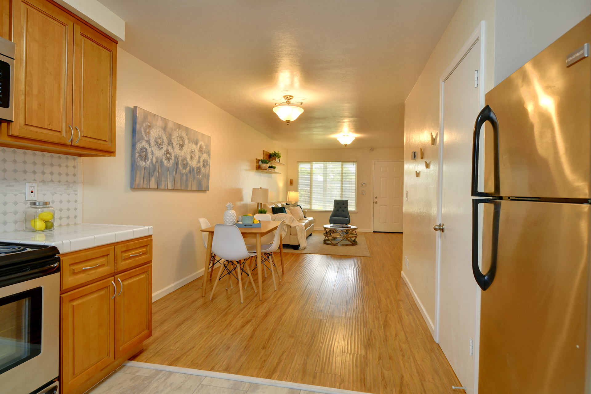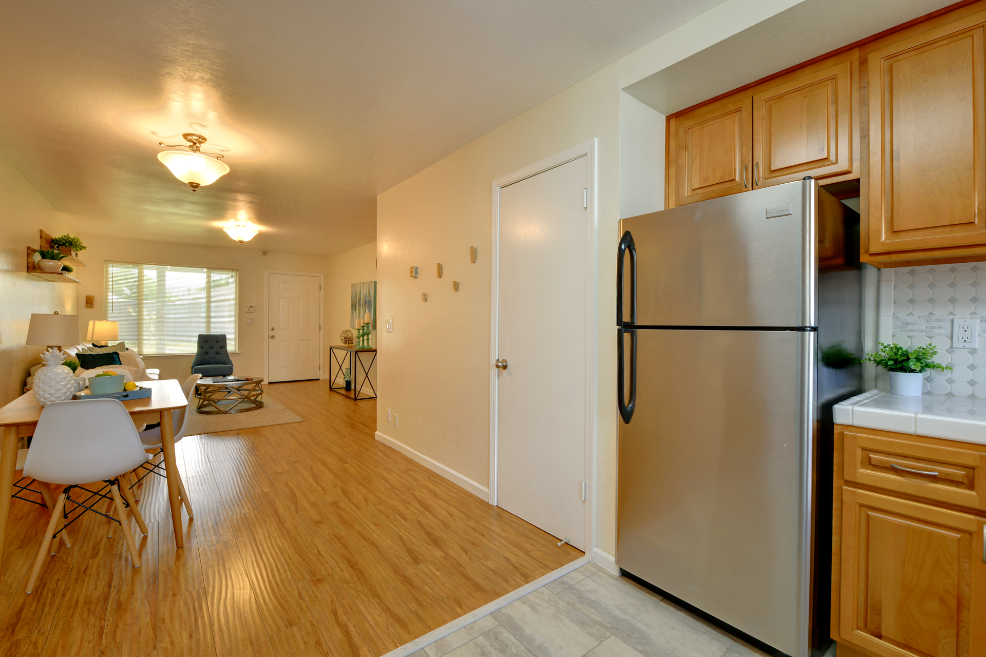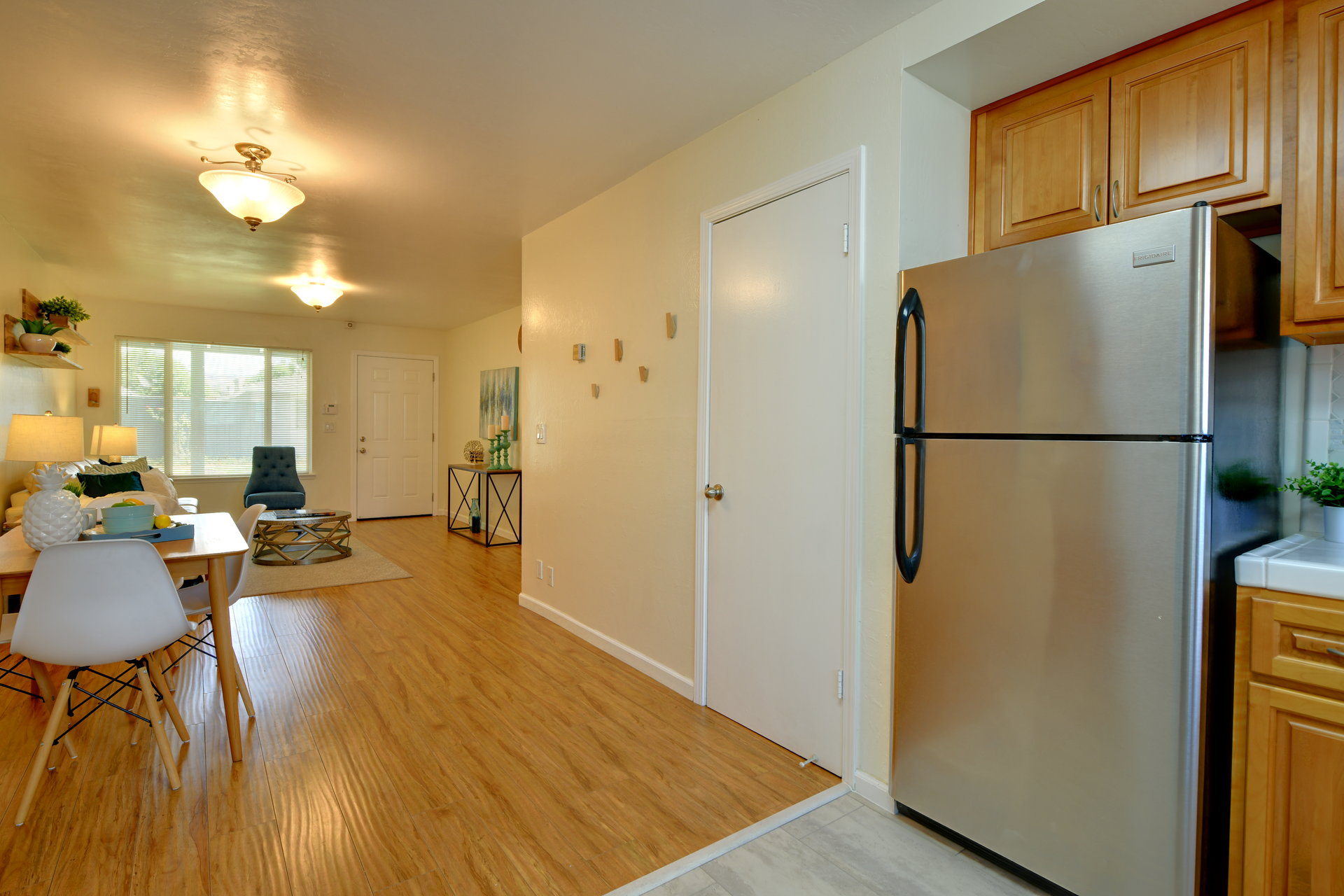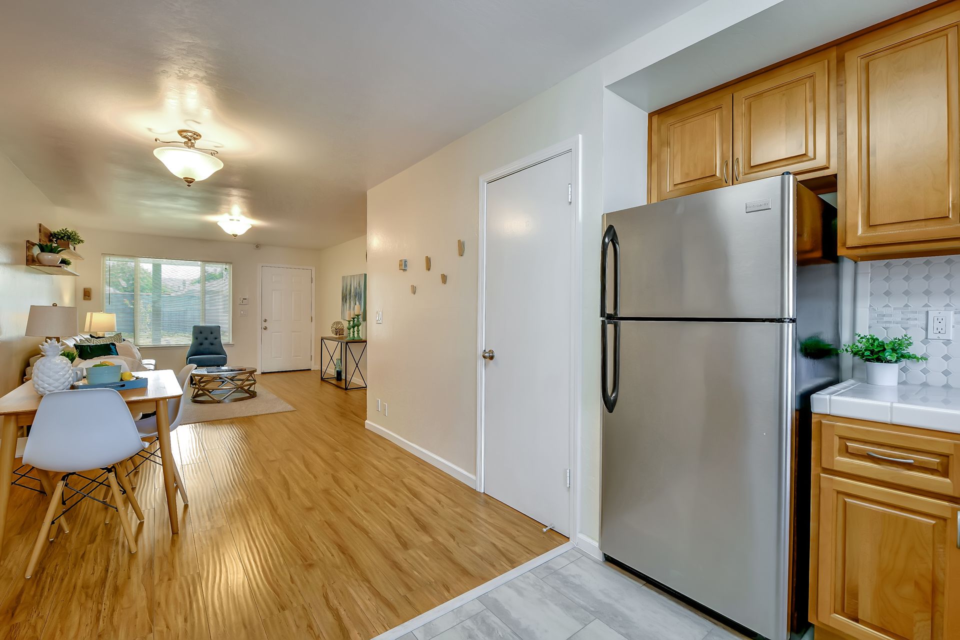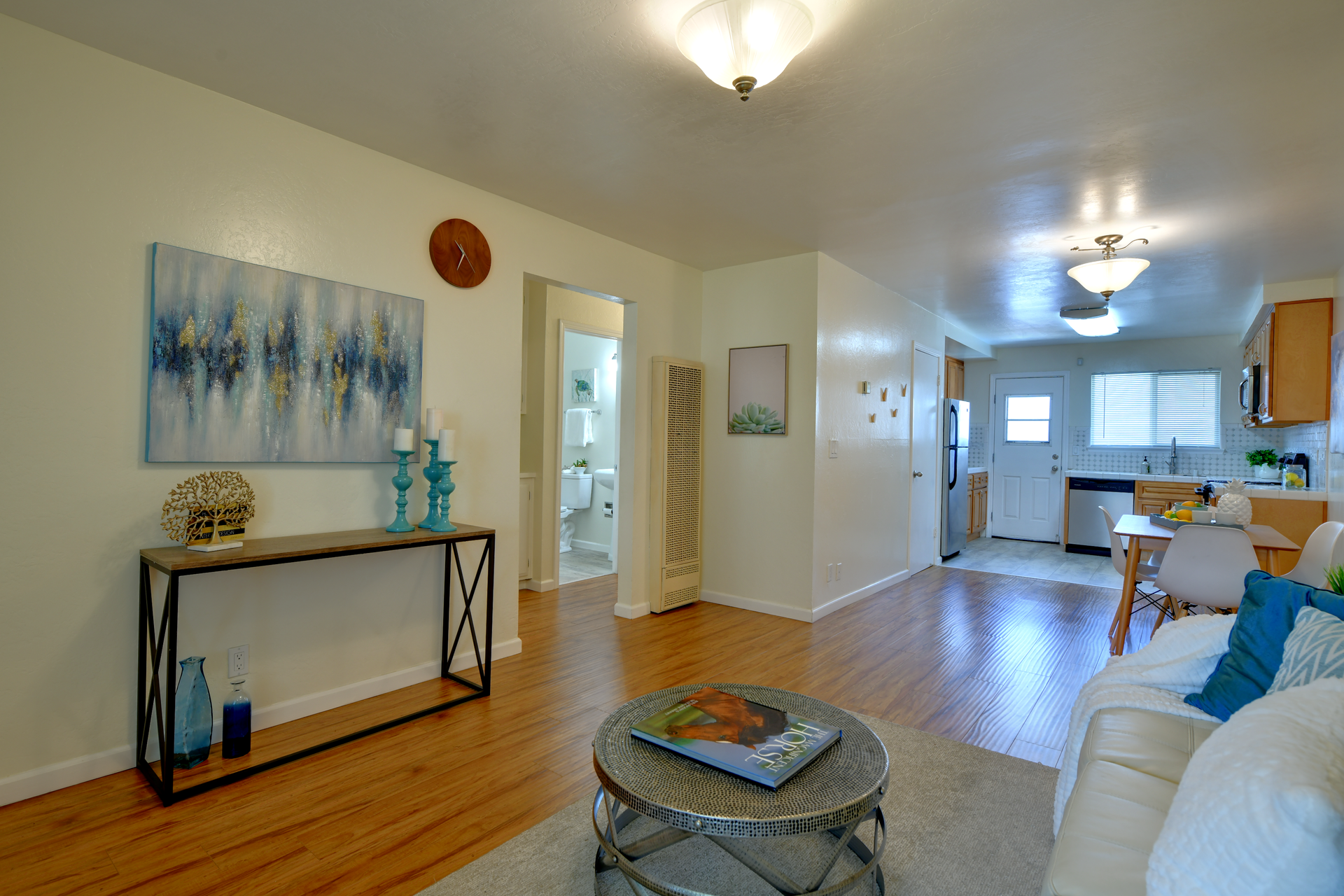 Ideal, well kept 2/1 townhome in desirable complex. Just minutes drive to shopping, restaurants, entertainment, 101 and 87. EZ drive to BART station. Very cozy. Well kept wood look laminate floor leads from family room to light and bright open concept kitchen overlooking private patio/garden area. Paint has been touched up, bathroom has been updated with new floor + more, new floor in the kitchen too. 2 car garage is attached at back wall behind the garden area. Newer hot water heater. HOA replaced roof 2 years ago, building is recently painted and fumigated by HOA. Home is turn key. All appliances included. Buyer to verify schools/sq footage. Hurry.