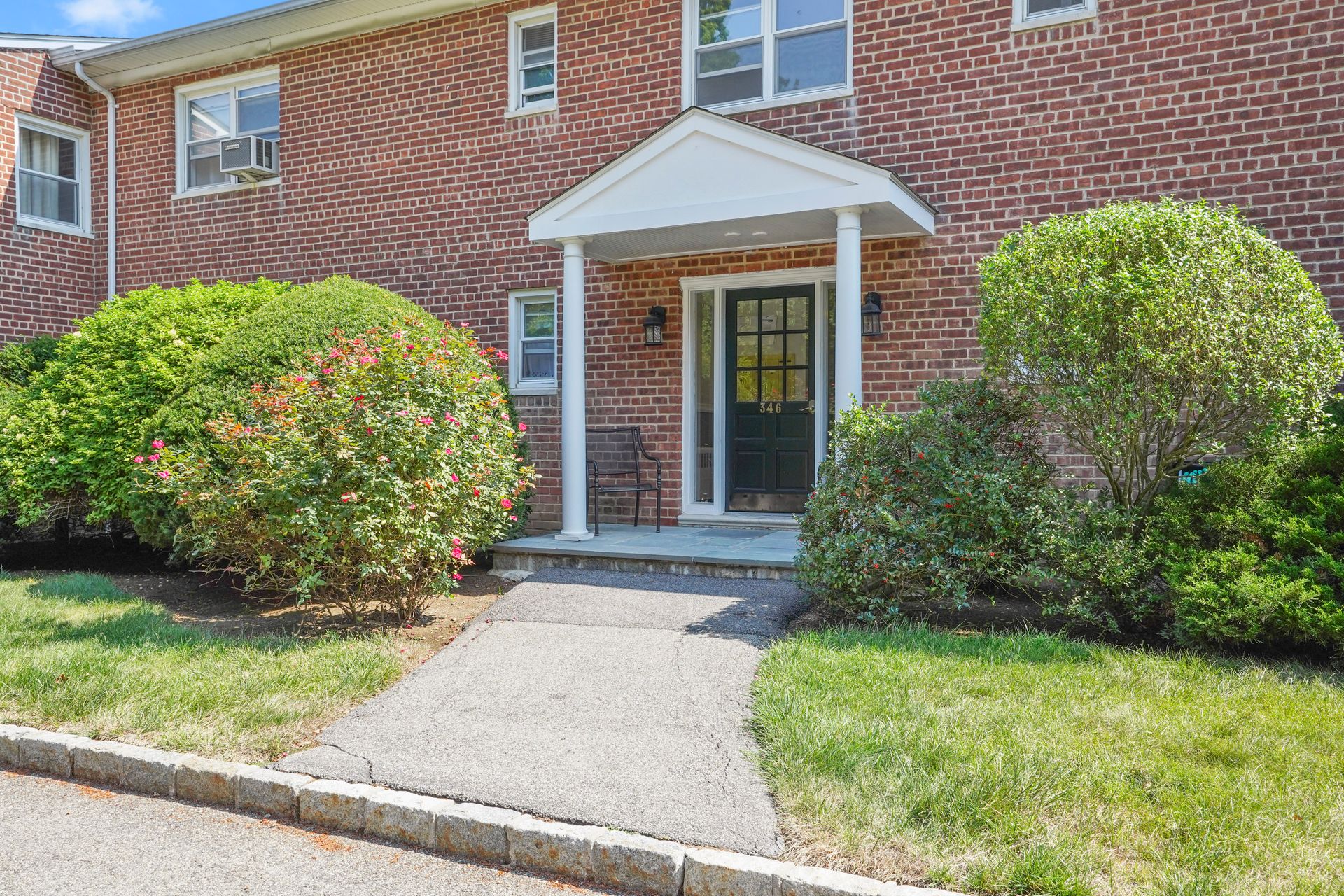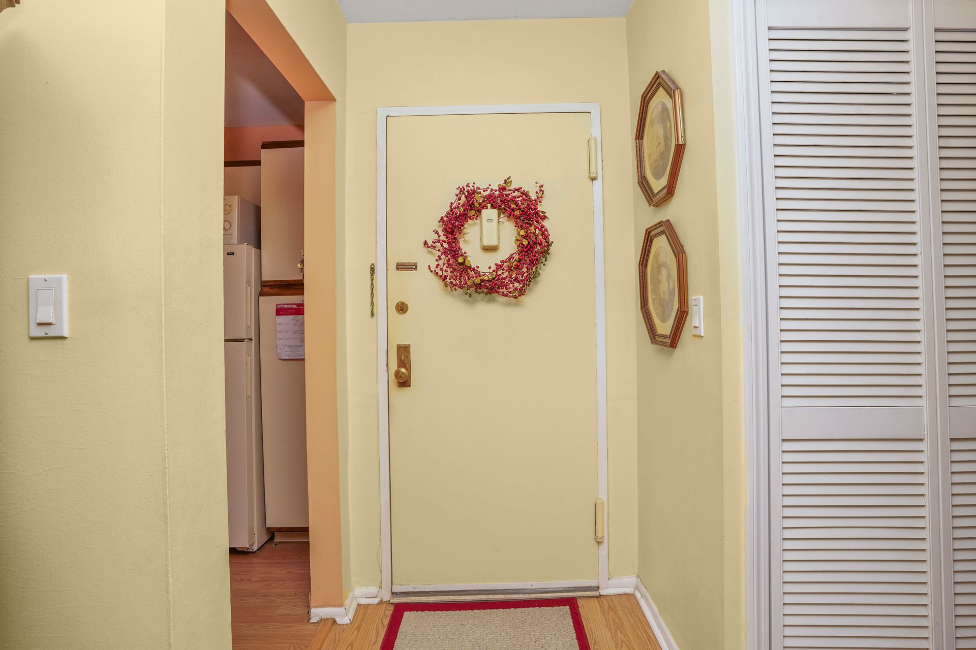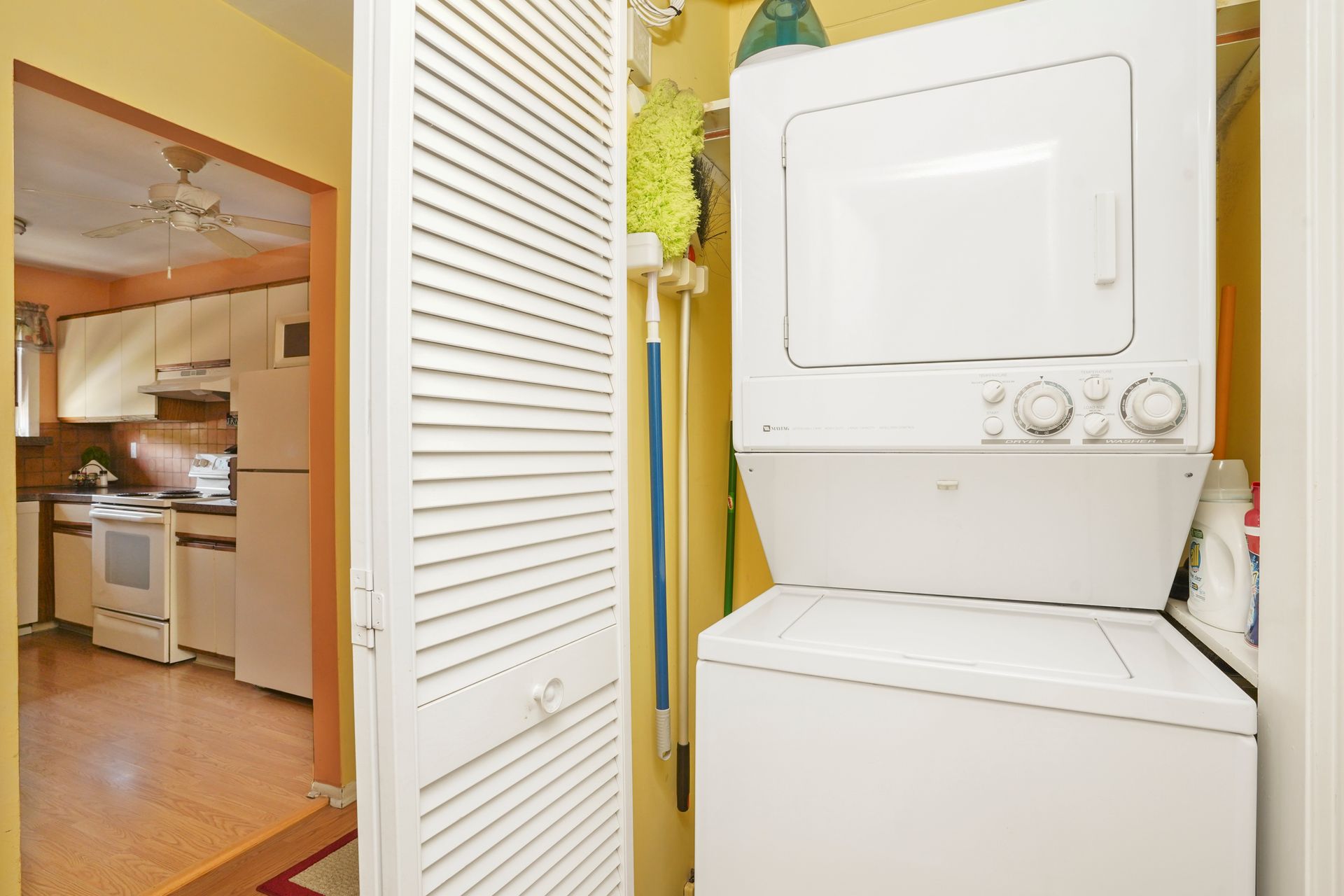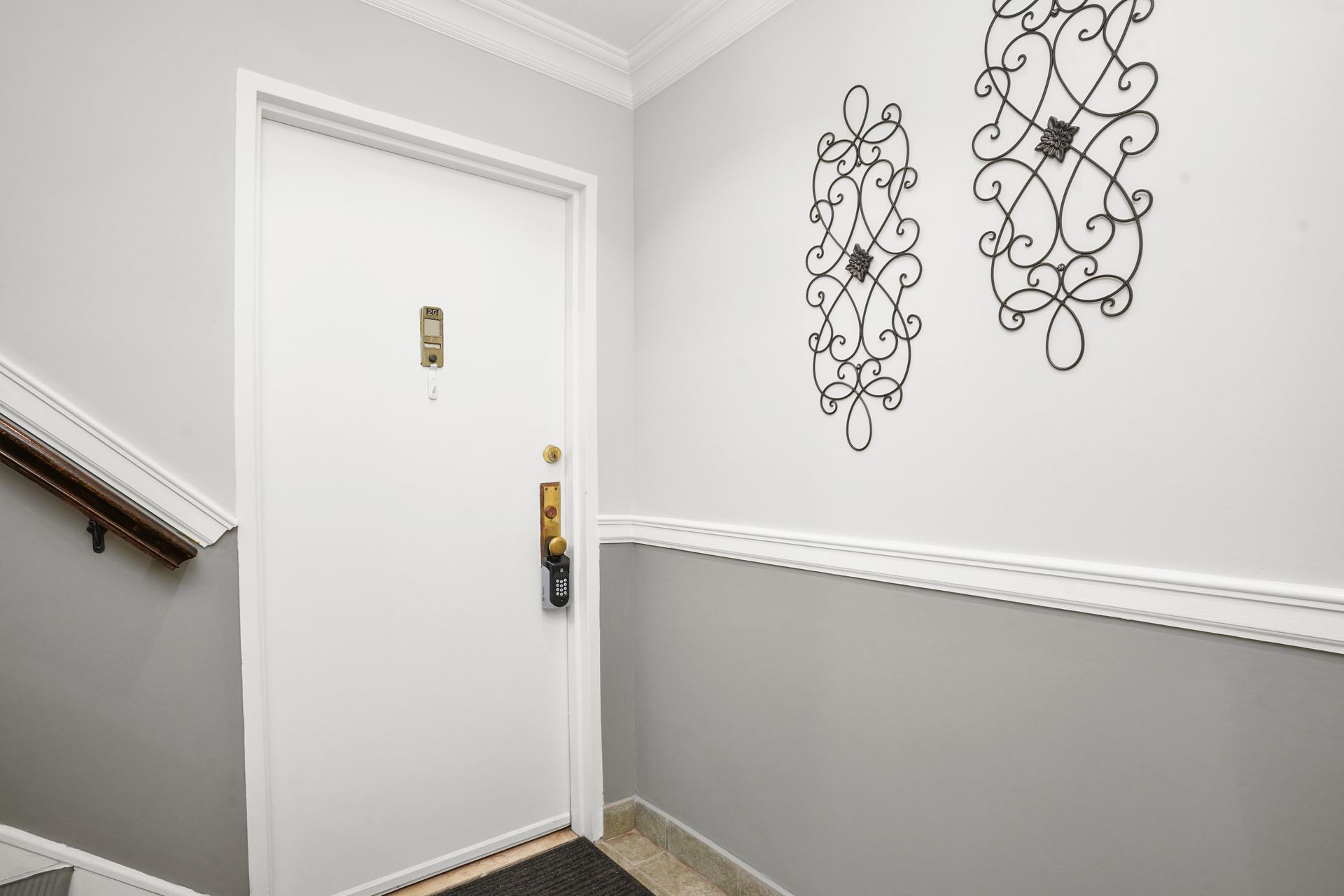 Easy access! Park your car in any spot and then it is only one small step into the common hallway and to your first-floor apartment. Once inside the foyer to the right is the kitchen and to the left the washer and dryer closet and hall bathroom. There is a large living room with an adjoining room used as a den and often used as a dining room or enclosed as a bedroom. The main bedroom holds a king size bed and has two ample closets. There are wood floors throughout. The outdoor space features free parking, backyard grilling, front porch, common trash and recycle bins. There are two supers living on site maintaining the common areas in tip top and park like condition. They also plow the snow and shovel the walkways. Come home and relax.