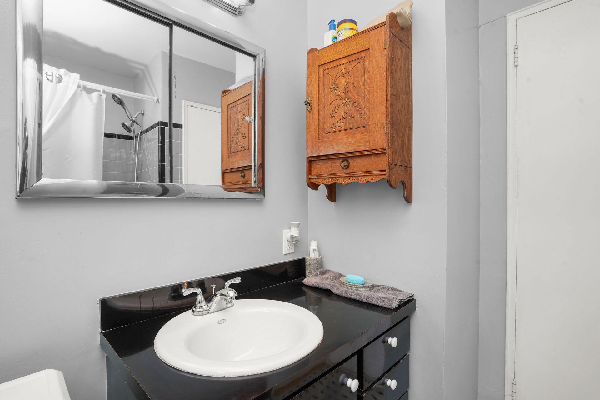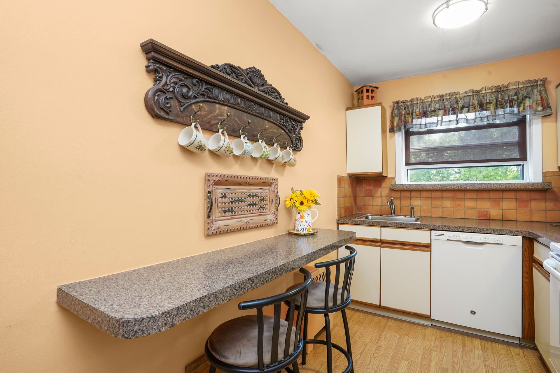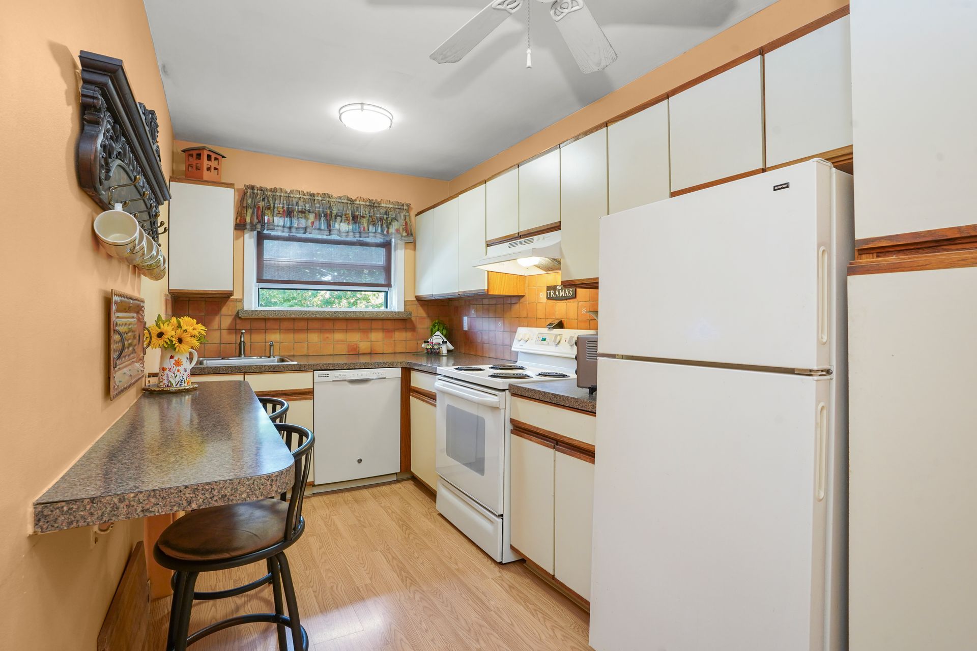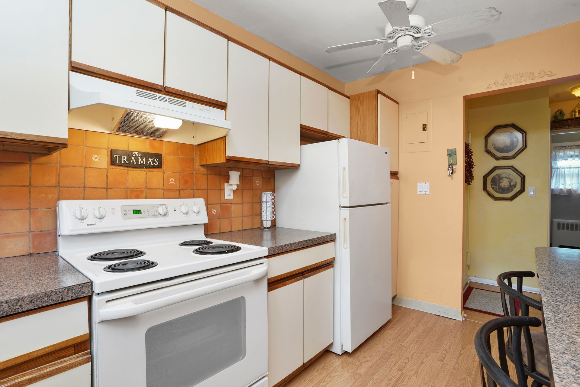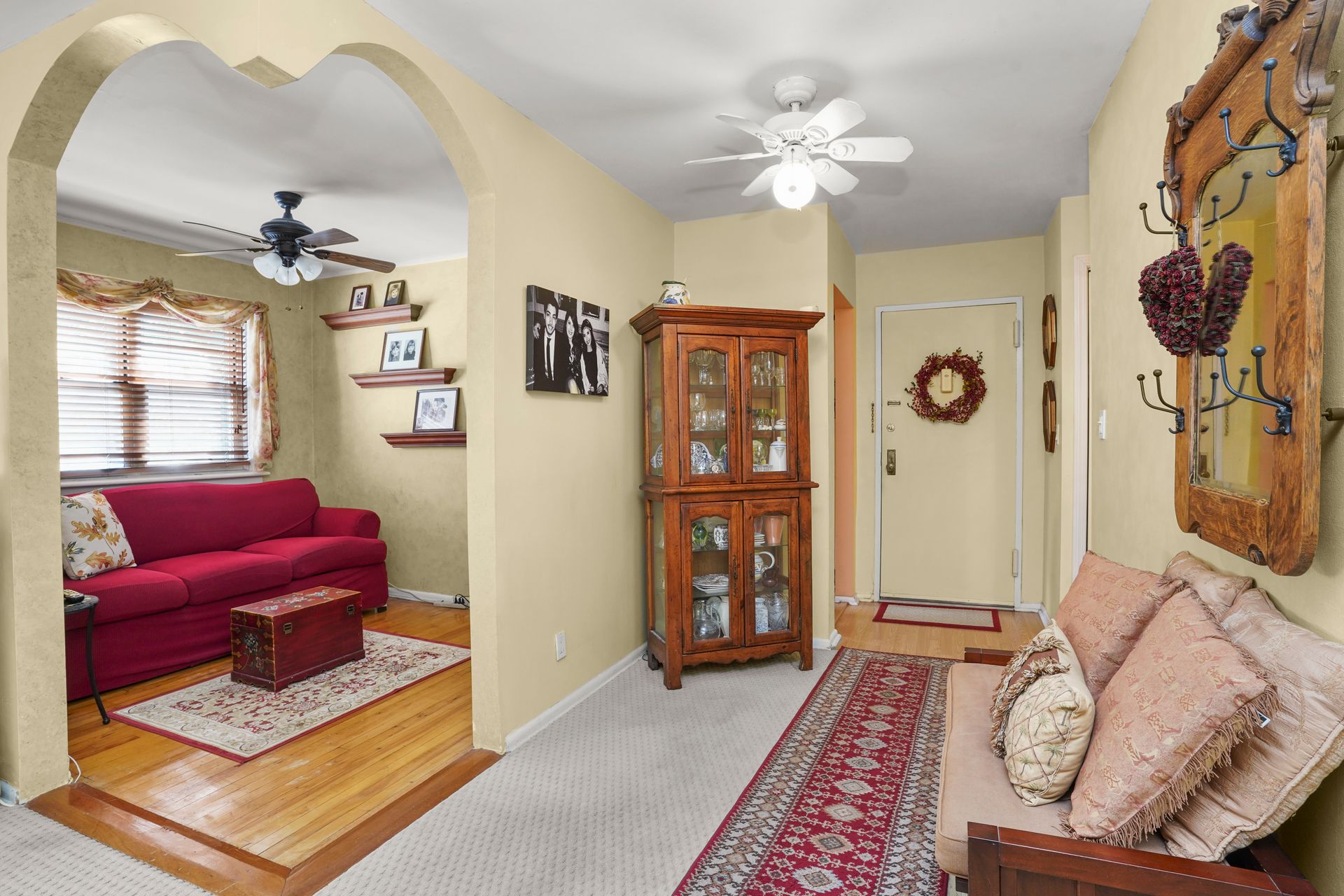 Easy access! Park your car in any spot and then it is only one small step into the common hallway and to your first-floor apartment. Once inside the foyer to the right is the kitchen and to the left the washer and dryer closet and hall bathroom. There is a large living room with an adjoining room used as a den and often used as a dining room or enclosed as a bedroom. The main bedroom holds a king size bed and has two ample closets. There are wood floors throughout. The outdoor space features free parking, backyard grilling, front porch, common trash and recycle bins. There are two supers living on site maintaining the common areas in tip top and park like condition. They also plow the snow and shovel the walkways. Come home and relax.