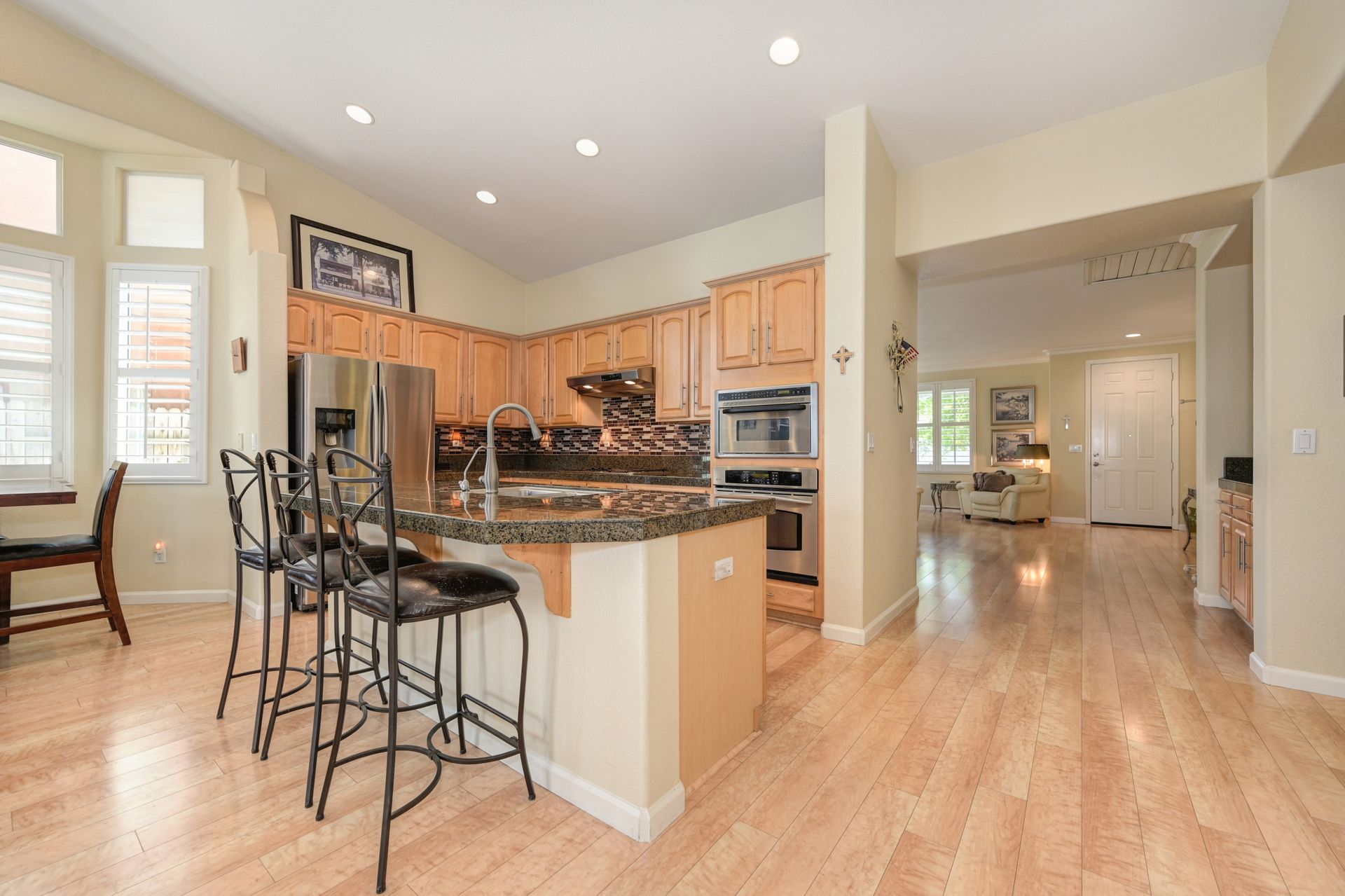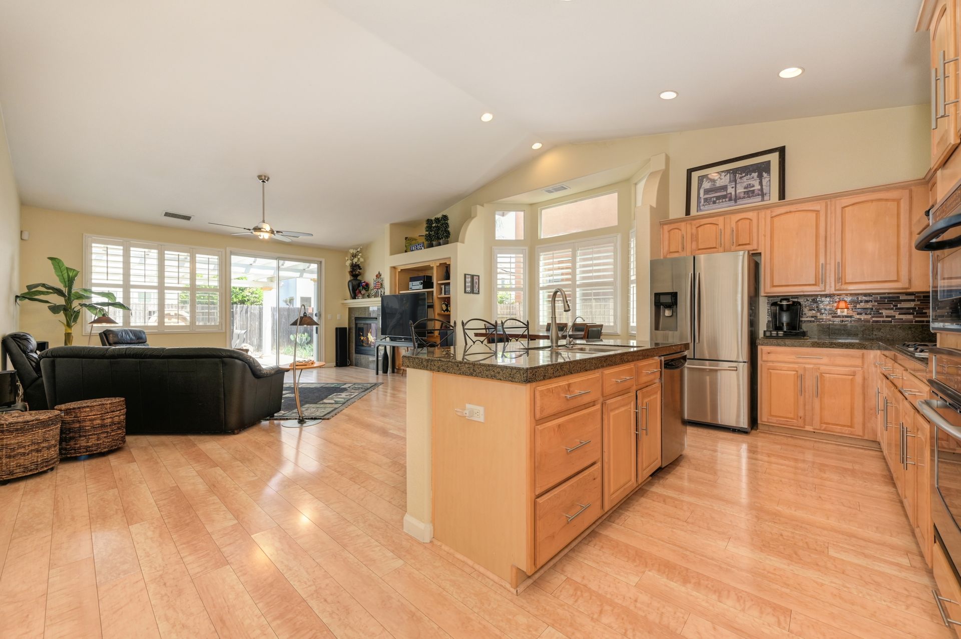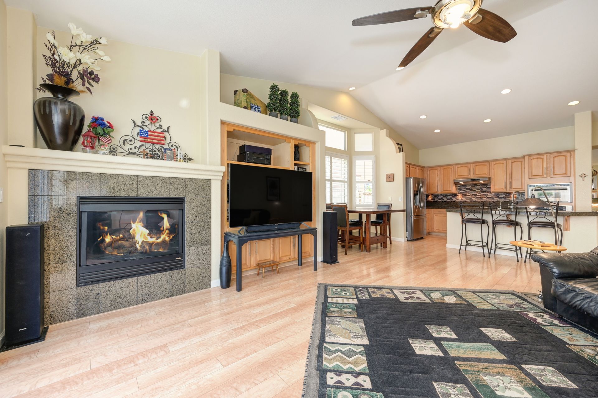 Welcome to your hard to find, single-story home offering 3/4 bedrooms, 2.5 baths and a spacious open floorplan catering to modern living while providing a touch of elegance and charm. Enter the formal living room and dining room, which is a perfect space for hosting gatherings and creating lasting memories with family and friends. The open floorplan seamlessly connects the living spaces to the heart of the home. The kitchen is a chef’s delight, featuring sleek granite countertops, tile flooring, lots of cabinetry and stainless-steel appliances. Whether you’re preparing everyday meals or entertaining guests, the kitchen allows for ease of conversation. The family room has a cozy gas log fireplace and overlooks the backyard oasis. The primary suite is a haven of relaxation with an ensuite bathroom along with a separate retreat which works nicely for an in-home office, hobby room or home fitness area. Enjoy the beautifully landscaped backyard from the comfort of the covered patio which allows for entertainment year-round or enjoy your morning coffee on the covered front porch. The home also features a 3-car side-by-side garage, offering additional parking and storage. The convenient commute access ensures you’re never far from where you need to be. Welcome to your Home Sweet Home!
