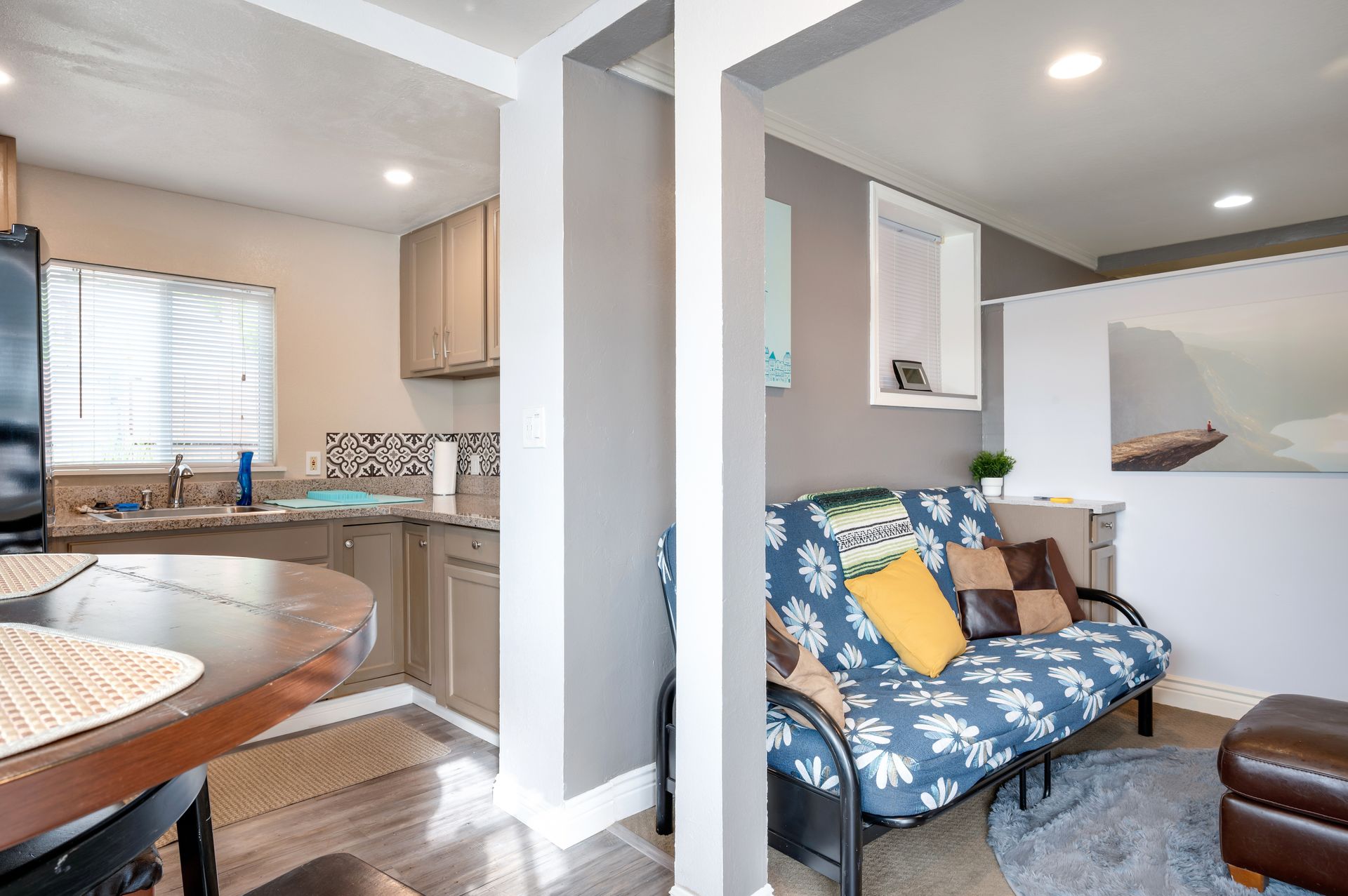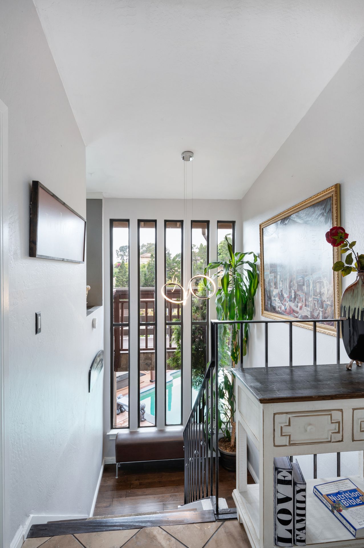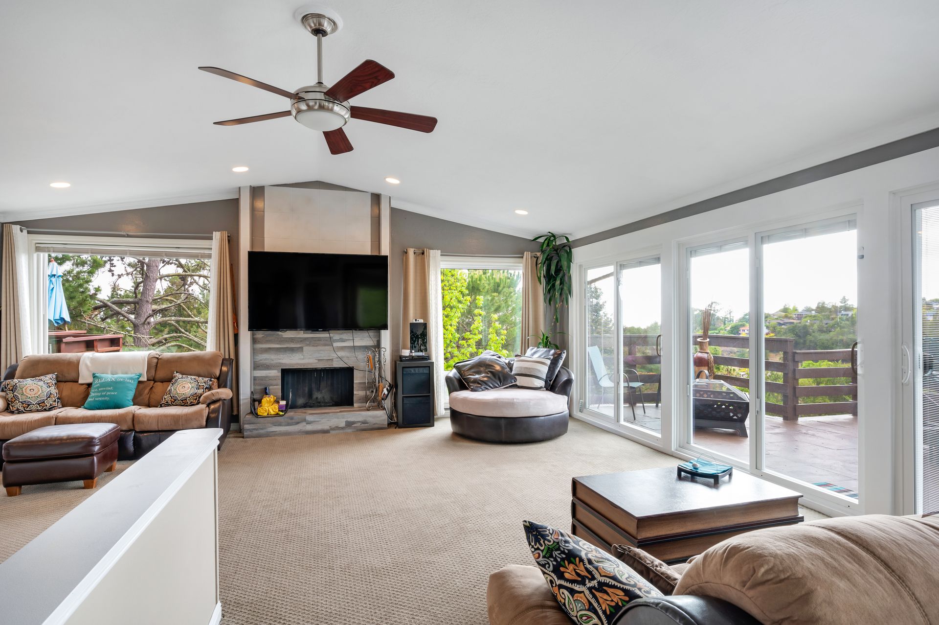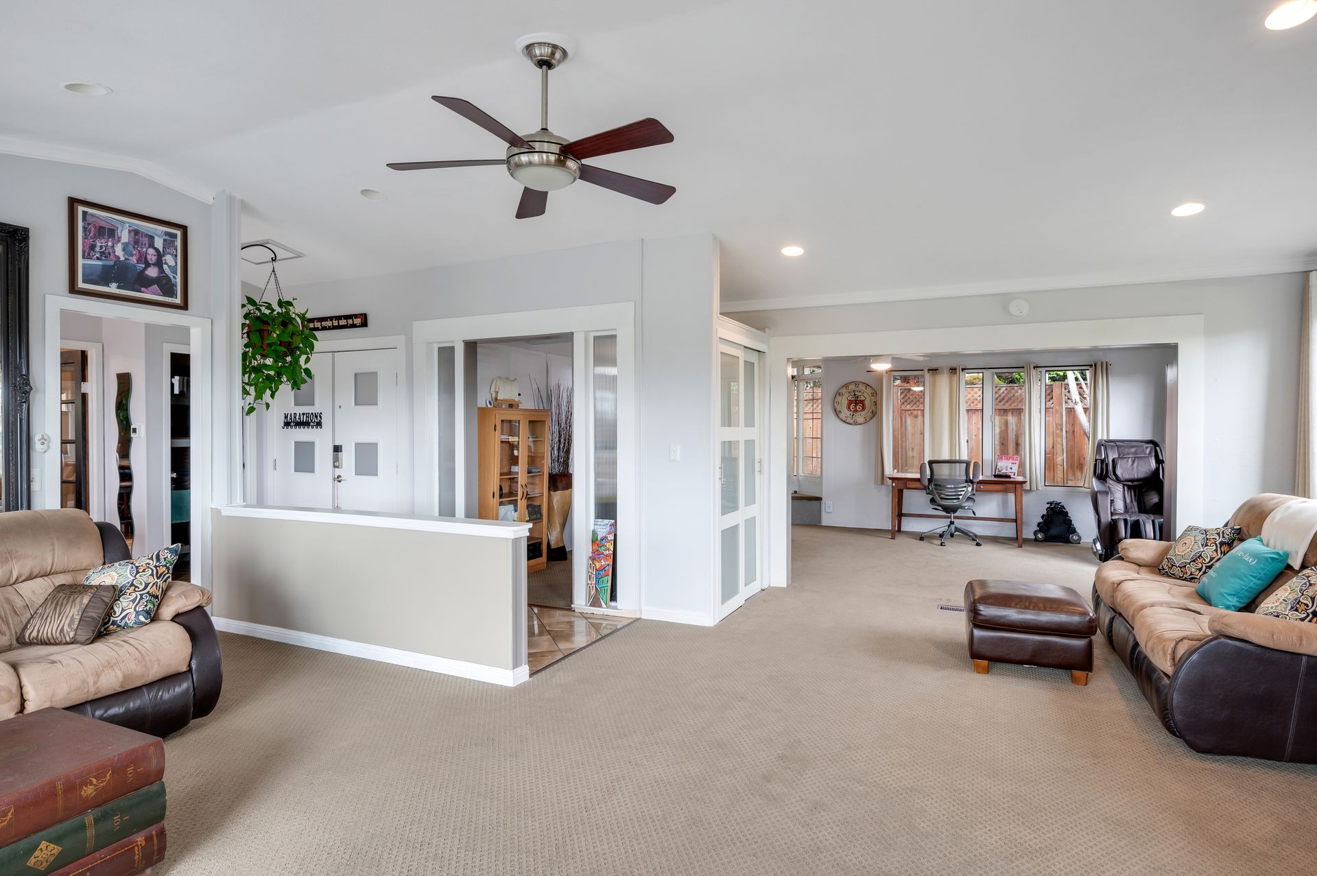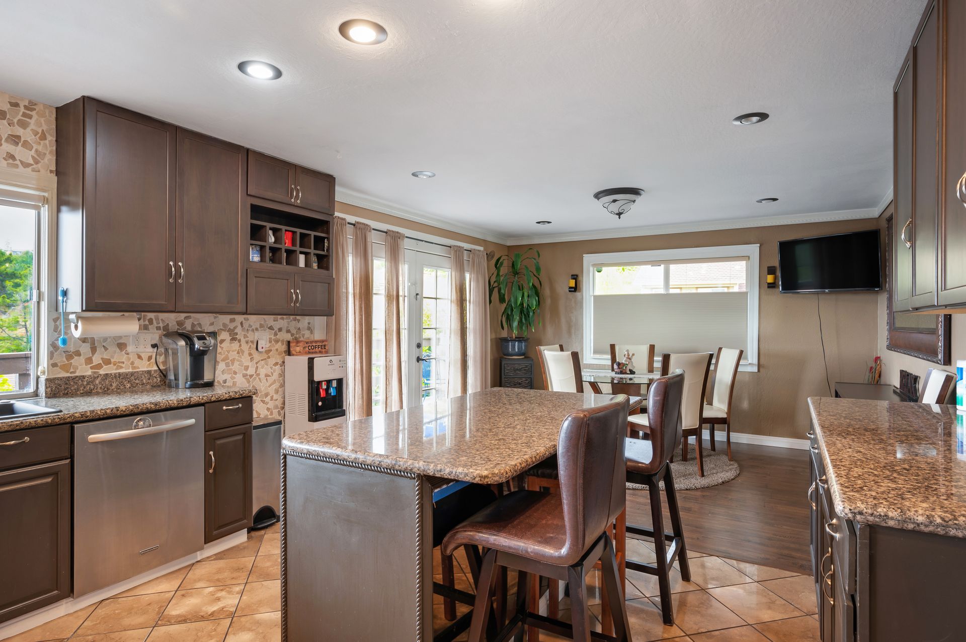 This easy indoor-outdoor living and a prime location make this the home you’ll never want to leave. Oversized windows in every room ensure full enjoyment of the outstanding views. On the main level, a spacious living room opens to a deck that runs the entire length of the home overlooking the backyard. A bonus room or home office adjoins the living room and features an additional deck, ideal for relaxing in the sun on weekend afternoons. The updated kitchen includes stainless steel appliances, an island with seating, plenty of counter space and a second slider leading out to the deck. An impressive staircase with stacked feature windows leads to the lower-level bedrooms, including a primary suite with a walk-in closet, double sinks and a glass-enclosed shower. At the opposite end of the hall, a spacious guest unit is completed with a full kitchen. Each of the two secondary bedrooms has a separate full bath. The outdoor livable space with its inviting pool and pergola-shaded spa will quickly become the primary gathering place for your everyone. Hayward Highland is a sought-after neighborhood with expansive views, close proximity to CSUEB and a variety of shopping and commute options.